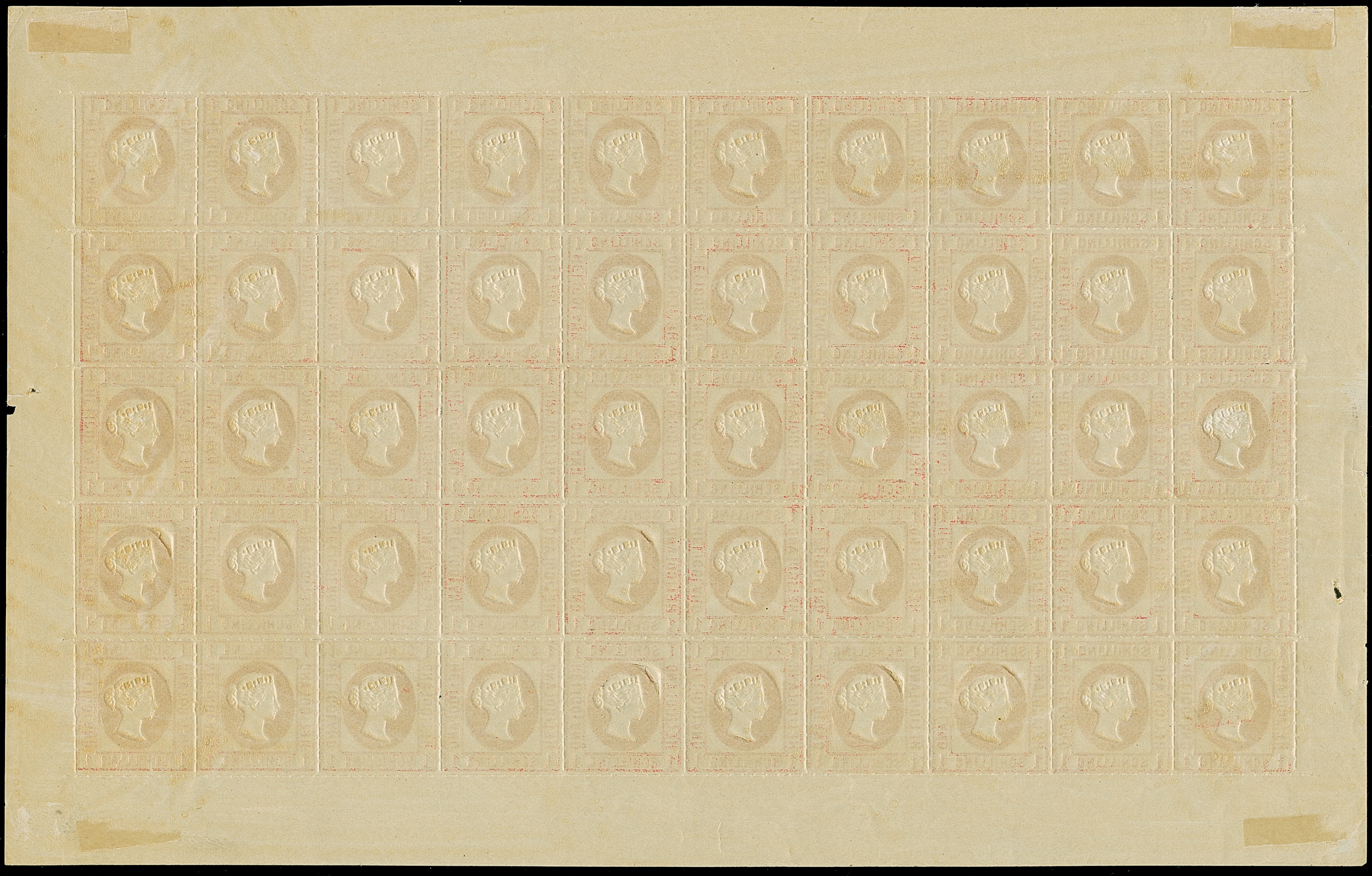 HAMBURGER: 1891/95, 1 Sch. rot, durchstochen, mit Prägung, ohne Zwickeldruck, kompletter Bogen, postfrisch, im Rand Falze, leicht vorgefaltet, sonst tadellos
