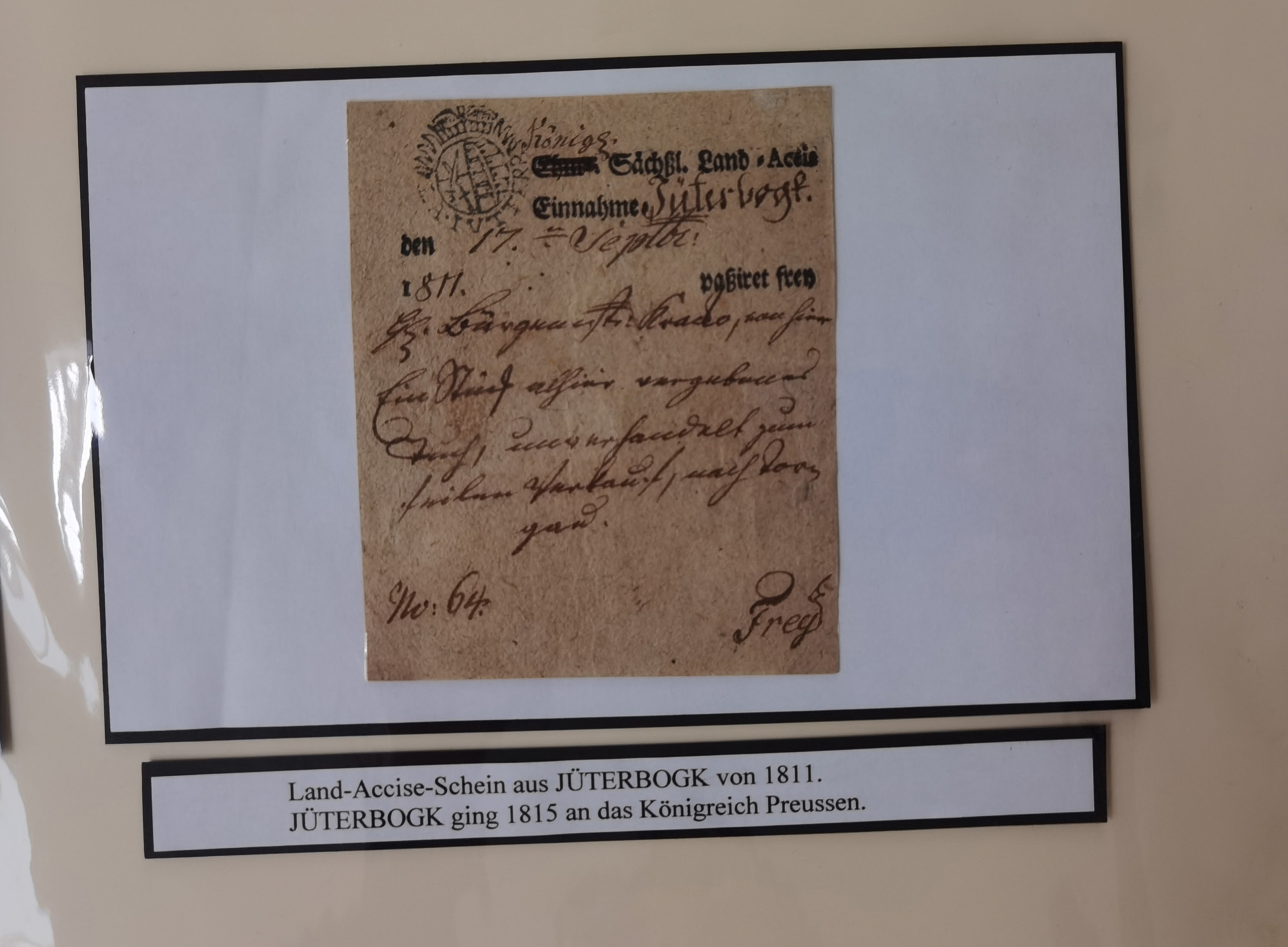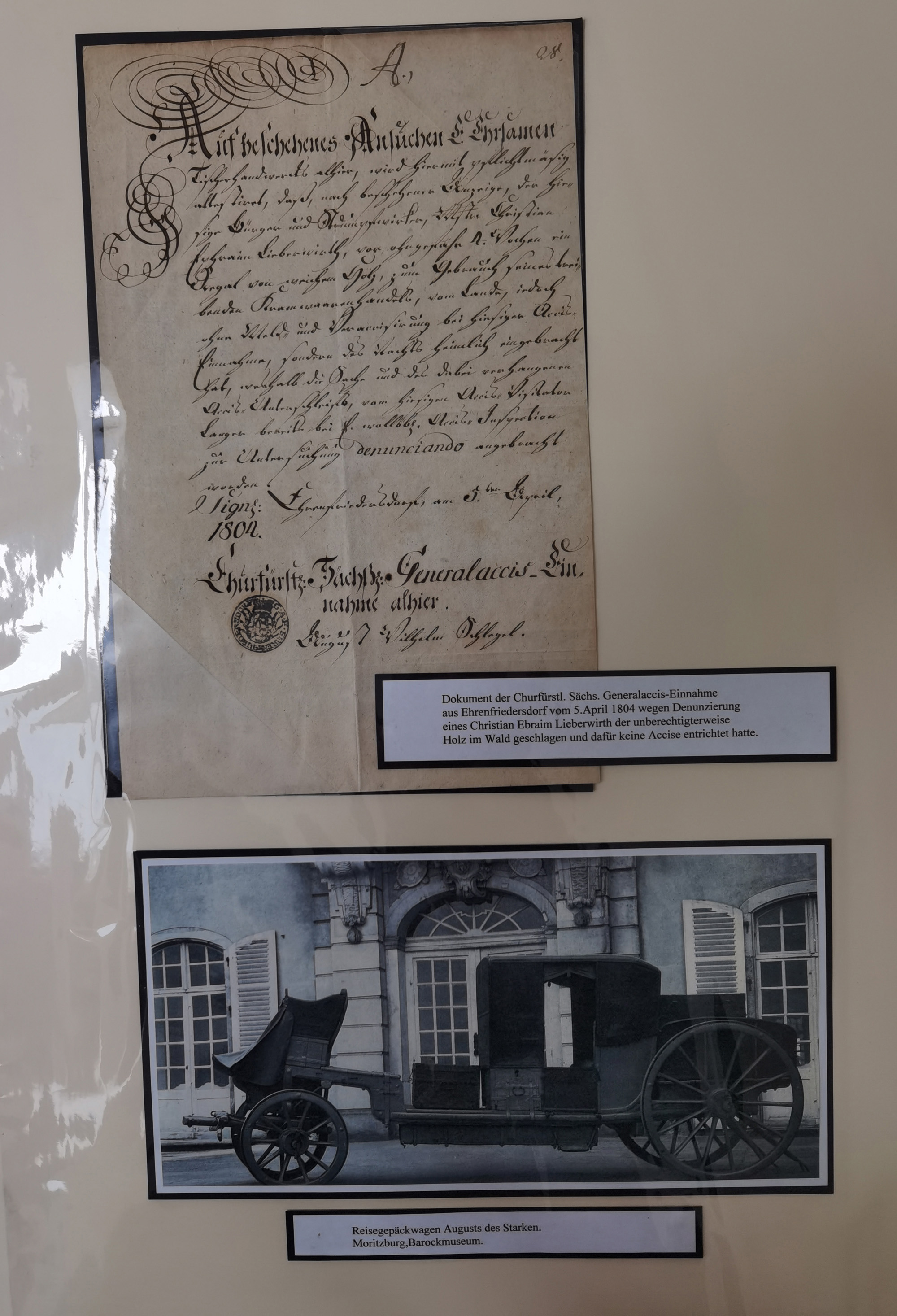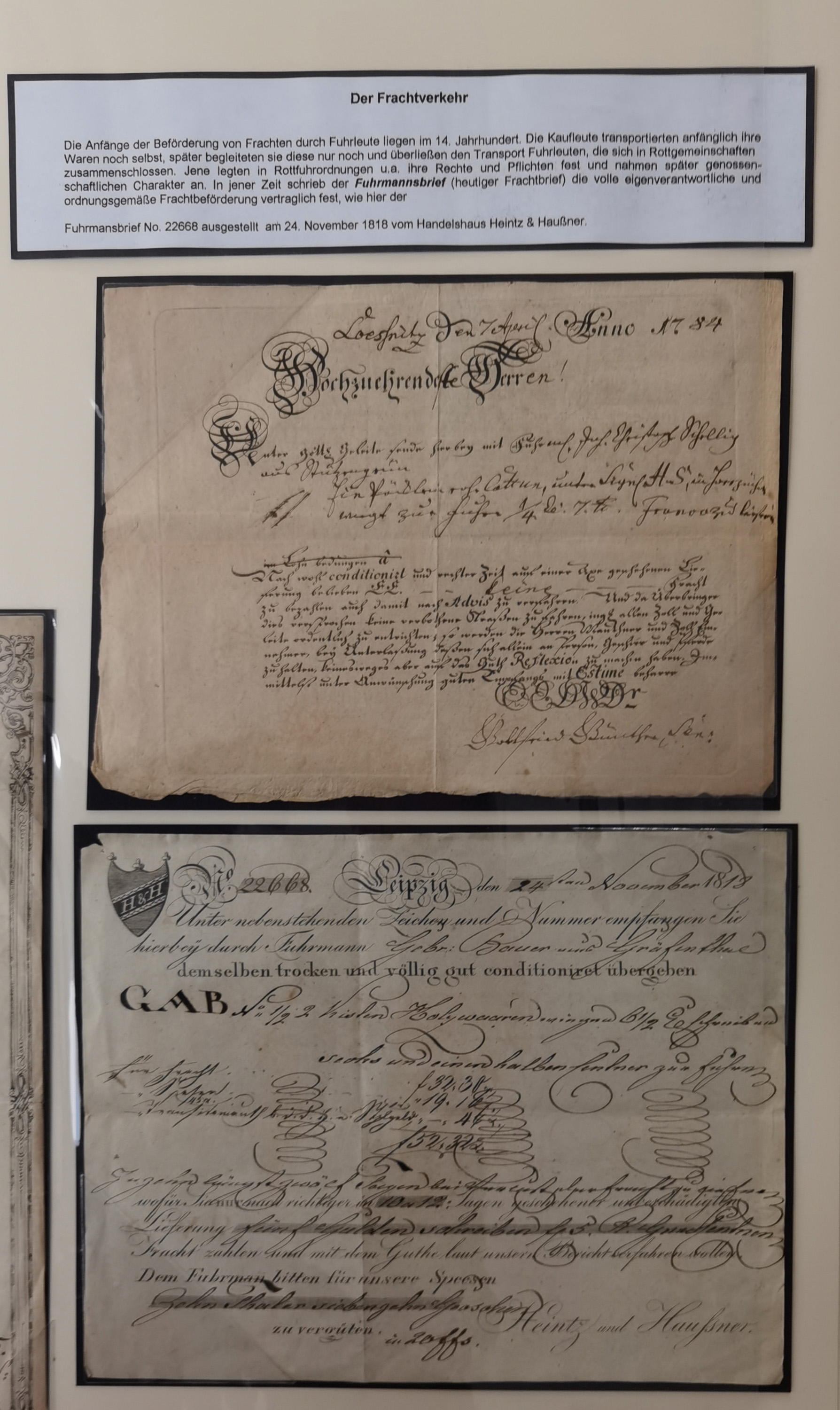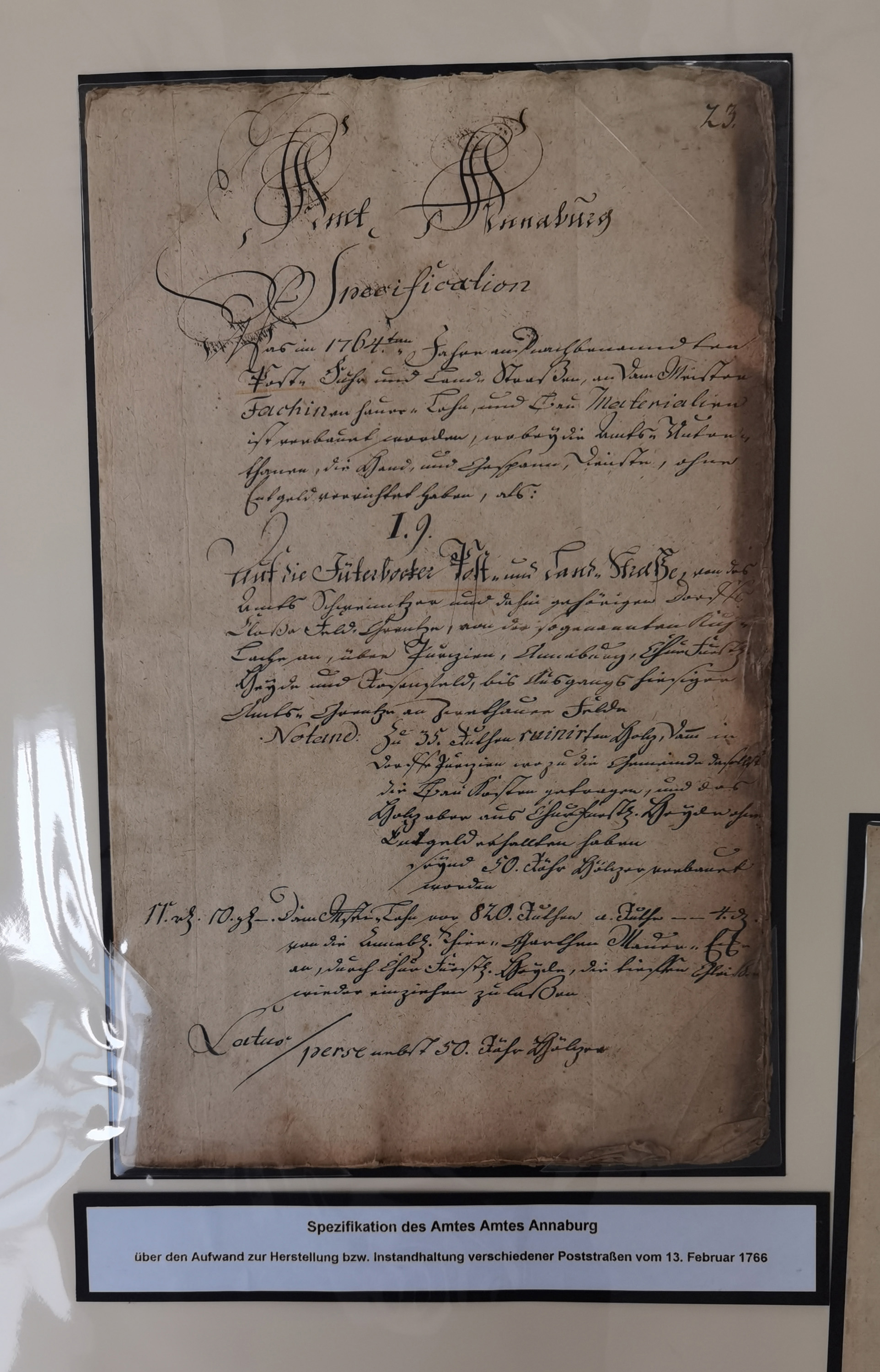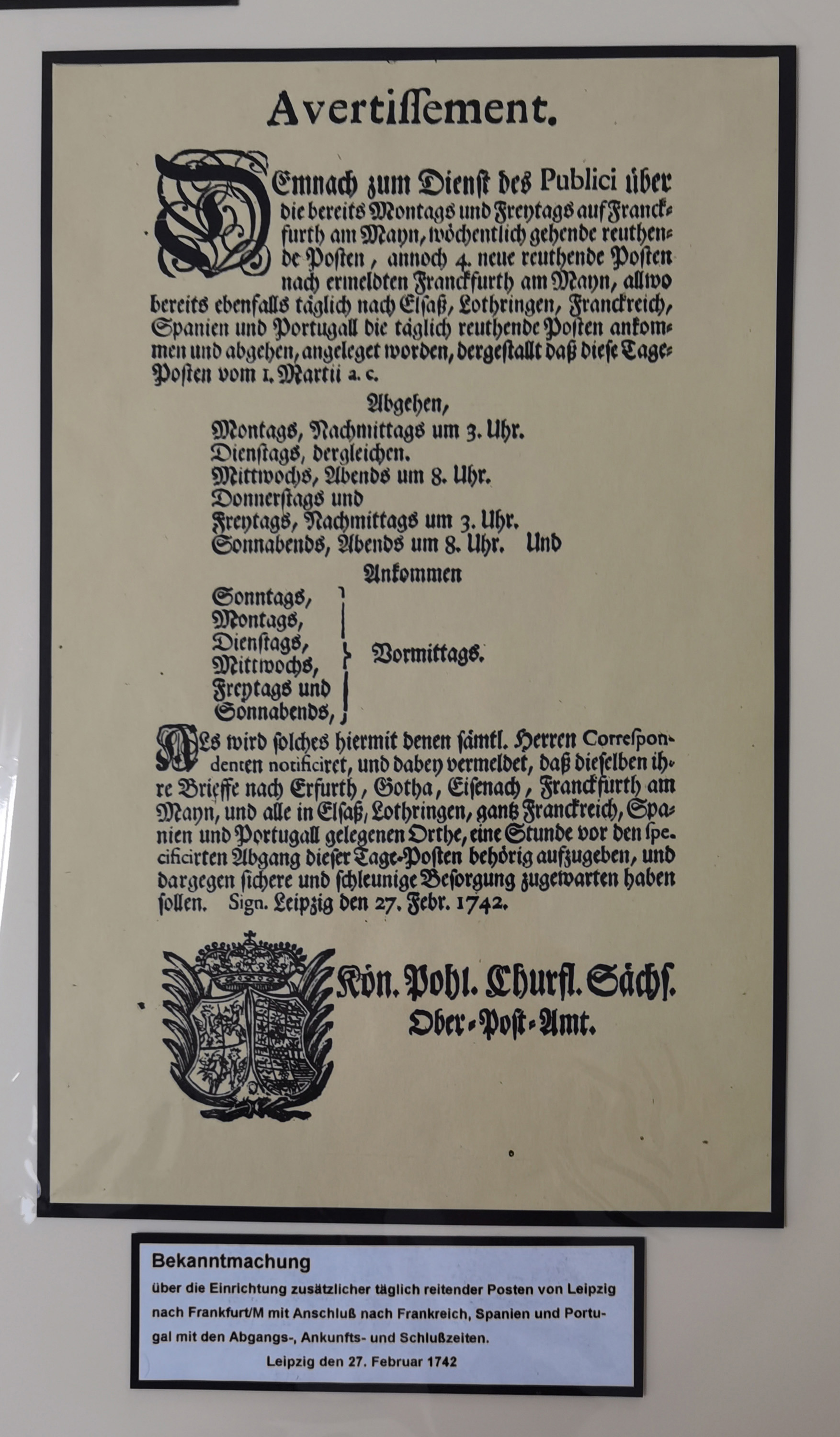 1638/1868, Ausstellungssammlung 'Vom Geleitsweg zur Poststraße', zu historischen Poststraßen in Sachsen, aufgezogen auf 7 großen Tafeln (ca. 1x 1 m), dabei Mandate und Dekrete, Staffetten-Pass von 1805, Reise- und Eilwagenscheine, Reisepass, Accise-Scheine, Extrapost-Quittungen, etc. Ein postgeschichtlich hochinteressantes Objekt.