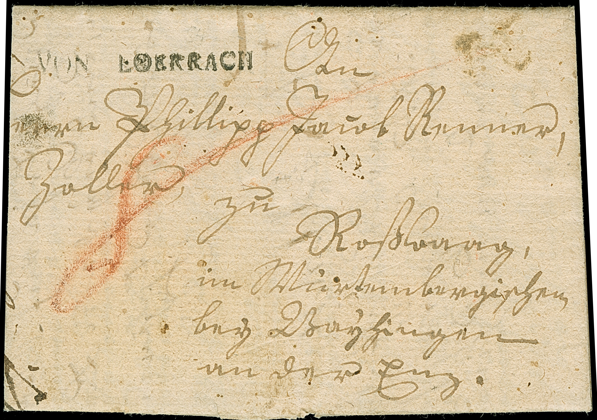 1798,"VON LOERRACH", L1 sauber auf komplettem kleinen Faltbrief nach Rosswag bei Vaihingen an der Enz. Ein schöner Beleg des seltenen Stempels.