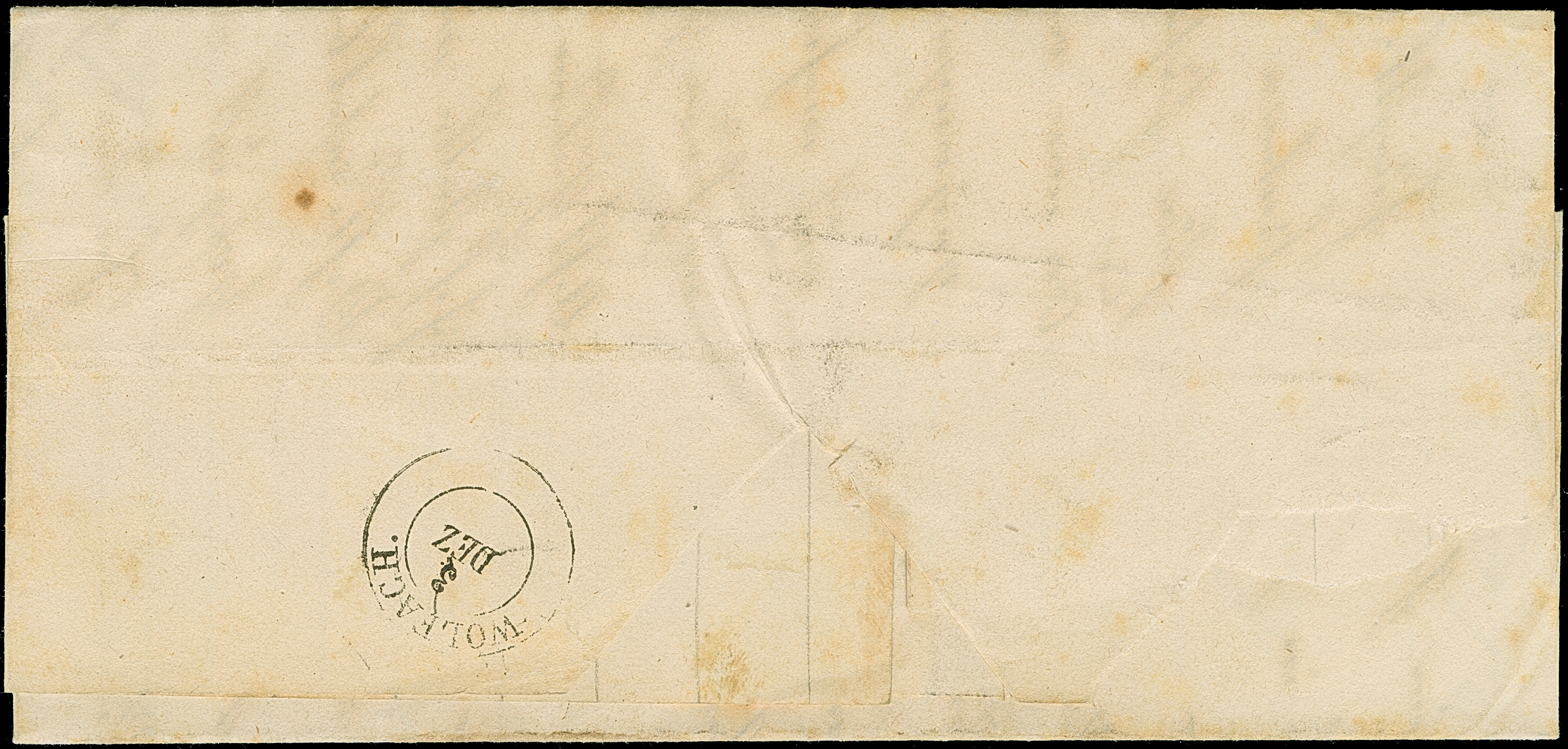 "147" UIHLINGEN sauber auf 3 Kr. auf gelb, mit klar nebengesetztem Ra2 auf komplettem Faltbrief 1853 aus Neuhaus bei Tiengen, nach Höllsteig. Ein attraktiver Beleg des seltenen Stempels in sehr schöner Erhaltung.