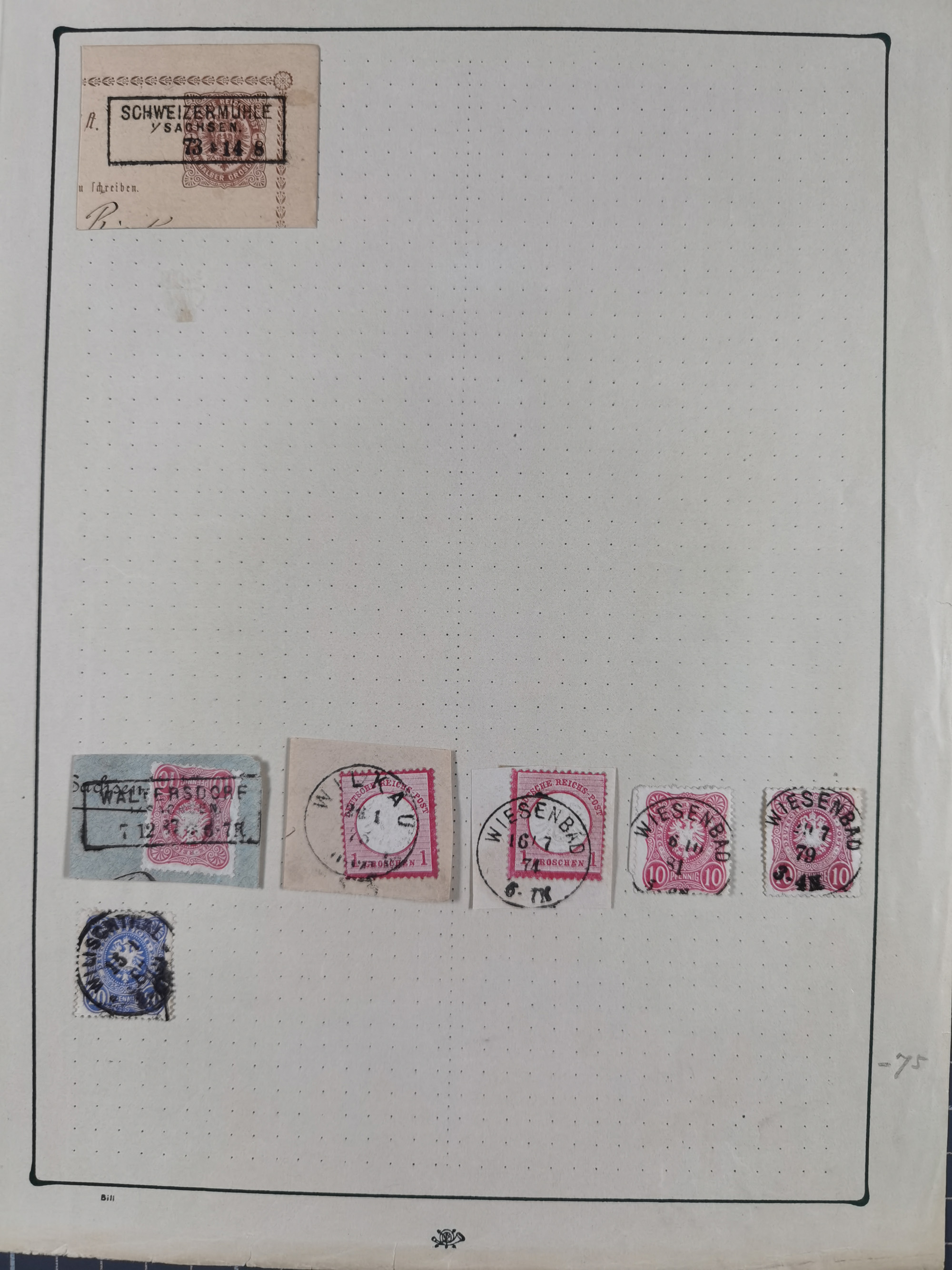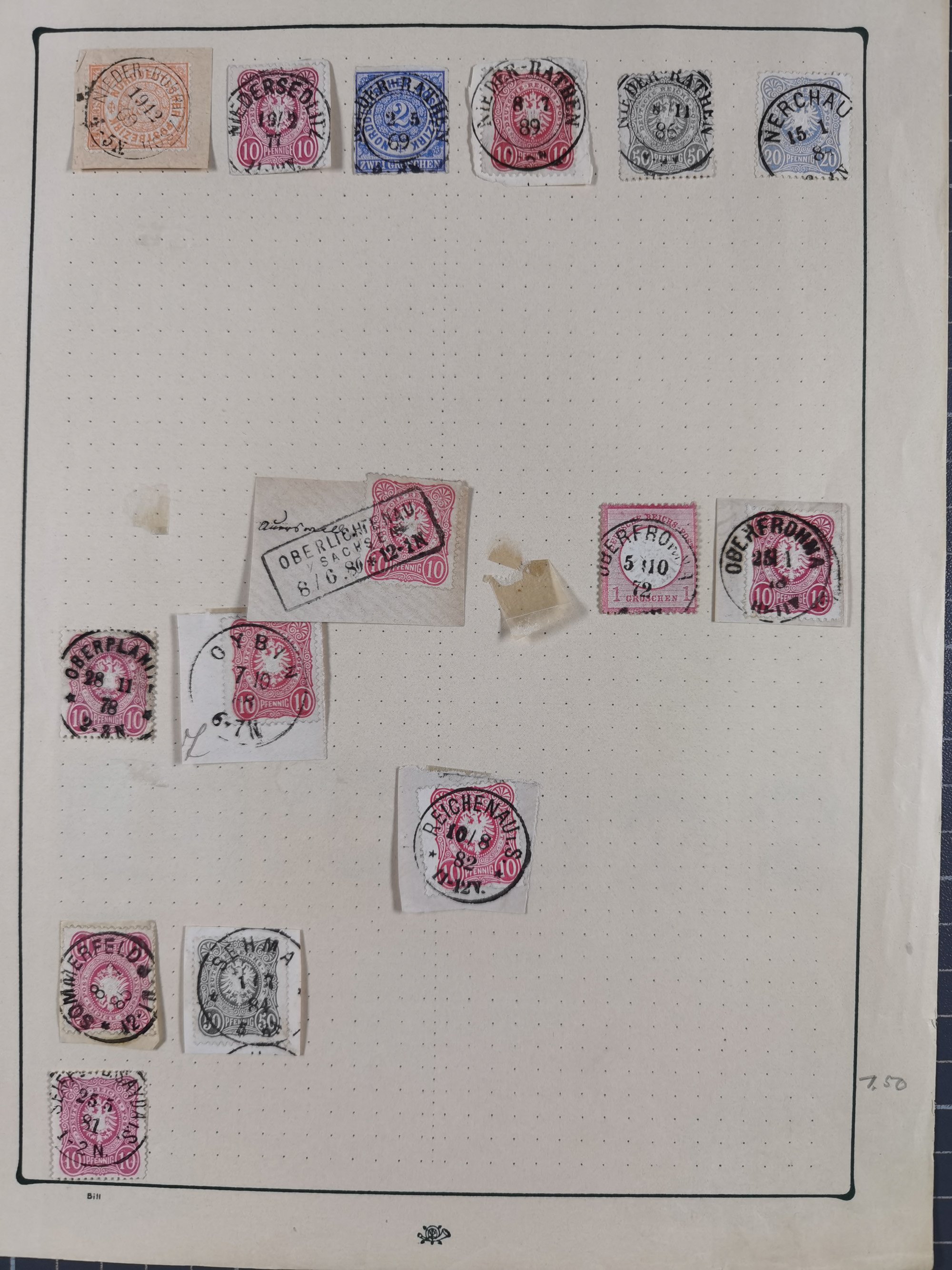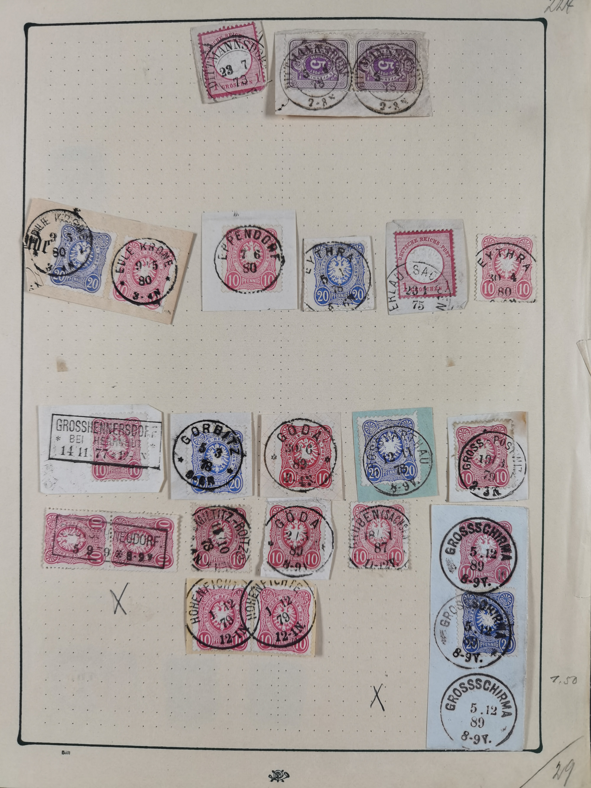ANNABERG bis ZWICKAU, Sammlung der Nummern- und Ortsstempel, nachverwendet auf über 500 Marken und Briefstücken NDP und Dt. Reich, meist sehr schöne Abschläge, eng gesteckt auf Steckseiten.