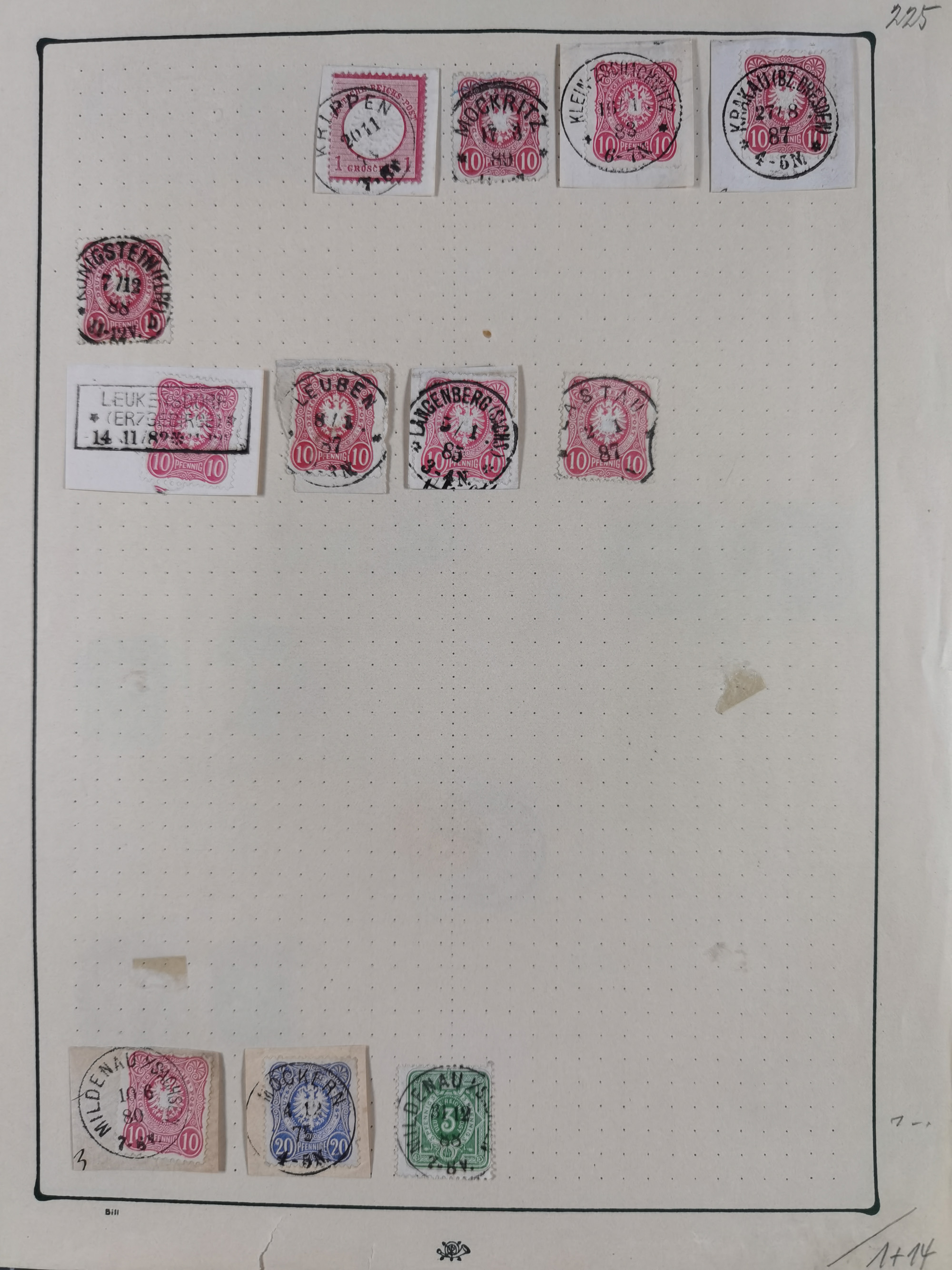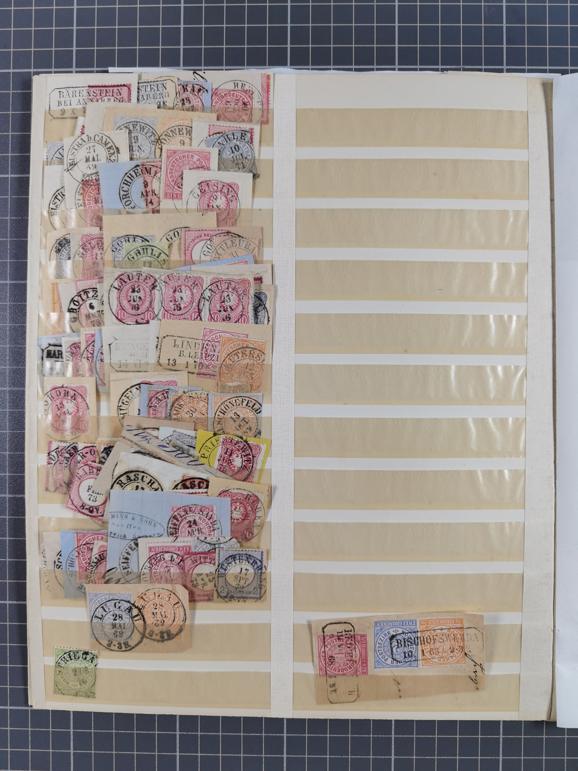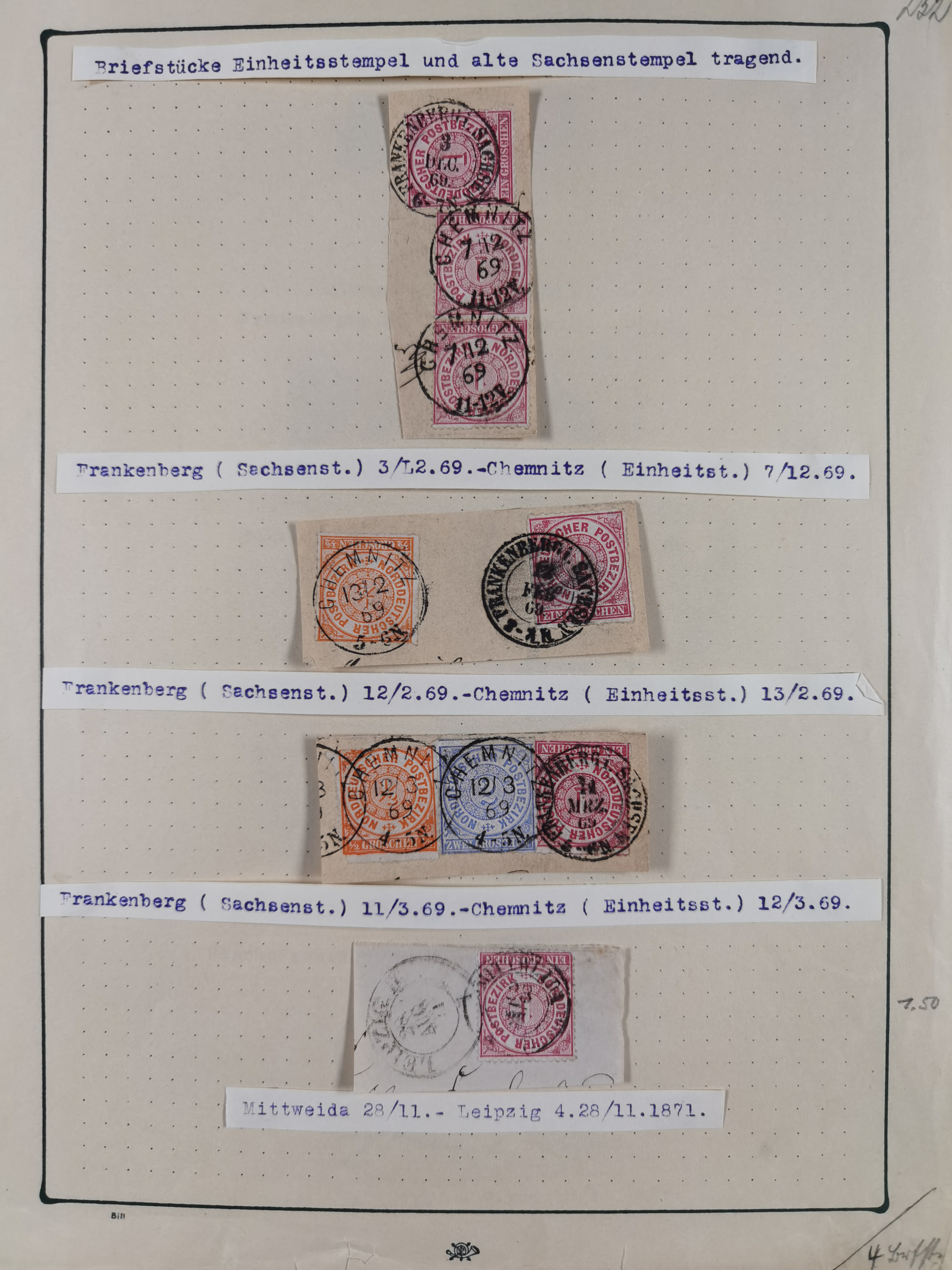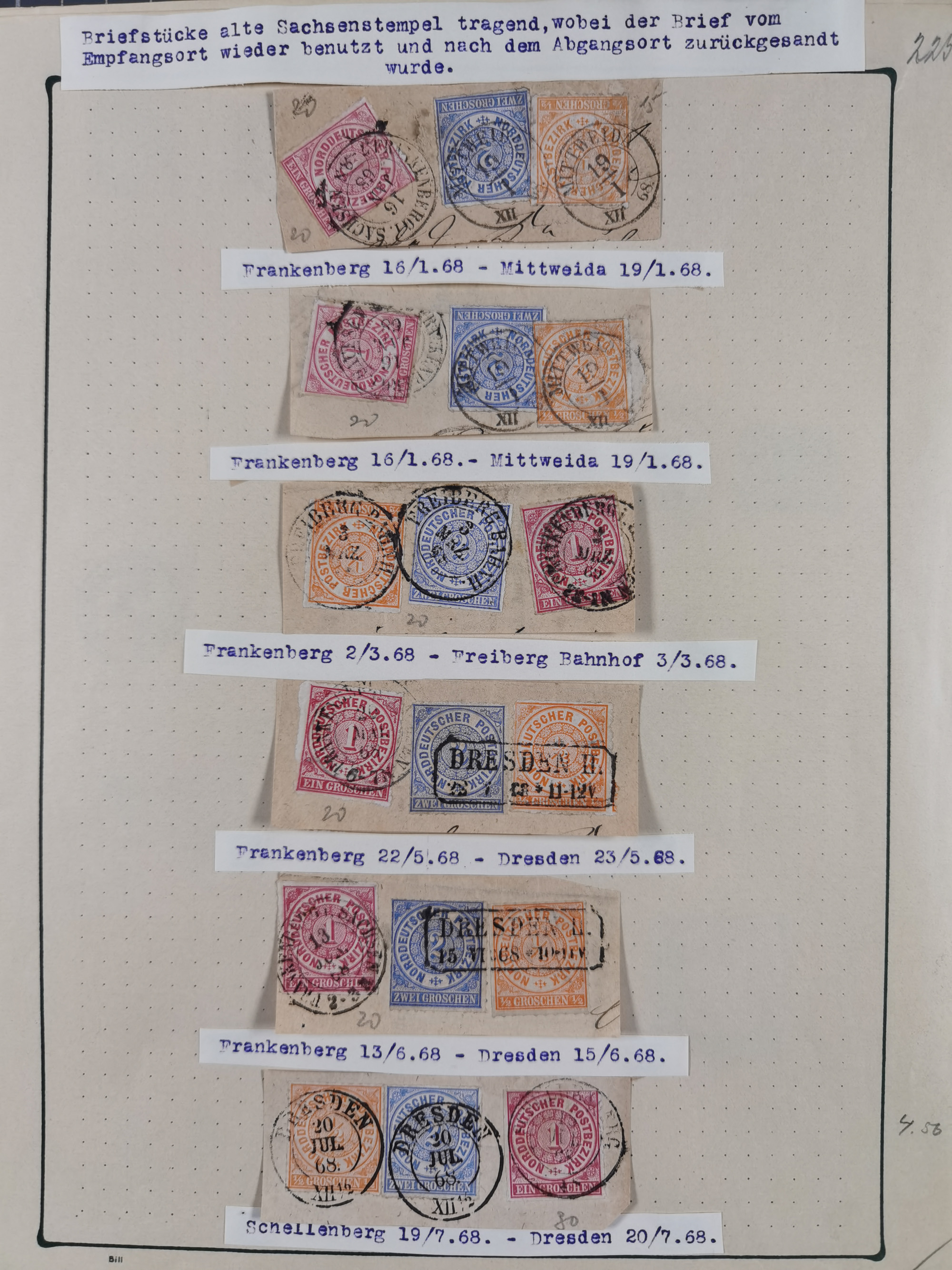 ANNABERG bis ZWICKAU, Sammlung der Nummern- und Ortsstempel, nachverwendet auf über 500 Marken und Briefstücken NDP und Dt. Reich, meist sehr schöne Abschläge, eng gesteckt auf Steckseiten.