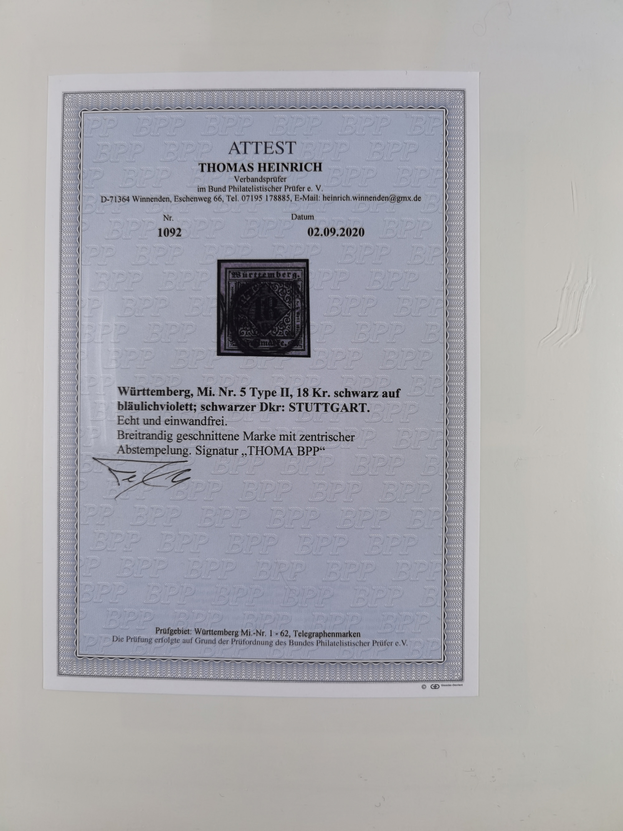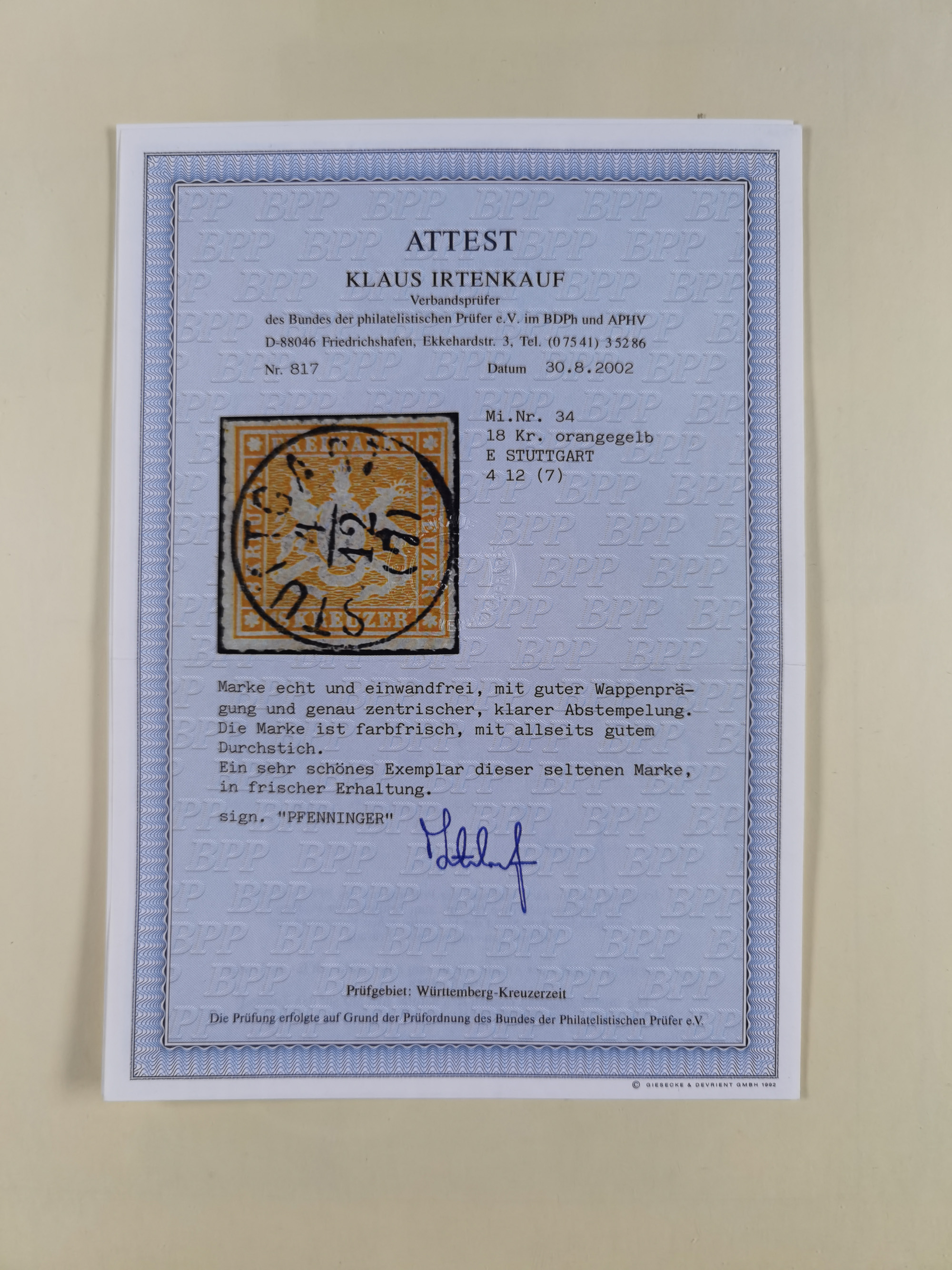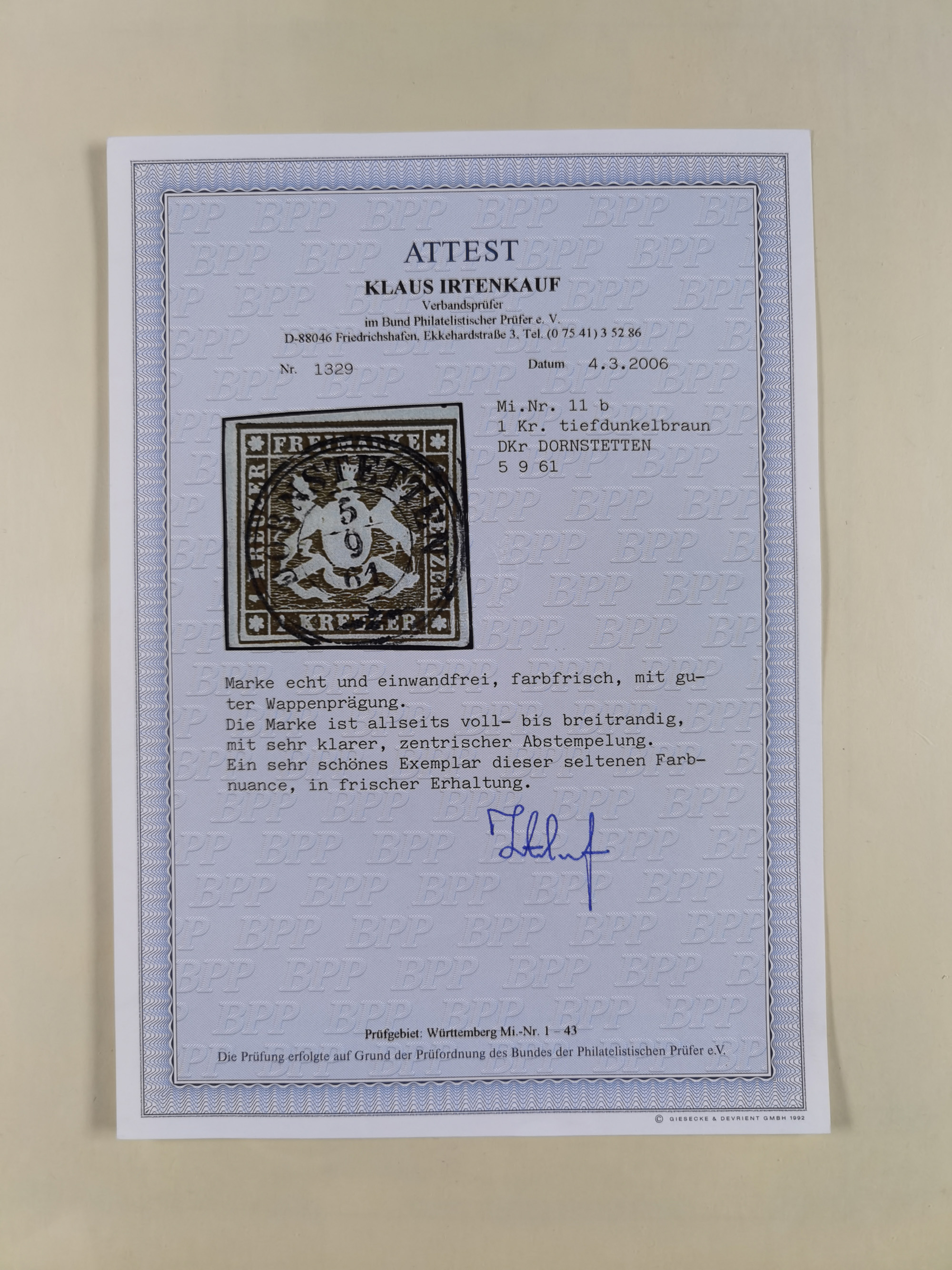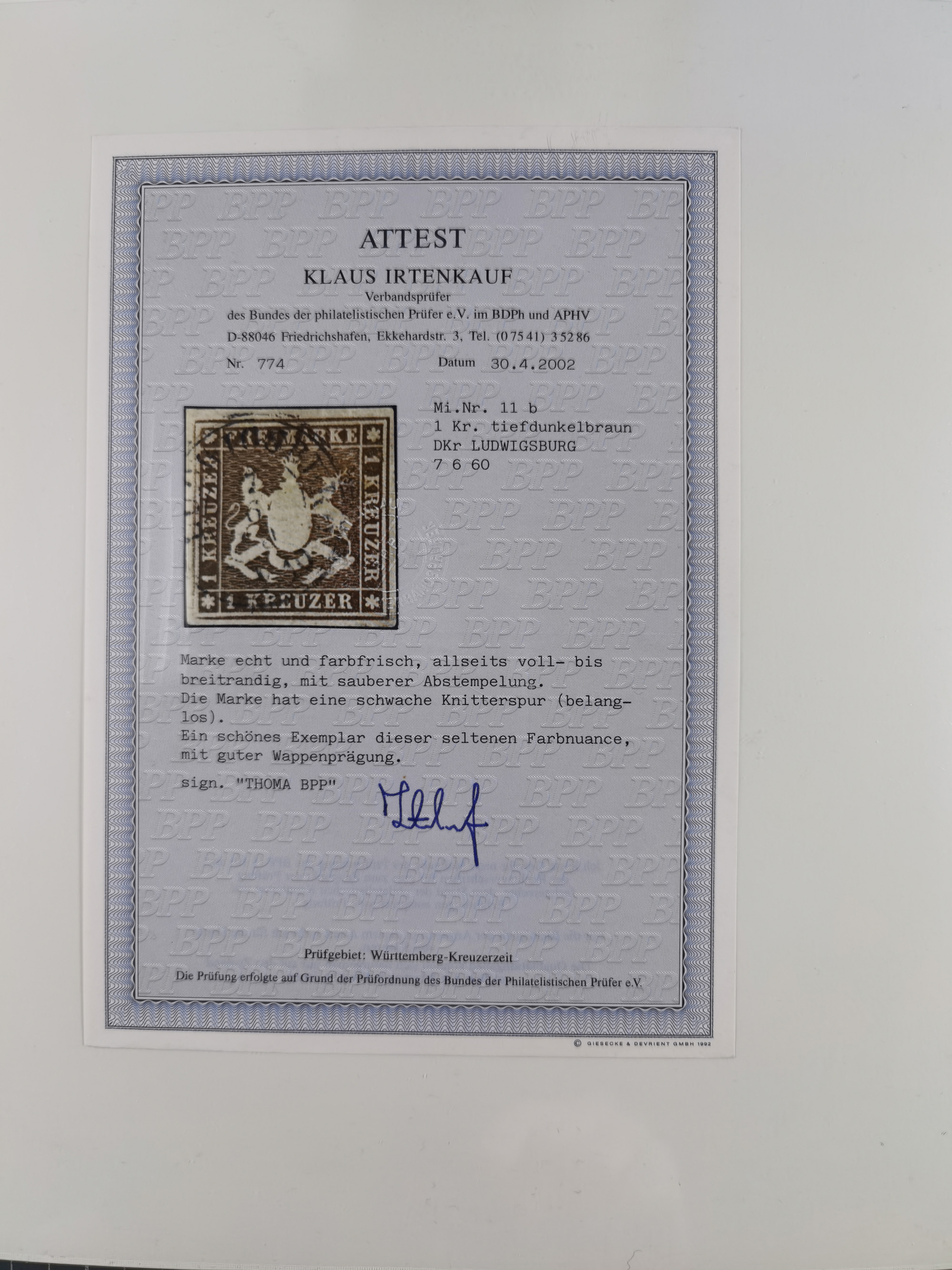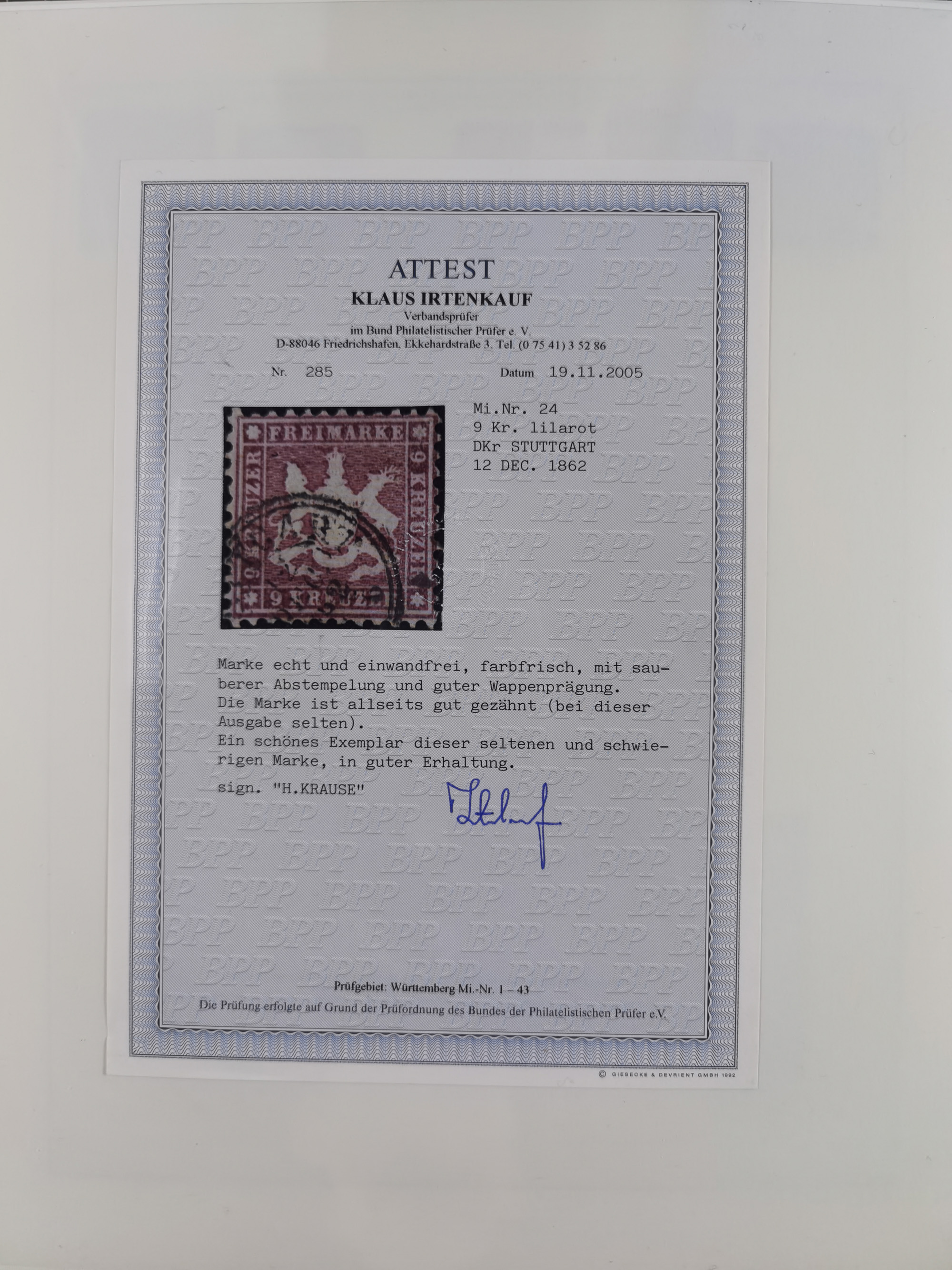 1851/1923, umfangreiche gestempelte Sammlung mit fast allen besseren Marken, vielen Farben und Besonderheiten. Dabei u.a. Mi.-Nr. Nr. 1c auf Briefstück (doppelt sign. Heinrich BPP), Mi.-Nr. 5I (FA Thoma BPP), Mi.-Nr. 5II (FA Heinrich BPP), Mi.-Nr. 9b (FA Irtenkauf BPP), Mi.-Nr. 10a auf Briefstück (FA Heinrich BPP), Mi.-Nr. 14b (FA Irtenkauf BPP), Mi.-Nr. 15 (FA Irtenkauf BPP), Mi.-Nr. 19xb (FA Irtenkauf BPP), Mi-Nr. 24 (FA Irtenkauf BPP), Mi.-Nr. 31c (FA Irtenkauf BPP), Mi.-Nr. 42b mit glasklarem EKr. “LUDWIGSBURG” (sign. Pfenninger mit FA), Mi.-Nr. 188 (FA Winkler BPP), Mi.-Nr. 211 (FA Thoma BPP), Mi.-Nr. 231aa (FA Winkler BPP) und Mi.-Nr. 264d (FA Winkler BPP). Fast durchgehend in guter Erhaltung mit ausgesucht schönen Stempeln, bessere Marken alle signiert bzw. mit KB, FB und Fotoattesten. Eine besonders empfehlenswerte Sammlung