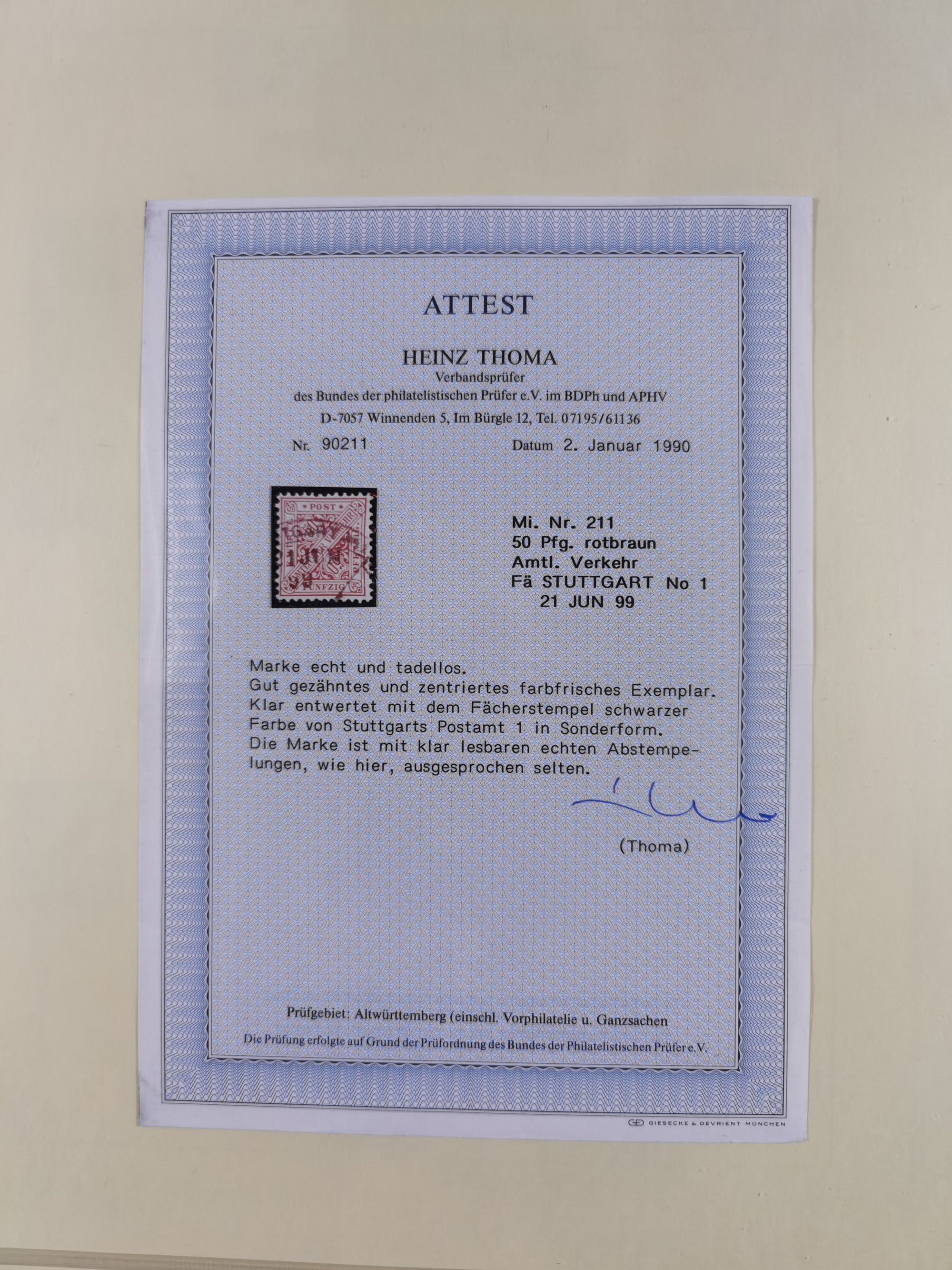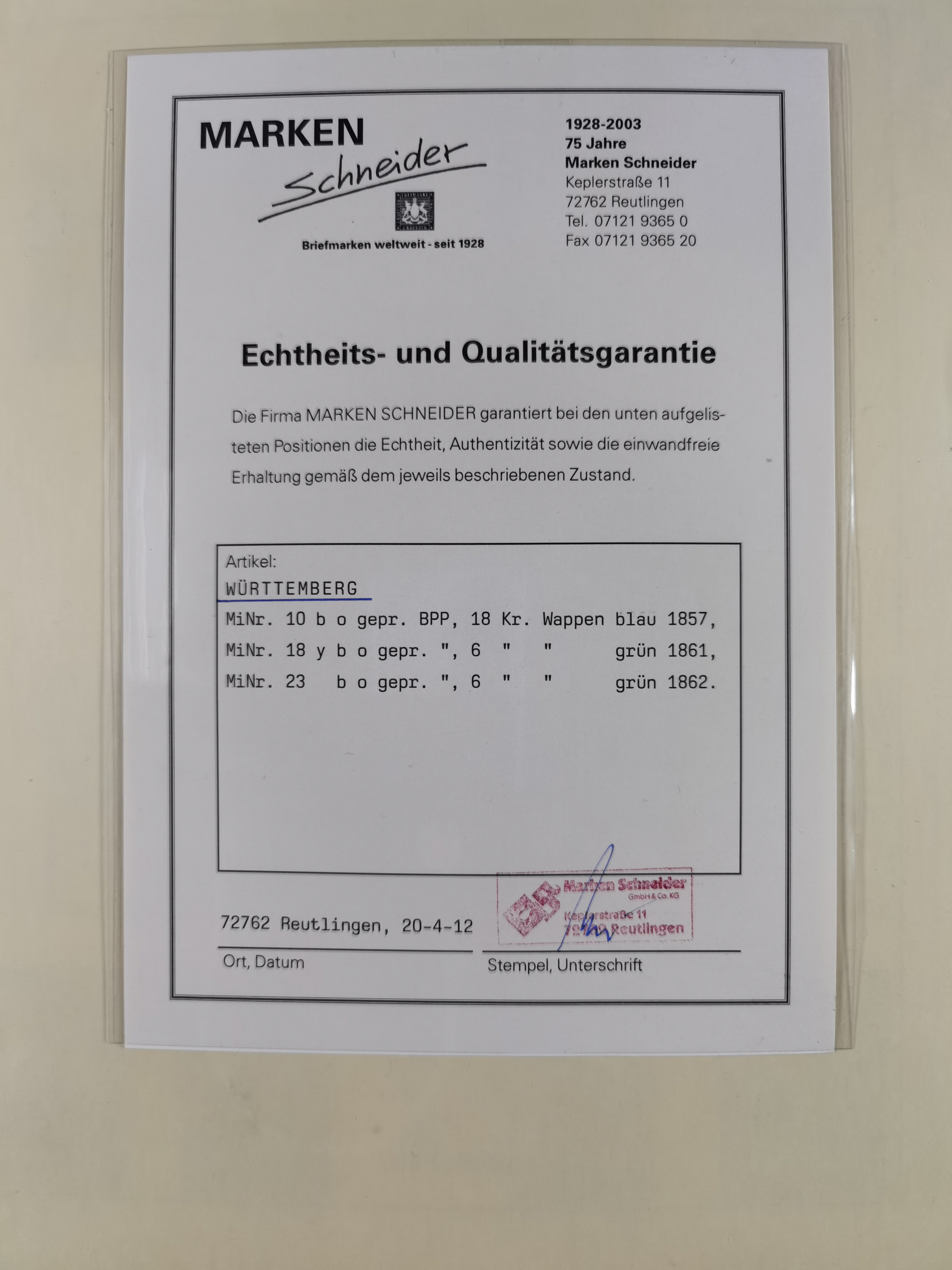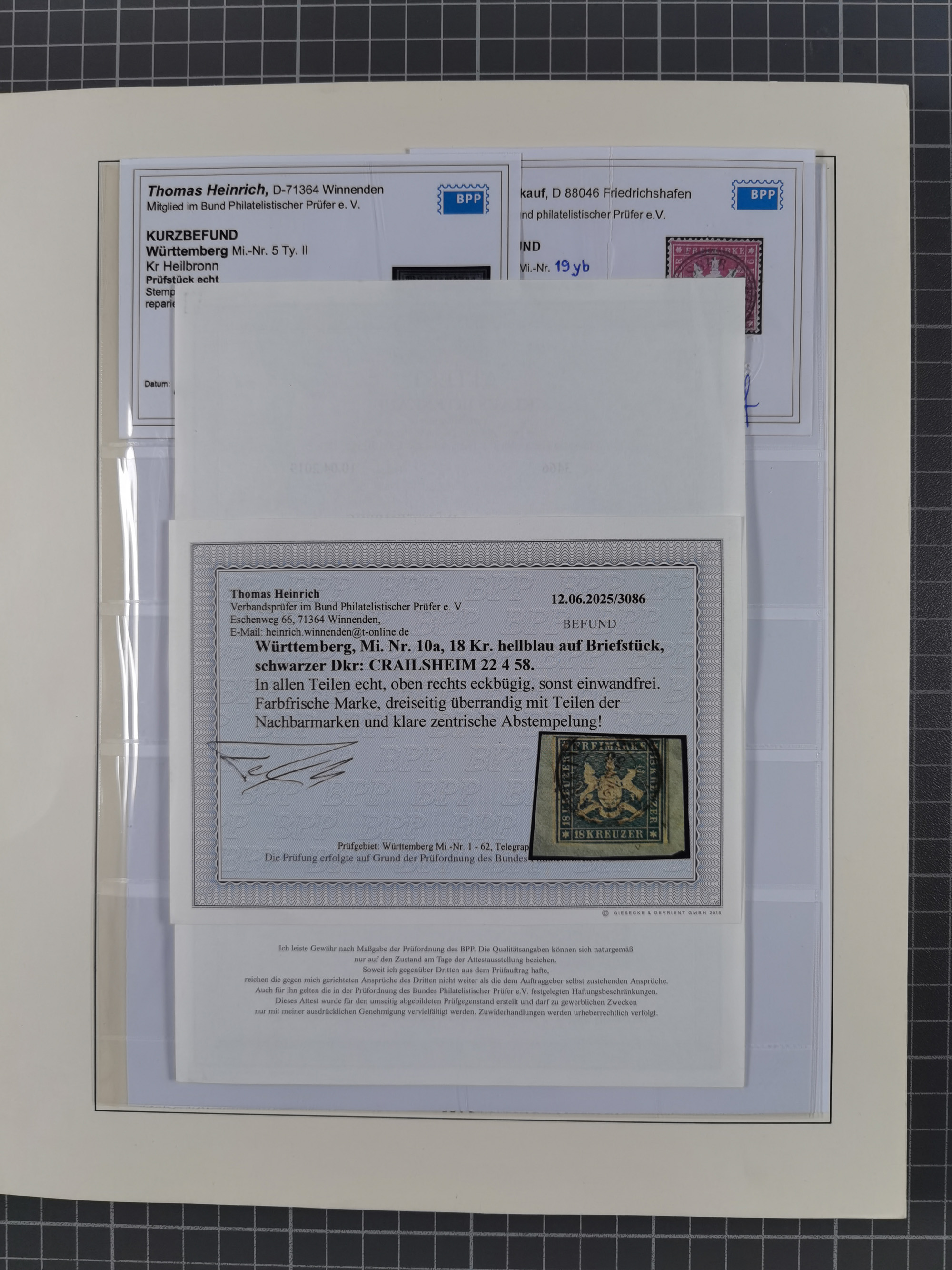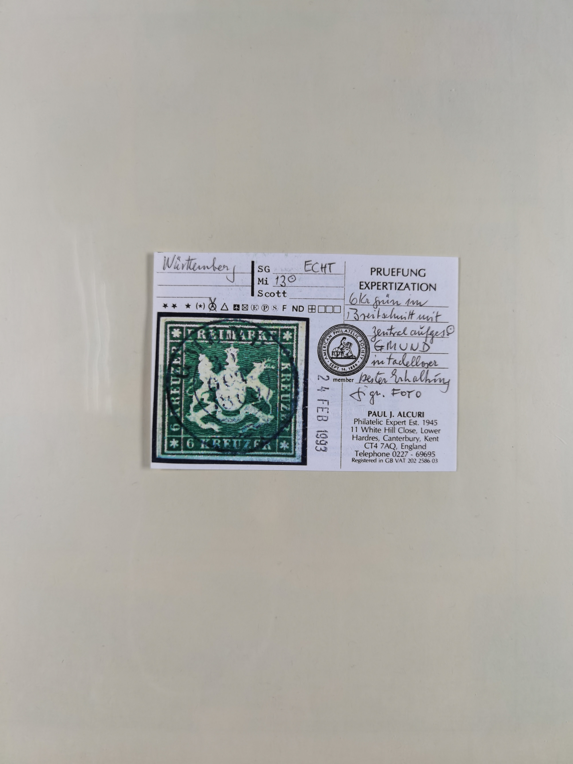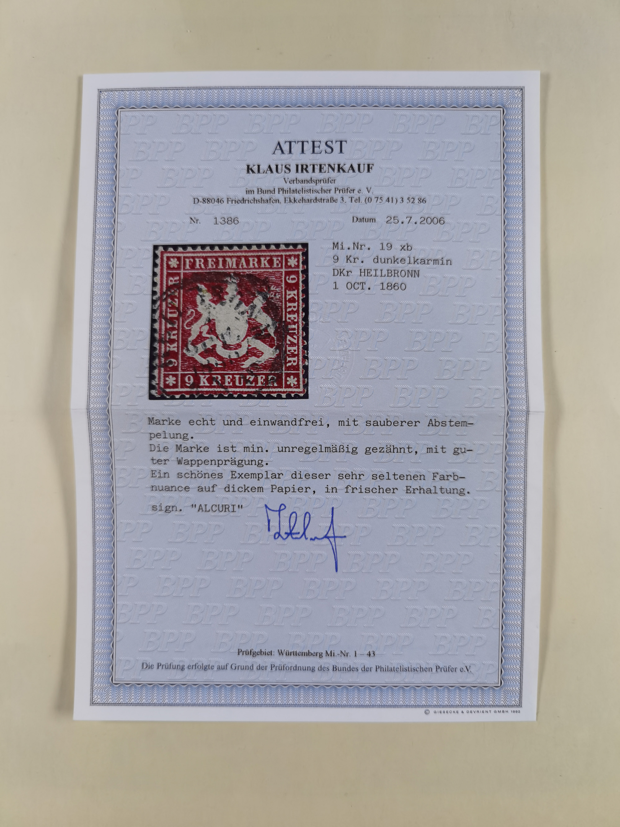 1851/1923, umfangreiche gestempelte Sammlung mit fast allen besseren Marken, vielen Farben und Besonderheiten. Dabei u.a. Mi.-Nr. Nr. 1c auf Briefstück (doppelt sign. Heinrich BPP), Mi.-Nr. 5I (FA Thoma BPP), Mi.-Nr. 5II (FA Heinrich BPP), Mi.-Nr. 9b (FA Irtenkauf BPP), Mi.-Nr. 10a auf Briefstück (FA Heinrich BPP), Mi.-Nr. 14b (FA Irtenkauf BPP), Mi.-Nr. 15 (FA Irtenkauf BPP), Mi.-Nr. 19xb (FA Irtenkauf BPP), Mi-Nr. 24 (FA Irtenkauf BPP), Mi.-Nr. 31c (FA Irtenkauf BPP), Mi.-Nr. 42b mit glasklarem EKr. “LUDWIGSBURG” (sign. Pfenninger mit FA), Mi.-Nr. 188 (FA Winkler BPP), Mi.-Nr. 211 (FA Thoma BPP), Mi.-Nr. 231aa (FA Winkler BPP) und Mi.-Nr. 264d (FA Winkler BPP). Fast durchgehend in guter Erhaltung mit ausgesucht schönen Stempeln, bessere Marken alle signiert bzw. mit KB, FB und Fotoattesten. Eine besonders empfehlenswerte Sammlung