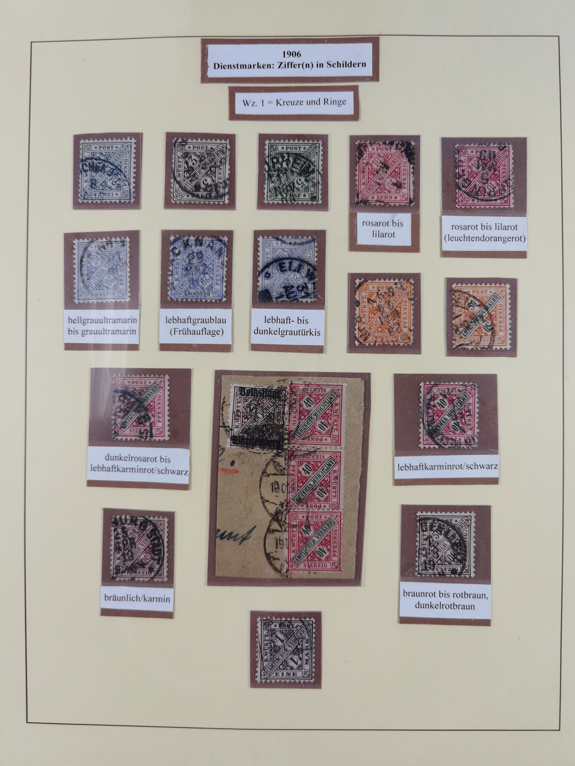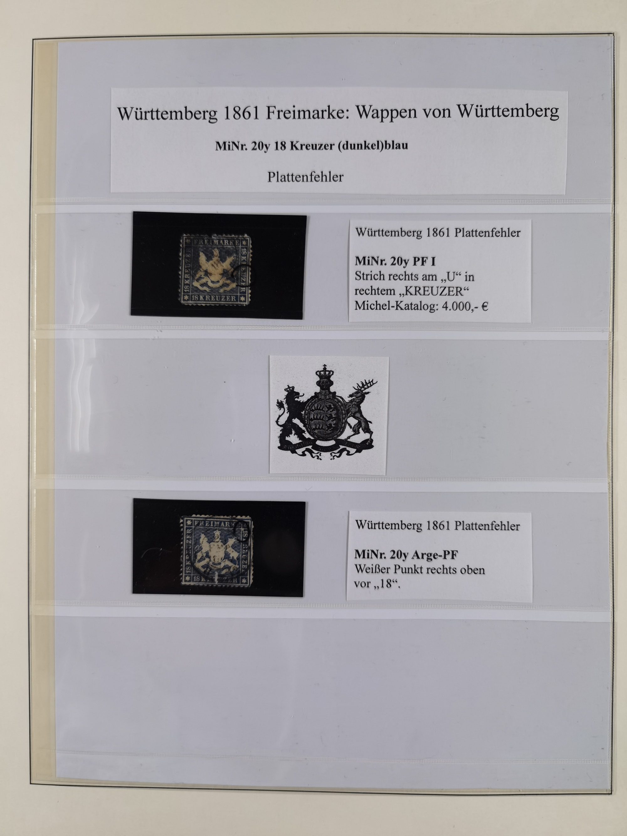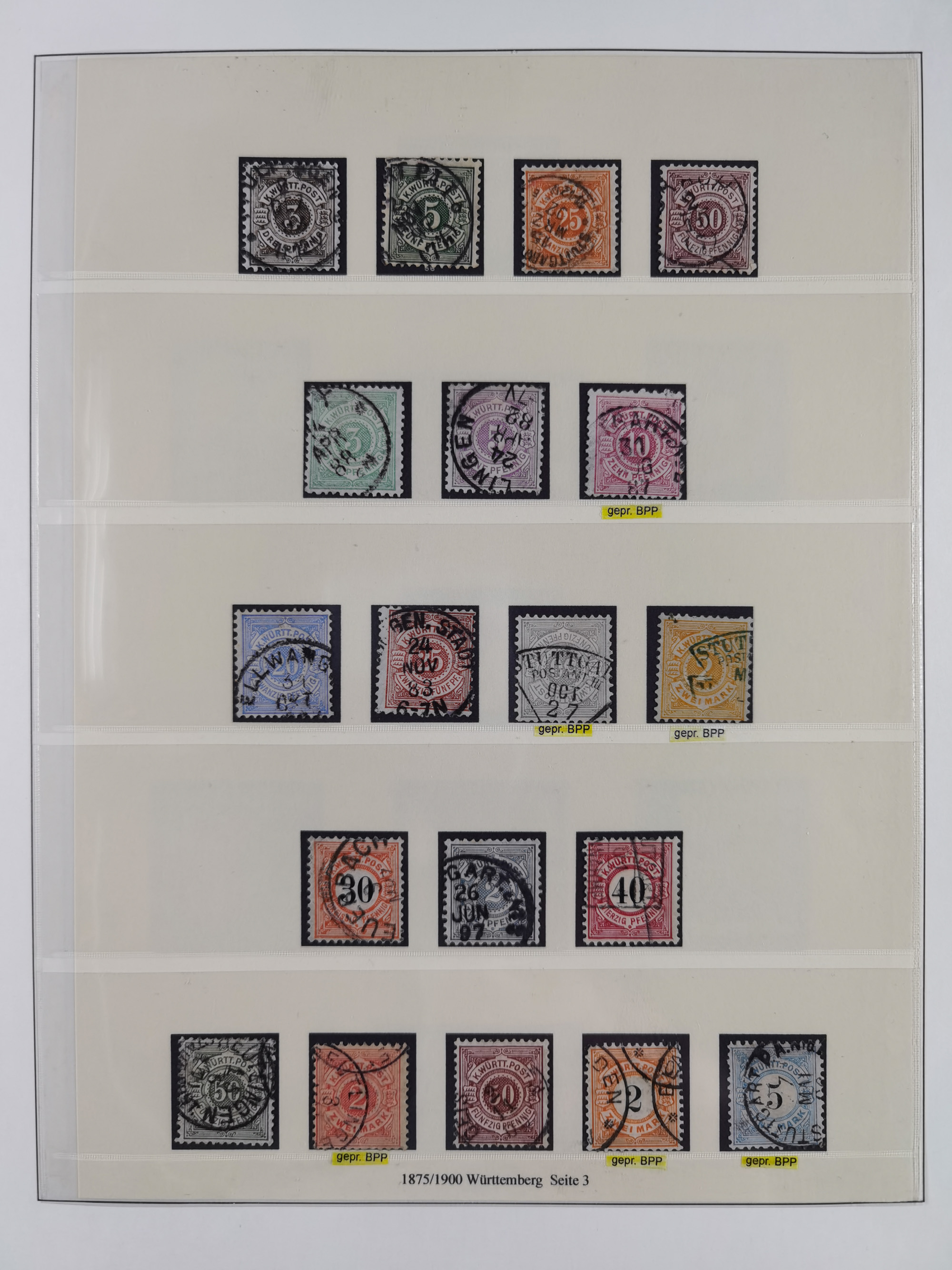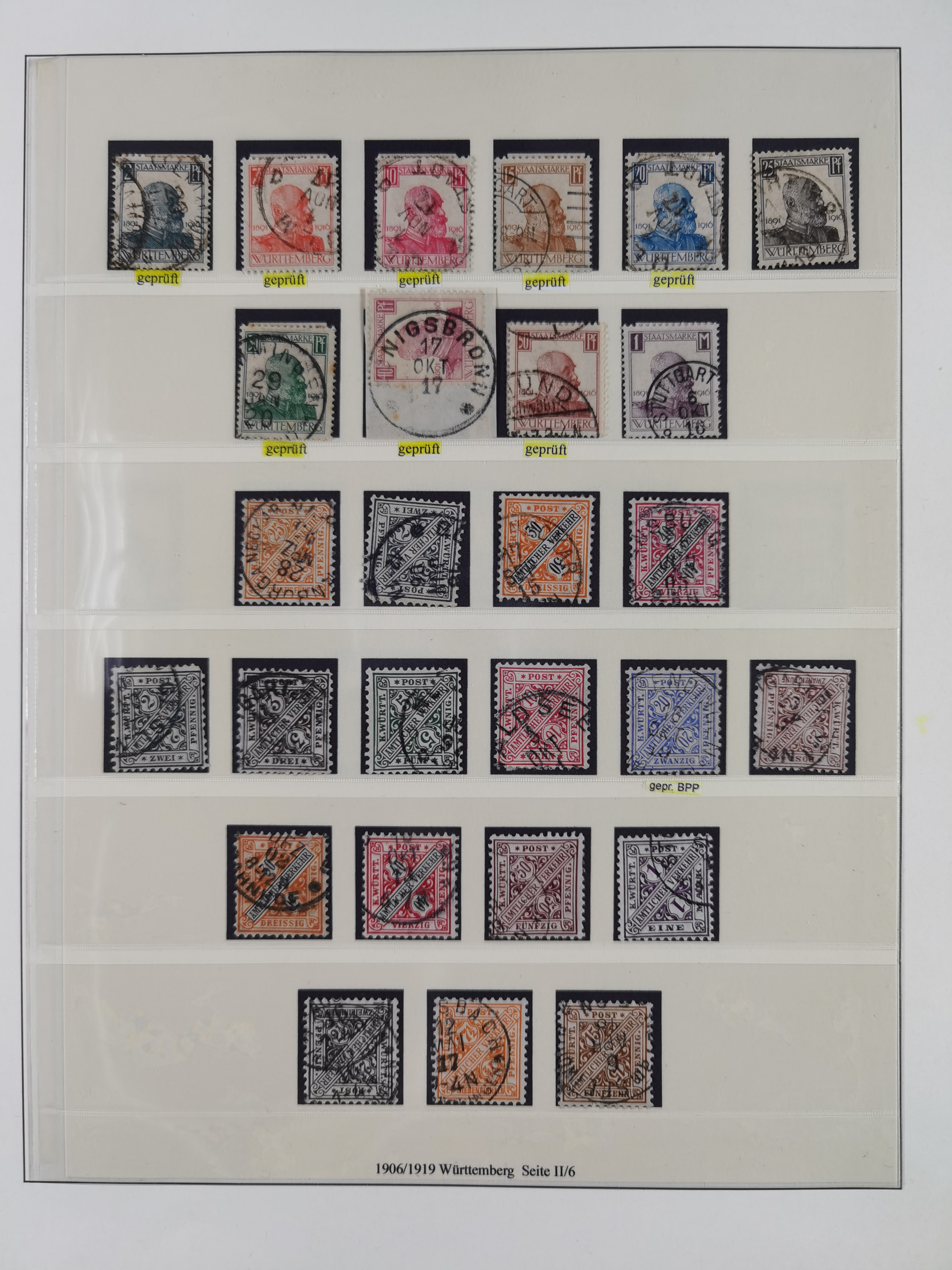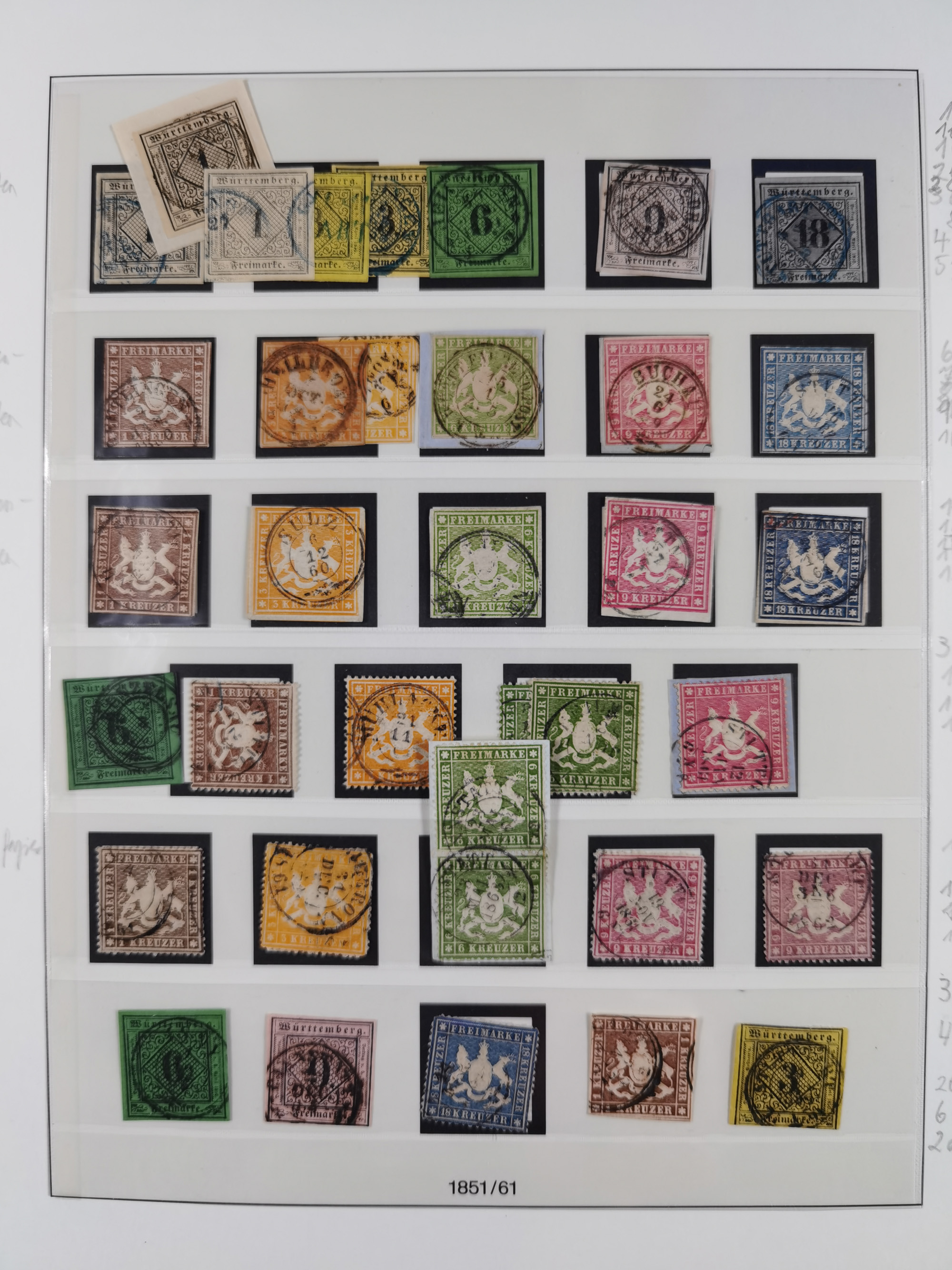 1851/1920, meist gestempelte Sammlung, dabei u.a. elf 18 Kreuzer Werte, teils mit seltenen Plattenfehlern, dabei u.a. Mi.-Nr. 5 gestempelt, 15 ohne Gummi, 8a PF II, 34 PF III, je gestempelt, 42a breitrandig mit handschriftl. Entwertung von Cannstatt, 42b sehr breitrandig mit blauem Fächer-Stempel, 50, 54 postfrisch, etc., Pfennig Teil oft sign. Infla Berlin, teils signiert bzw. 17 Kurz-/Befunde oder Fotoatteste BPP, teils fehlerhaft, meist aber gute Erhaltung