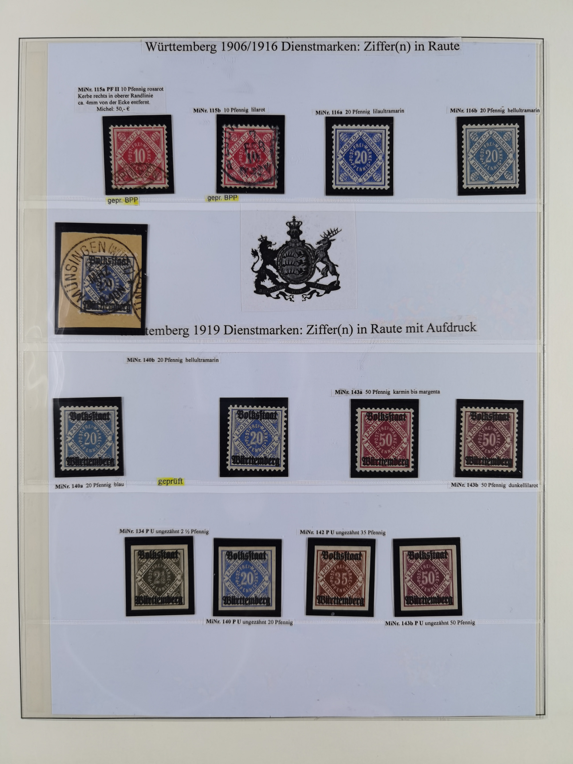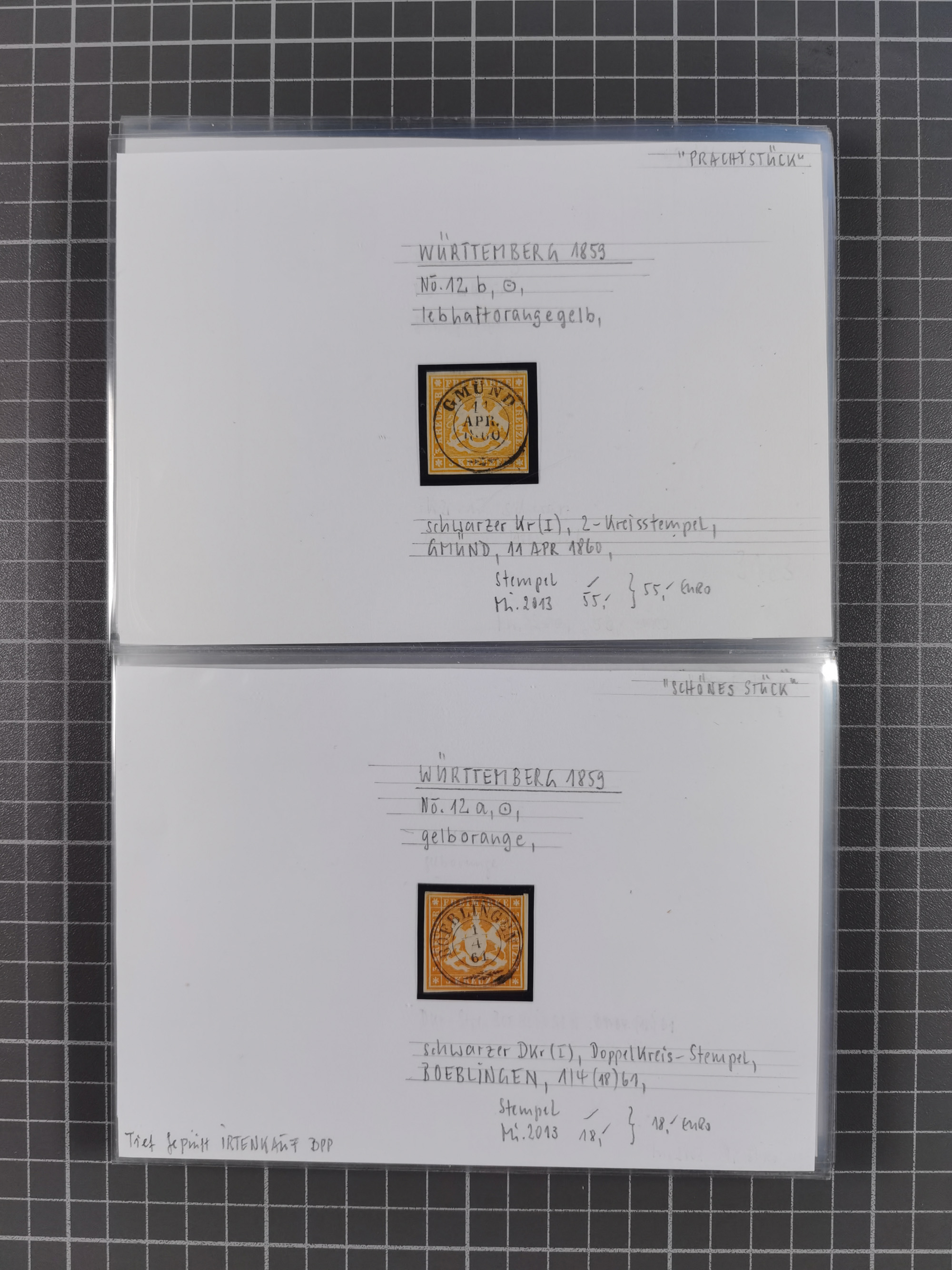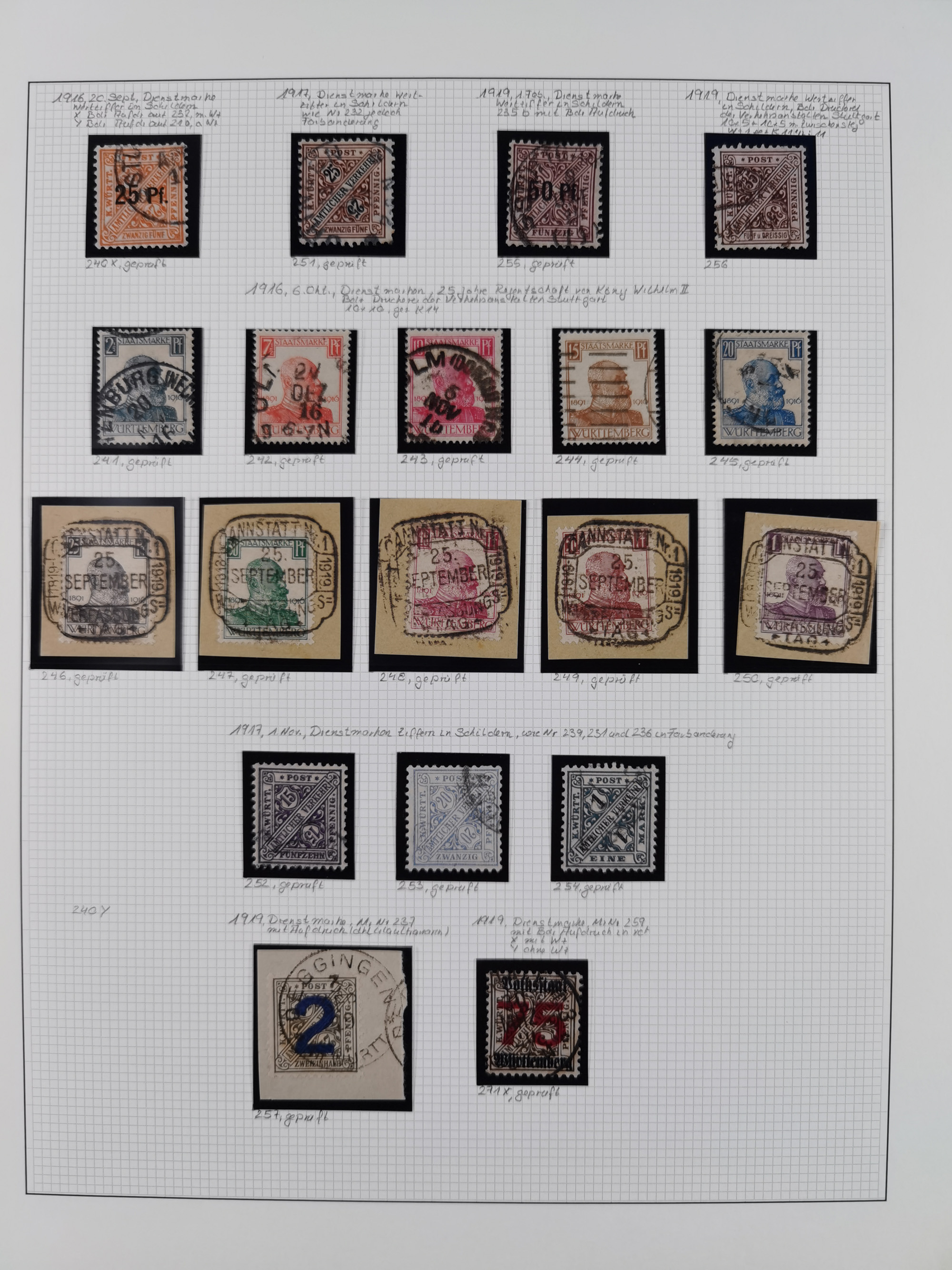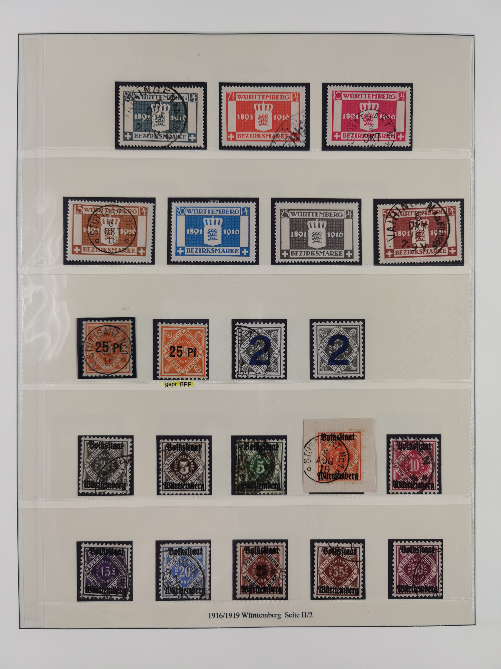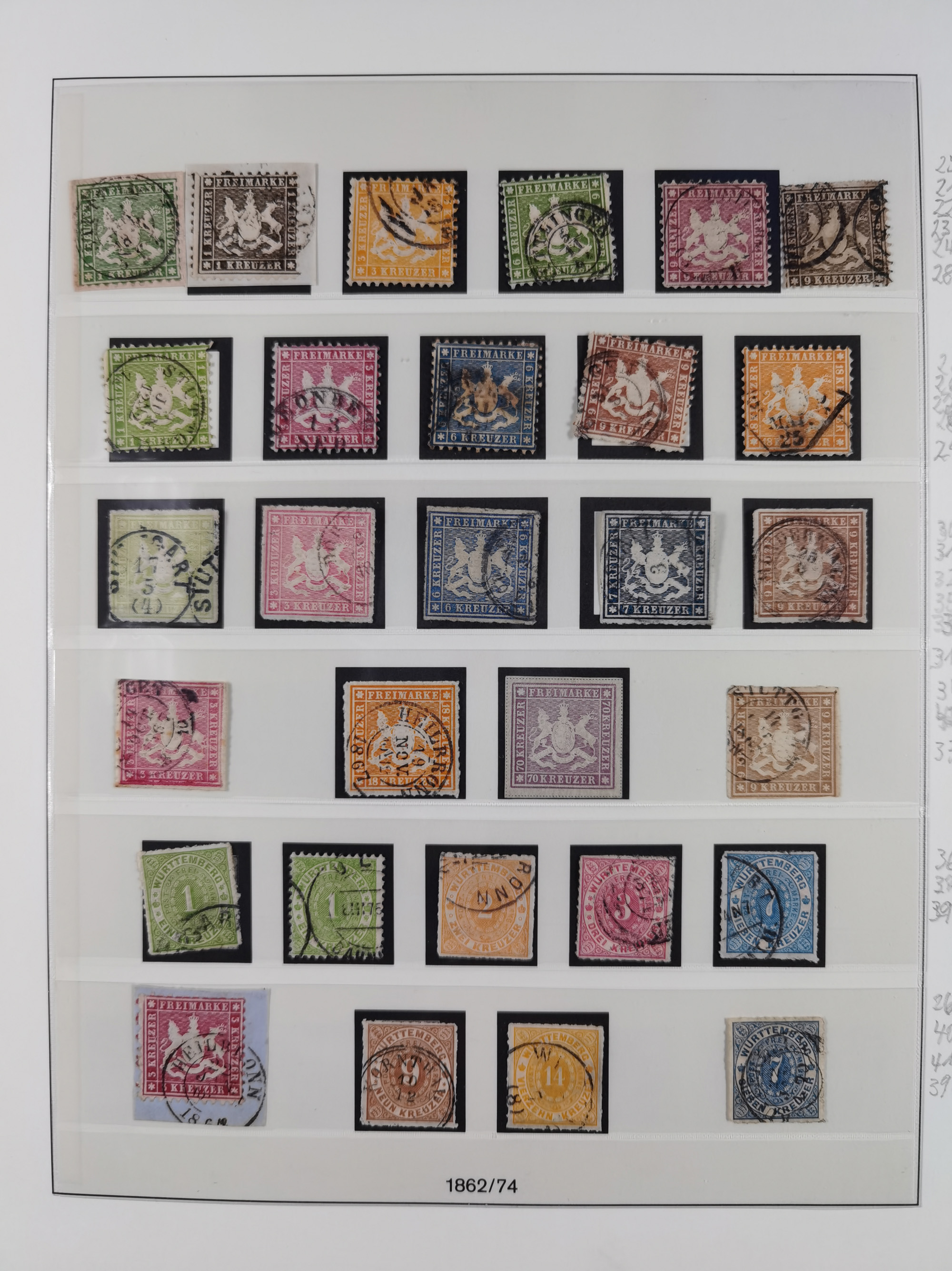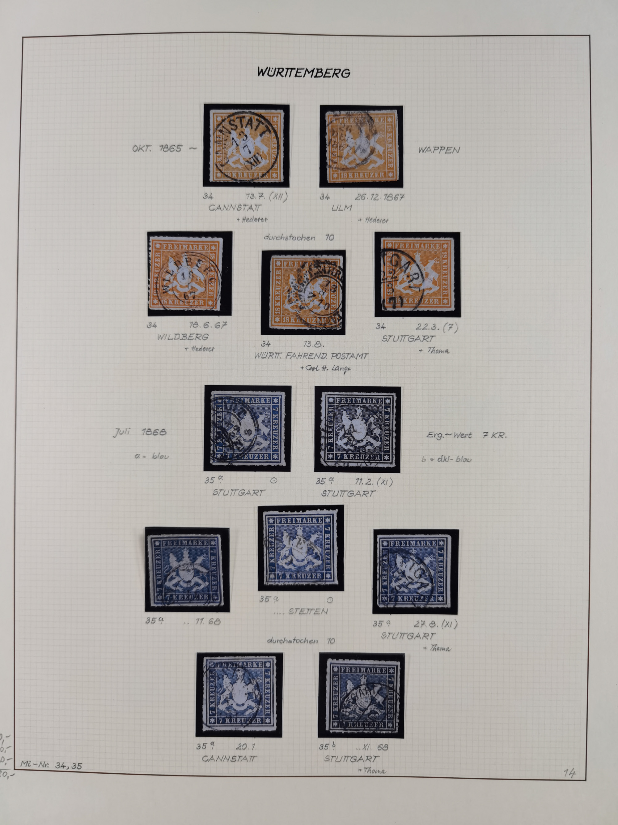 1851/1920, meist gestempelte Sammlung, dabei u.a. elf 18 Kreuzer Werte, teils mit seltenen Plattenfehlern, dabei u.a. Mi.-Nr. 5 gestempelt, 15 ohne Gummi, 8a PF II, 34 PF III, je gestempelt, 42a breitrandig mit handschriftl. Entwertung von Cannstatt, 42b sehr breitrandig mit blauem Fächer-Stempel, 50, 54 postfrisch, etc., Pfennig Teil oft sign. Infla Berlin, teils signiert bzw. 17 Kurz-/Befunde oder Fotoatteste BPP, teils fehlerhaft, meist aber gute Erhaltung