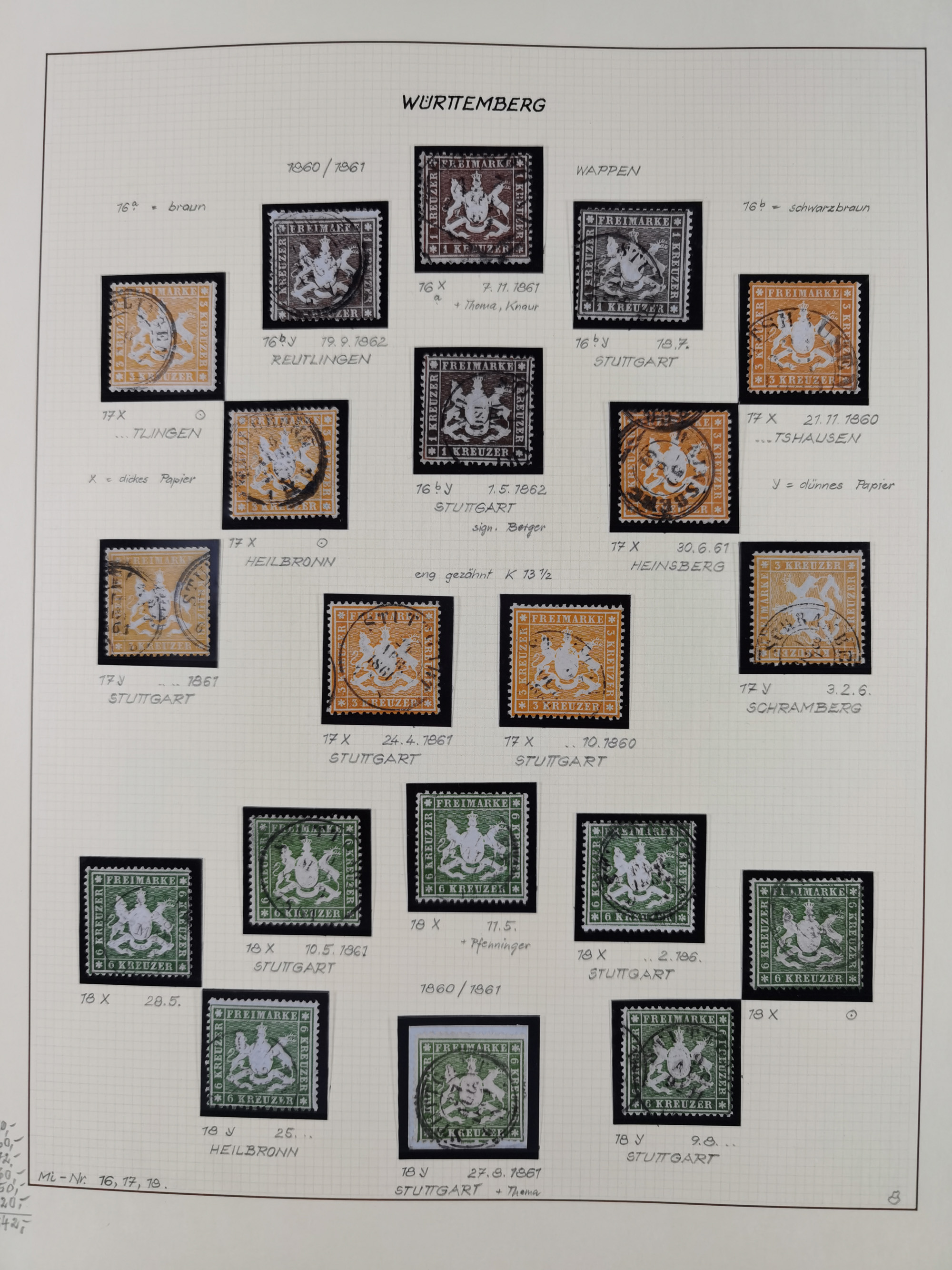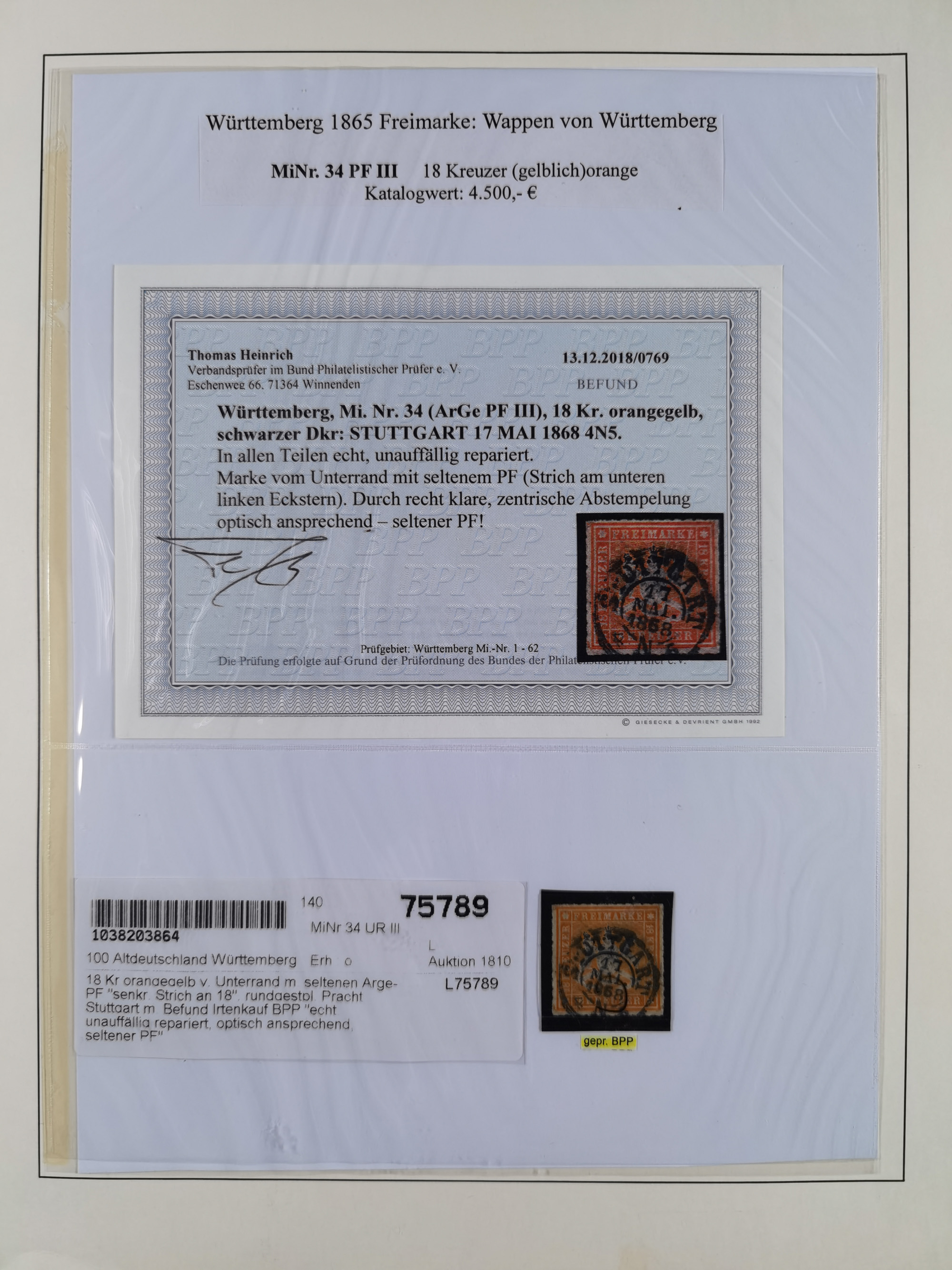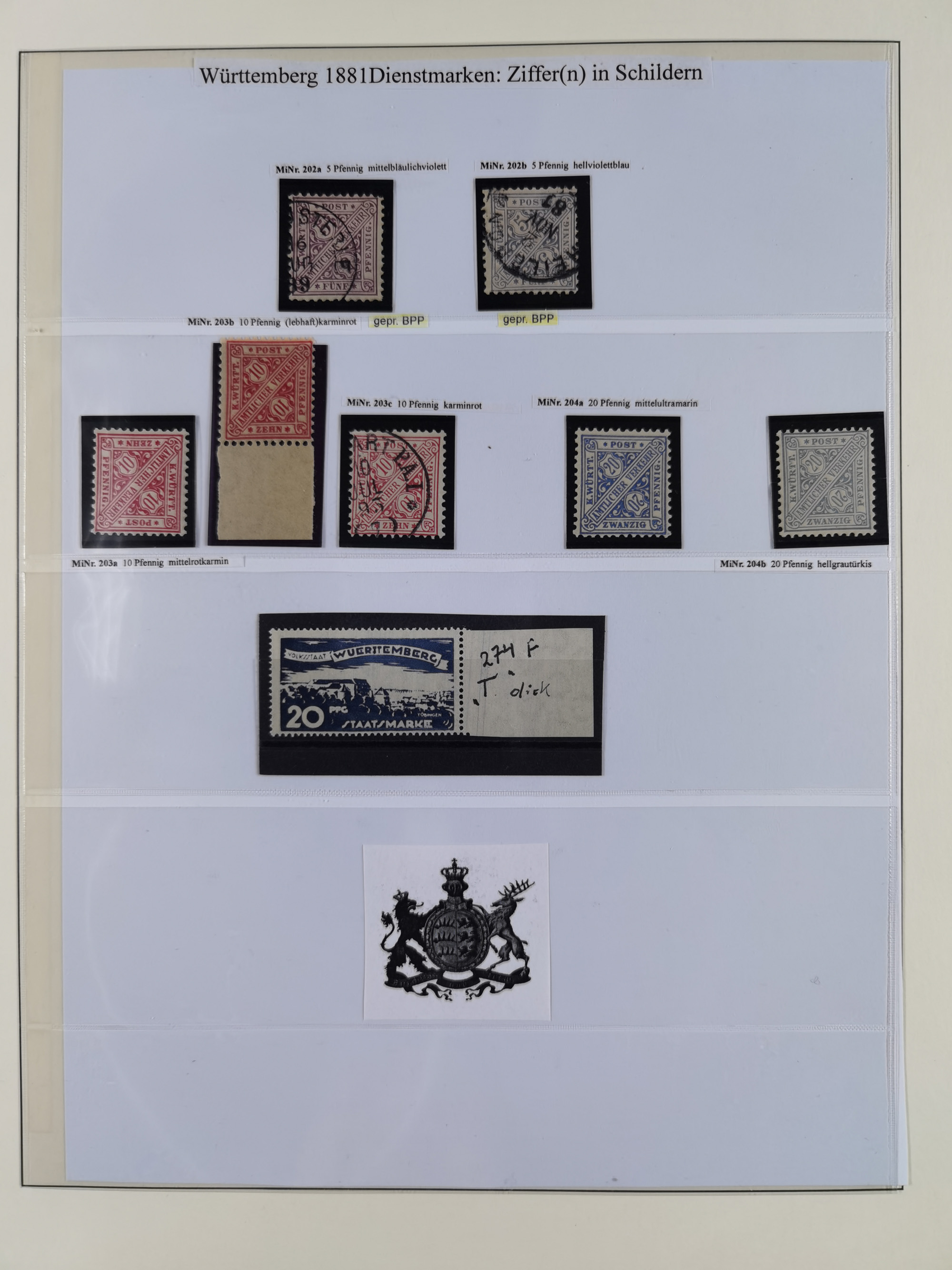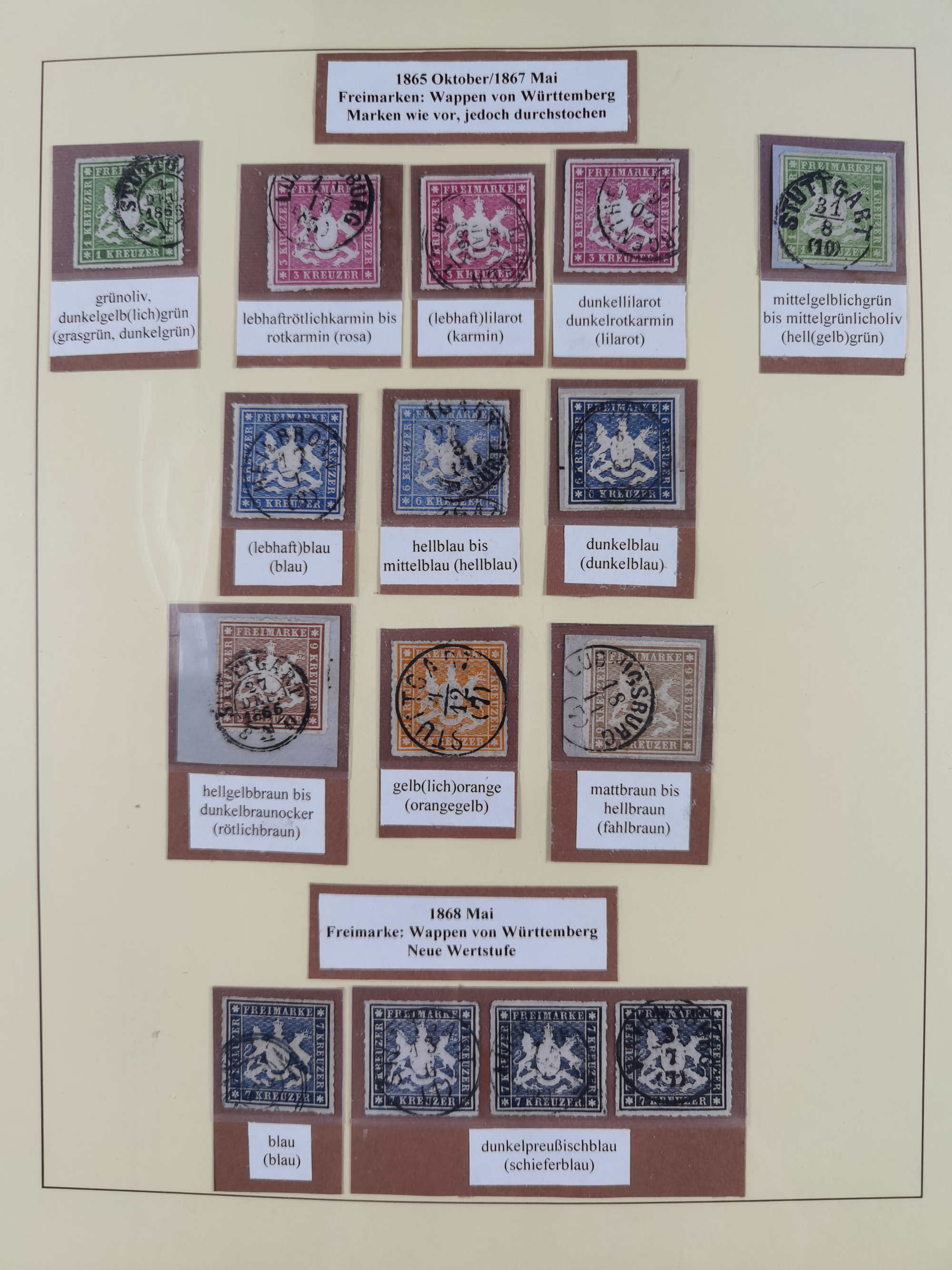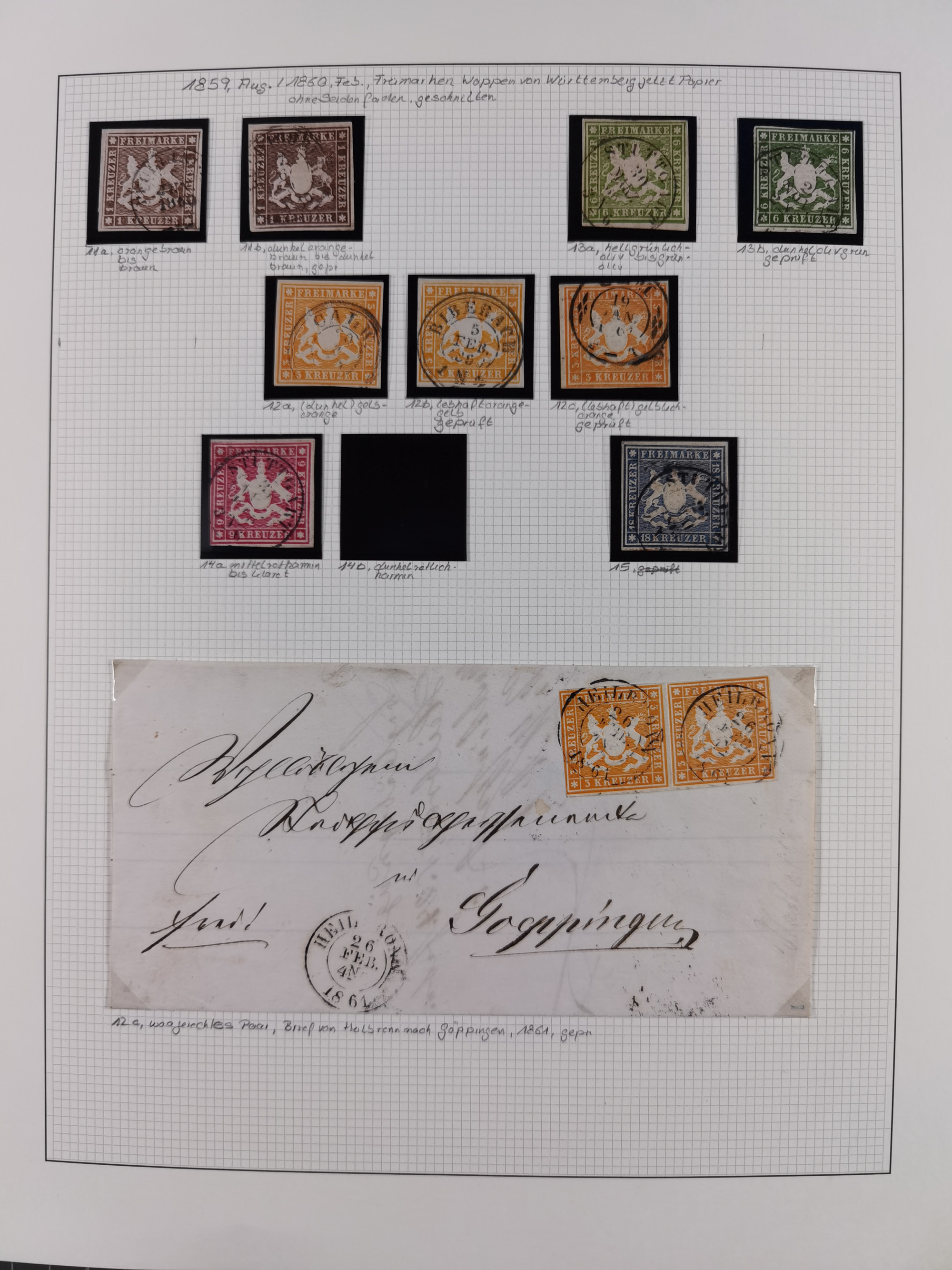 1851/1920, meist gestempelte Sammlung, dabei u.a. elf 18 Kreuzer Werte, teils mit seltenen Plattenfehlern, dabei u.a. Mi.-Nr. 5 gestempelt, 15 ohne Gummi, 8a PF II, 34 PF III, je gestempelt, 42a breitrandig mit handschriftl. Entwertung von Cannstatt, 42b sehr breitrandig mit blauem Fächer-Stempel, 50, 54 postfrisch, etc., Pfennig Teil oft sign. Infla Berlin, teils signiert bzw. 17 Kurz-/Befunde oder Fotoatteste BPP, teils fehlerhaft, meist aber gute Erhaltung