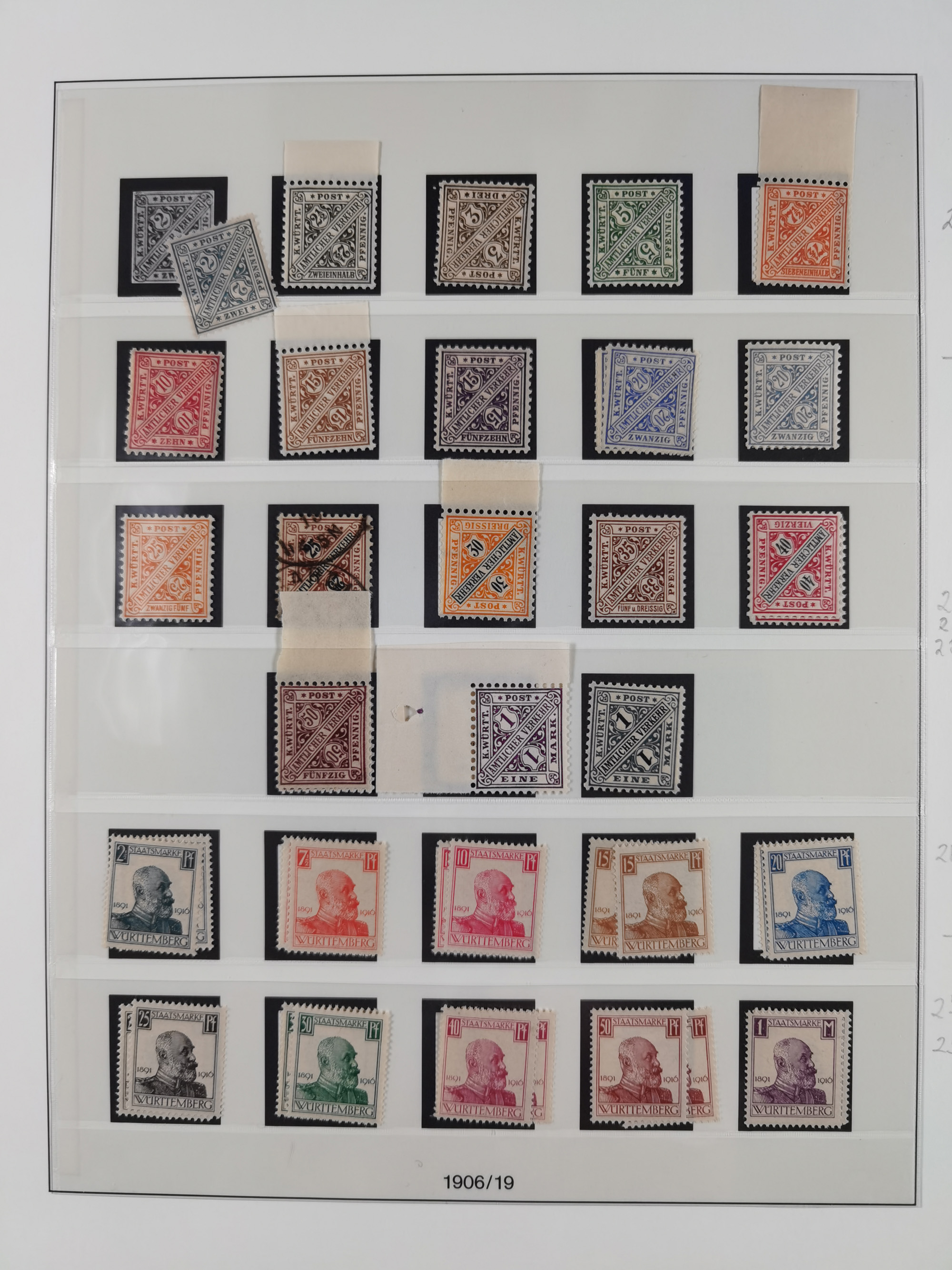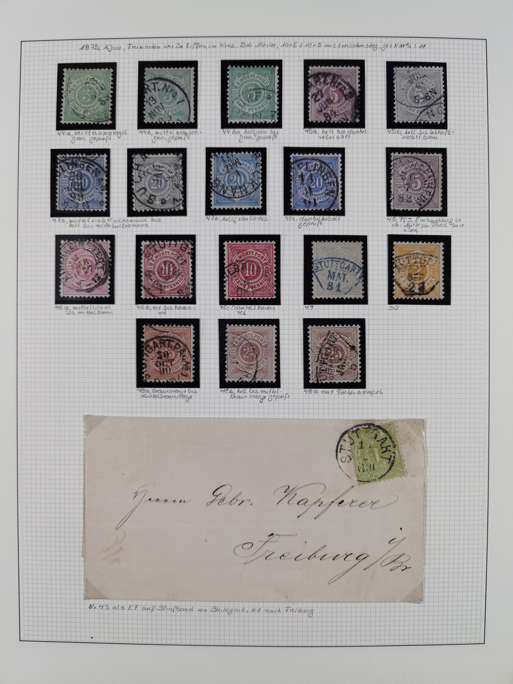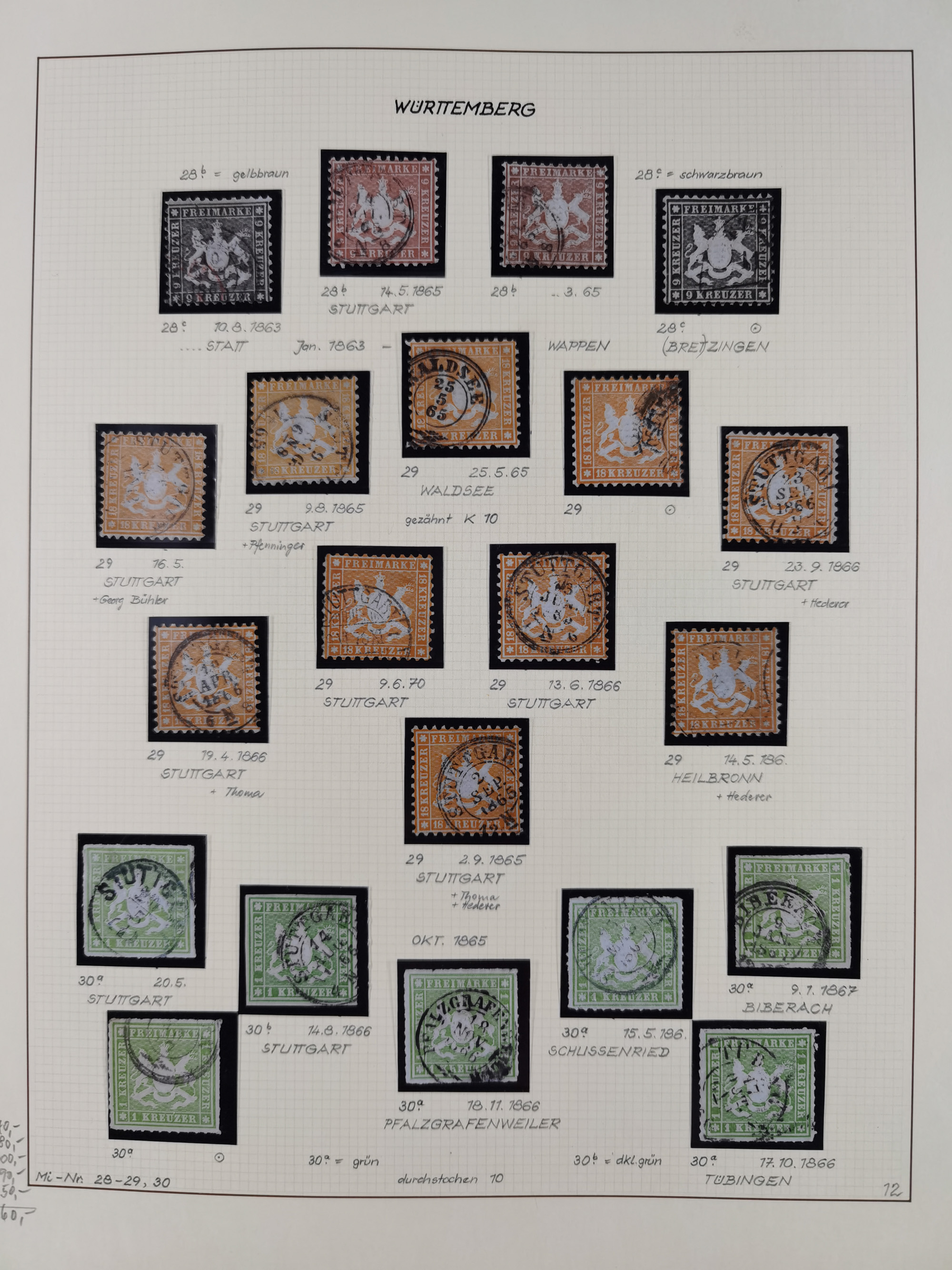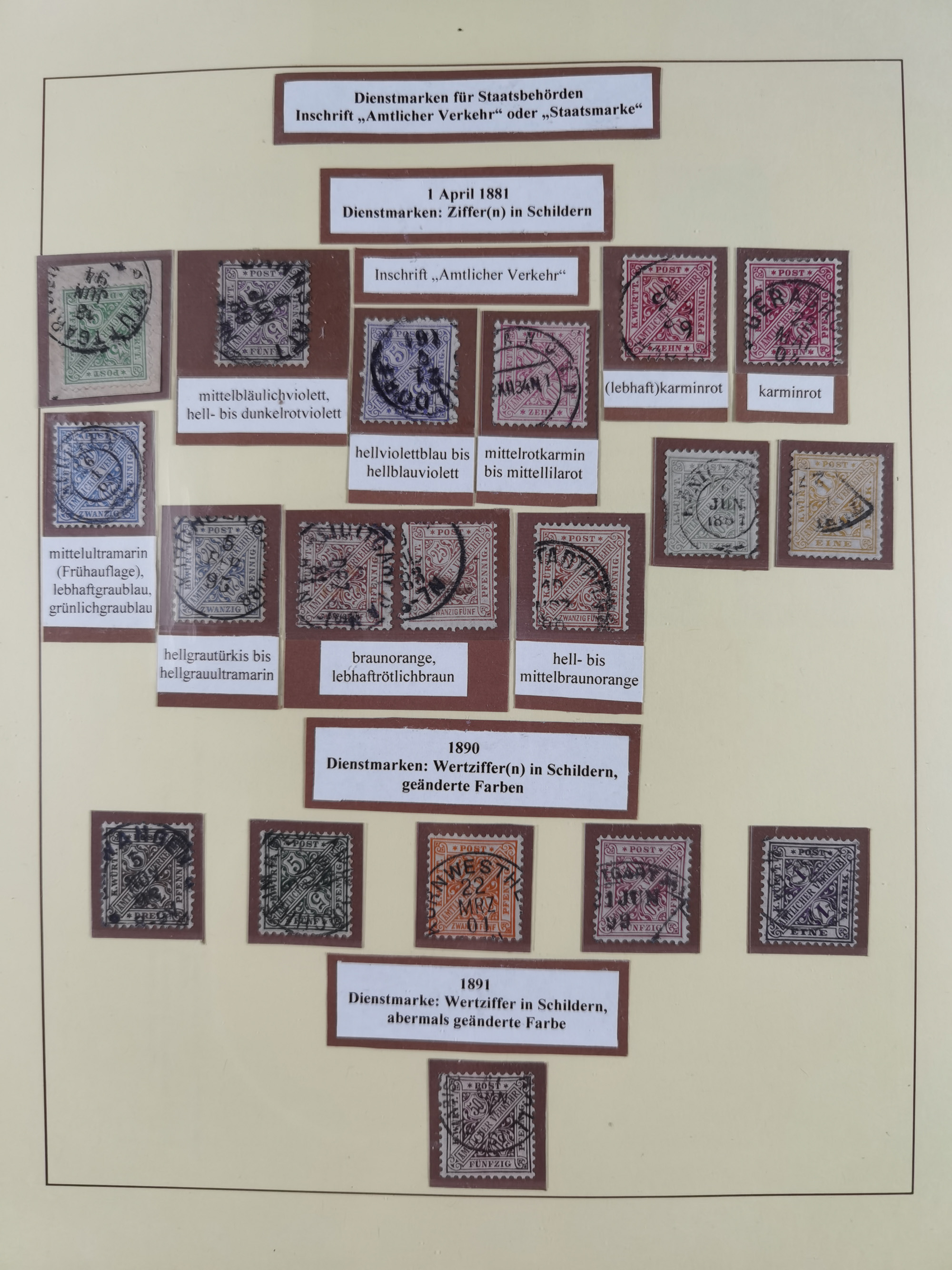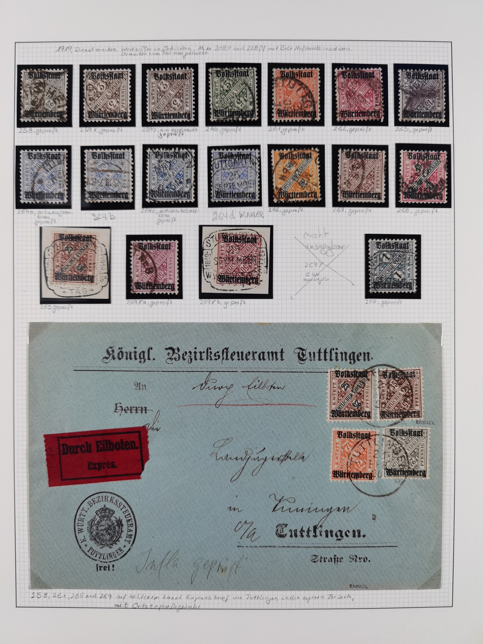 1851/1920, meist gestempelte Sammlung, dabei u.a. elf 18 Kreuzer Werte, teils mit seltenen Plattenfehlern, dabei u.a. Mi.-Nr. 5 gestempelt, 15 ohne Gummi, 8a PF II, 34 PF III, je gestempelt, 42a breitrandig mit handschriftl. Entwertung von Cannstatt, 42b sehr breitrandig mit blauem Fächer-Stempel, 50, 54 postfrisch, etc., Pfennig Teil oft sign. Infla Berlin, teils signiert bzw. 17 Kurz-/Befunde oder Fotoatteste BPP, teils fehlerhaft, meist aber gute Erhaltung