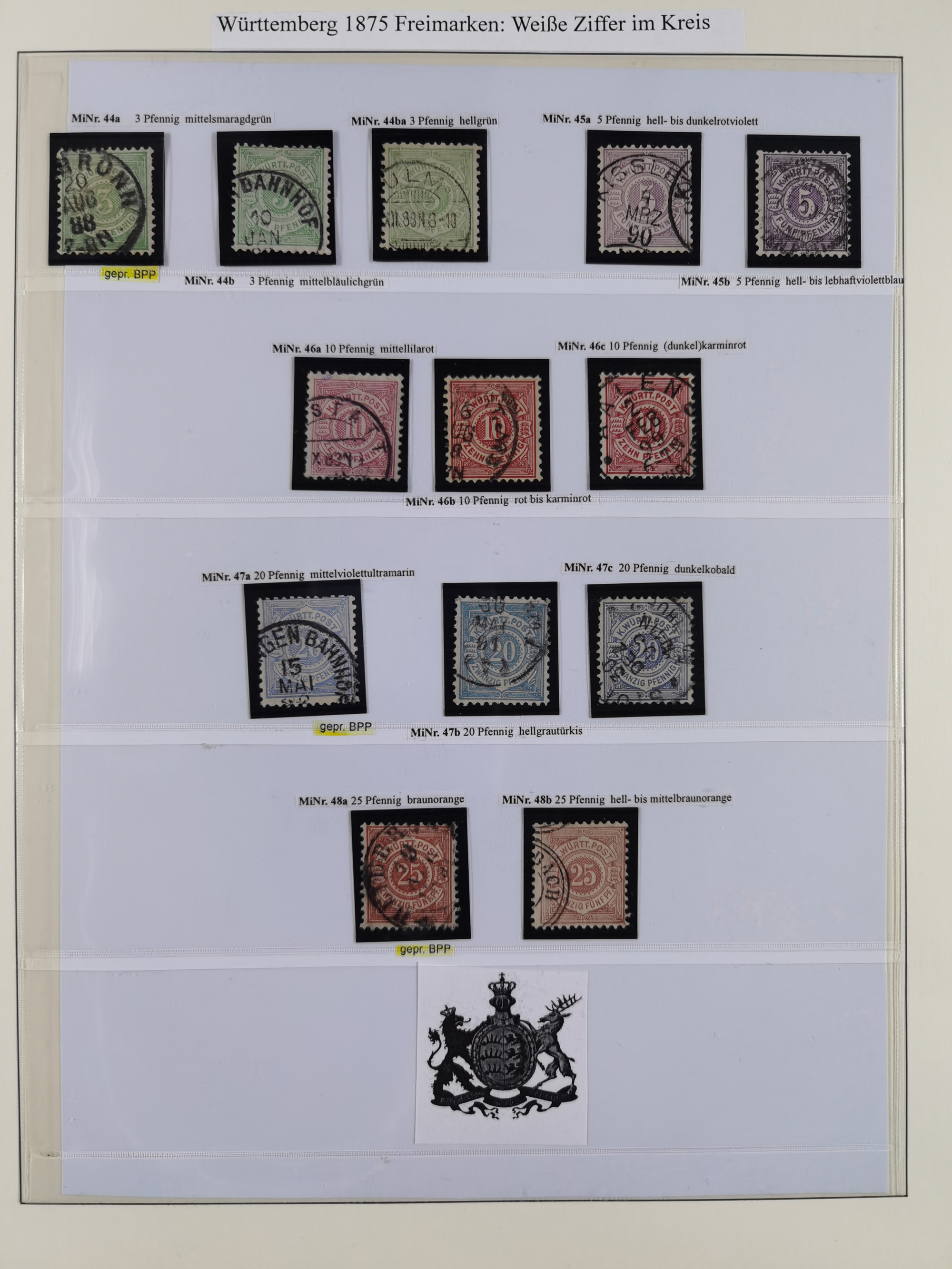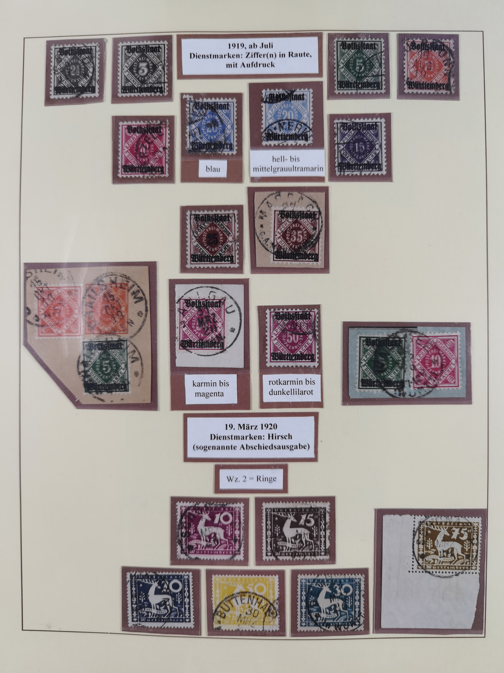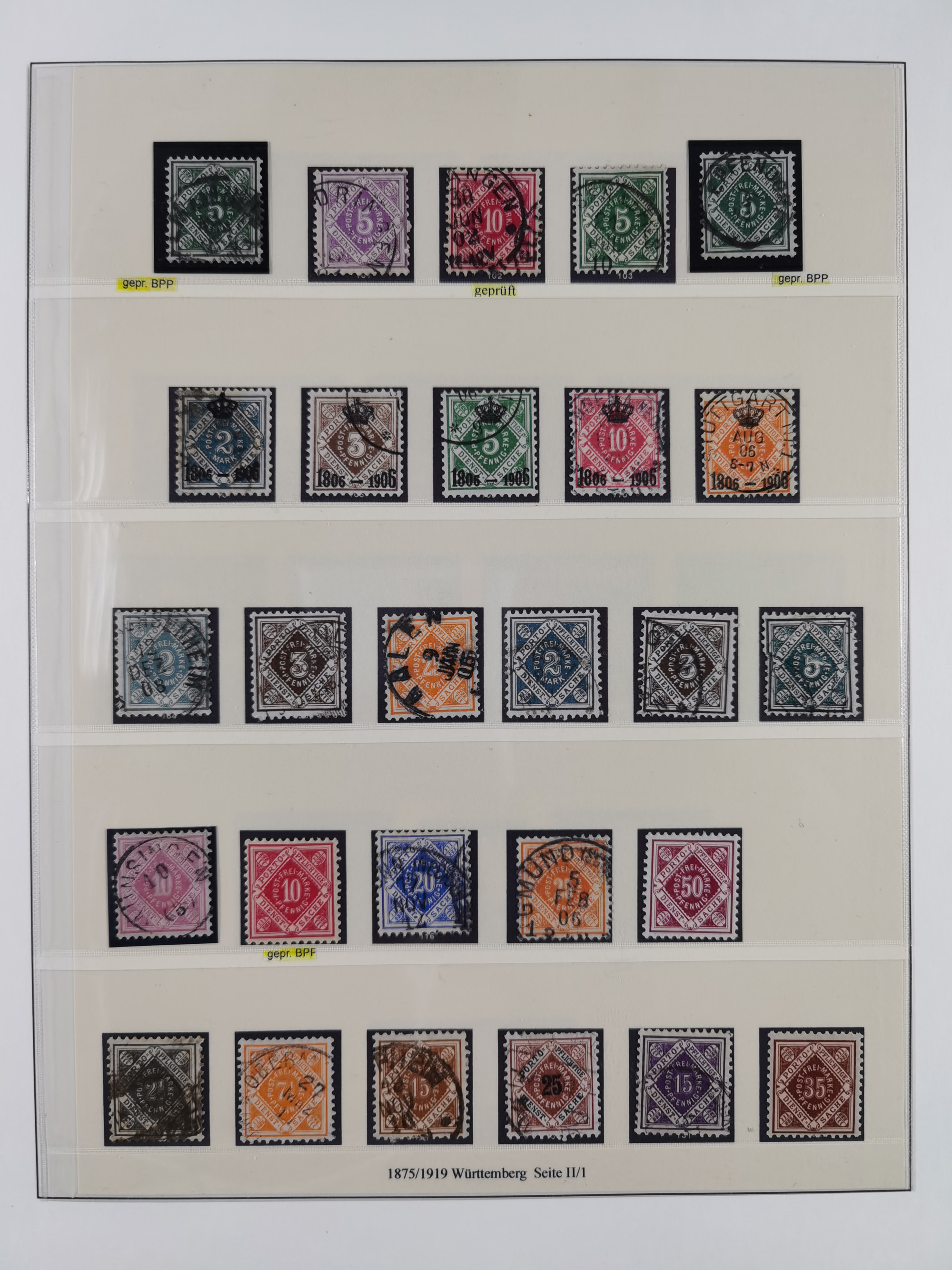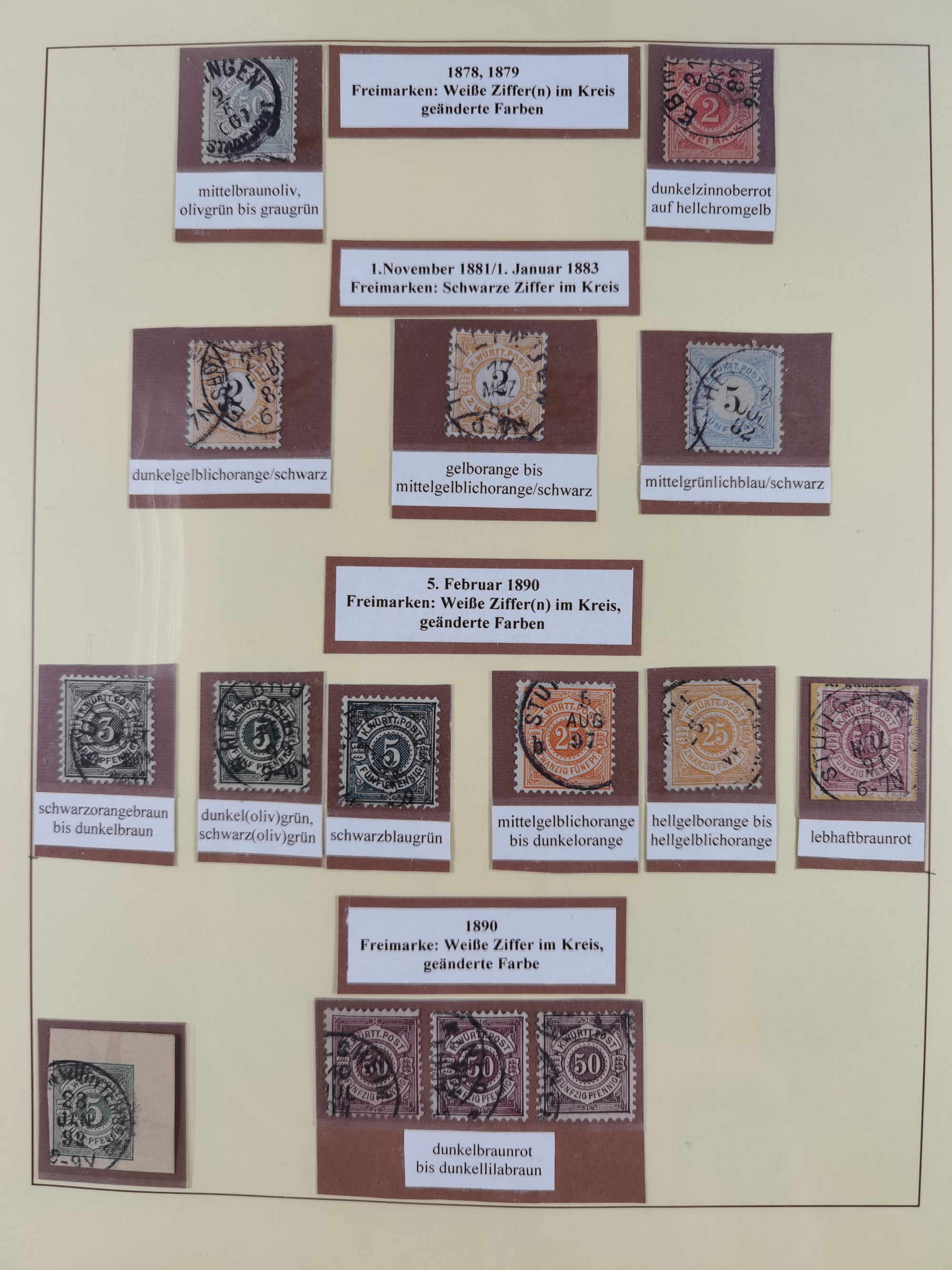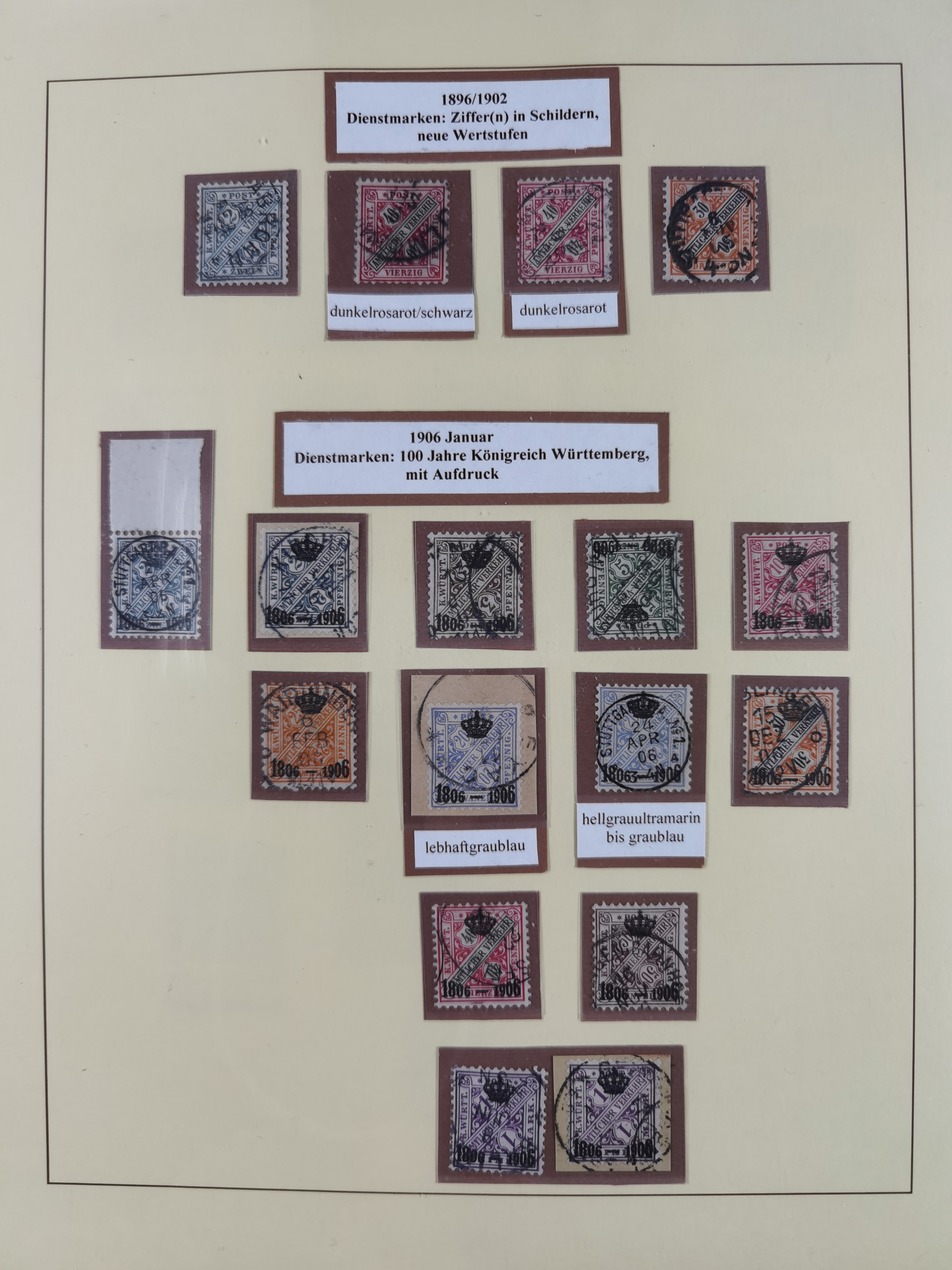 1851/1920, meist gestempelte Sammlung, dabei u.a. elf 18 Kreuzer Werte, teils mit seltenen Plattenfehlern, dabei u.a. Mi.-Nr. 5 gestempelt, 15 ohne Gummi, 8a PF II, 34 PF III, je gestempelt, 42a breitrandig mit handschriftl. Entwertung von Cannstatt, 42b sehr breitrandig mit blauem Fächer-Stempel, 50, 54 postfrisch, etc., Pfennig Teil oft sign. Infla Berlin, teils signiert bzw. 17 Kurz-/Befunde oder Fotoatteste BPP, teils fehlerhaft, meist aber gute Erhaltung