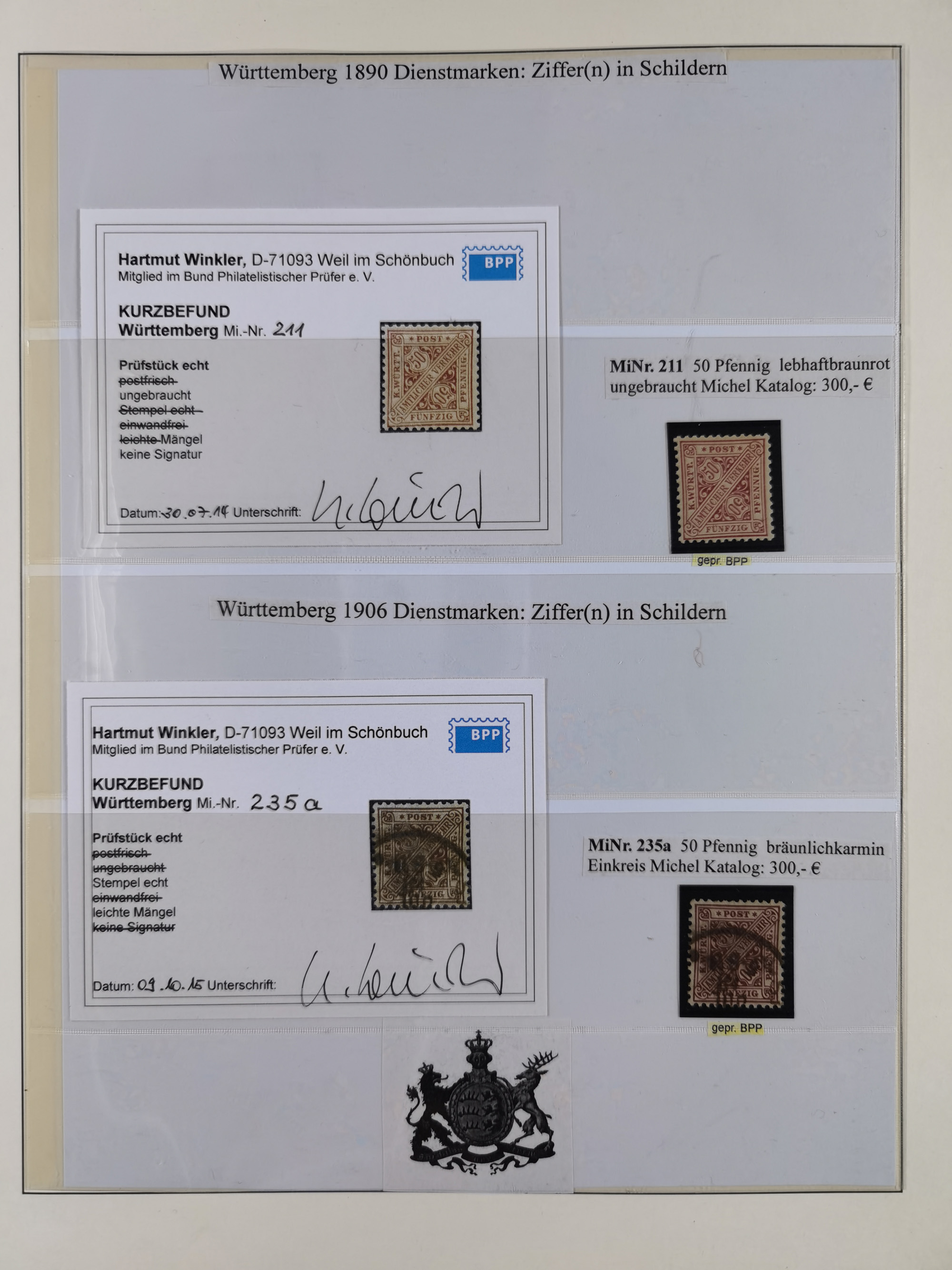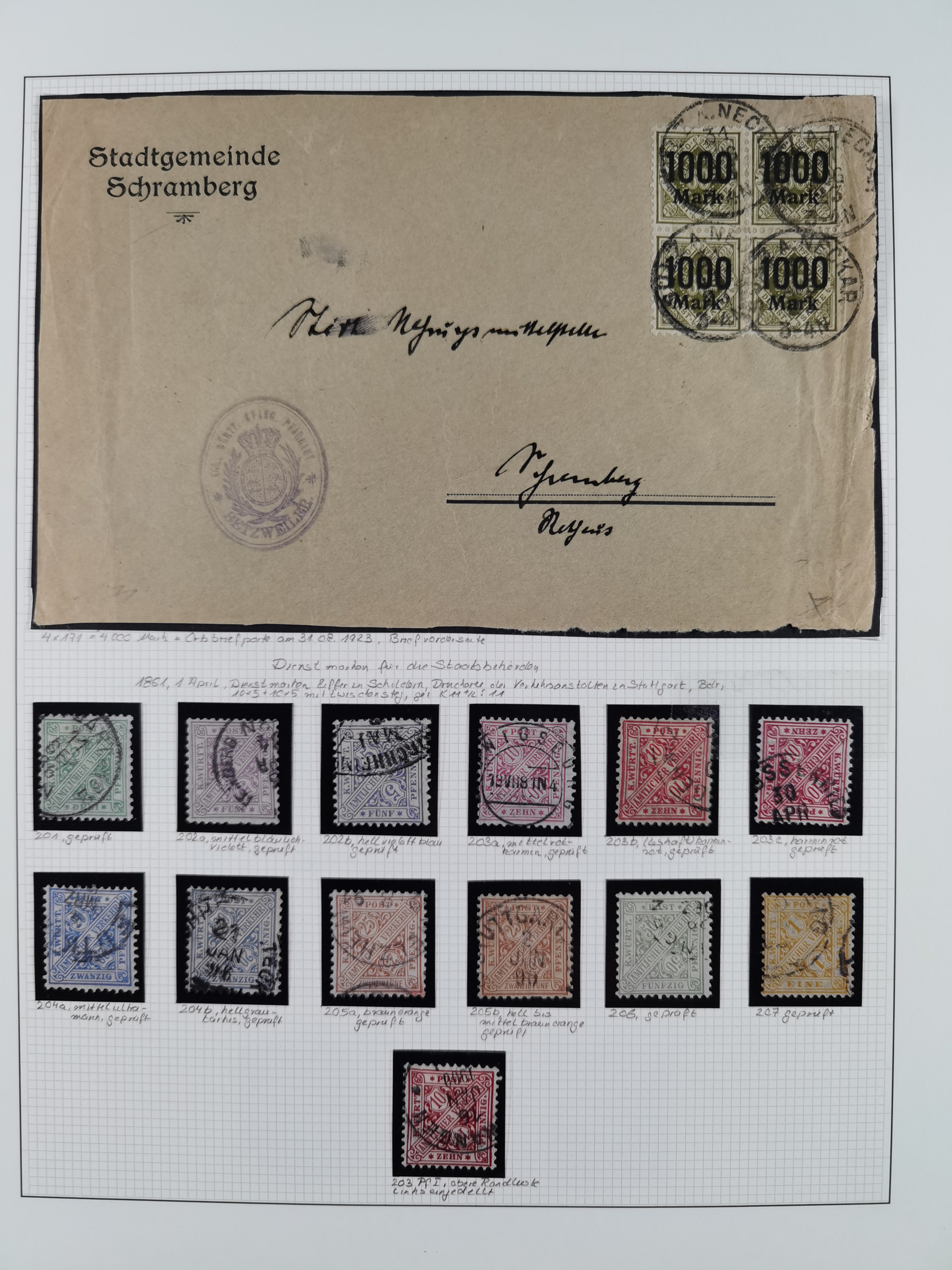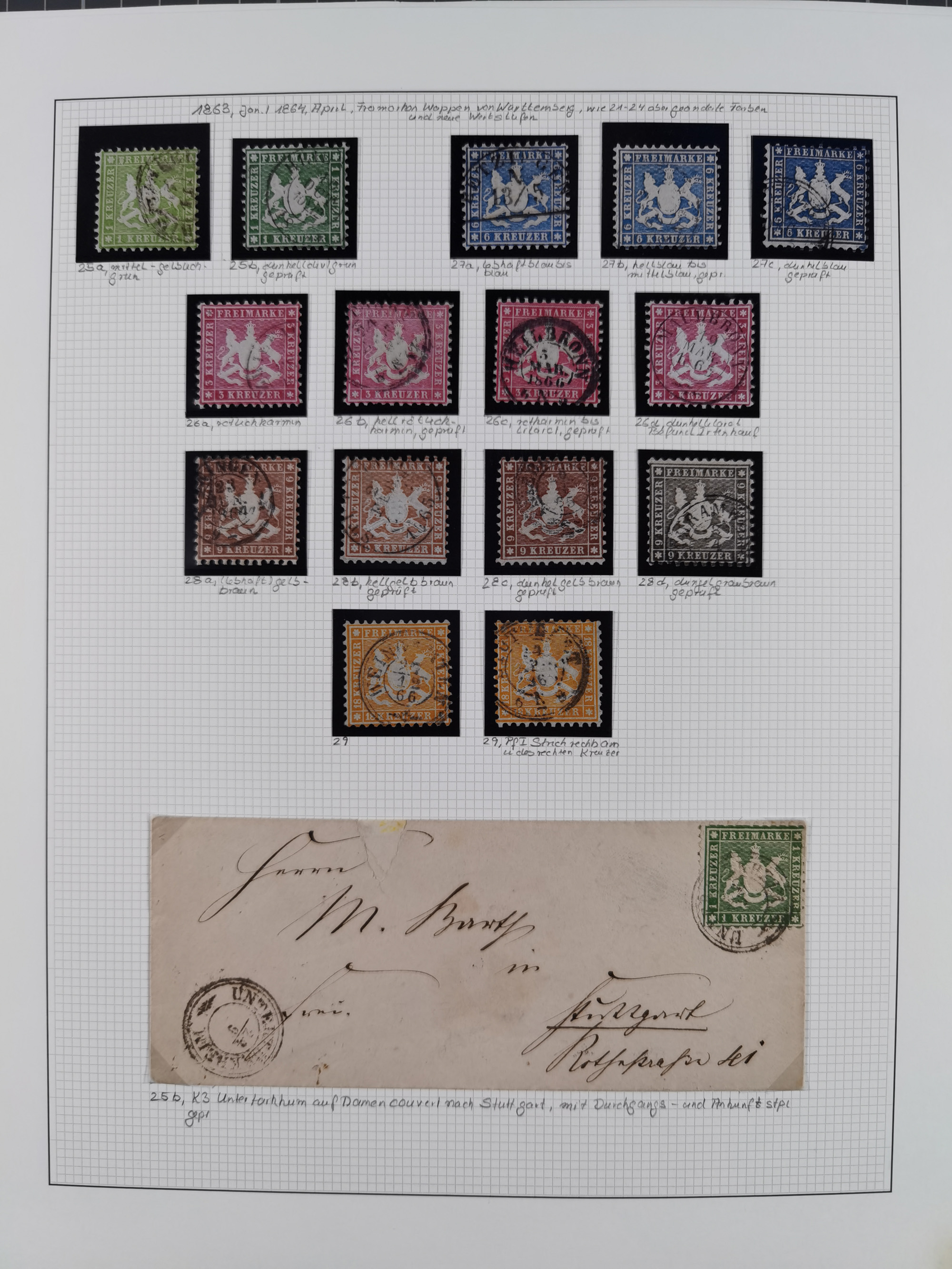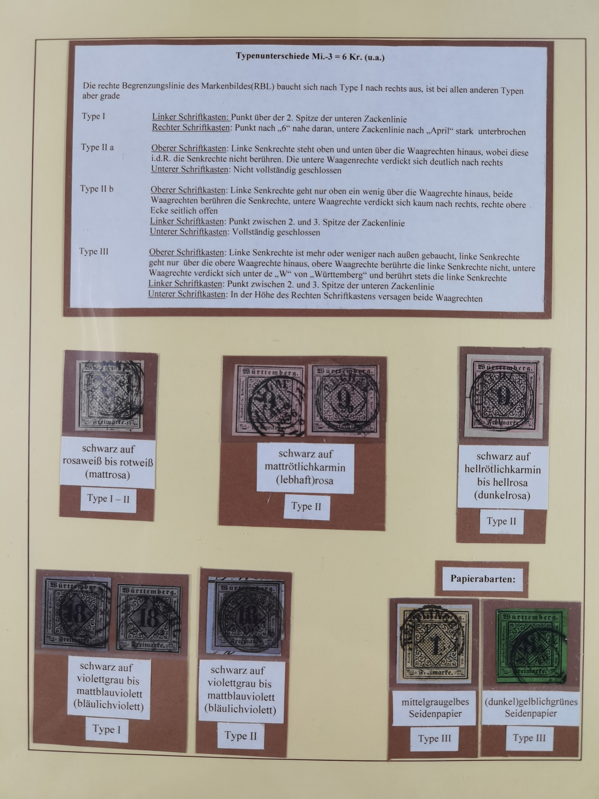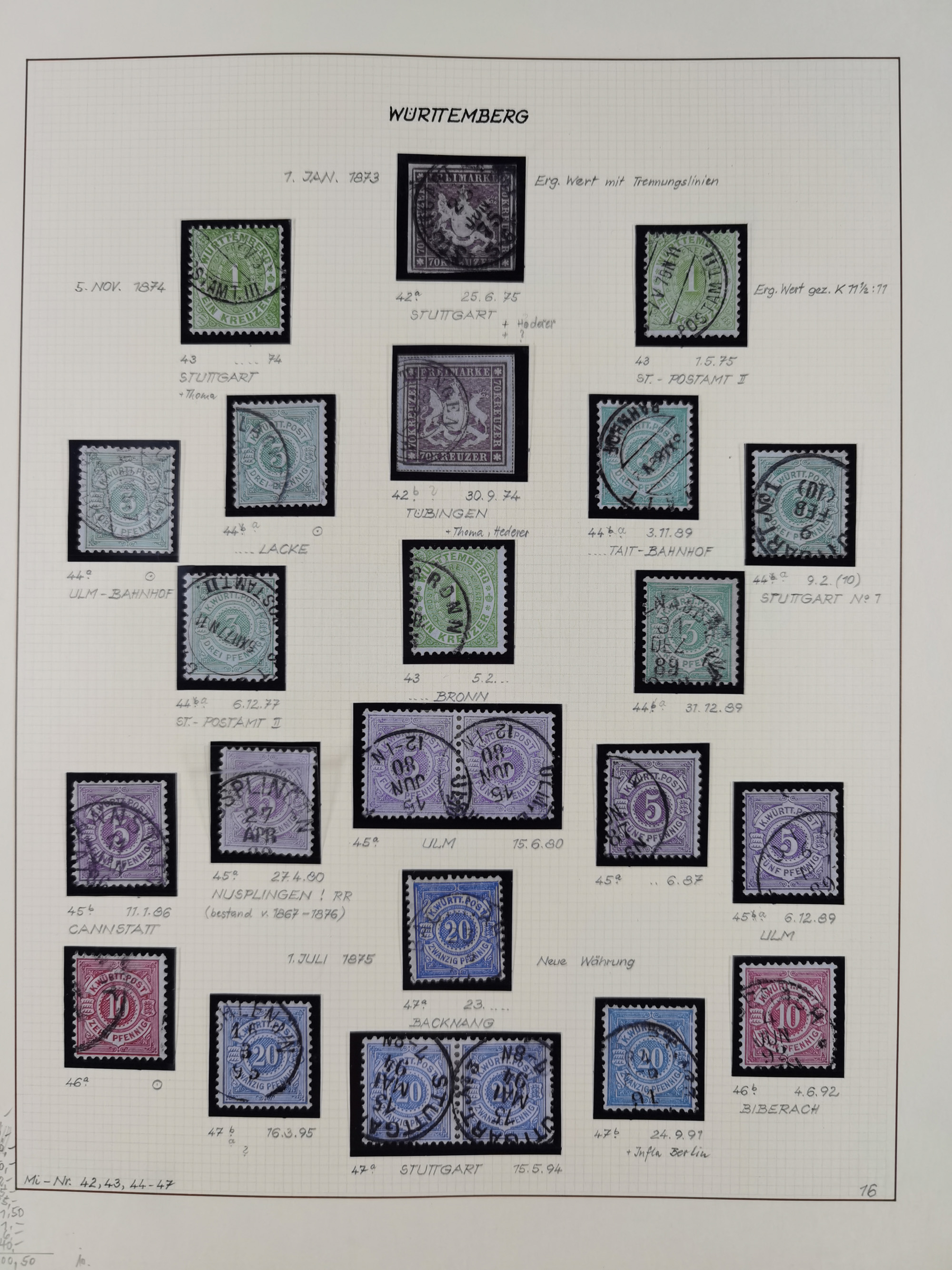1851/1920, meist gestempelte Sammlung, dabei u.a. elf 18 Kreuzer Werte, teils mit seltenen Plattenfehlern, dabei u.a. Mi.-Nr. 5 gestempelt, 15 ohne Gummi, 8a PF II, 34 PF III, je gestempelt, 42a breitrandig mit handschriftl. Entwertung von Cannstatt, 42b sehr breitrandig mit blauem Fächer-Stempel, 50, 54 postfrisch, etc., Pfennig Teil oft sign. Infla Berlin, teils signiert bzw. 17 Kurz-/Befunde oder Fotoatteste BPP, teils fehlerhaft, meist aber gute Erhaltung