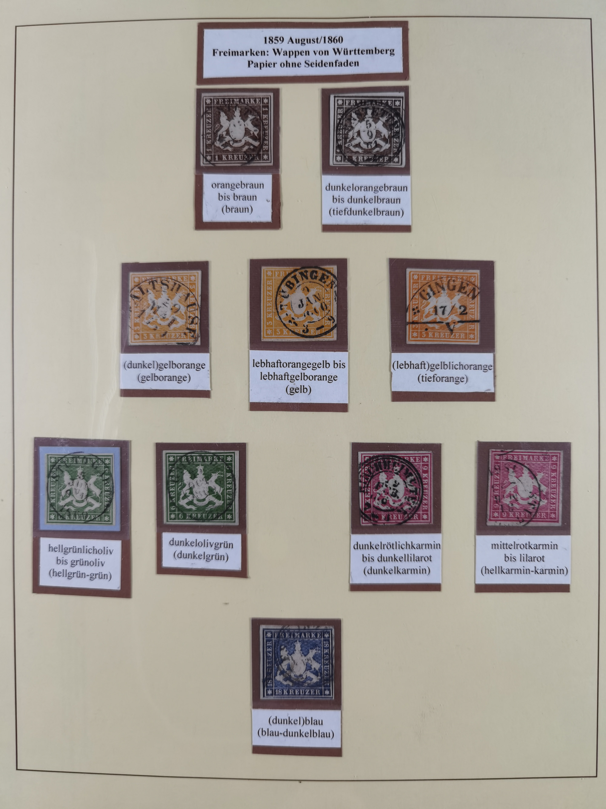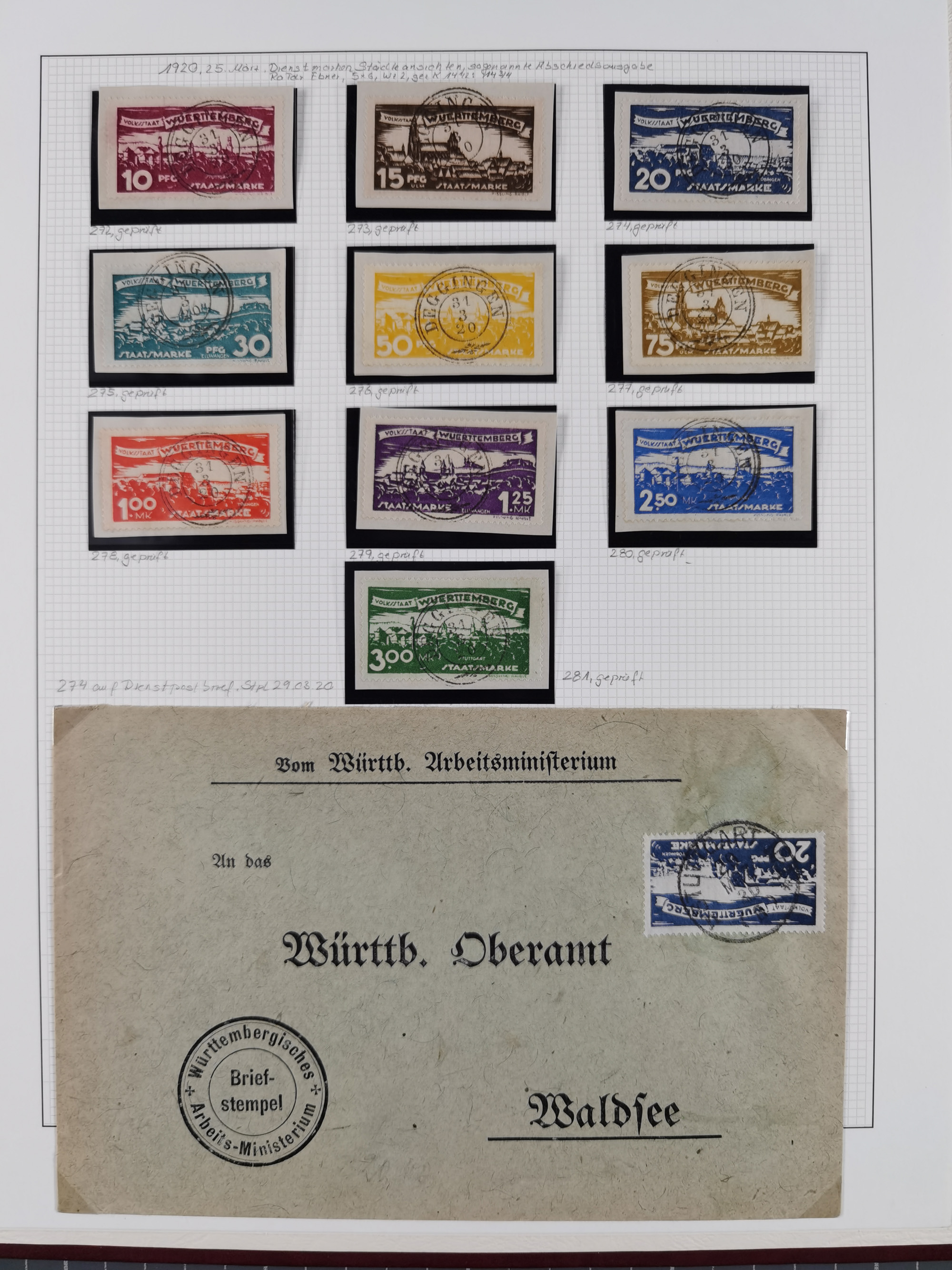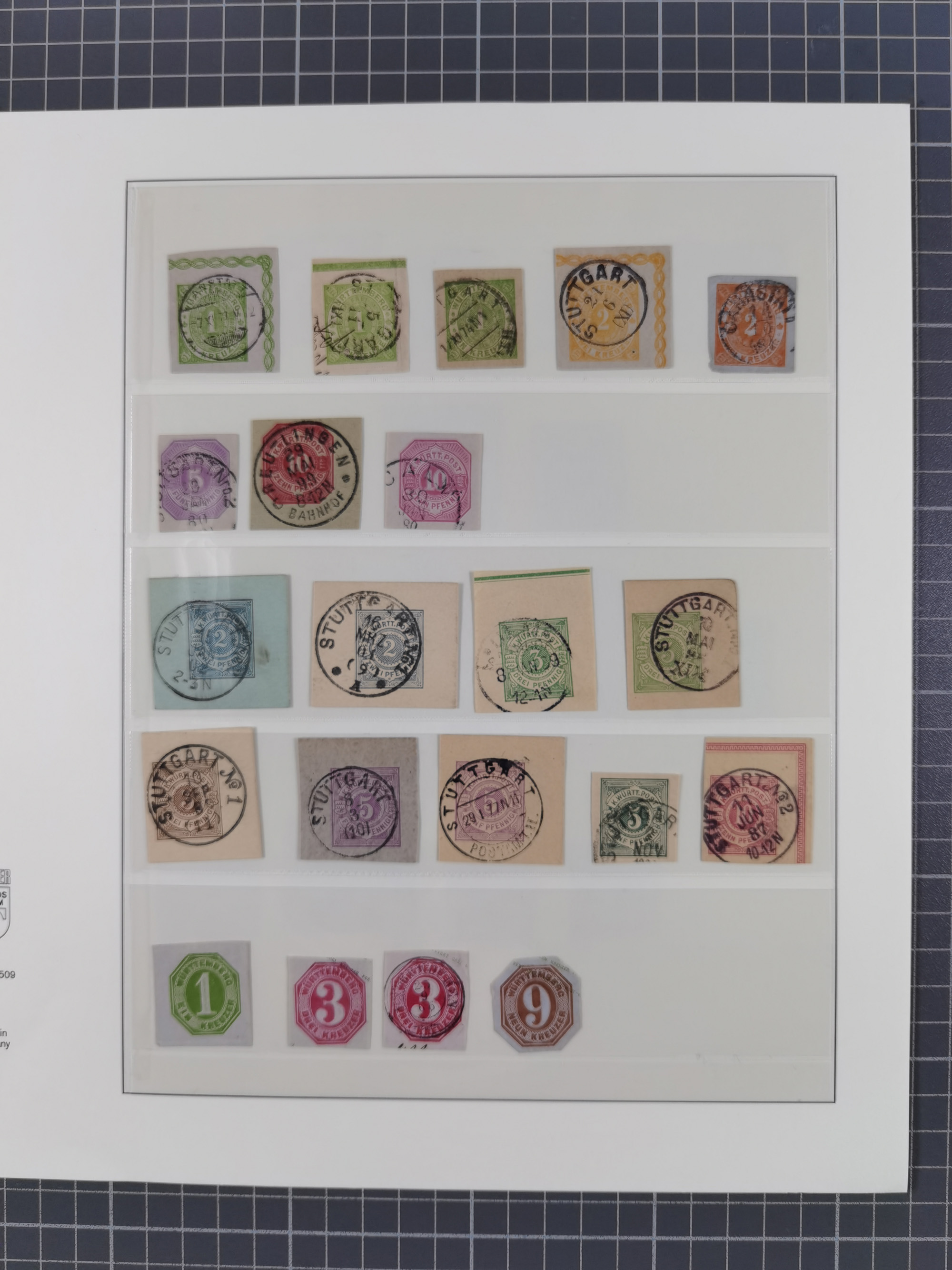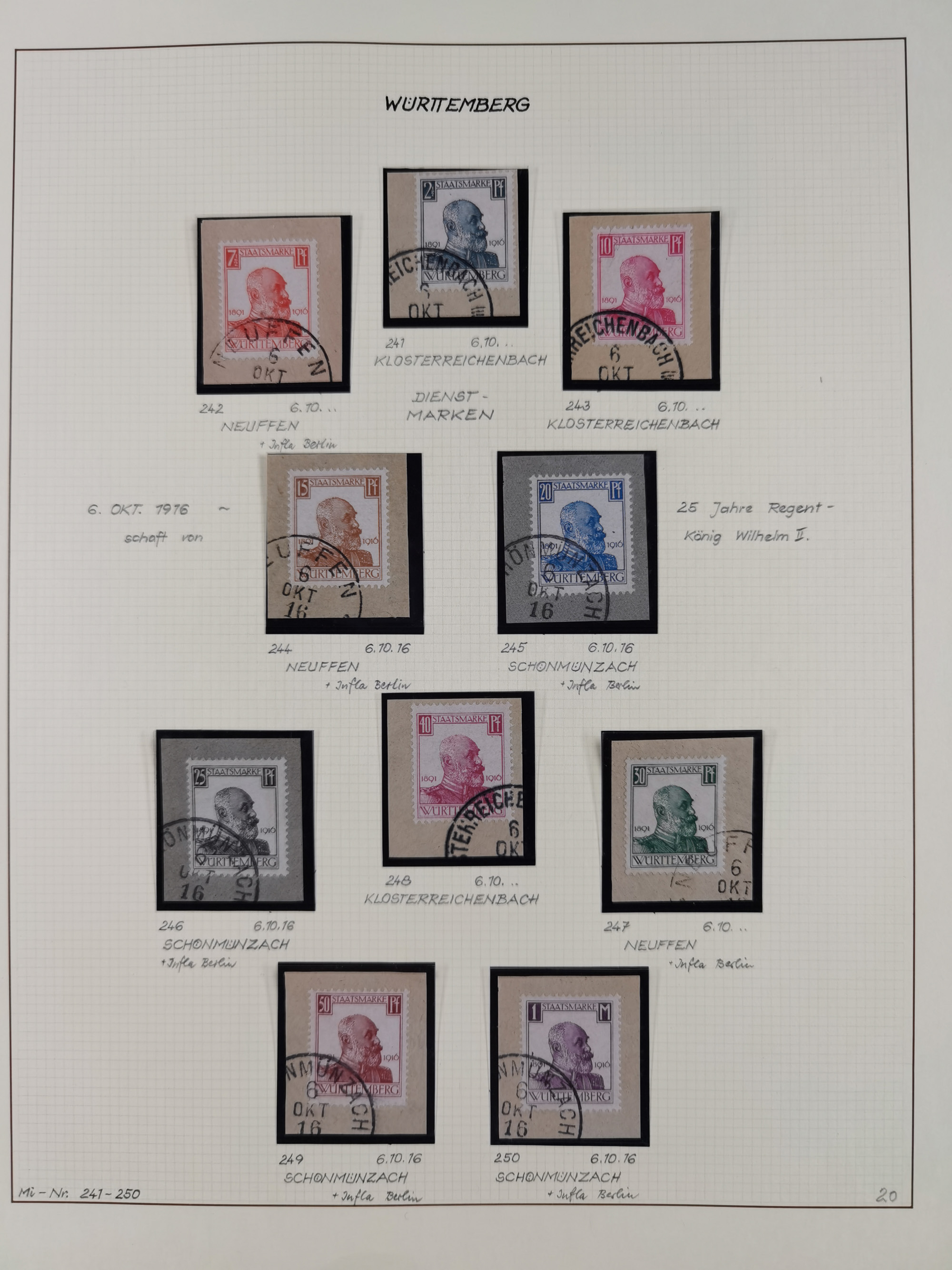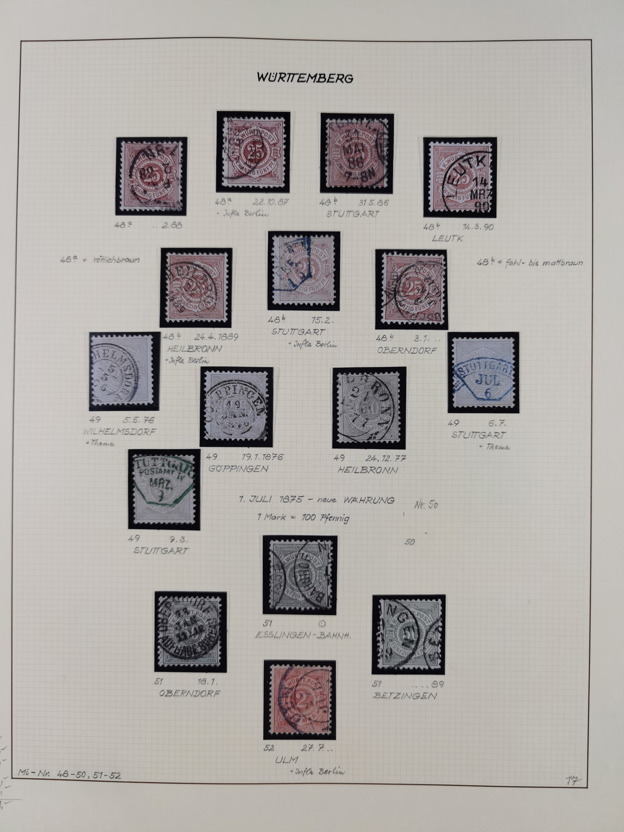 1851/1920, meist gestempelte Sammlung, dabei u.a. elf 18 Kreuzer Werte, teils mit seltenen Plattenfehlern, dabei u.a. Mi.-Nr. 5 gestempelt, 15 ohne Gummi, 8a PF II, 34 PF III, je gestempelt, 42a breitrandig mit handschriftl. Entwertung von Cannstatt, 42b sehr breitrandig mit blauem Fächer-Stempel, 50, 54 postfrisch, etc., Pfennig Teil oft sign. Infla Berlin, teils signiert bzw. 17 Kurz-/Befunde oder Fotoatteste BPP, teils fehlerhaft, meist aber gute Erhaltung