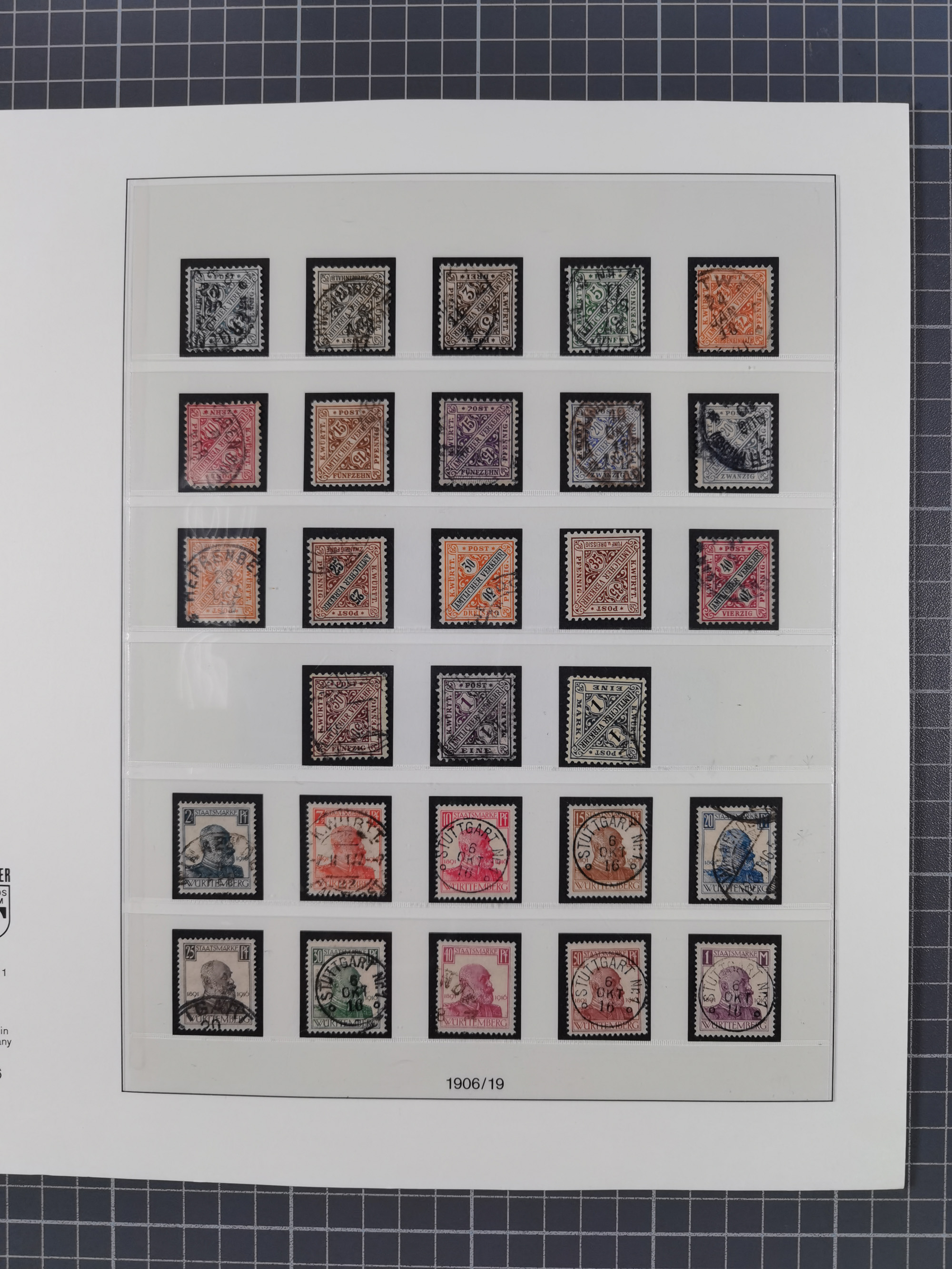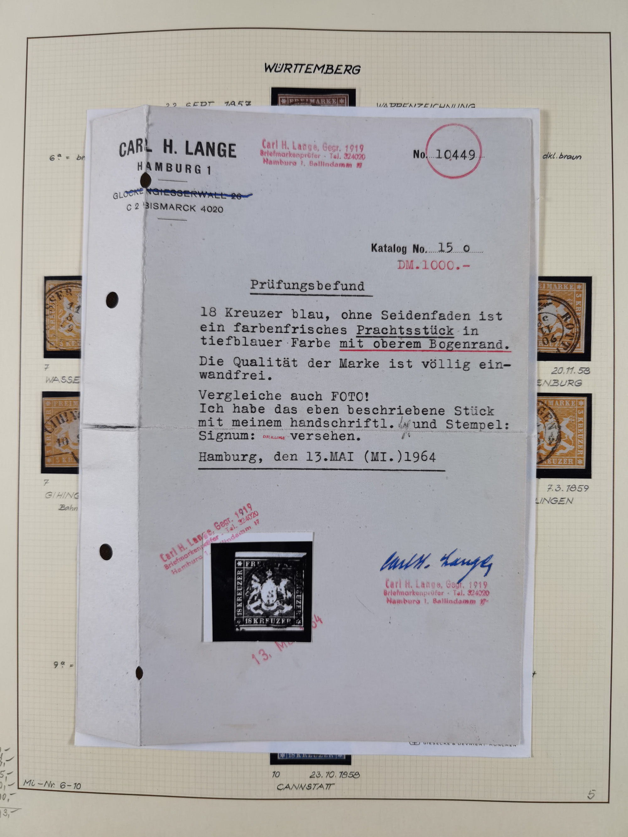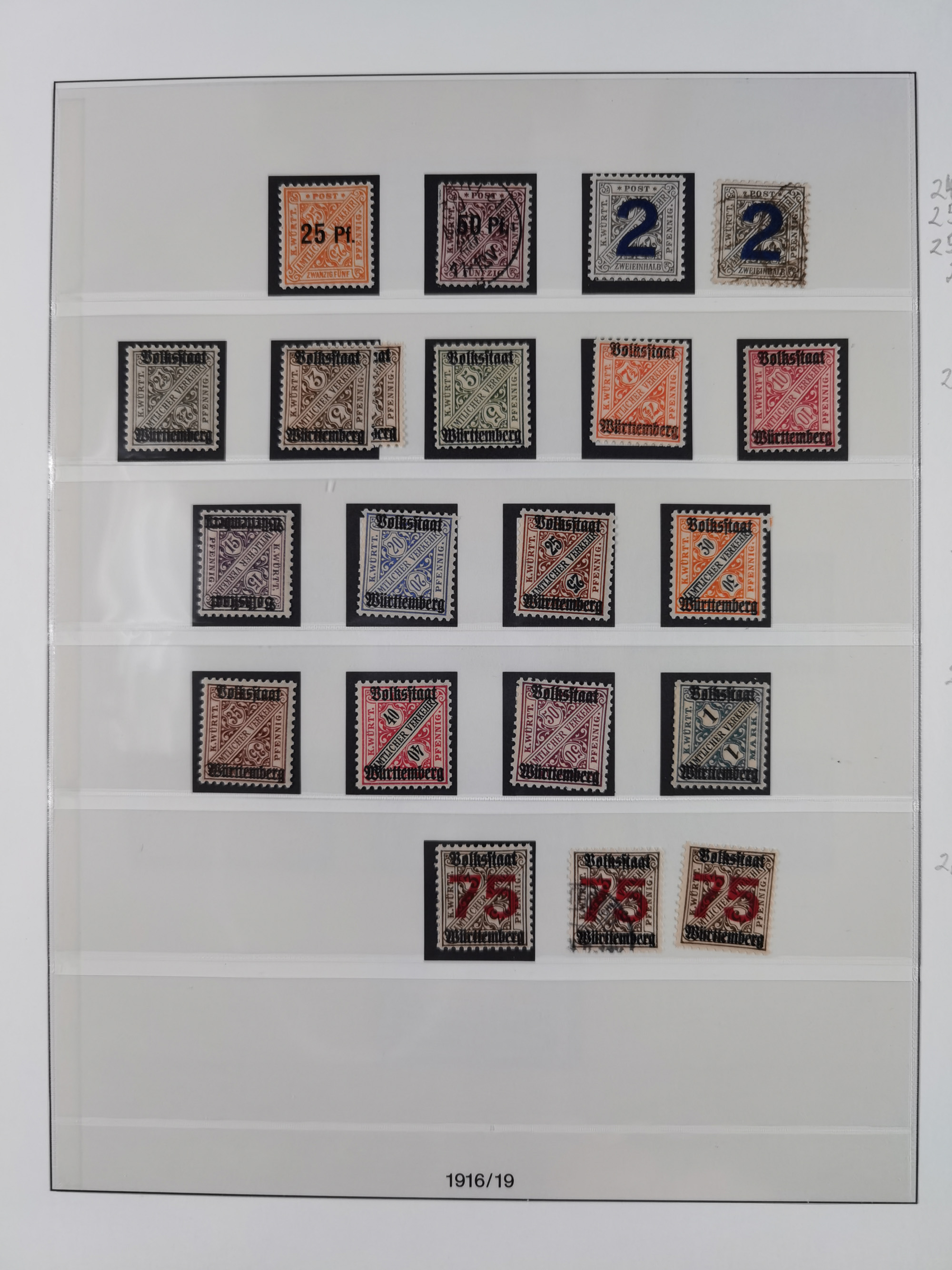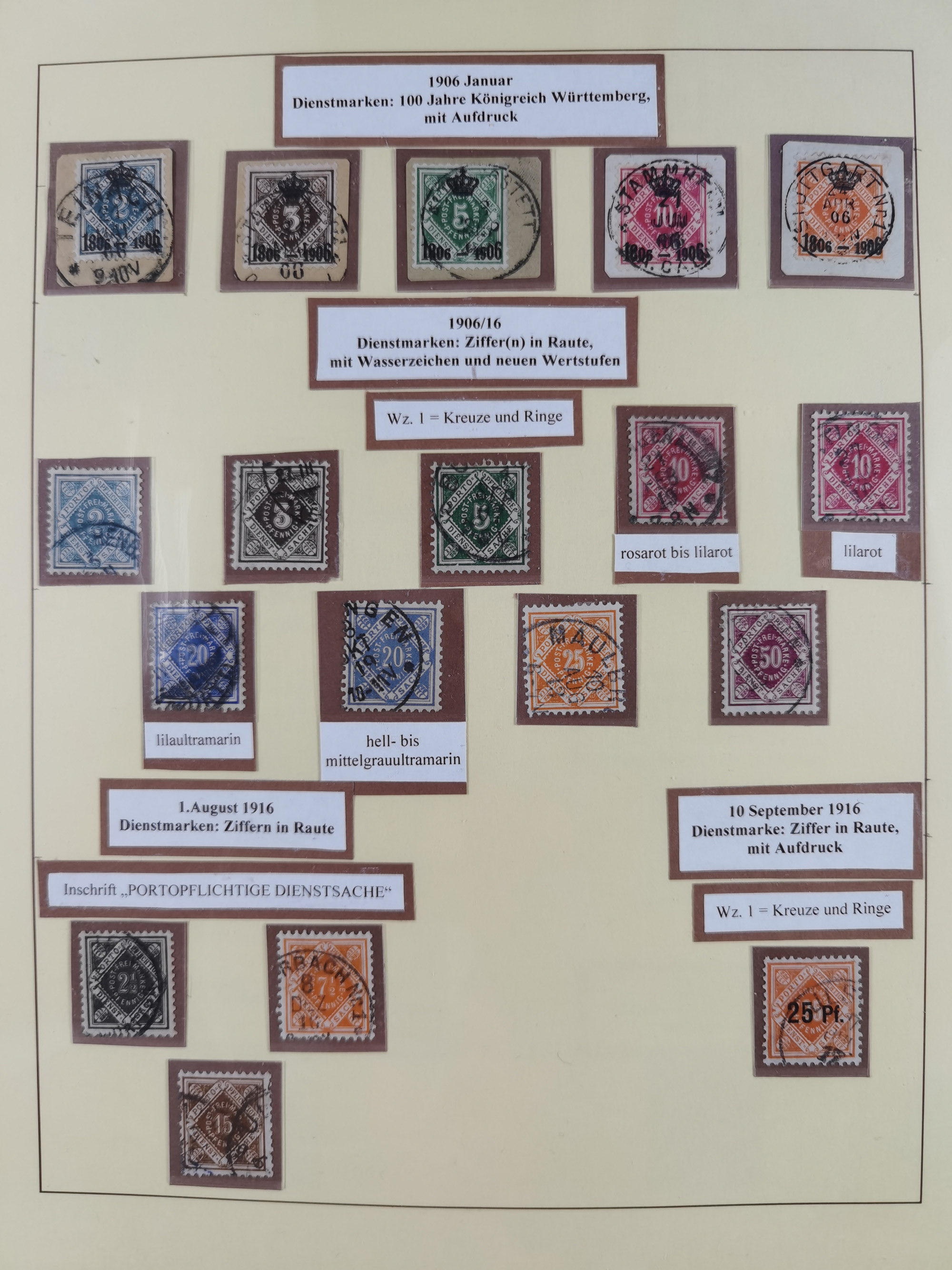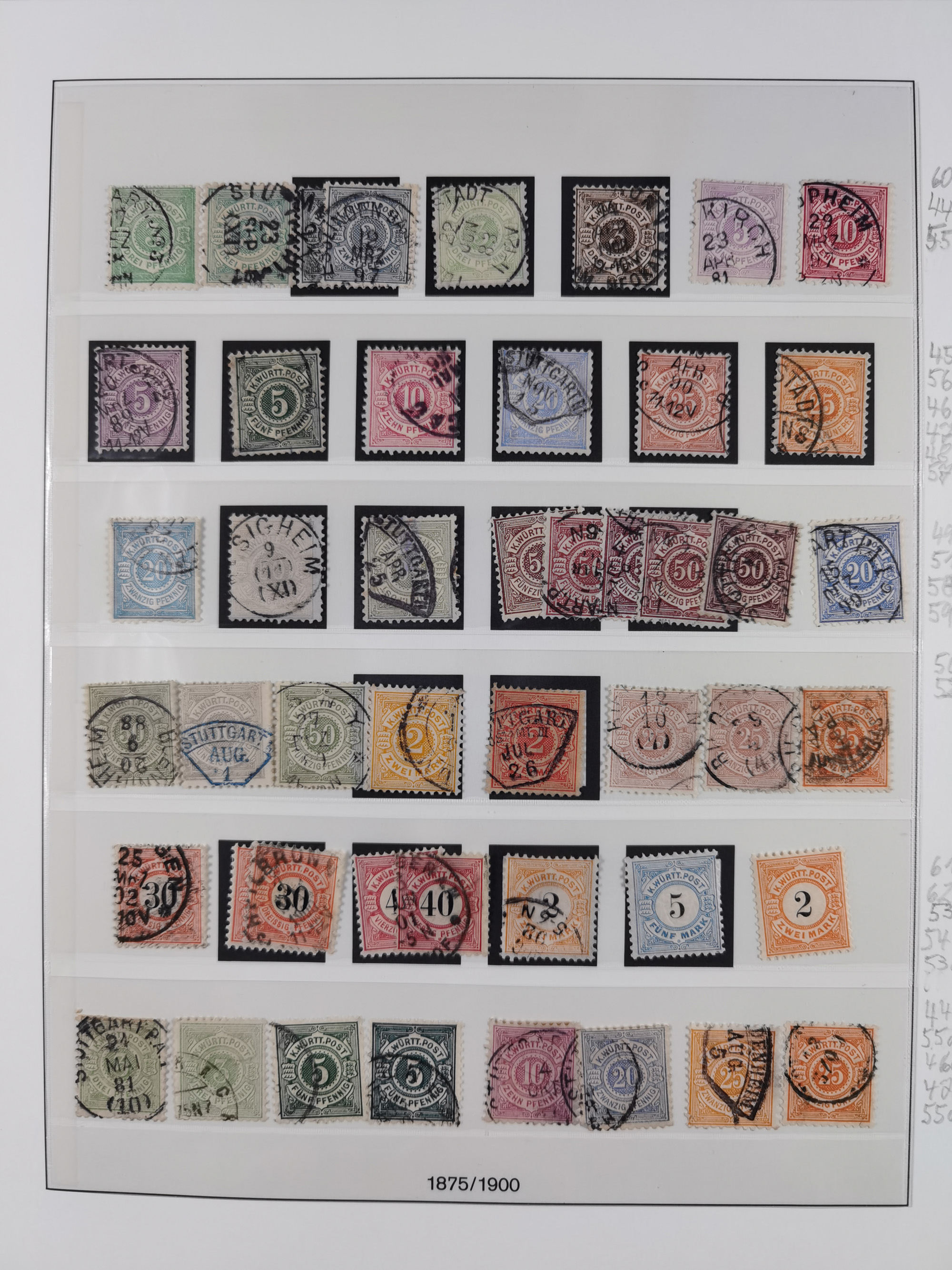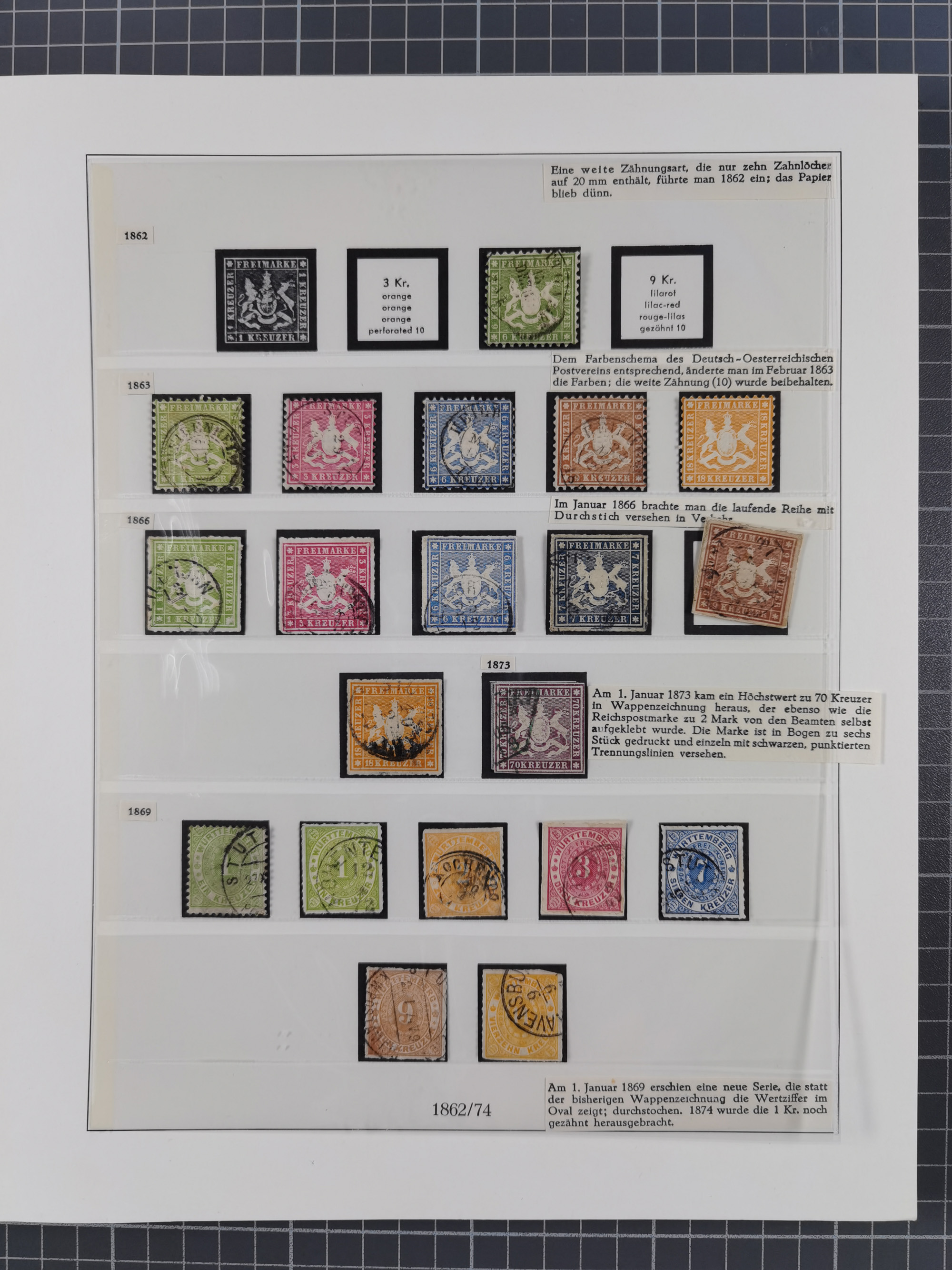1851/1920, meist gestempelte Sammlung, dabei u.a. elf 18 Kreuzer Werte, teils mit seltenen Plattenfehlern, dabei u.a. Mi.-Nr. 5 gestempelt, 15 ohne Gummi, 8a PF II, 34 PF III, je gestempelt, 42a breitrandig mit handschriftl. Entwertung von Cannstatt, 42b sehr breitrandig mit blauem Fächer-Stempel, 50, 54 postfrisch, etc., Pfennig Teil oft sign. Infla Berlin, teils signiert bzw. 17 Kurz-/Befunde oder Fotoatteste BPP, teils fehlerhaft, meist aber gute Erhaltung
