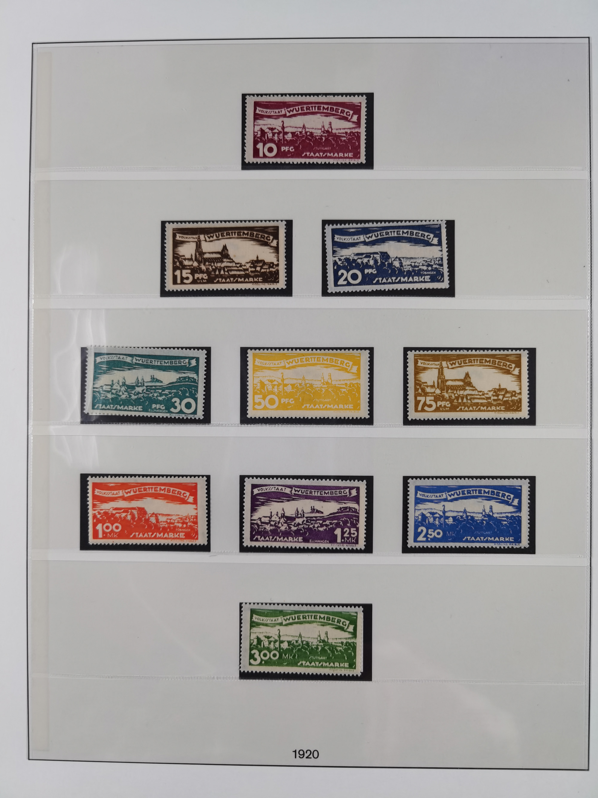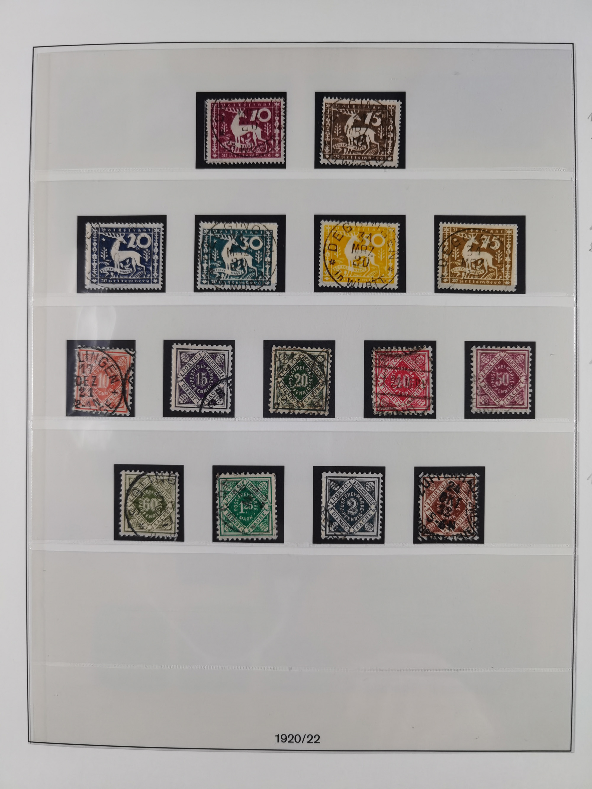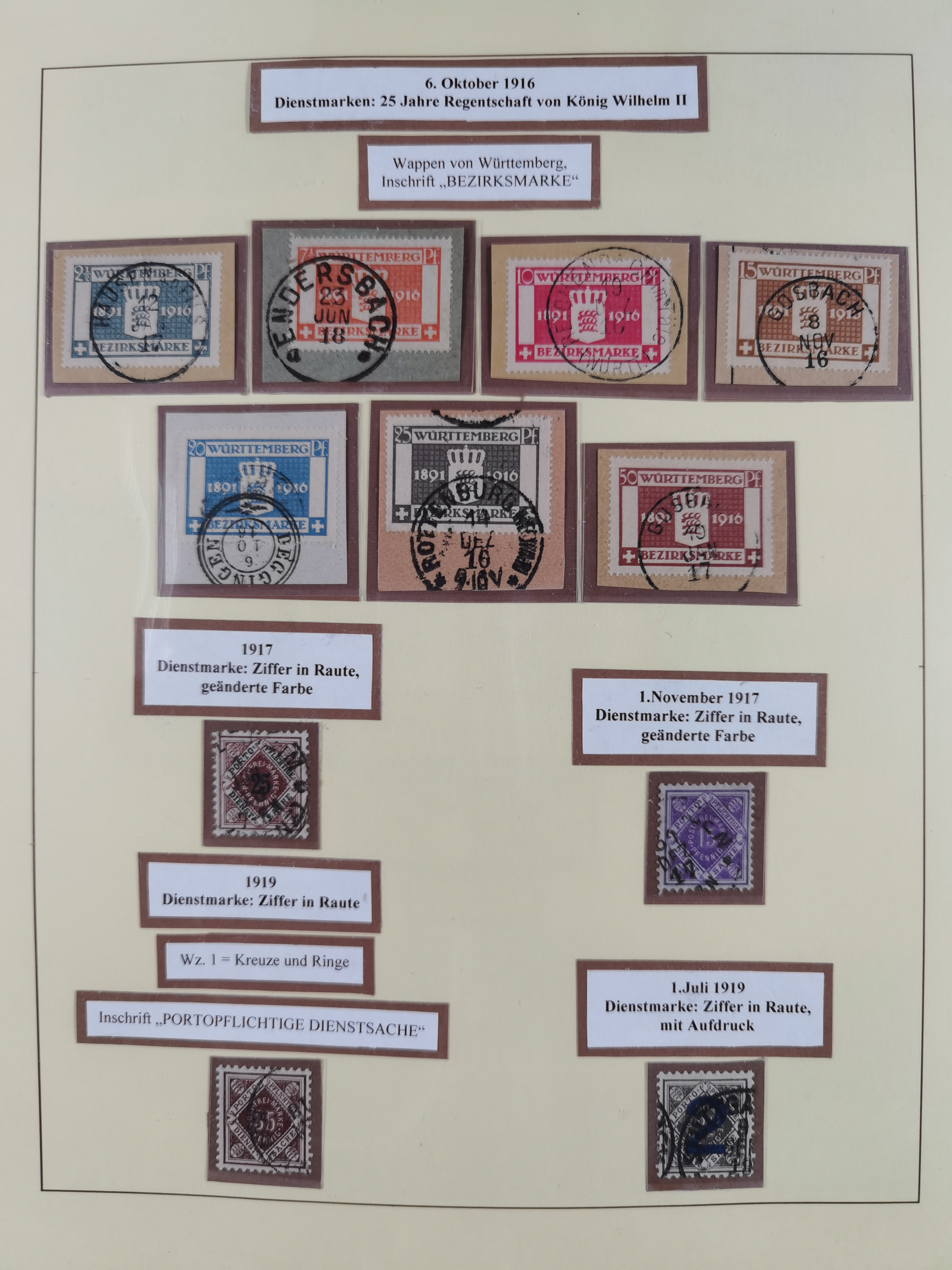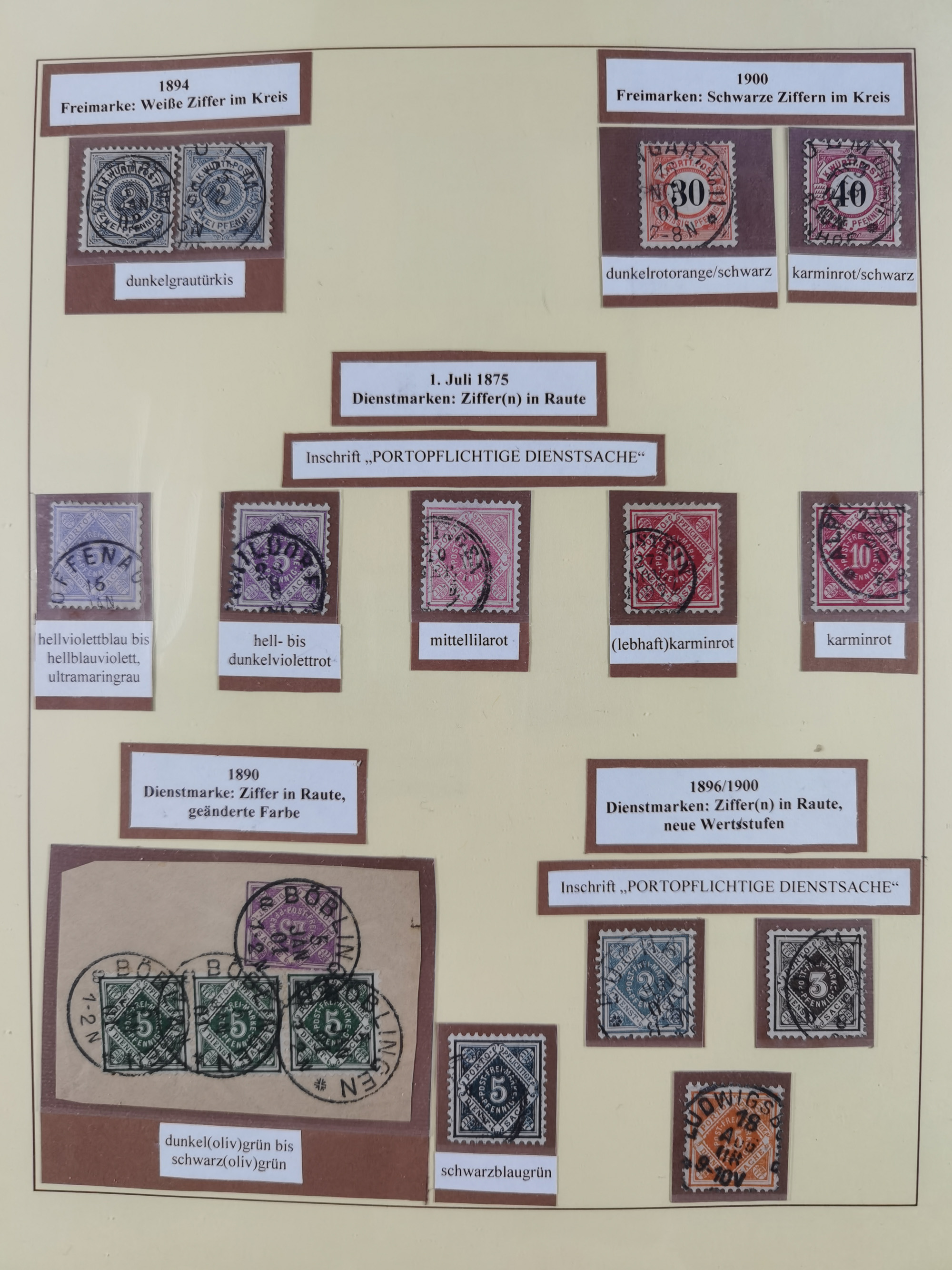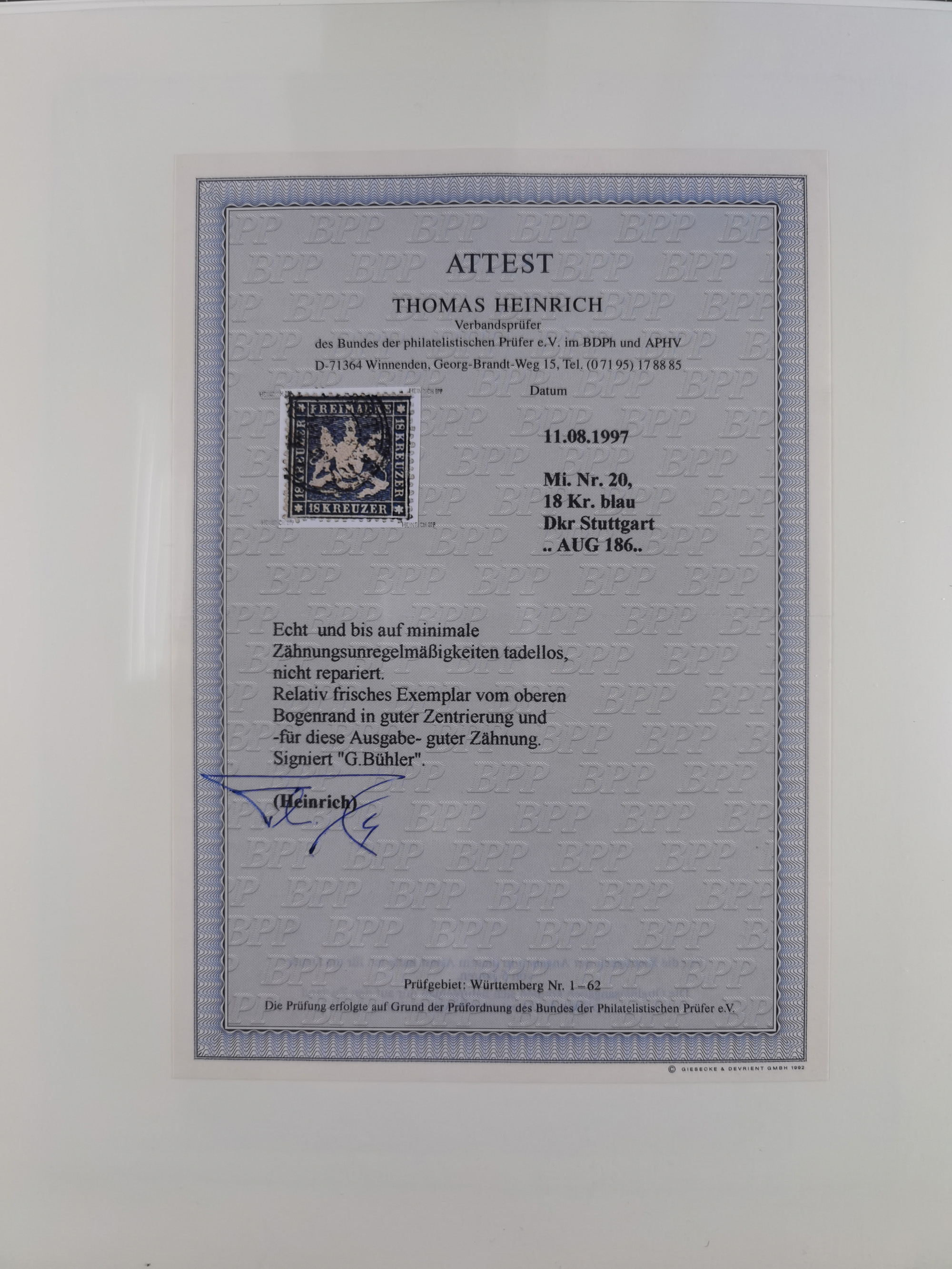 1851/1920, meist gestempelte Sammlung, dabei u.a. elf 18 Kreuzer Werte, teils mit seltenen Plattenfehlern, dabei u.a. Mi.-Nr. 5 gestempelt, 15 ohne Gummi, 8a PF II, 34 PF III, je gestempelt, 42a breitrandig mit handschriftl. Entwertung von Cannstatt, 42b sehr breitrandig mit blauem Fächer-Stempel, 50, 54 postfrisch, etc., Pfennig Teil oft sign. Infla Berlin, teils signiert bzw. 17 Kurz-/Befunde oder Fotoatteste BPP, teils fehlerhaft, meist aber gute Erhaltung
