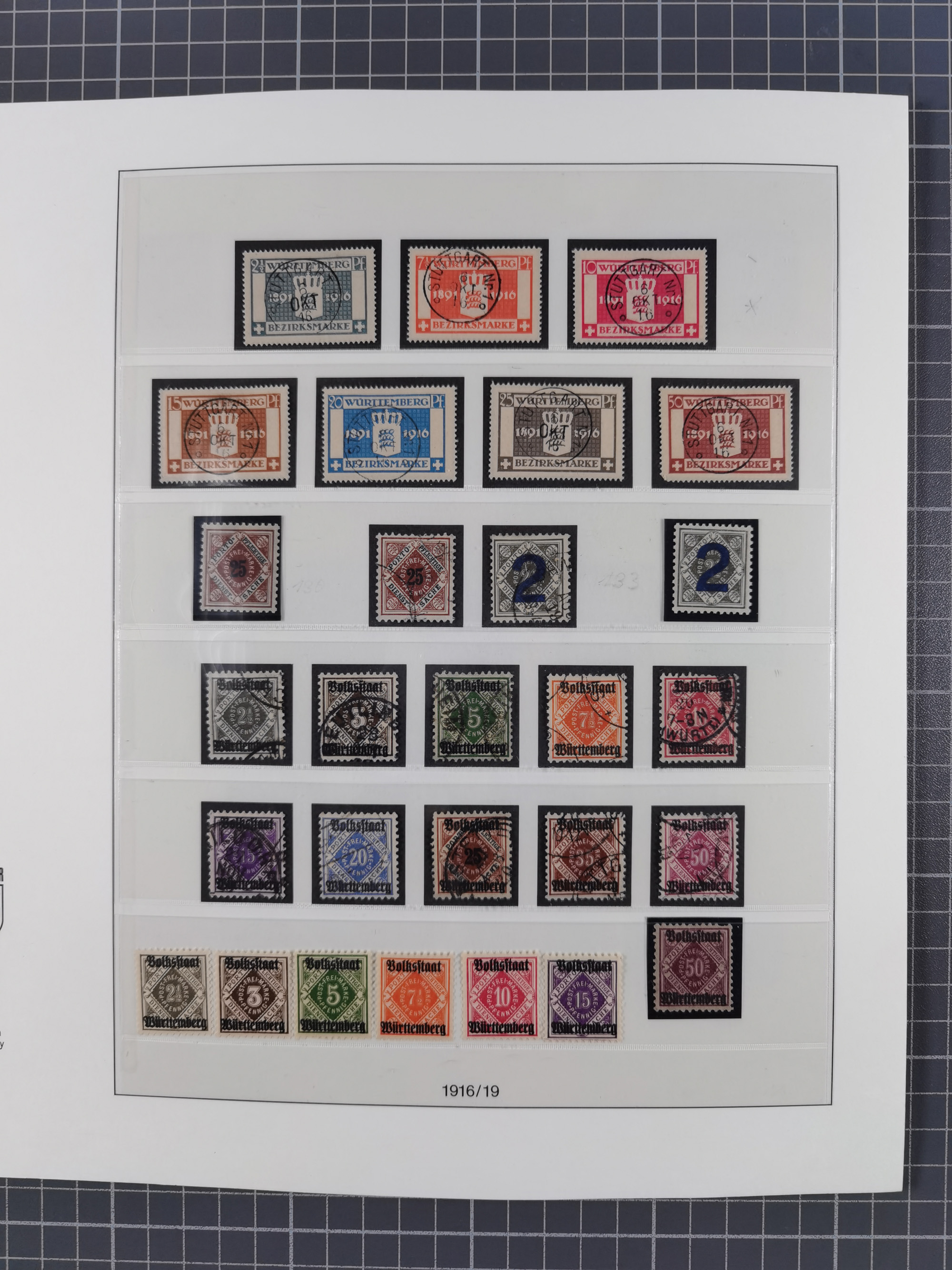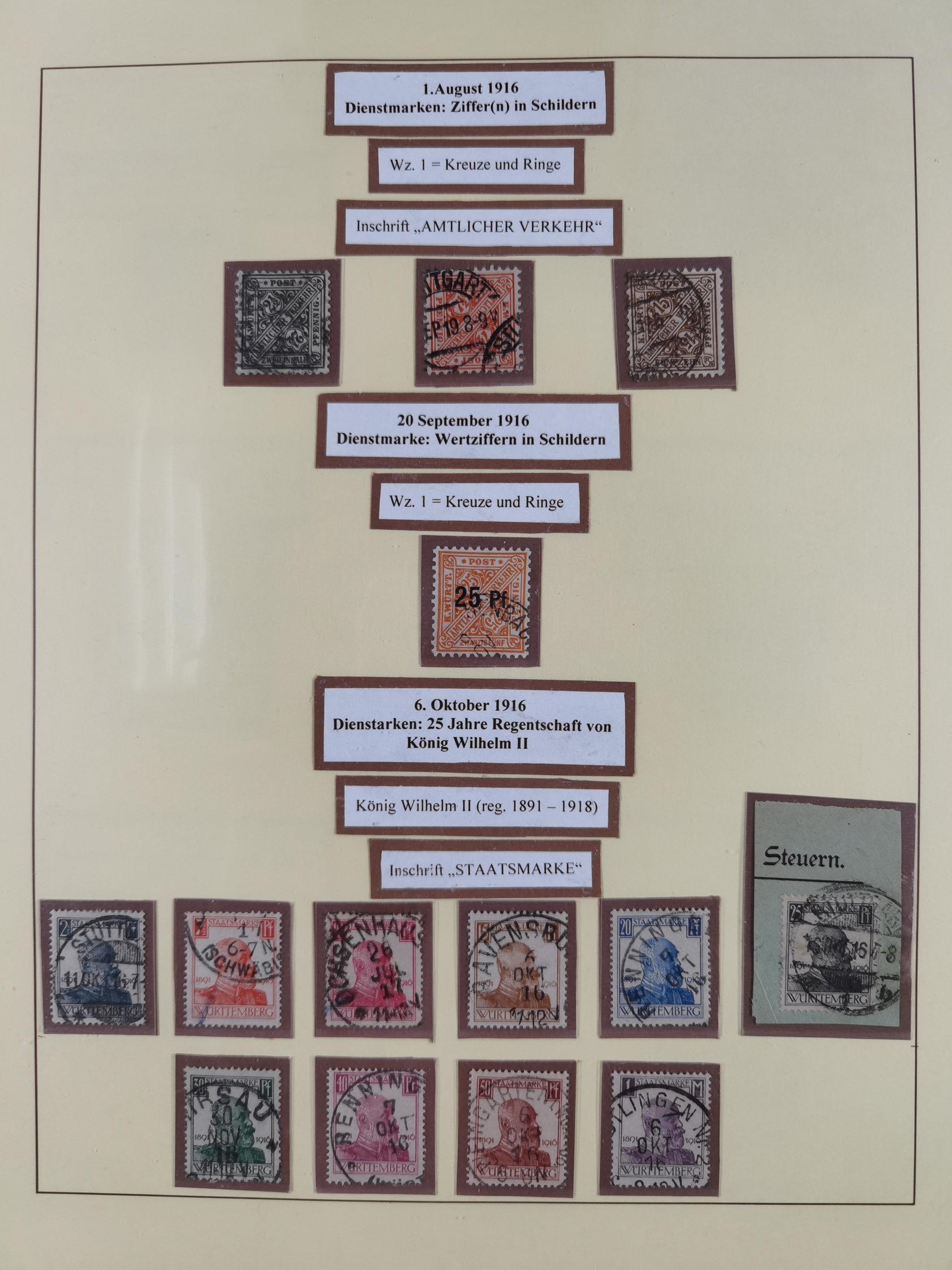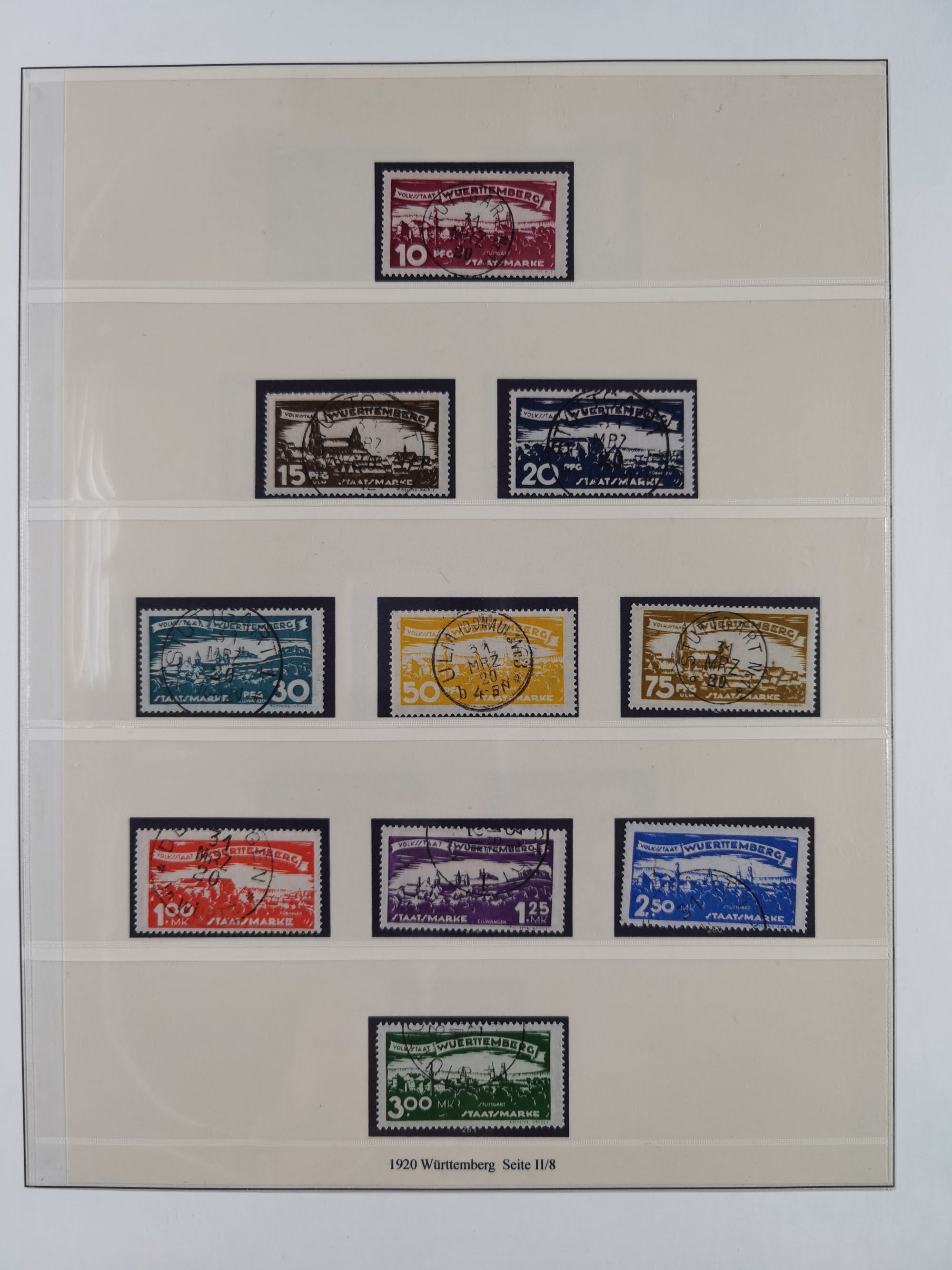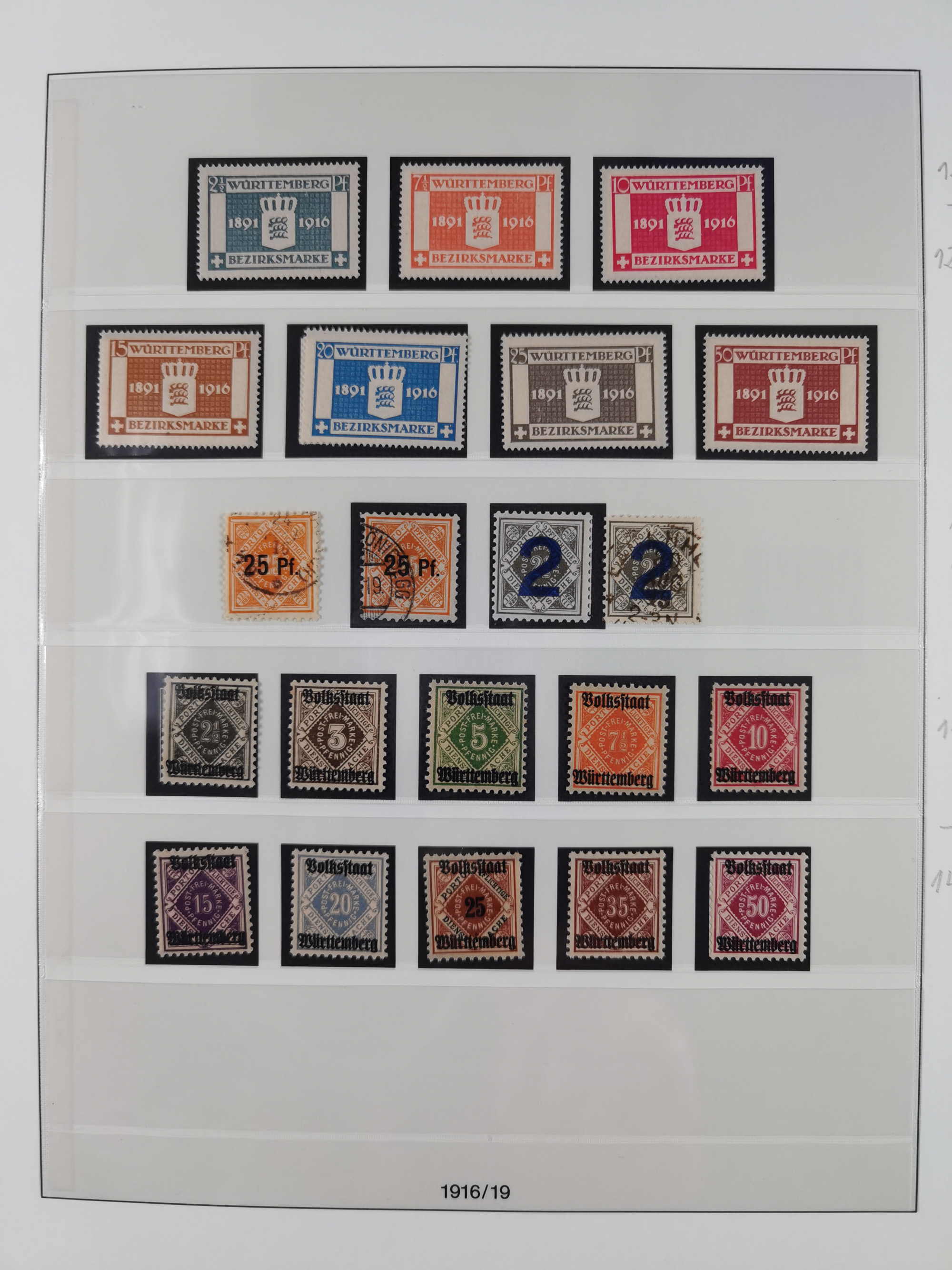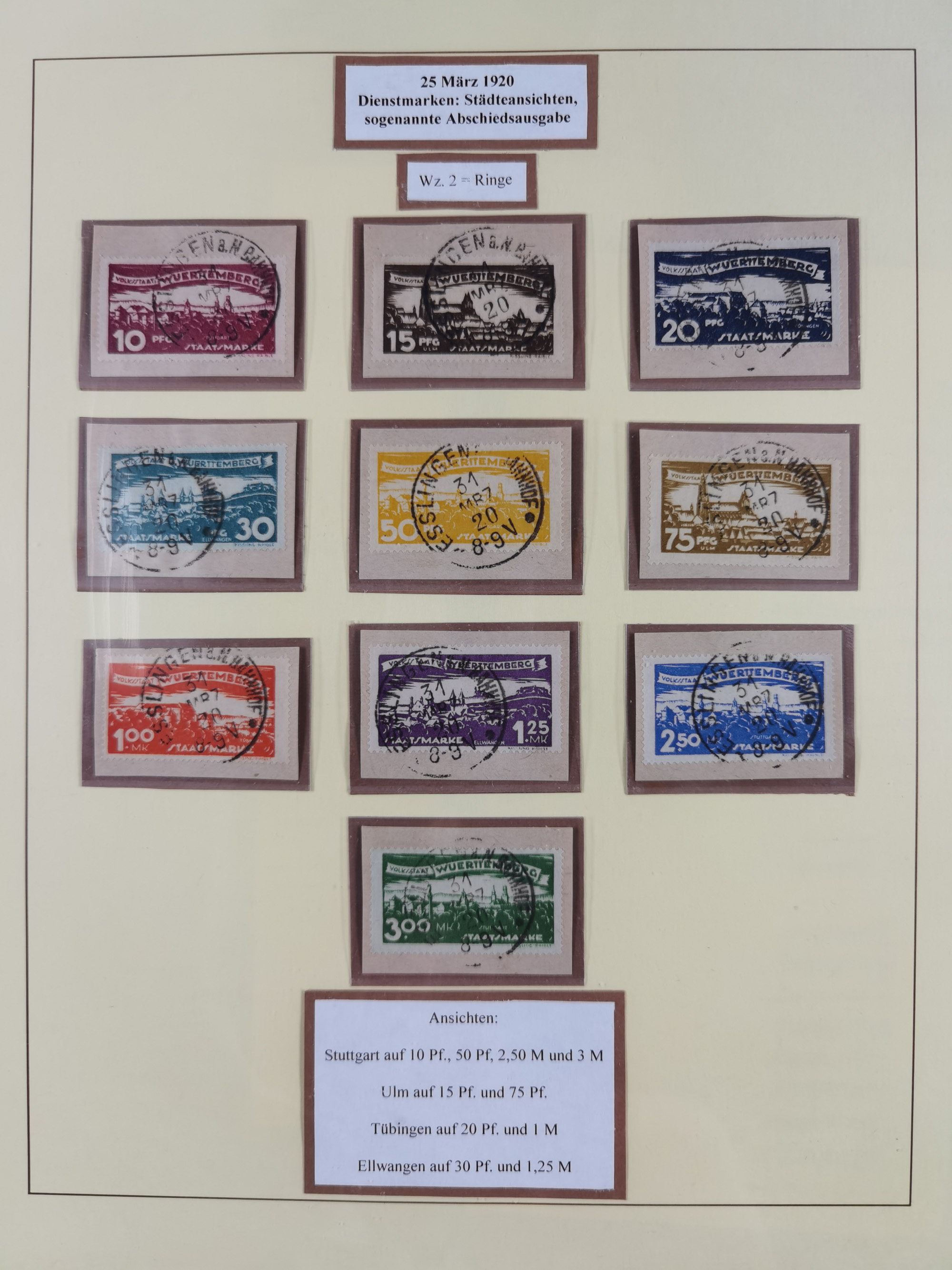 1851/1920, meist gestempelte Sammlung, dabei u.a. elf 18 Kreuzer Werte, teils mit seltenen Plattenfehlern, dabei u.a. Mi.-Nr. 5 gestempelt, 15 ohne Gummi, 8a PF II, 34 PF III, je gestempelt, 42a breitrandig mit handschriftl. Entwertung von Cannstatt, 42b sehr breitrandig mit blauem Fächer-Stempel, 50, 54 postfrisch, etc., Pfennig Teil oft sign. Infla Berlin, teils signiert bzw. 17 Kurz-/Befunde oder Fotoatteste BPP, teils fehlerhaft, meist aber gute Erhaltung