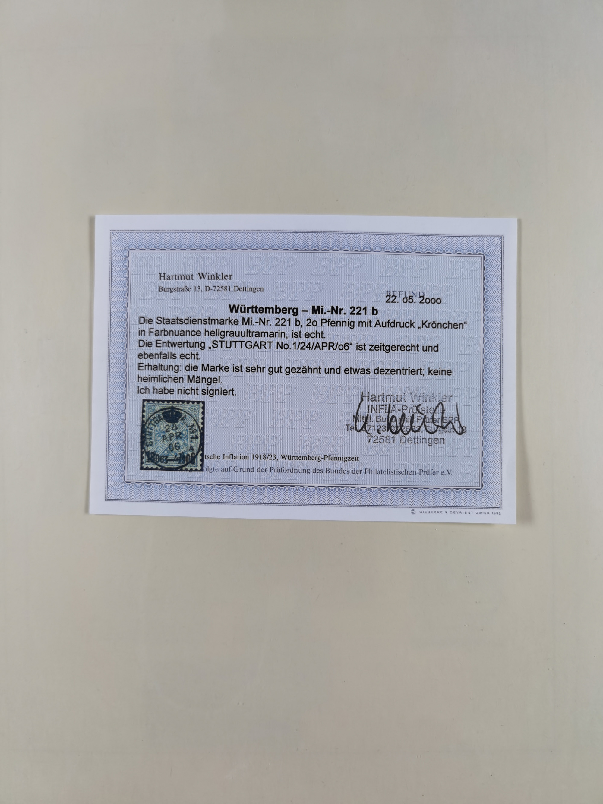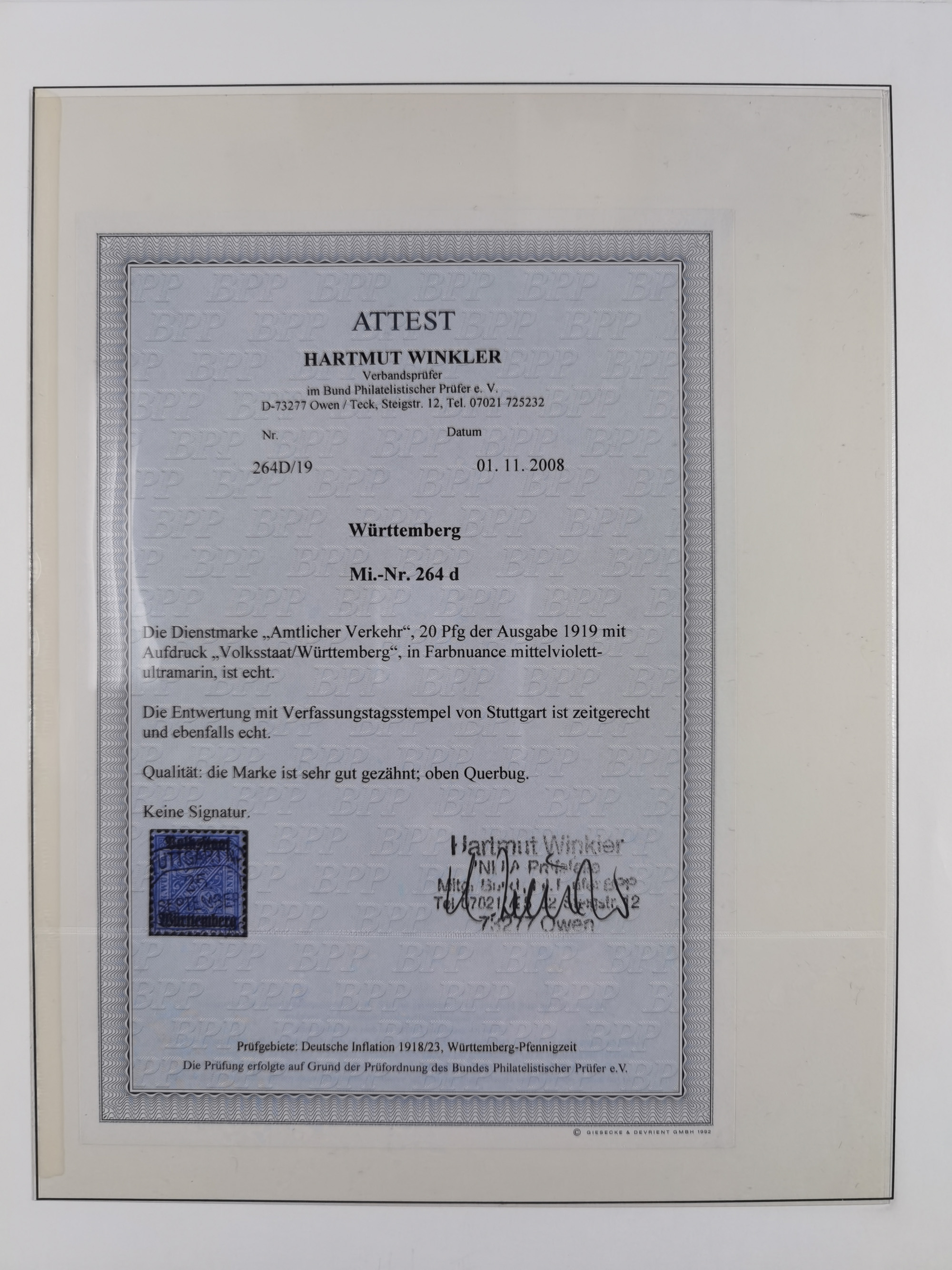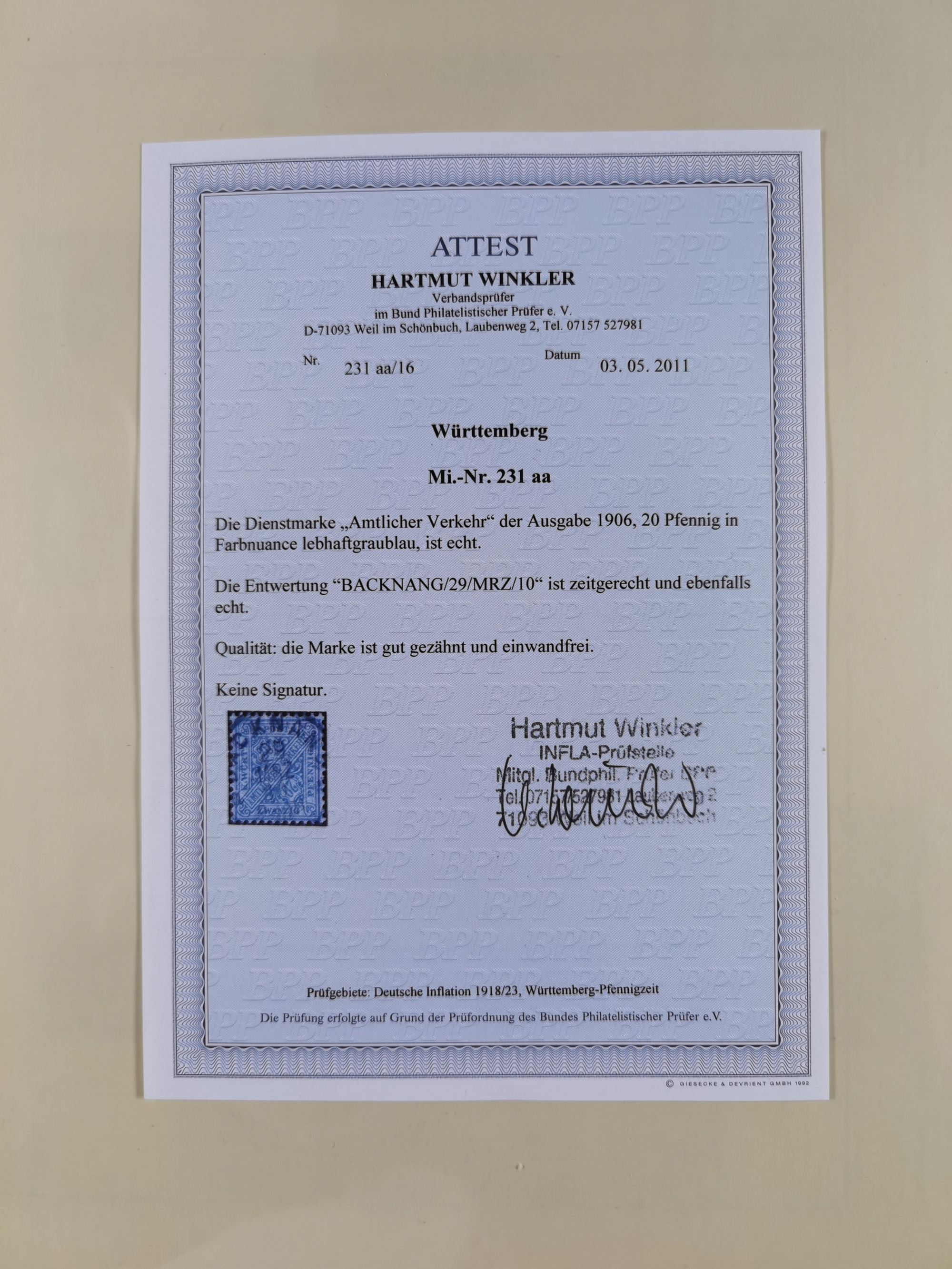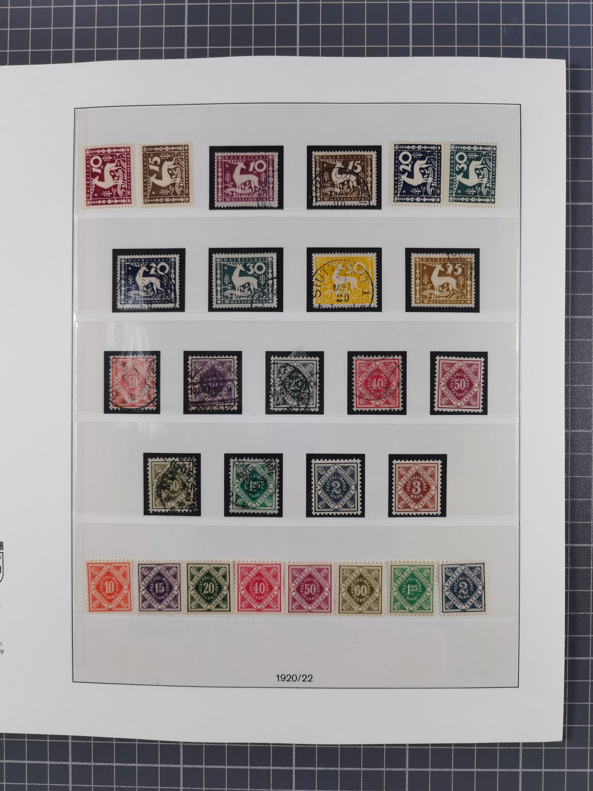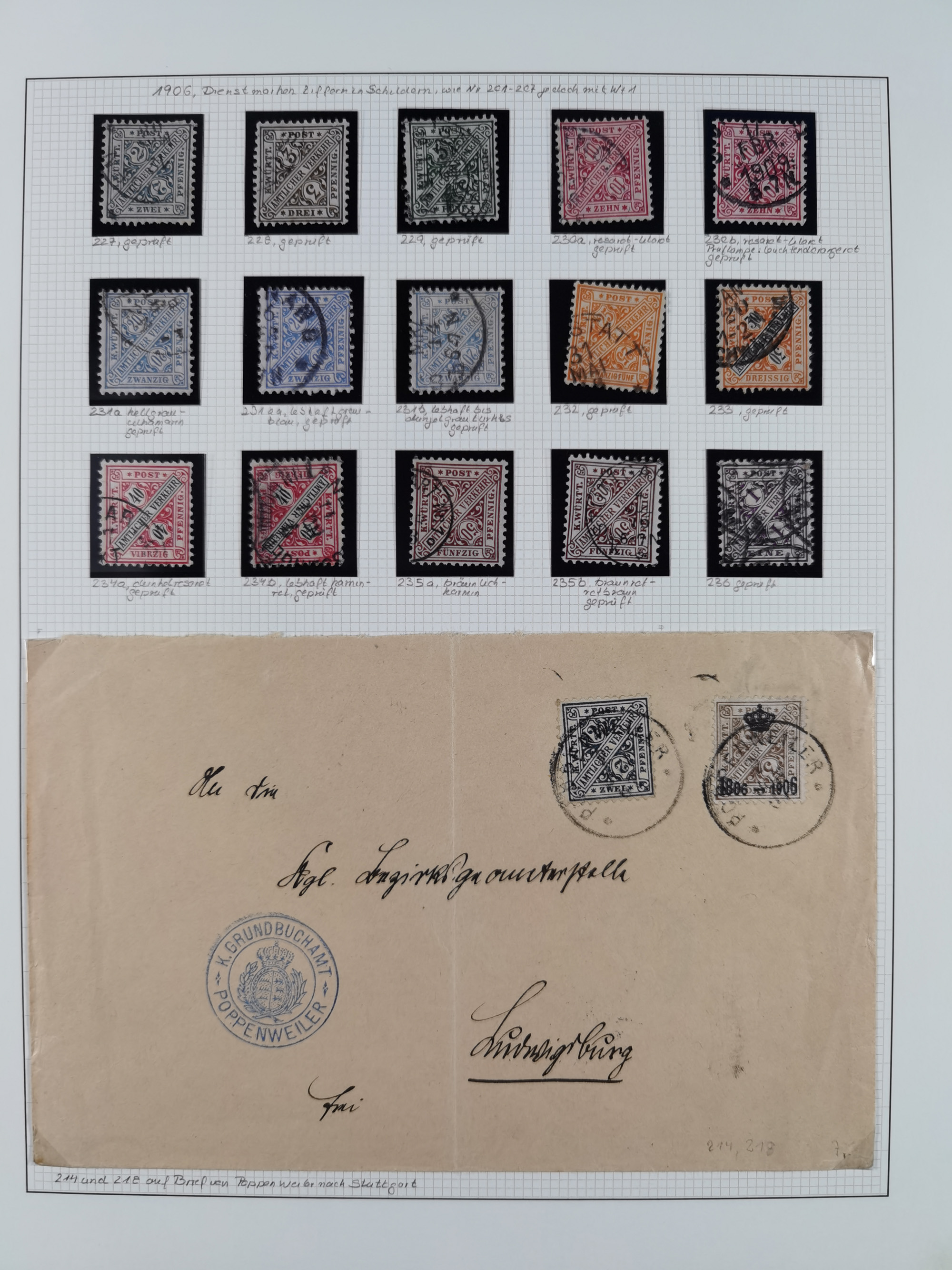 1851/1920, meist gestempelte Sammlung, dabei u.a. elf 18 Kreuzer Werte, teils mit seltenen Plattenfehlern, dabei u.a. Mi.-Nr. 5 gestempelt, 15 ohne Gummi, 8a PF II, 34 PF III, je gestempelt, 42a breitrandig mit handschriftl. Entwertung von Cannstatt, 42b sehr breitrandig mit blauem Fächer-Stempel, 50, 54 postfrisch, etc., Pfennig Teil oft sign. Infla Berlin, teils signiert bzw. 17 Kurz-/Befunde oder Fotoatteste BPP, teils fehlerhaft, meist aber gute Erhaltung