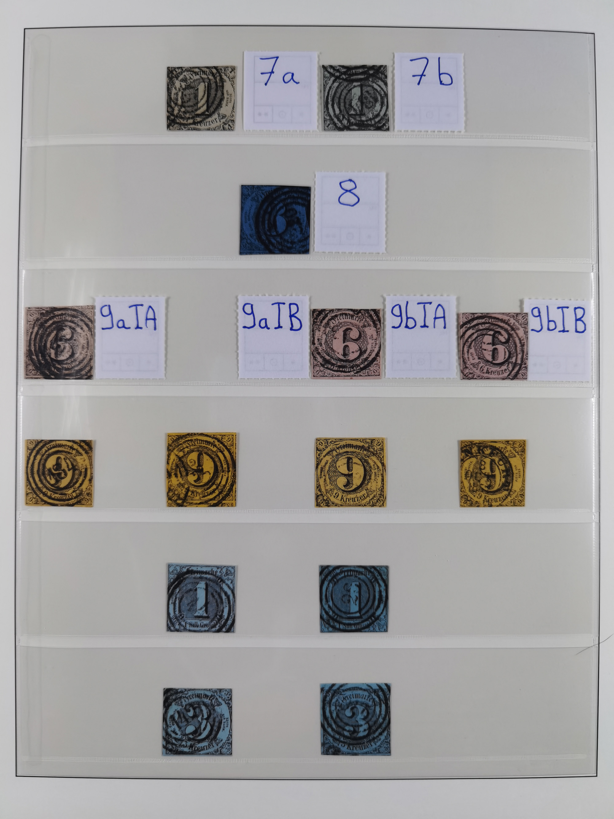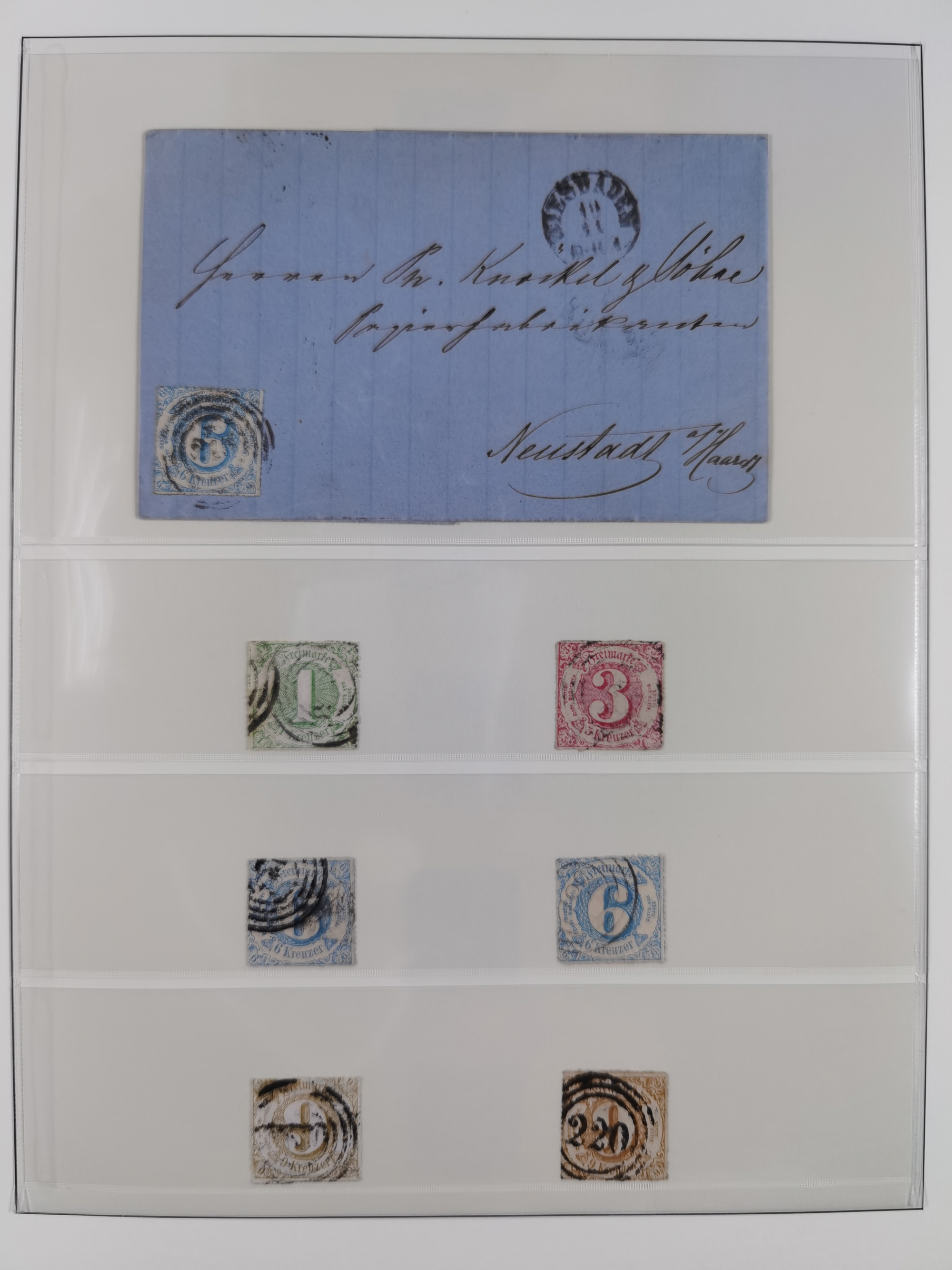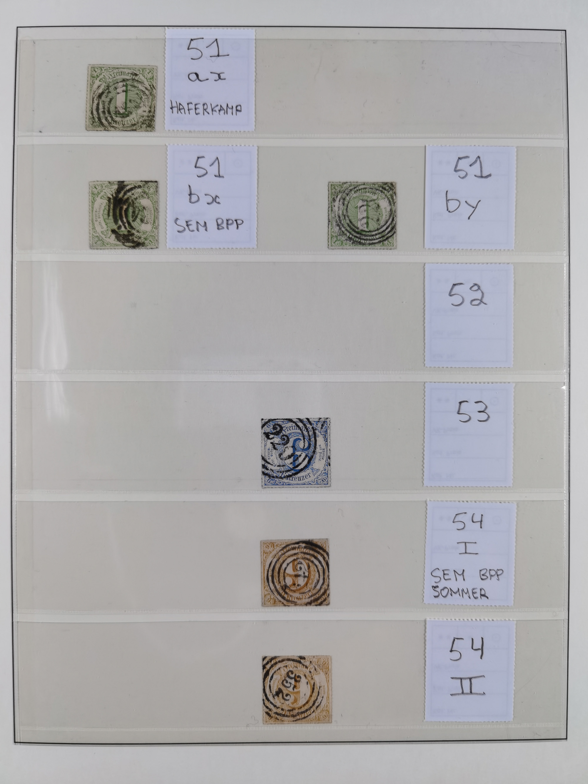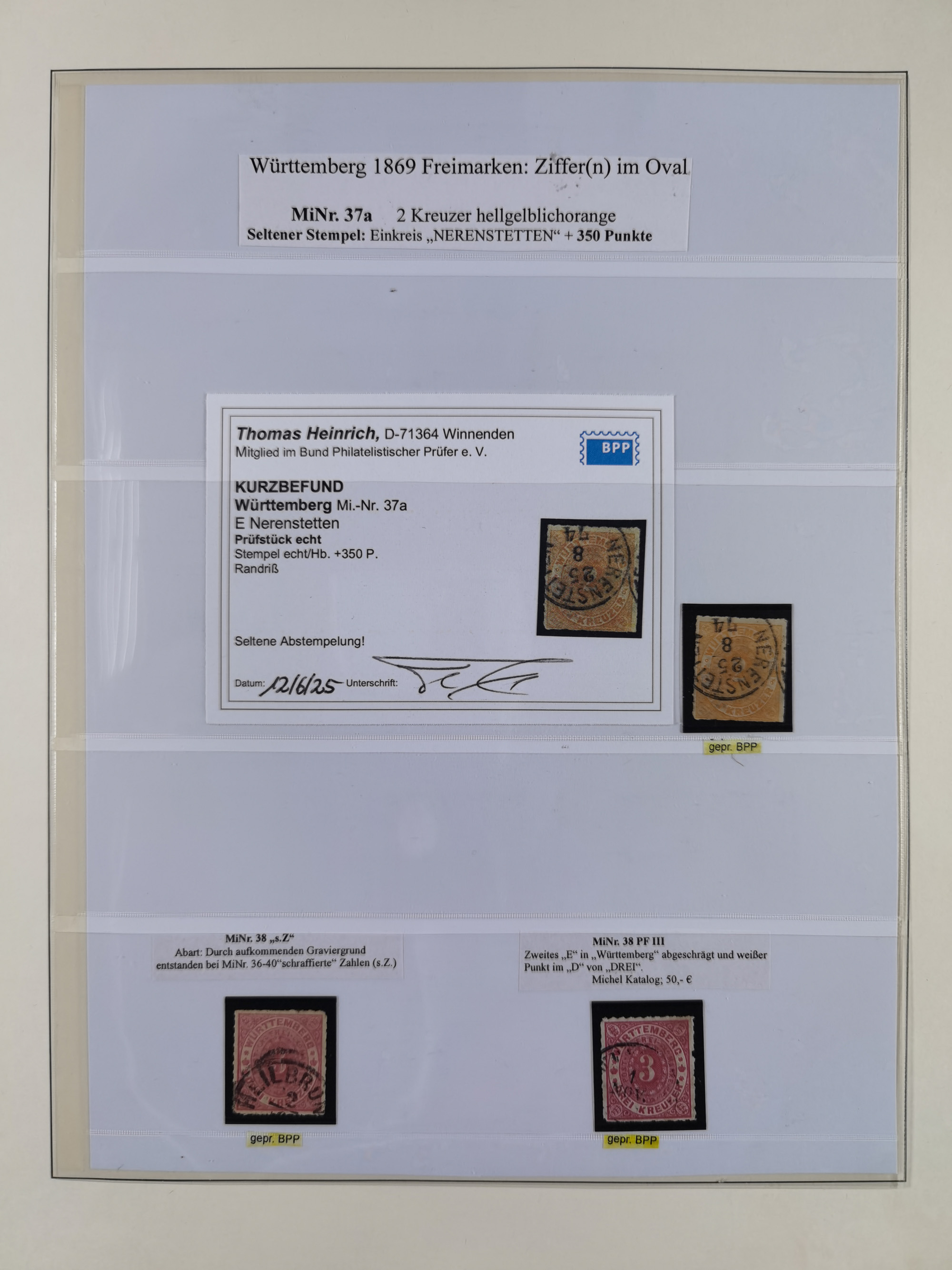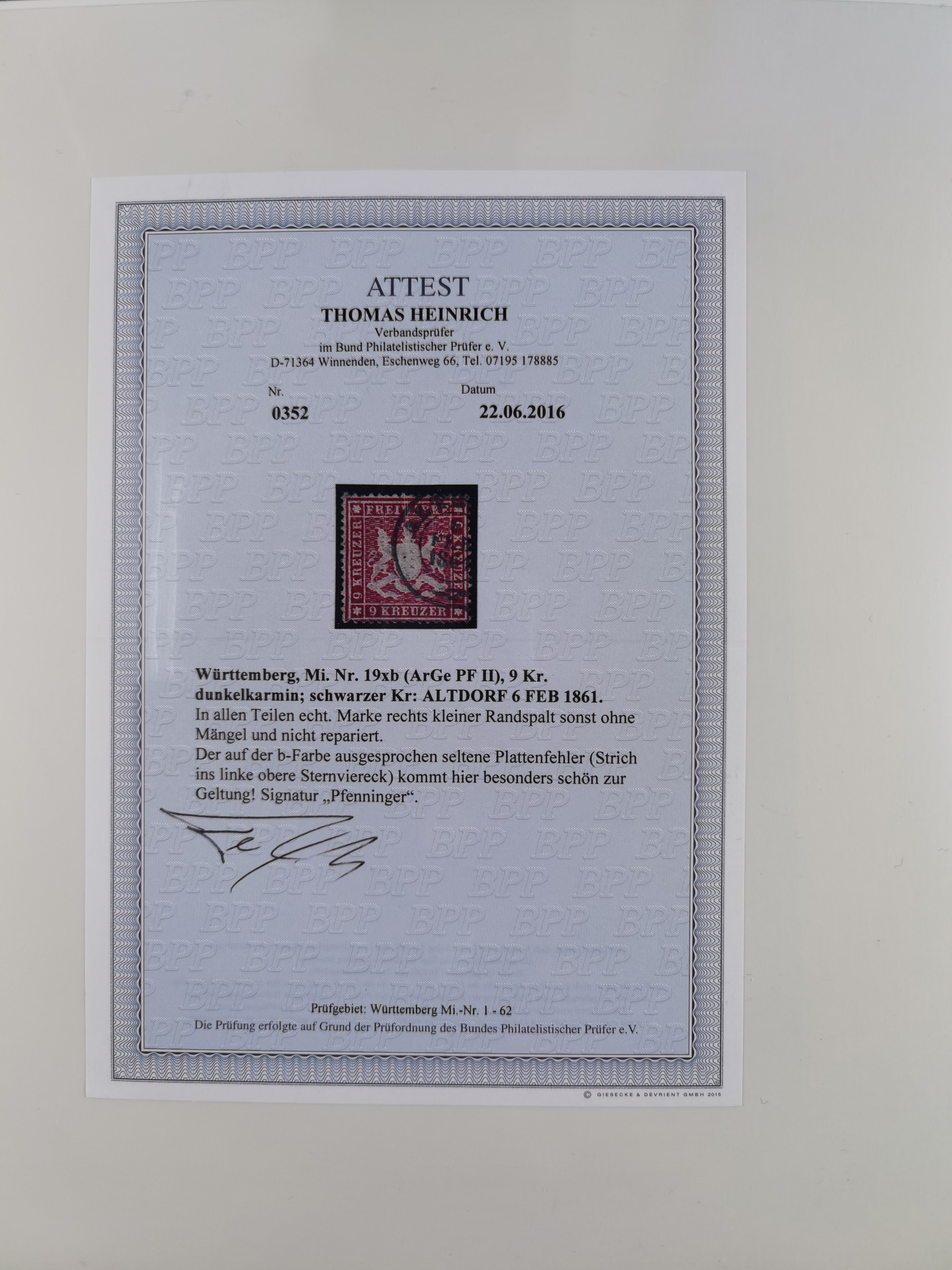 1851/69, interessante Partie mit ca. 50 verschiedenen Plattenfehlern auf gestempelten Kreuzer-Marken mit besseren, dabei u.a. Mi.-Nr. 1cPFVIII (KB Heinrich BPP: “..auf C-Farbe sehr selten”), Mi.-Nr. 8PFI (KB Heinrich BPP), Mi.-Nr. 15PFIII (KB Heinrich BPP),16ybPFV (Arge) mit KB Heinrich BPP und Mi.-Nr. 34 PFI (FB Heinrich BPP). Dazu noch drei weitere Plattenfehler aus 1919 in postfrischen Dreierstreifen bzw. einem Paar mit Normalmarke. Die gestempelten Marken sind alle signiert bzw. KB/FB, in der Erhaltung meist mit kleinen Fehlern, oft optisch sehr ansprechend
