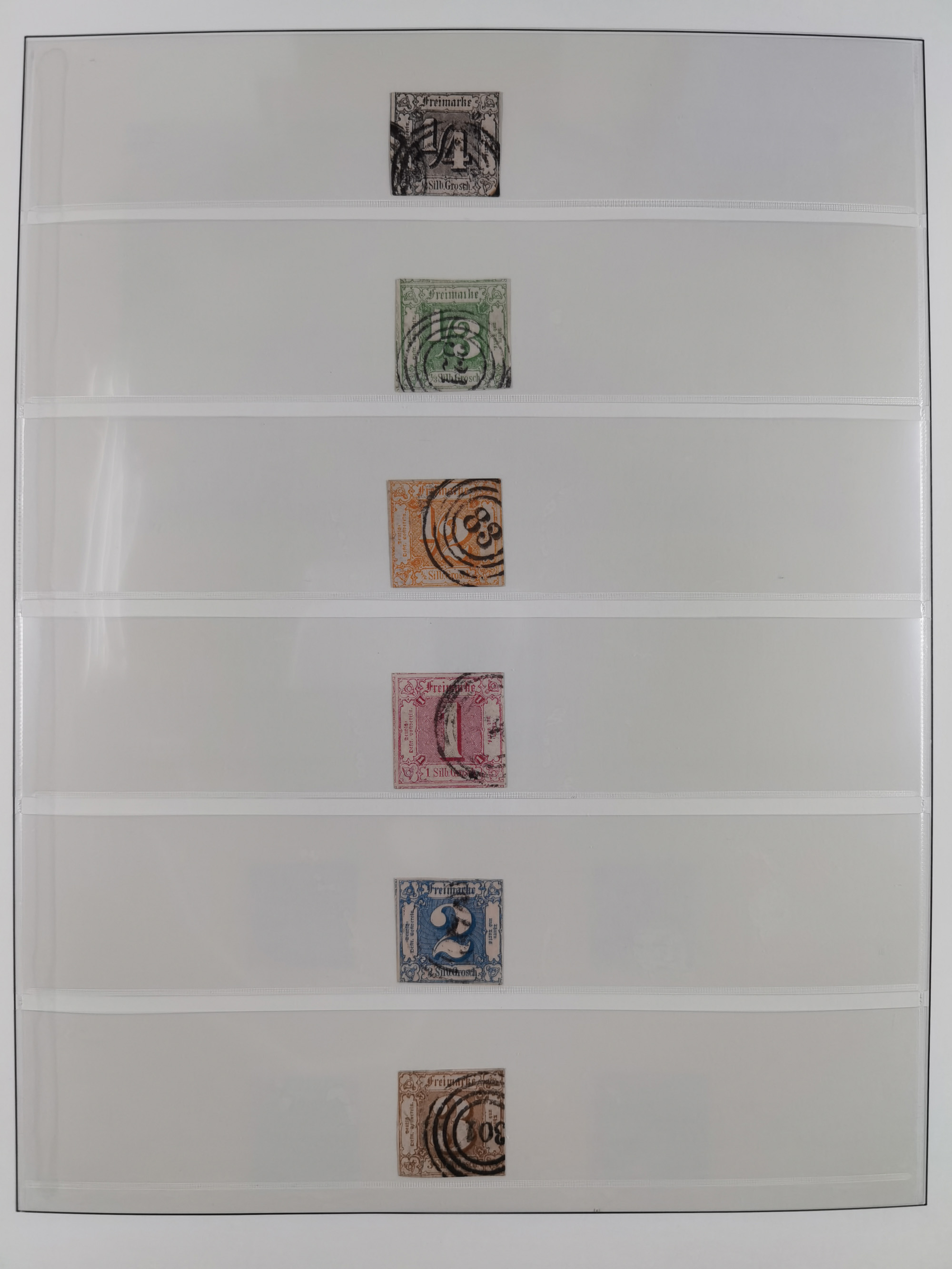 1851/1920, gestempelte Sammlung mit fast allen Farben und vielen Typen, dabei u.a. Mi. 1c, 2b, 4c, 5 I und II, 10 a, 11 b, 15,19 xb, 20, 24,31 c, 41 b, 42 a und b, 188 und 264 d und auch einnige Briiefe. Vieles signiert, fast alle besseren Stücke Befunde oder Atteste BPP. Ein schönes und reichhaltiges Objekt.