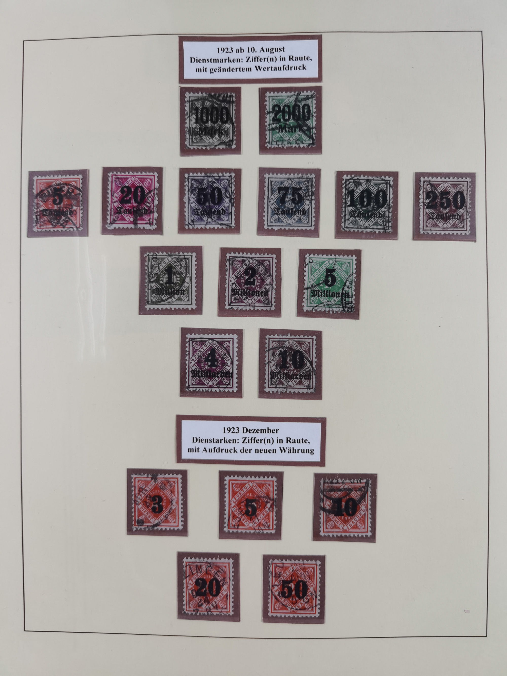 1820/1923, ungebrauchter und meist gestempelter, umfangreicher Sammlungsbestand von Marken und Briefen, jedes Stück mit ausführlicher Beschriftung auf Karten montiert, dabei Farben, Stempel, schöne Briefstücke, etc., auch einiges signiert BPP. In 6 kleinen Holzkisten.