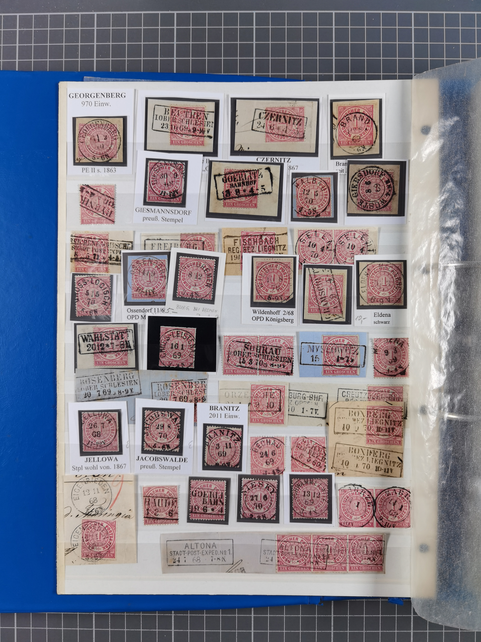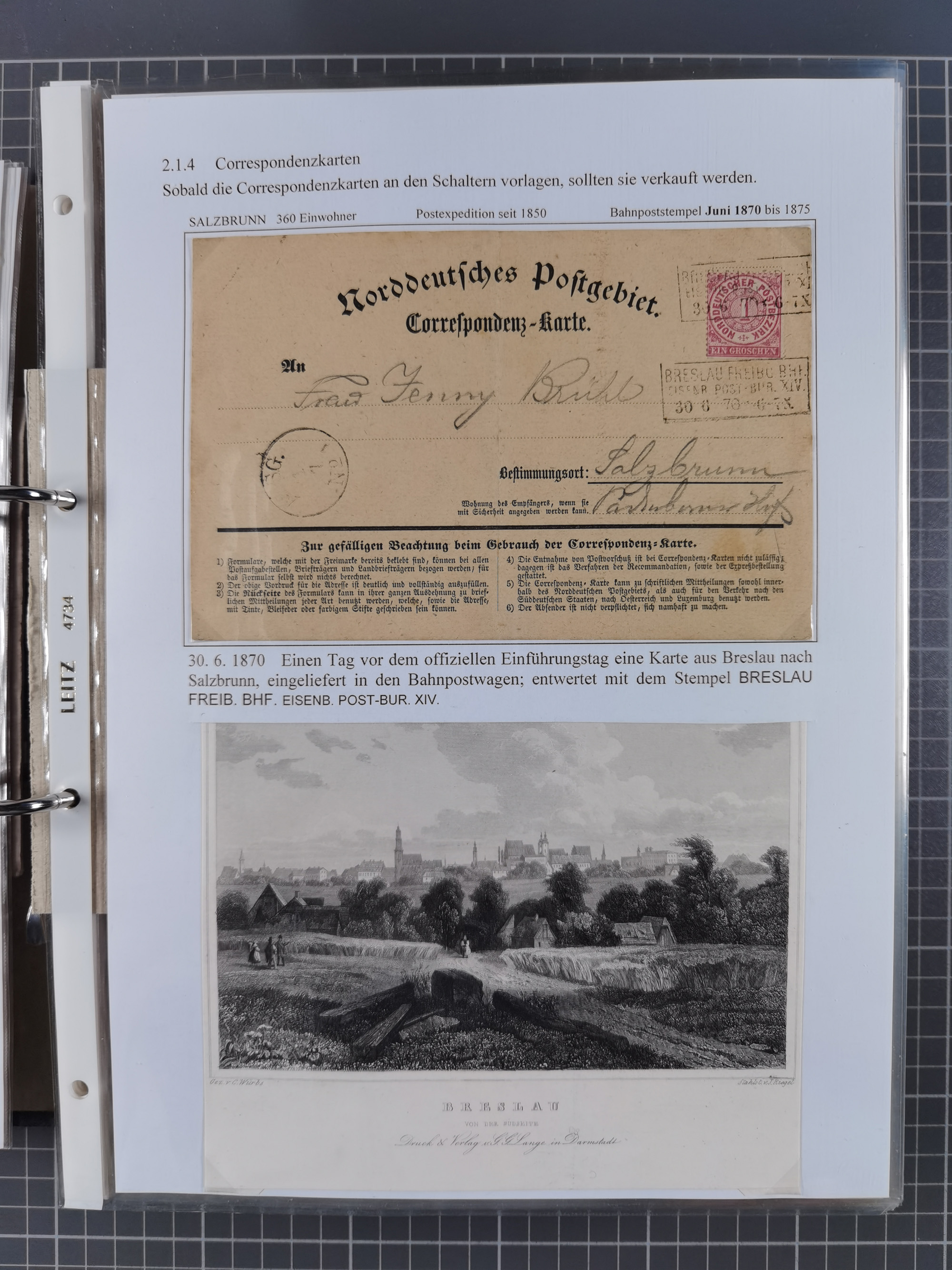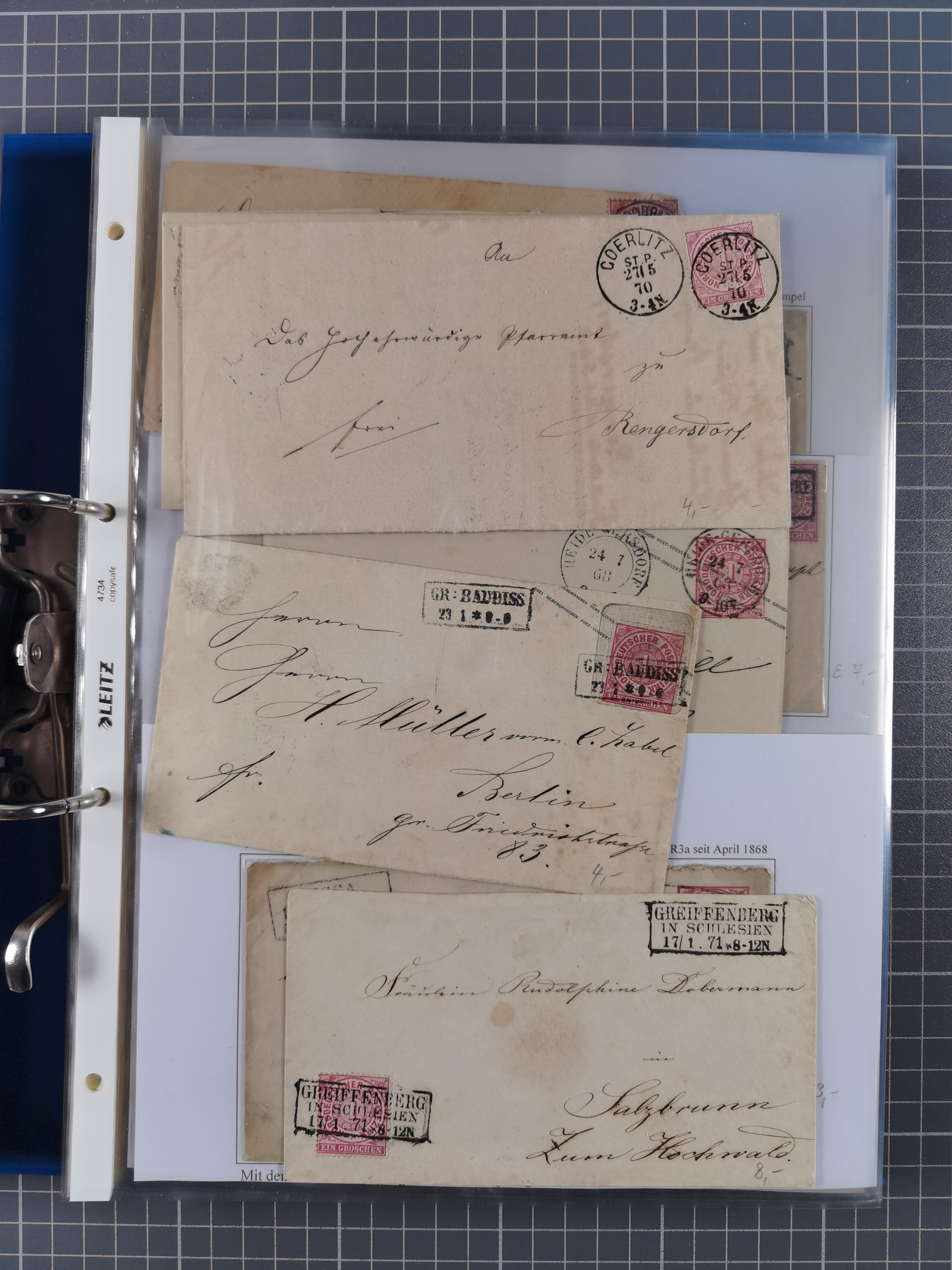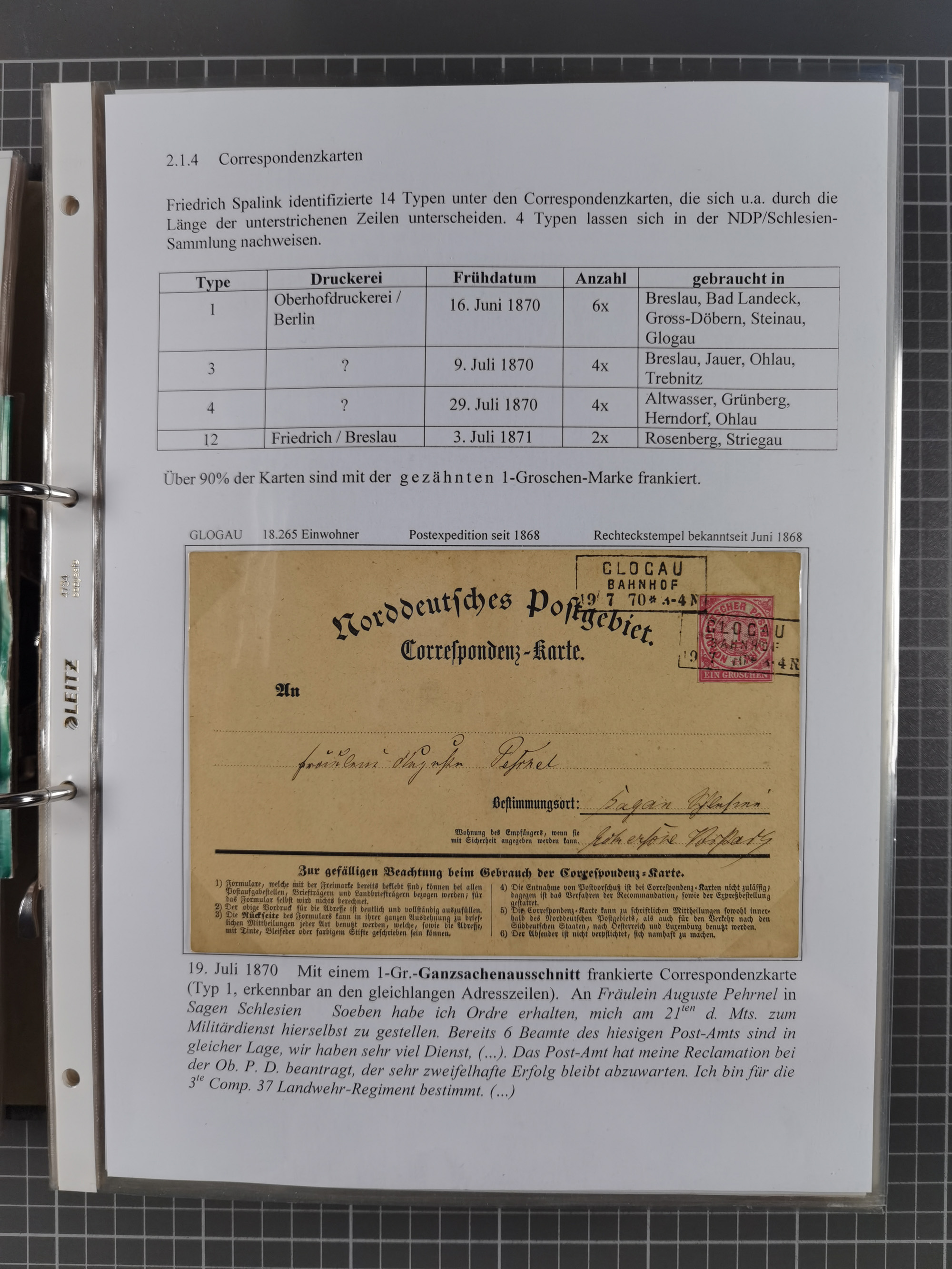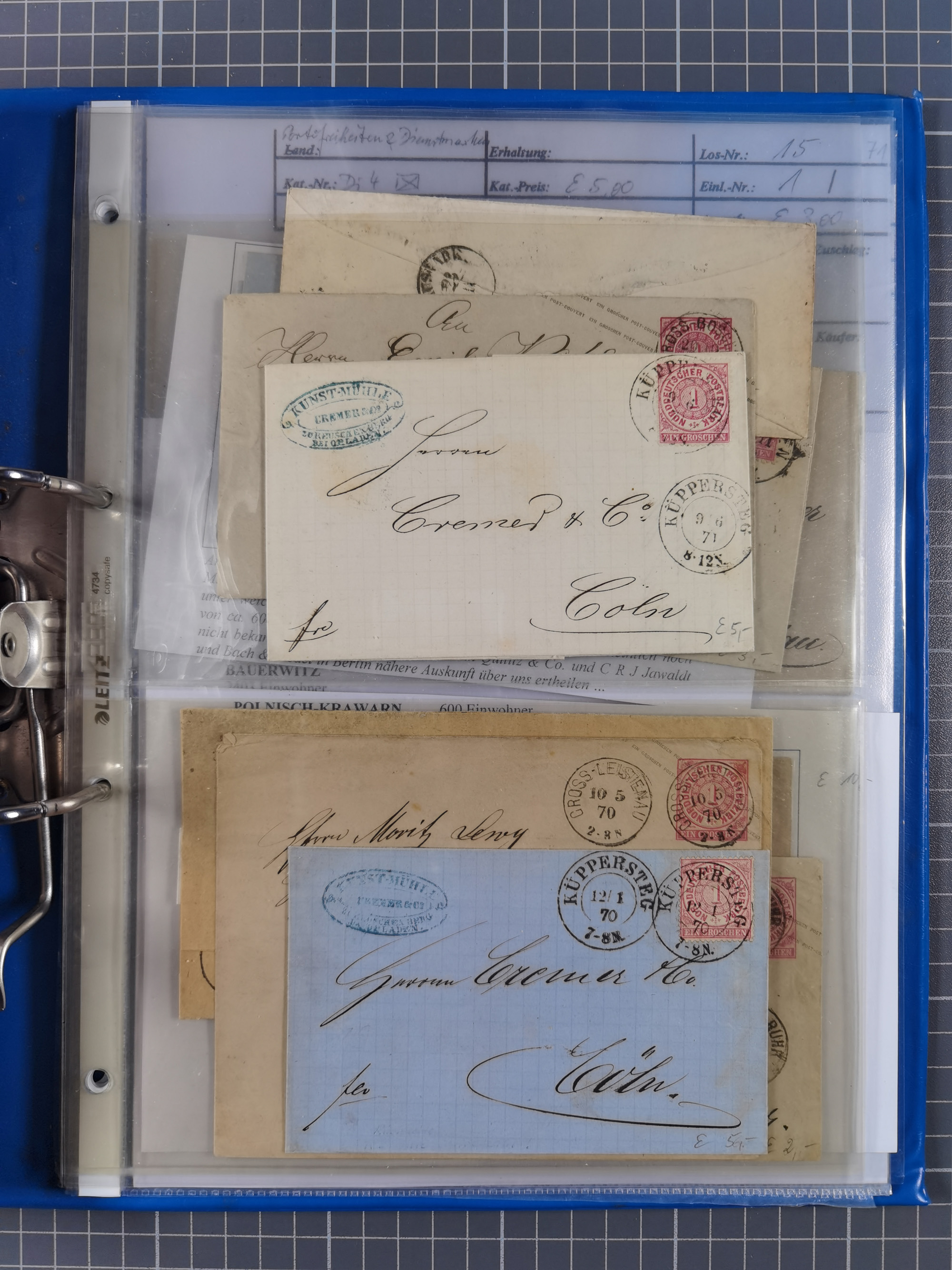 1868/71, 'Die Norddeutsche Post in Schlesien', Ausstellungssammlung mit rund 160 Belegen, dabei viele Besonderheiten, Ersttagsbriefe der Mi. 3 und 4, Orts-R-Brief von Breslau, 2 Express-Karten, viele Paketbegleit- und Wertsendungen, Teil- und Mischfrankaturen, frankierte Postanweisung, Reco-Brief an den preußischen König, Auslandsbriefe u.a. nach Schweden und Konstantinopel, Drucksache nach Italien und Briefvorderseite ans Kap der Guten Hoffnung, interessanter Teil Krieg 1870/71 mit u.a. Ballon Monte-Briefen an bzw. von Kriegsgefangenen, etc. etc. Dazu ein Ordner mit zusätzlichem Material. Ein sehr interessantes und reichhaltiges Objekt.