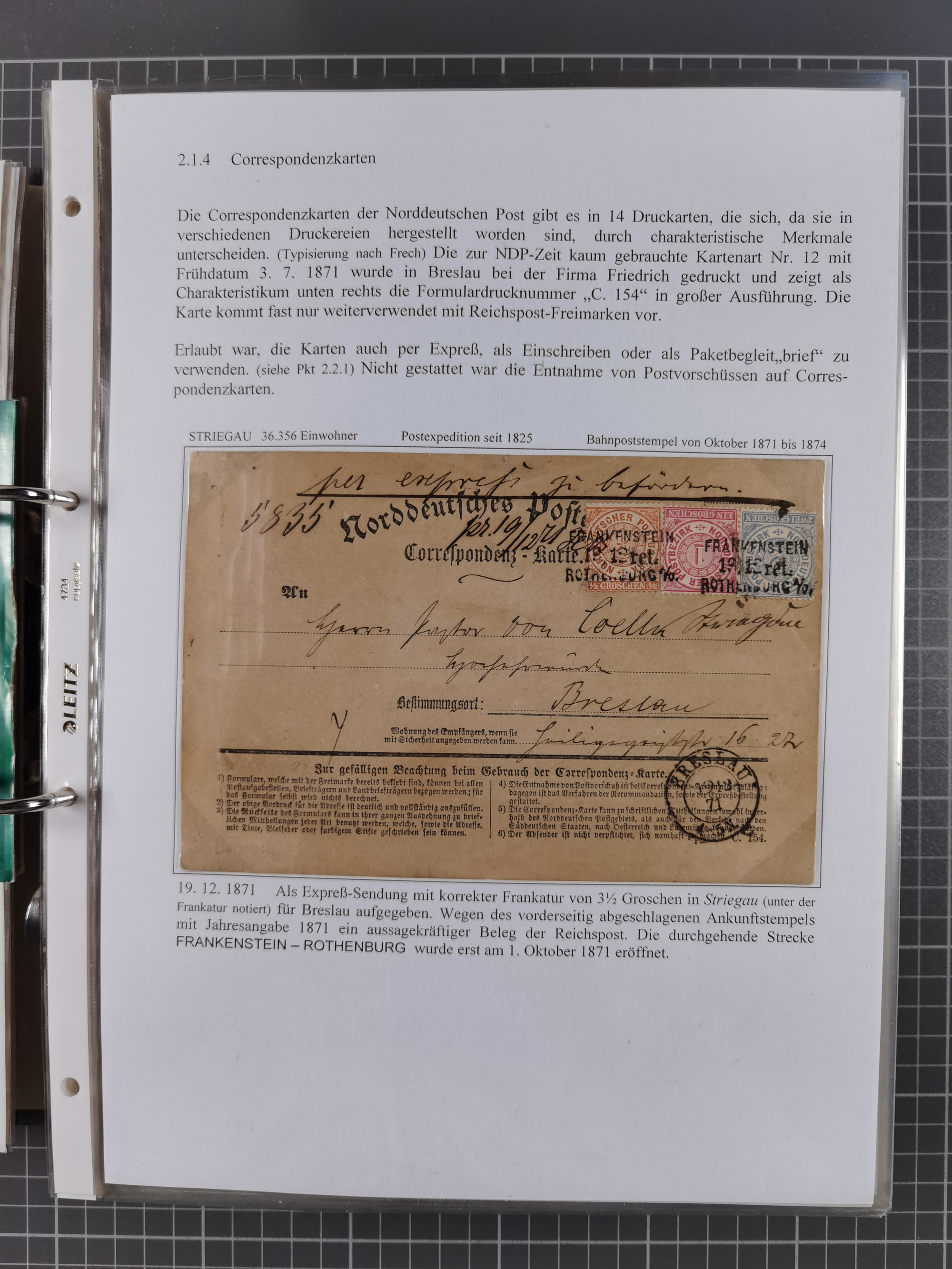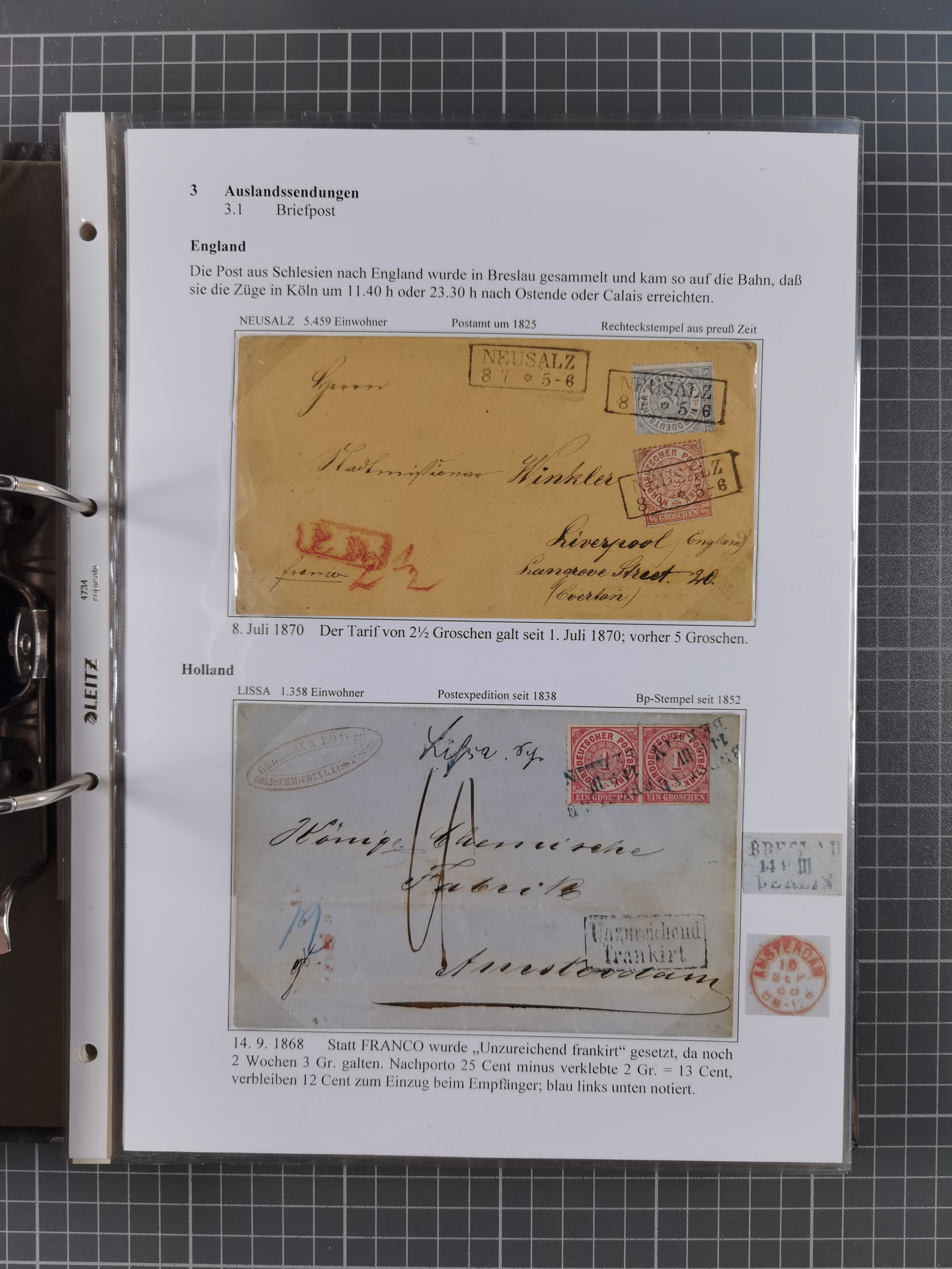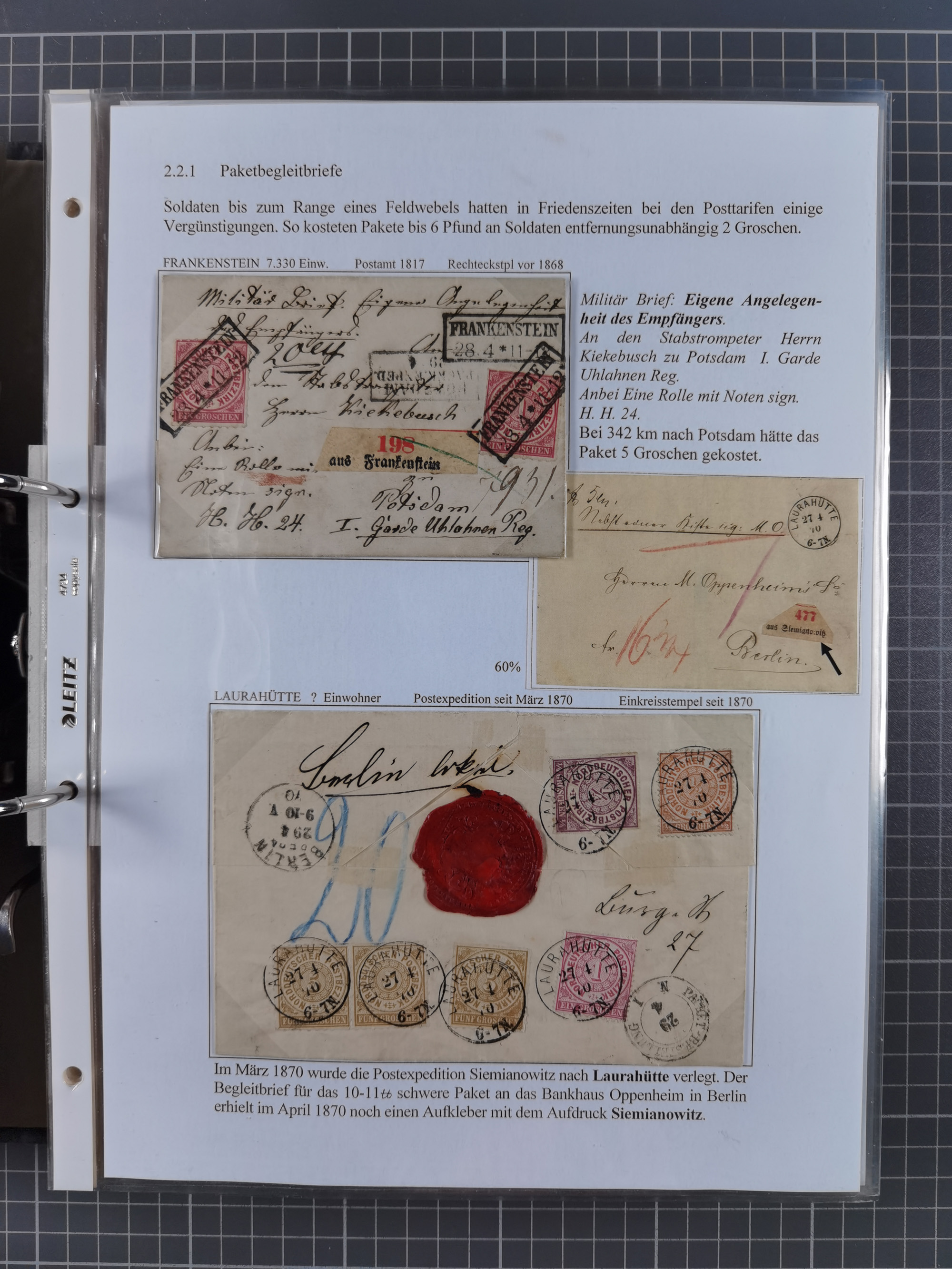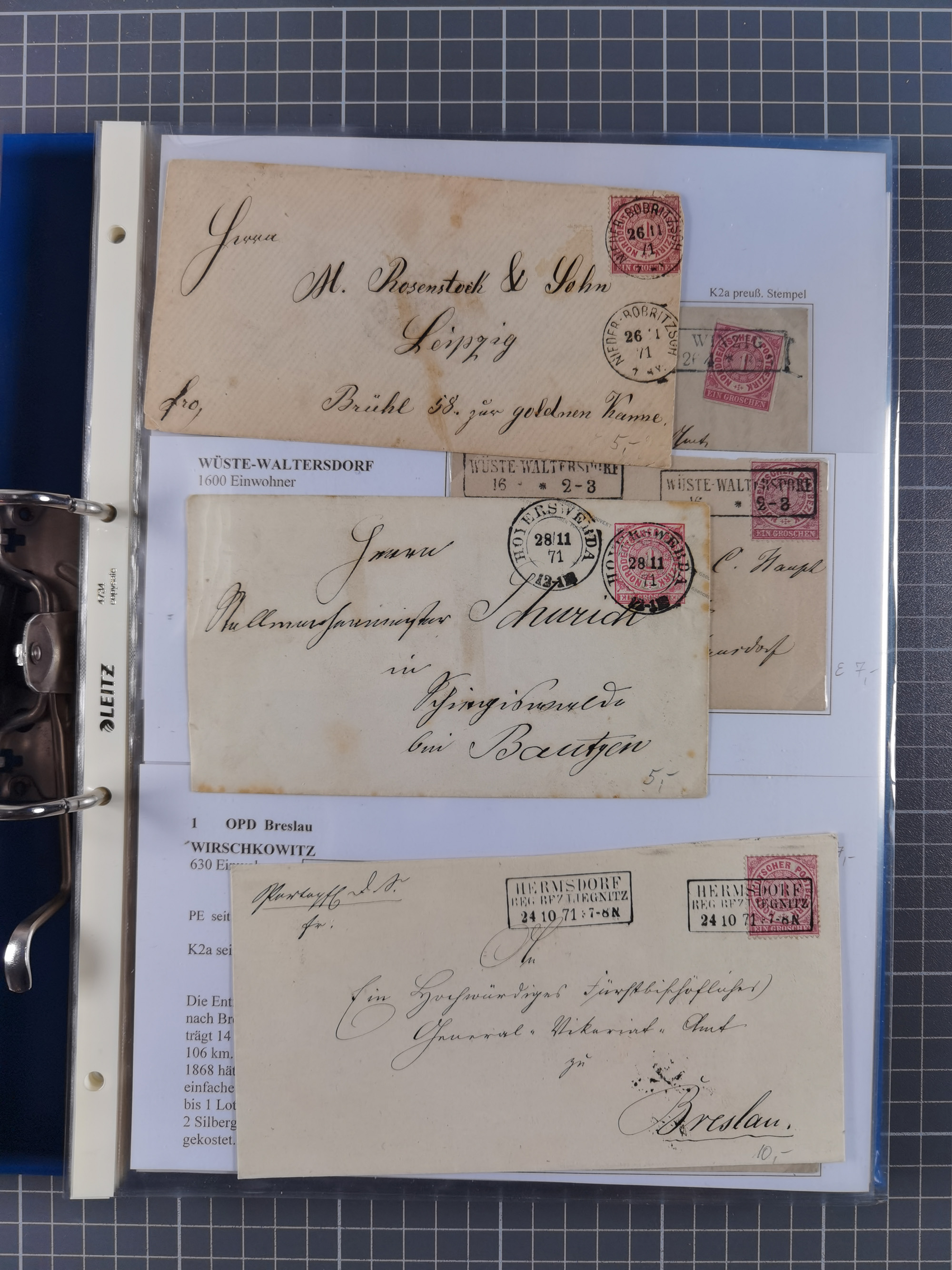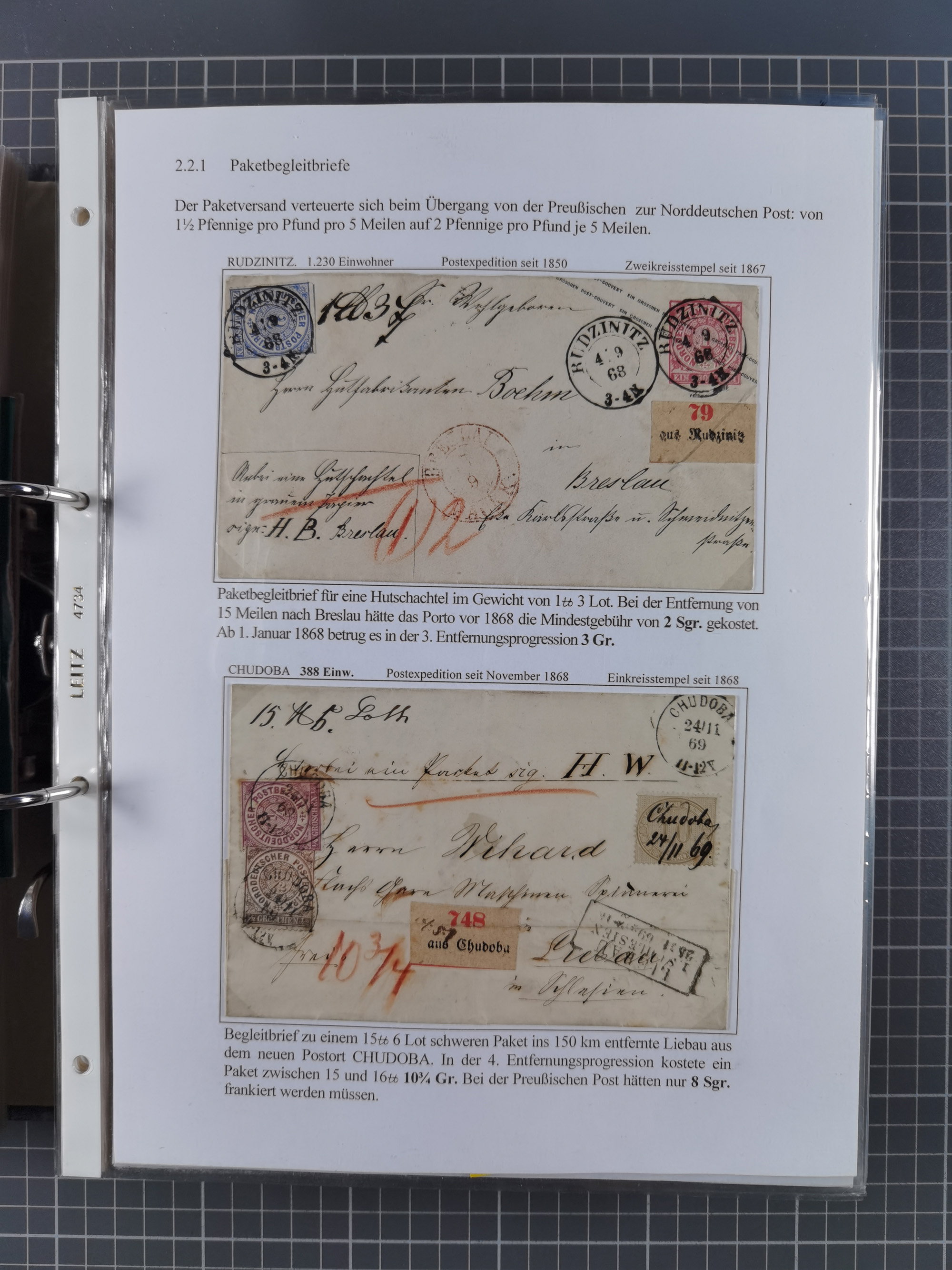 1868/71, 'Die Norddeutsche Post in Schlesien', Ausstellungssammlung mit rund 160 Belegen, dabei viele Besonderheiten, Ersttagsbriefe der Mi. 3 und 4, Orts-R-Brief von Breslau, 2 Express-Karten, viele Paketbegleit- und Wertsendungen, Teil- und Mischfrankaturen, frankierte Postanweisung, Reco-Brief an den preußischen König, Auslandsbriefe u.a. nach Schweden und Konstantinopel, Drucksache nach Italien und Briefvorderseite ans Kap der Guten Hoffnung, interessanter Teil Krieg 1870/71 mit u.a. Ballon Monte-Briefen an bzw. von Kriegsgefangenen, etc. etc. Dazu ein Ordner mit zusätzlichem Material. Ein sehr interessantes und reichhaltiges Objekt.