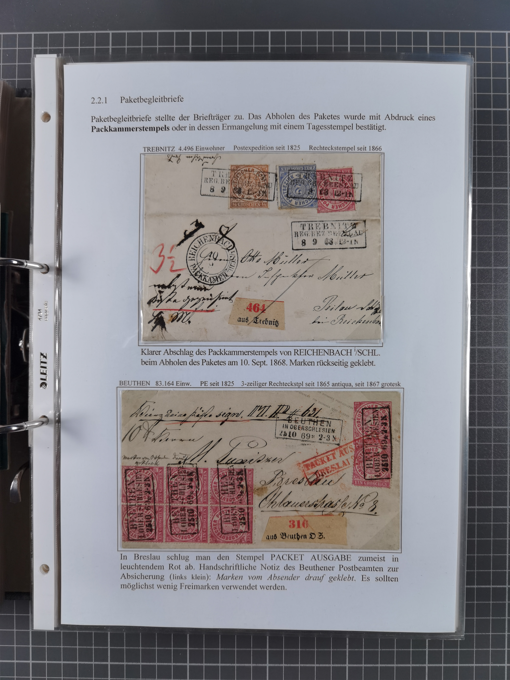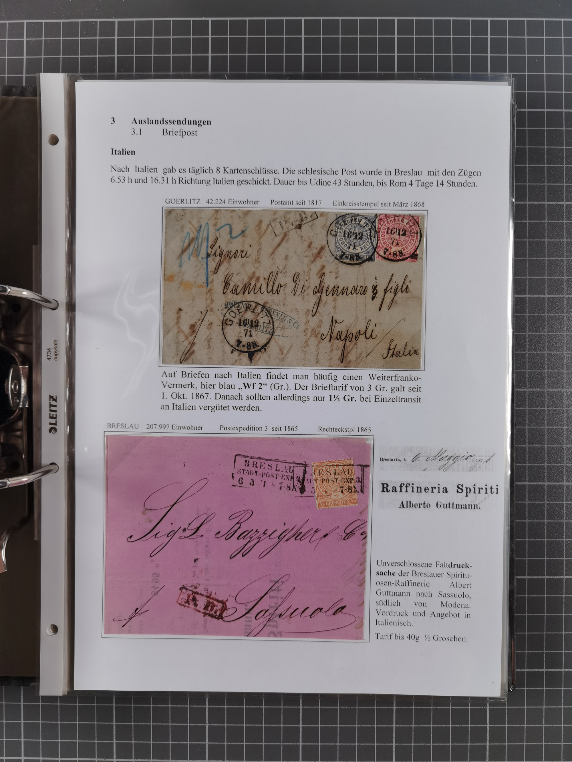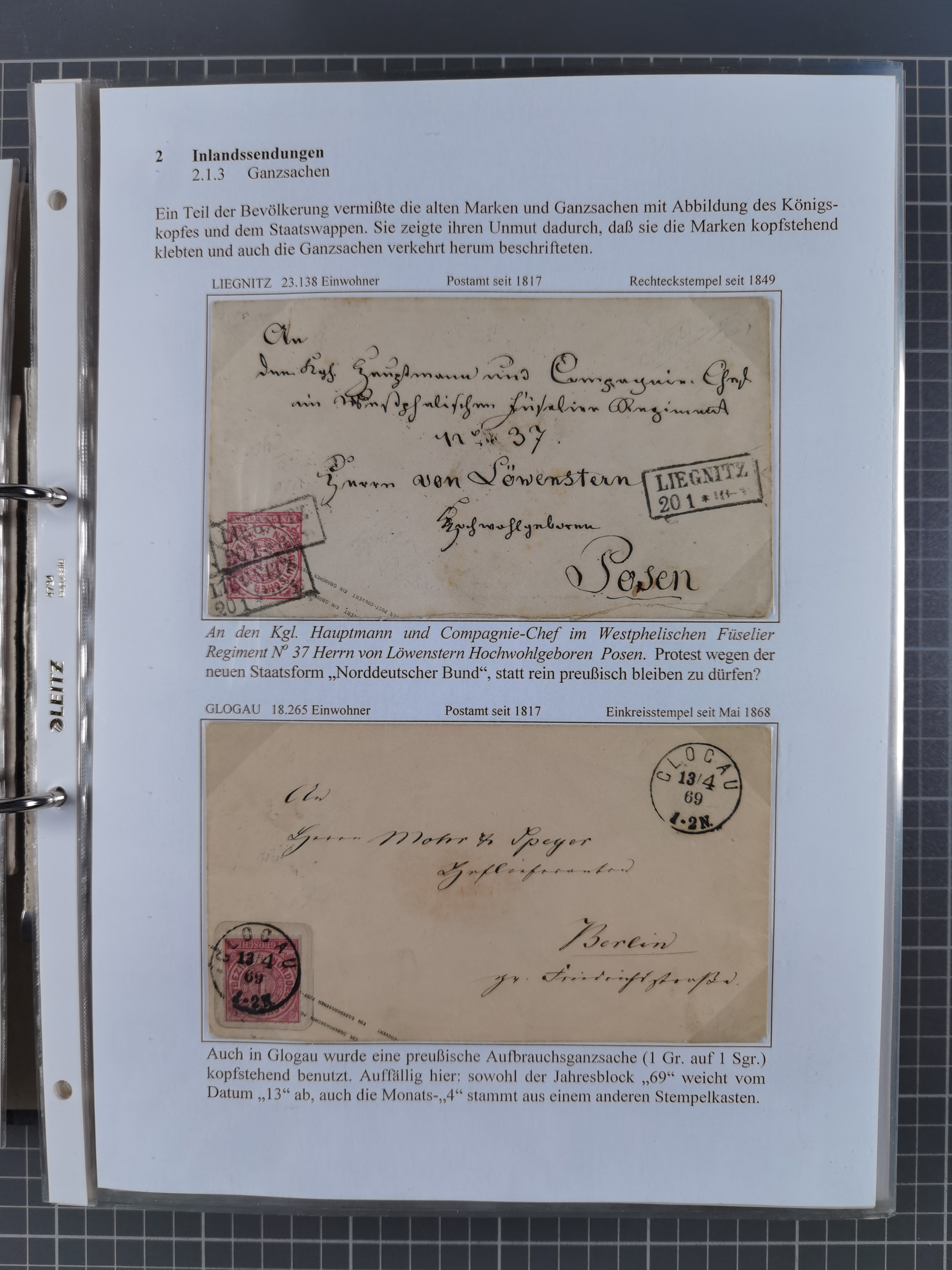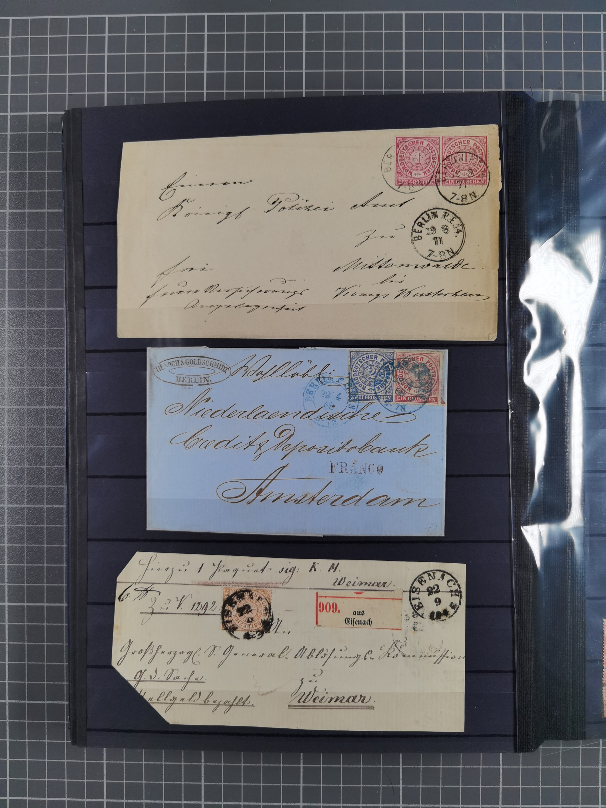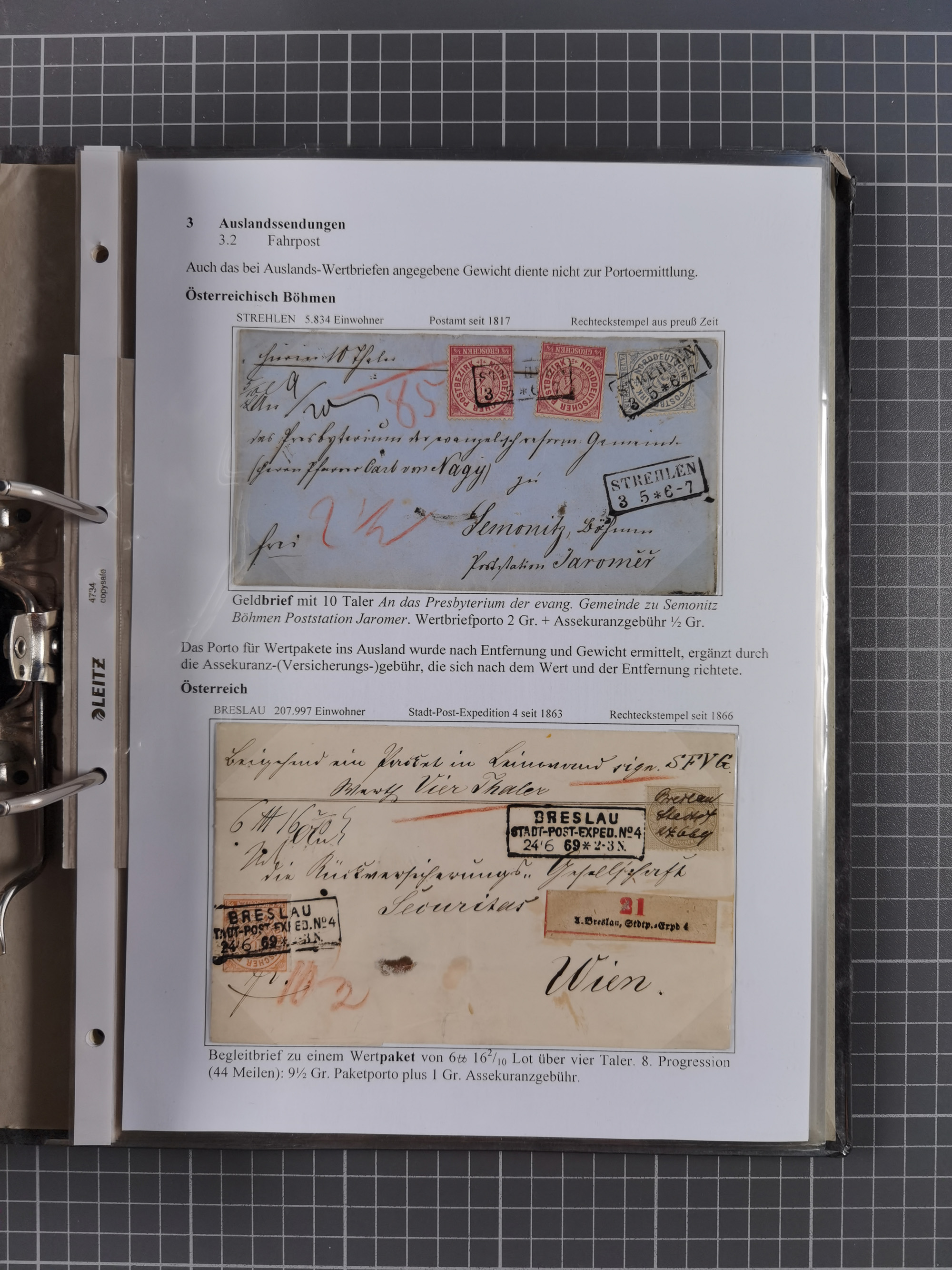 1868/71, 'Die Norddeutsche Post in Schlesien', Ausstellungssammlung mit rund 160 Belegen, dabei viele Besonderheiten, Ersttagsbriefe der Mi. 3 und 4, Orts-R-Brief von Breslau, 2 Express-Karten, viele Paketbegleit- und Wertsendungen, Teil- und Mischfrankaturen, frankierte Postanweisung, Reco-Brief an den preußischen König, Auslandsbriefe u.a. nach Schweden und Konstantinopel, Drucksache nach Italien und Briefvorderseite ans Kap der Guten Hoffnung, interessanter Teil Krieg 1870/71 mit u.a. Ballon Monte-Briefen an bzw. von Kriegsgefangenen, etc. etc. Dazu ein Ordner mit zusätzlichem Material. Ein sehr interessantes und reichhaltiges Objekt.