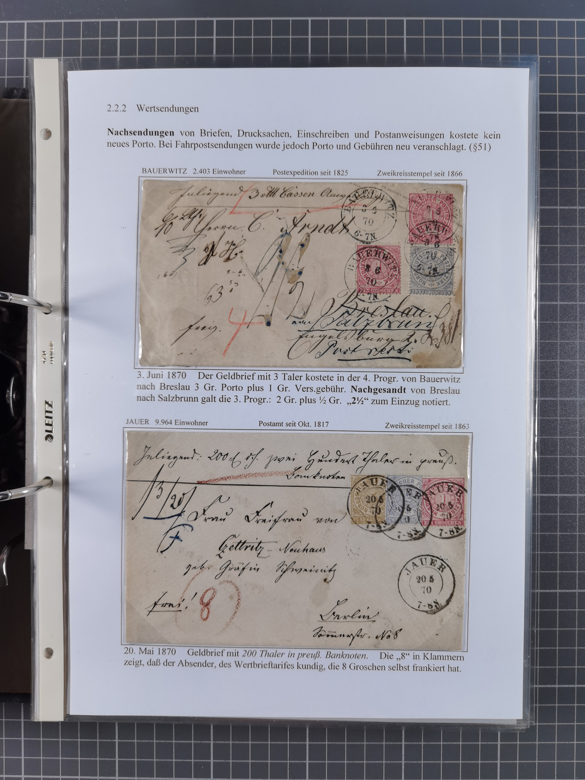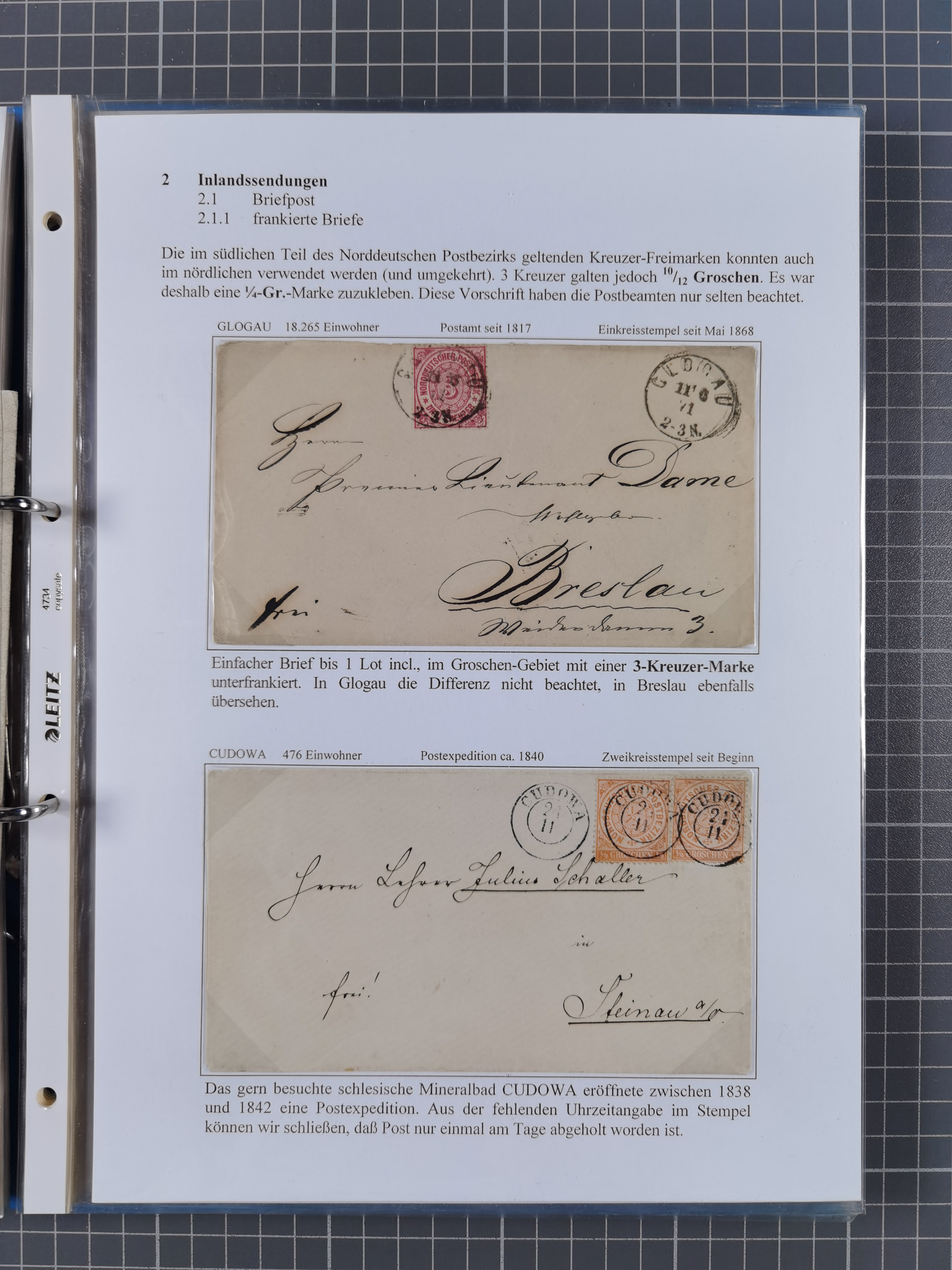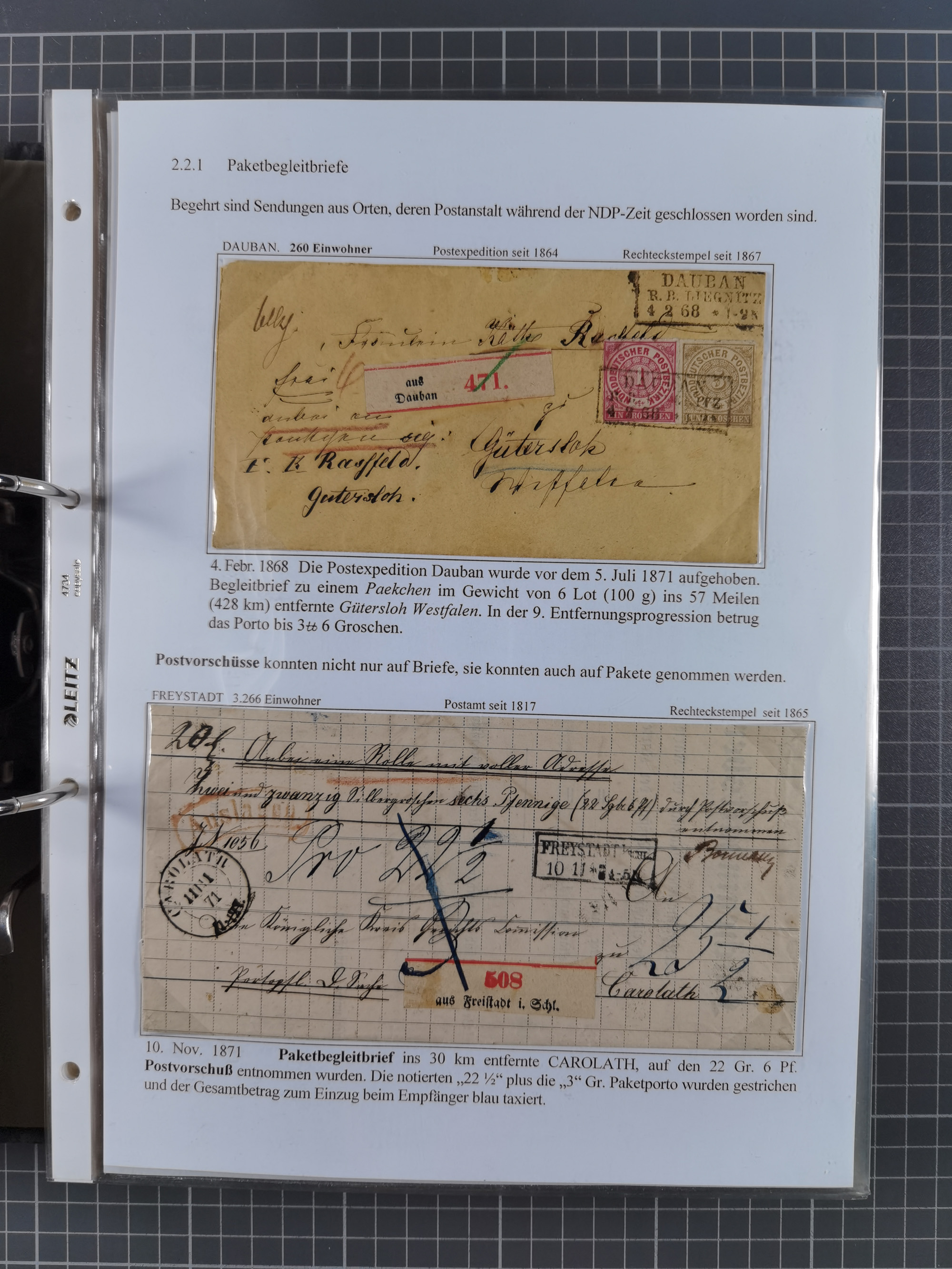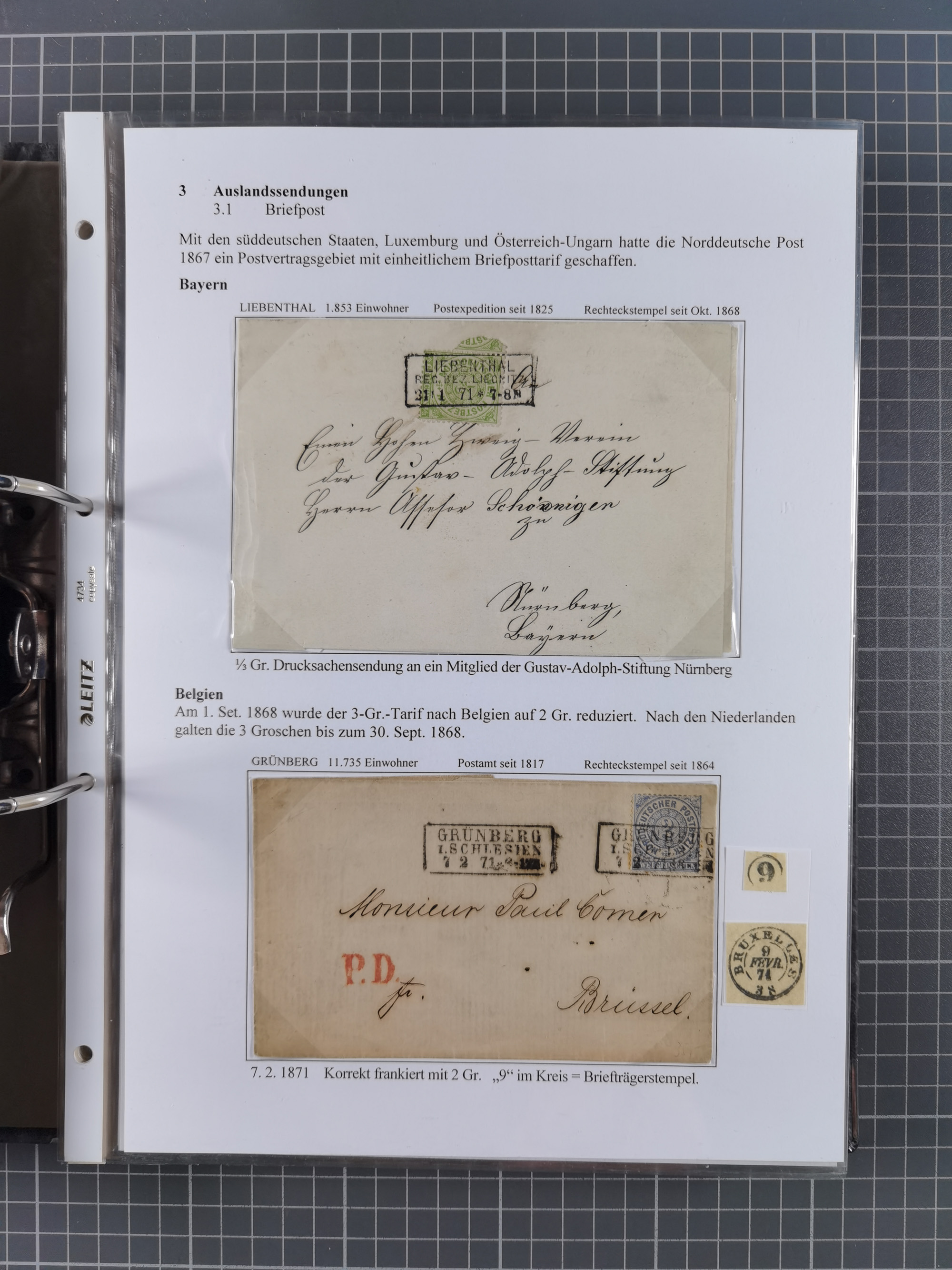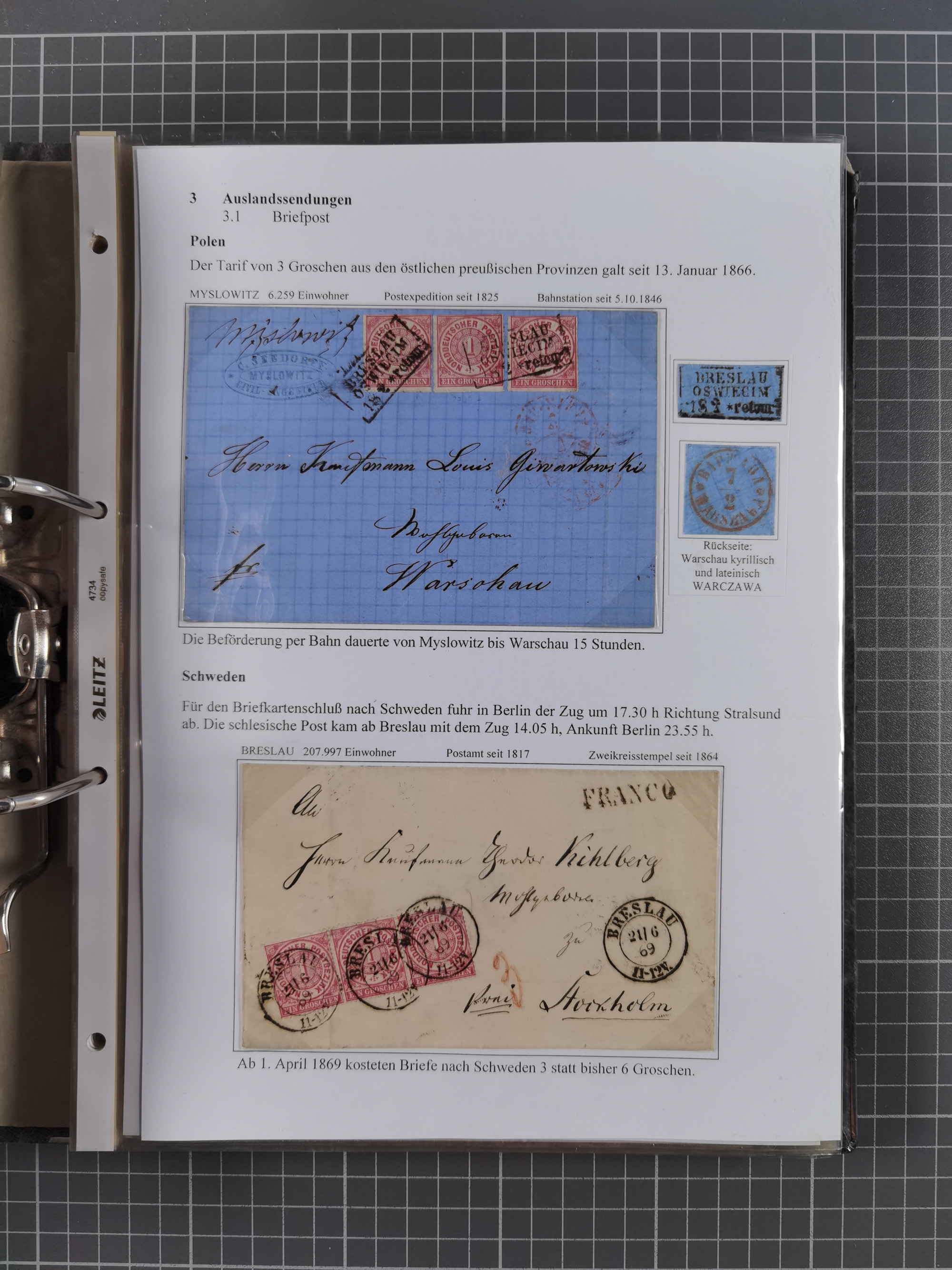 1868/71, 'Die Norddeutsche Post in Schlesien', Ausstellungssammlung mit rund 160 Belegen, dabei viele Besonderheiten, Ersttagsbriefe der Mi. 3 und 4, Orts-R-Brief von Breslau, 2 Express-Karten, viele Paketbegleit- und Wertsendungen, Teil- und Mischfrankaturen, frankierte Postanweisung, Reco-Brief an den preußischen König, Auslandsbriefe u.a. nach Schweden und Konstantinopel, Drucksache nach Italien und Briefvorderseite ans Kap der Guten Hoffnung, interessanter Teil Krieg 1870/71 mit u.a. Ballon Monte-Briefen an bzw. von Kriegsgefangenen, etc. etc. Dazu ein Ordner mit zusätzlichem Material. Ein sehr interessantes und reichhaltiges Objekt.