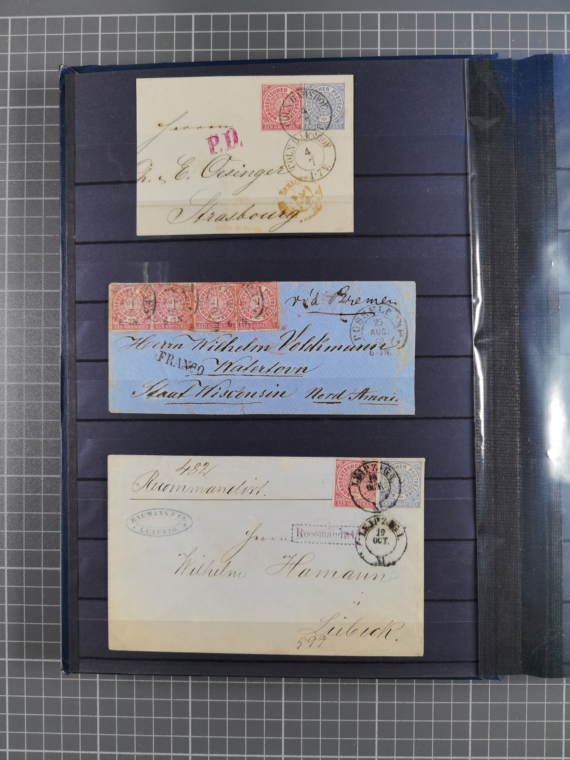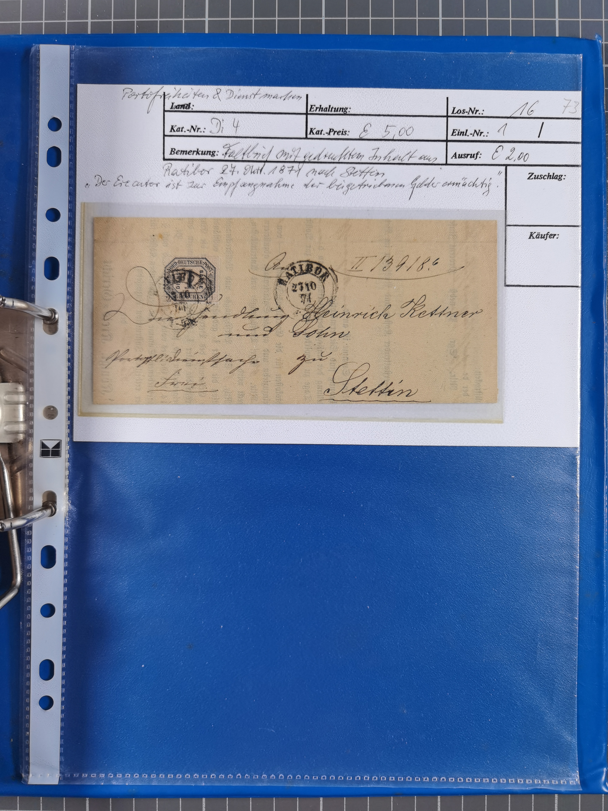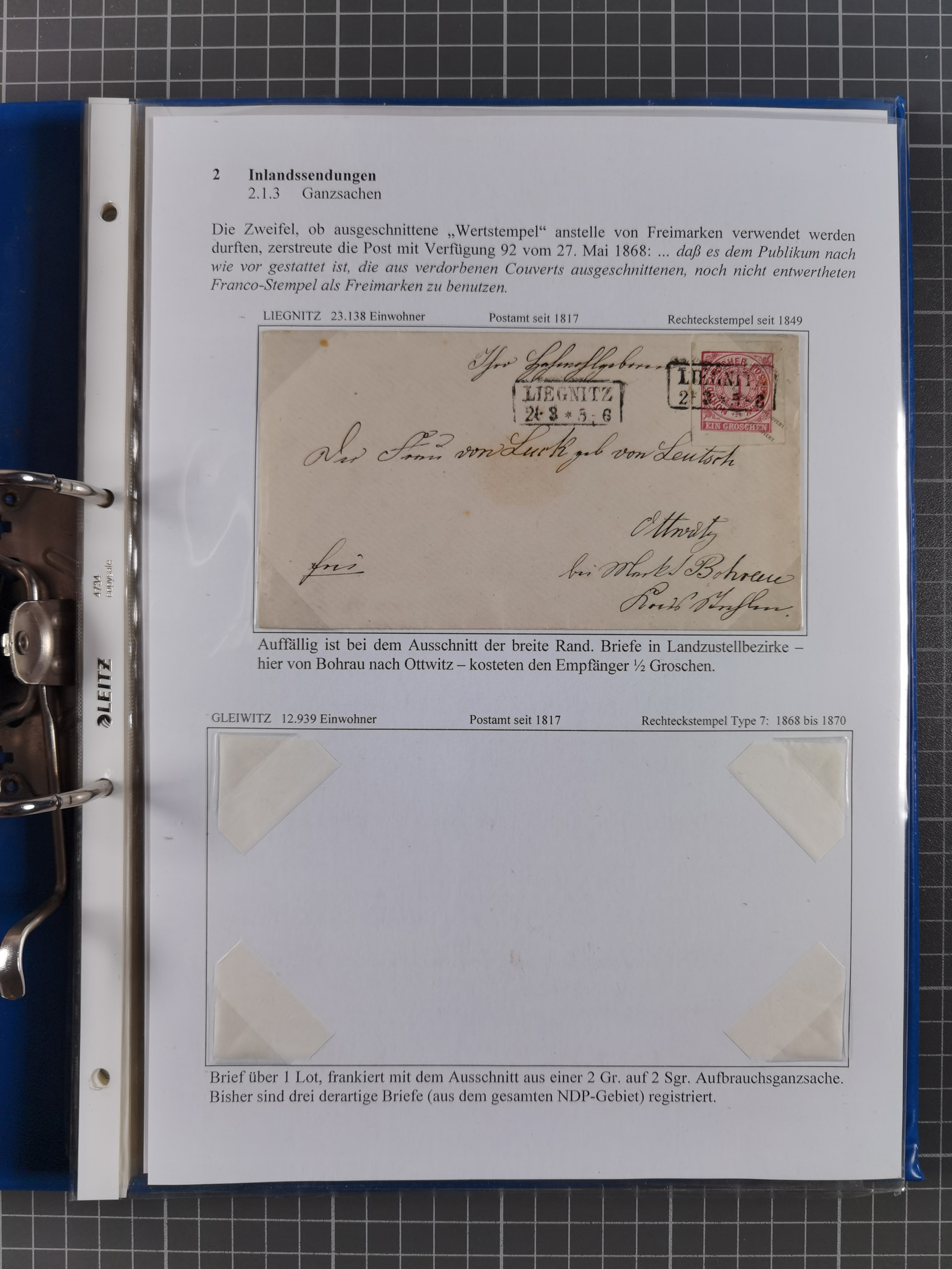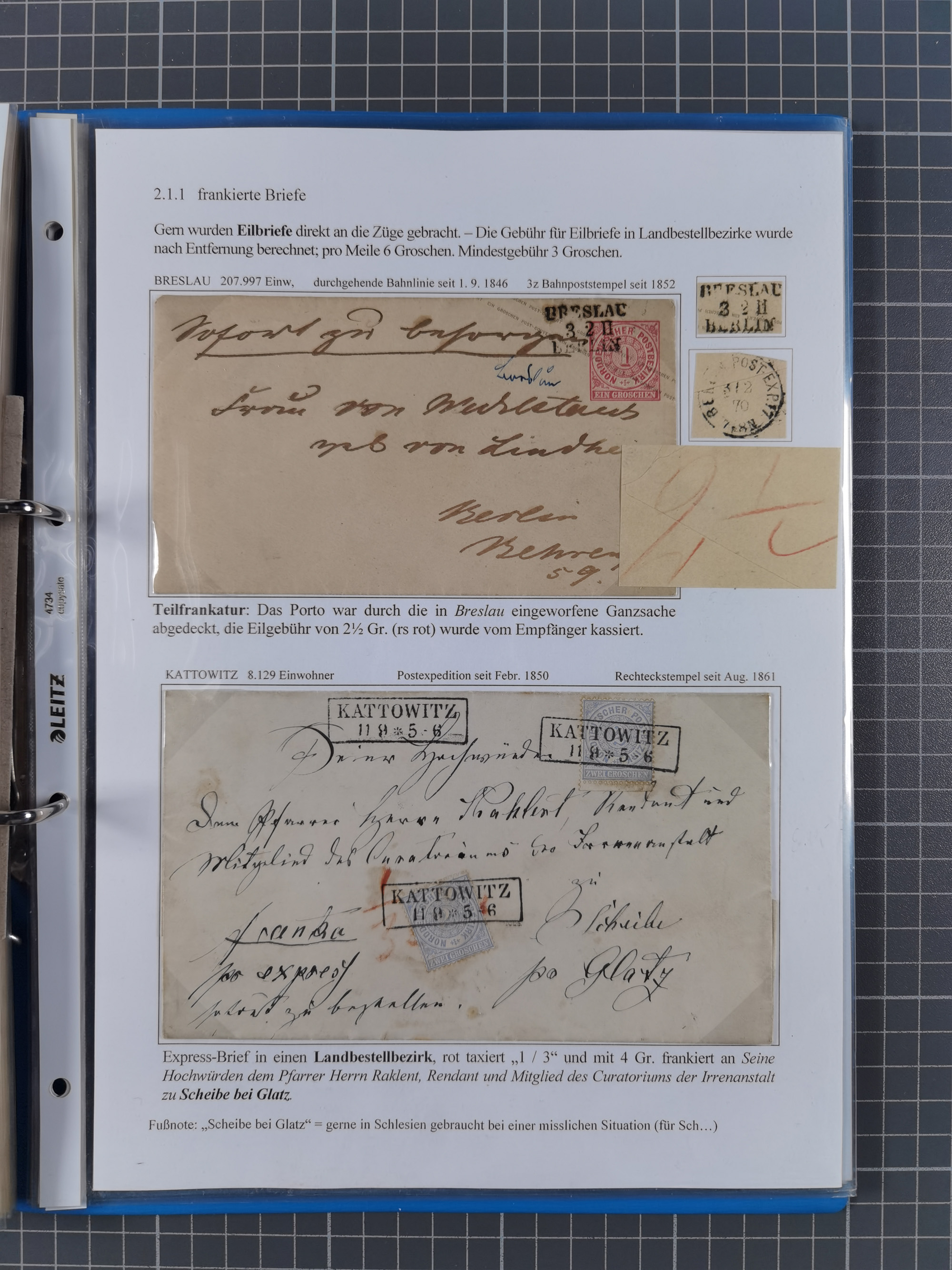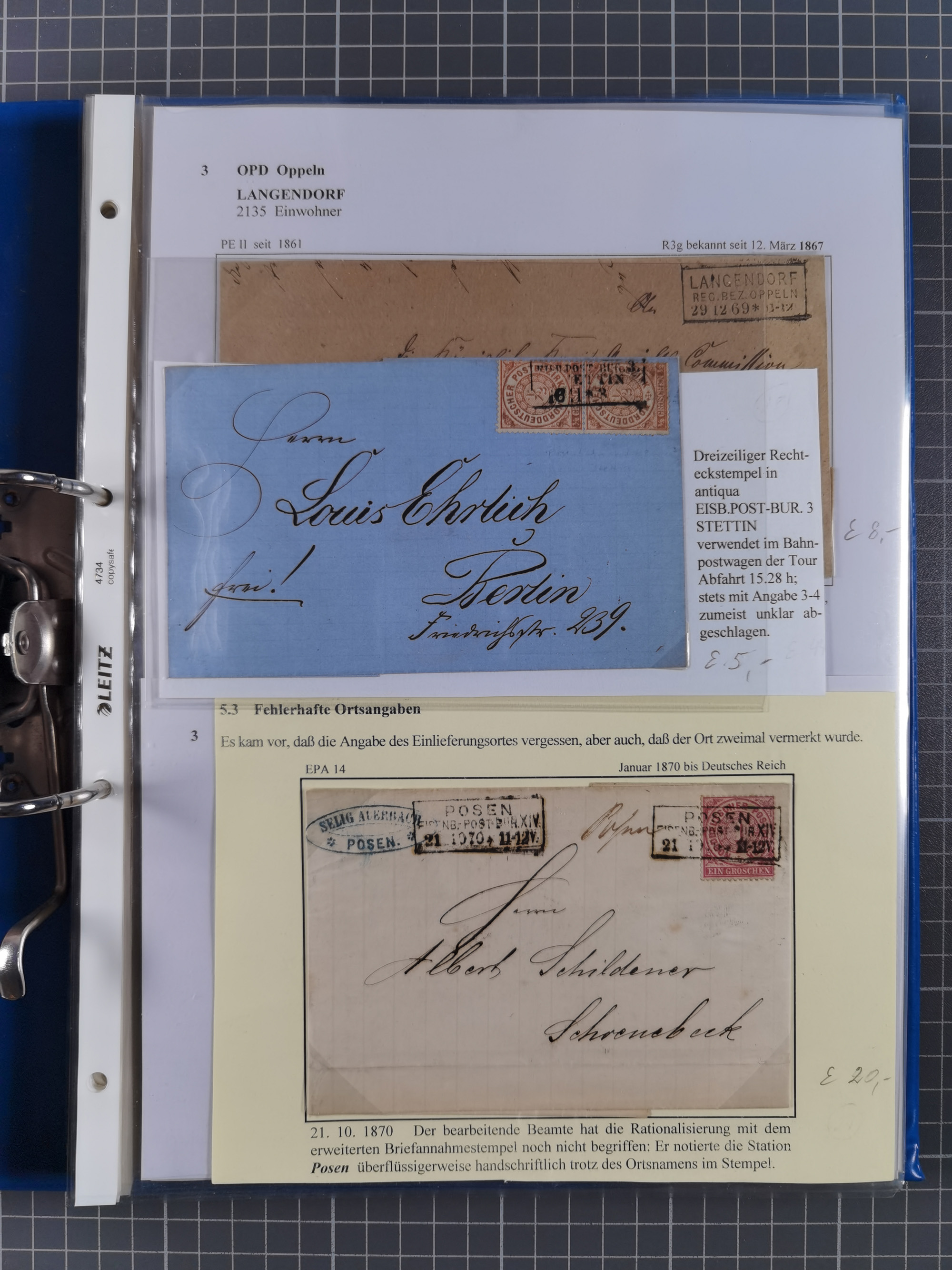 1868/71, 'Die Norddeutsche Post in Schlesien', Ausstellungssammlung mit rund 160 Belegen, dabei viele Besonderheiten, Ersttagsbriefe der Mi. 3 und 4, Orts-R-Brief von Breslau, 2 Express-Karten, viele Paketbegleit- und Wertsendungen, Teil- und Mischfrankaturen, frankierte Postanweisung, Reco-Brief an den preußischen König, Auslandsbriefe u.a. nach Schweden und Konstantinopel, Drucksache nach Italien und Briefvorderseite ans Kap der Guten Hoffnung, interessanter Teil Krieg 1870/71 mit u.a. Ballon Monte-Briefen an bzw. von Kriegsgefangenen, etc. etc. Dazu ein Ordner mit zusätzlichem Material. Ein sehr interessantes und reichhaltiges Objekt.