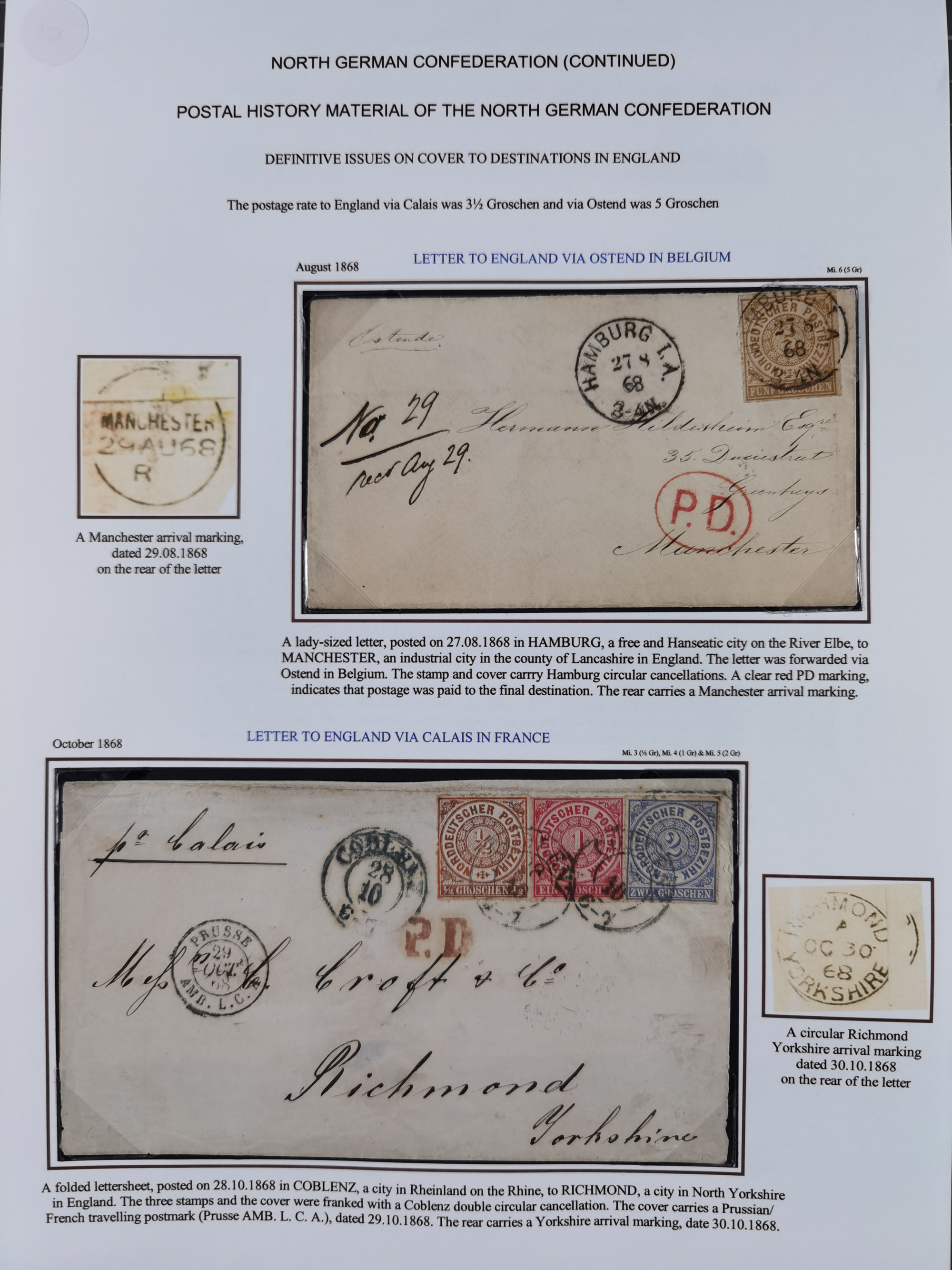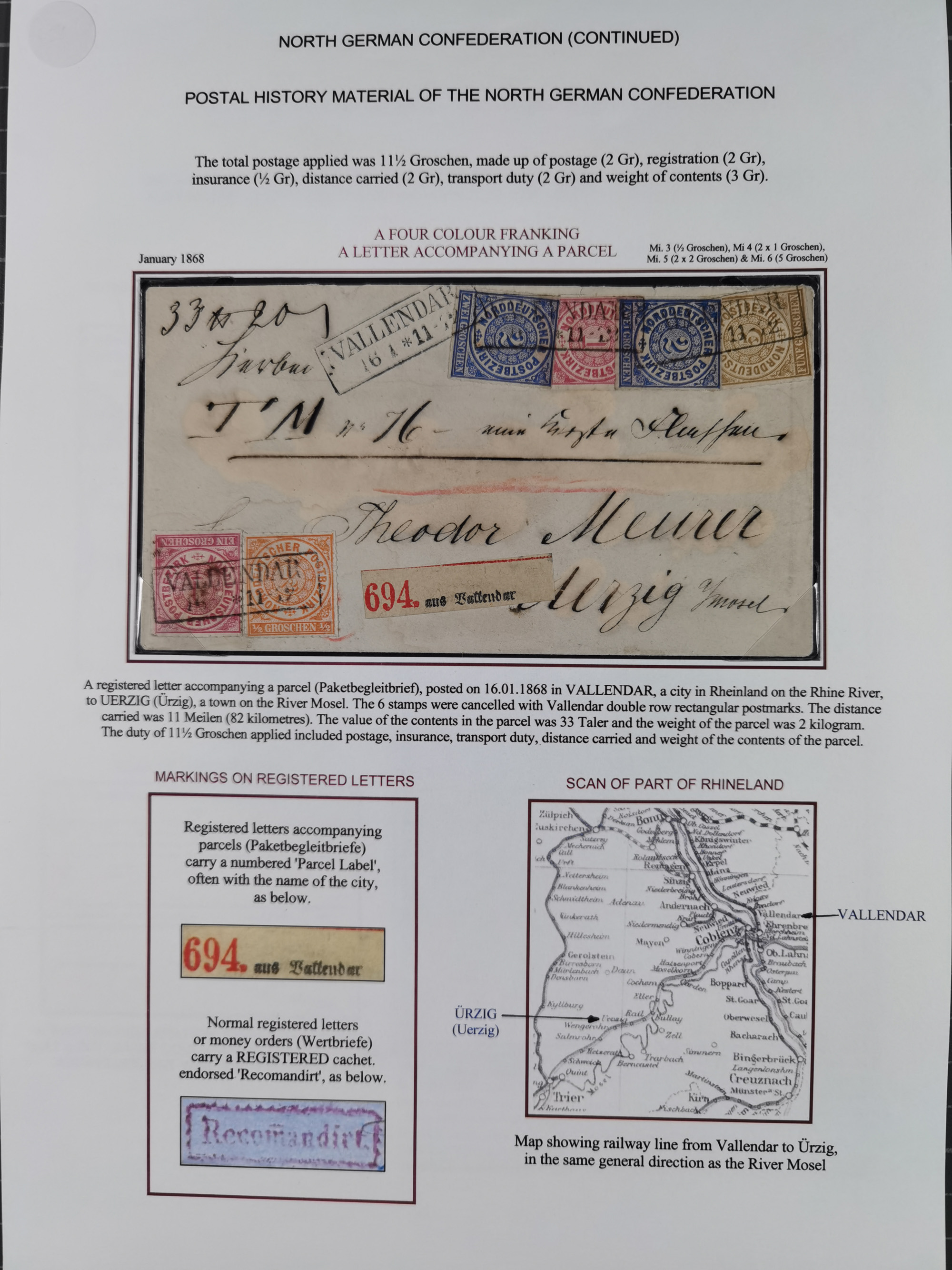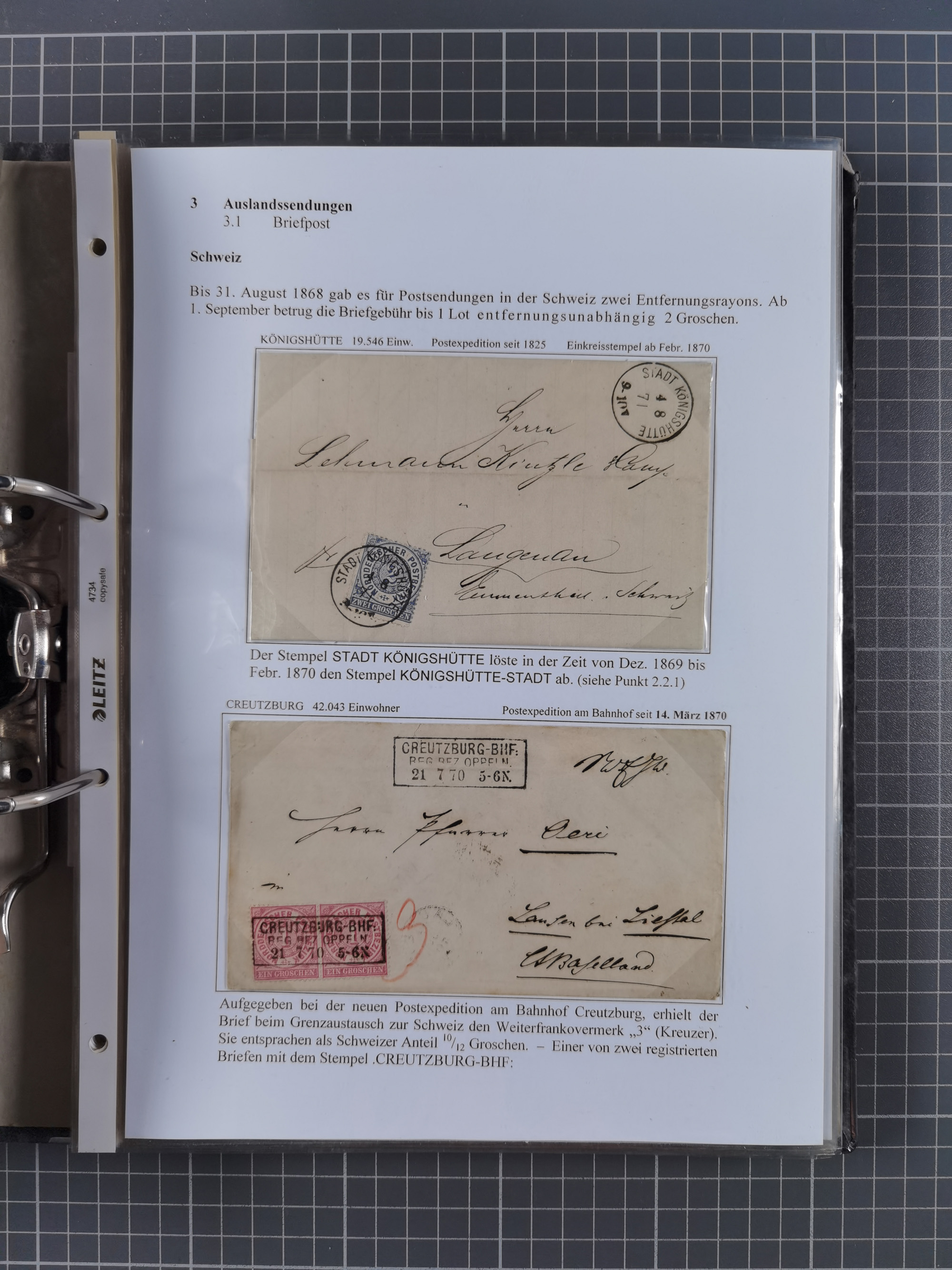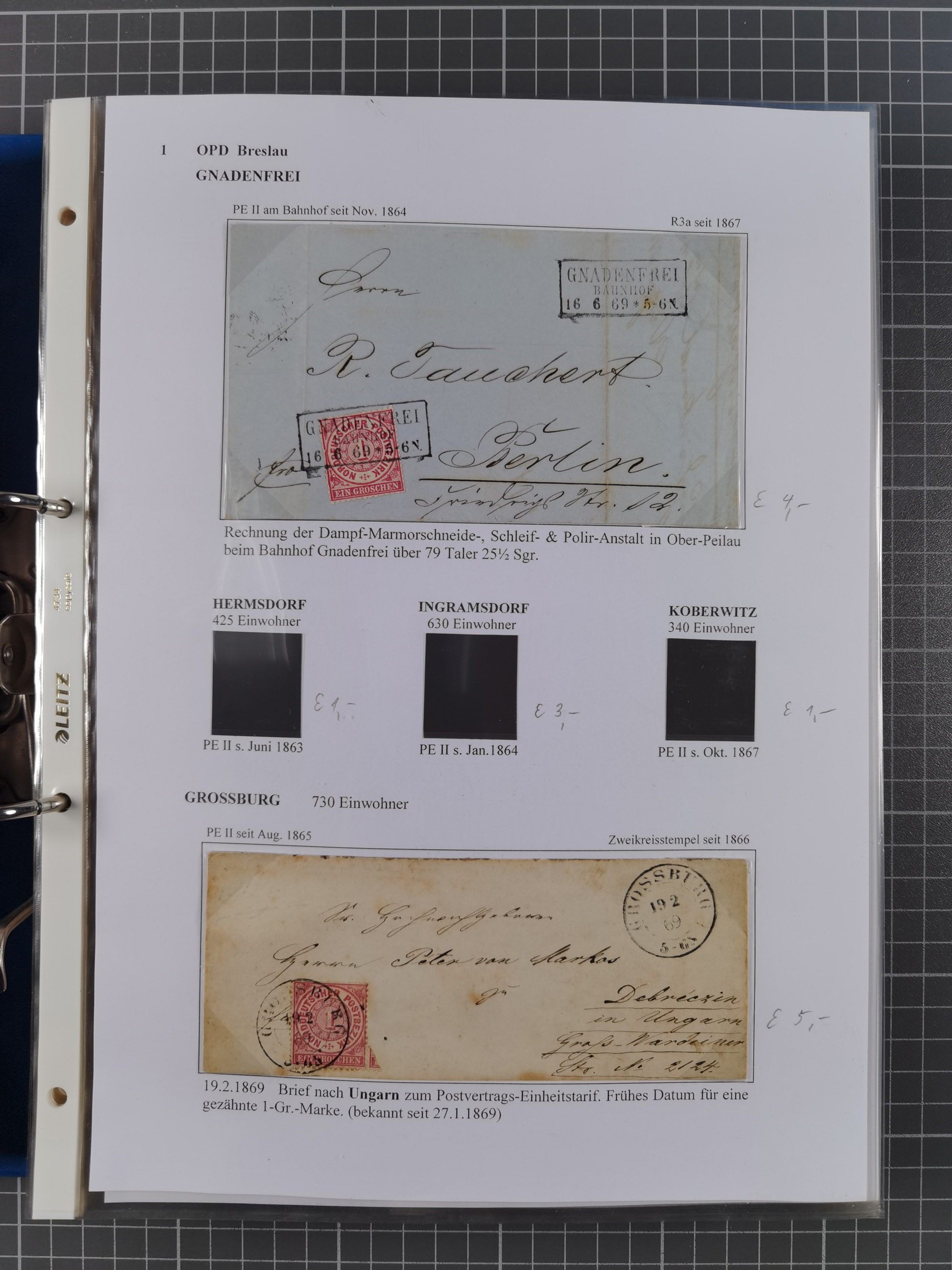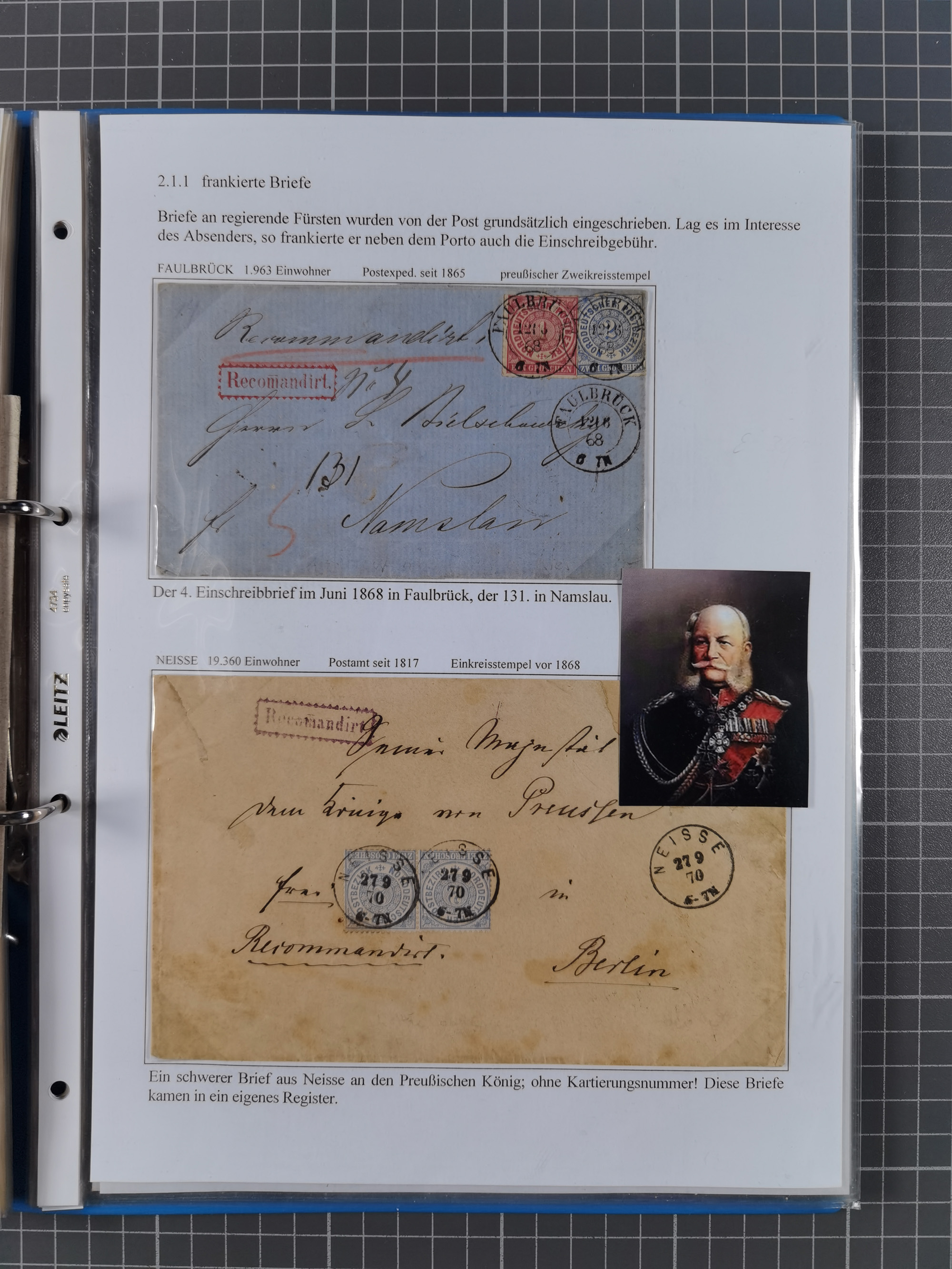 1868/71, 'Die Norddeutsche Post in Schlesien', Ausstellungssammlung mit rund 160 Belegen, dabei viele Besonderheiten, Ersttagsbriefe der Mi. 3 und 4, Orts-R-Brief von Breslau, 2 Express-Karten, viele Paketbegleit- und Wertsendungen, Teil- und Mischfrankaturen, frankierte Postanweisung, Reco-Brief an den preußischen König, Auslandsbriefe u.a. nach Schweden und Konstantinopel, Drucksache nach Italien und Briefvorderseite ans Kap der Guten Hoffnung, interessanter Teil Krieg 1870/71 mit u.a. Ballon Monte-Briefen an bzw. von Kriegsgefangenen, etc. etc. Dazu ein Ordner mit zusätzlichem Material. Ein sehr interessantes und reichhaltiges Objekt.
