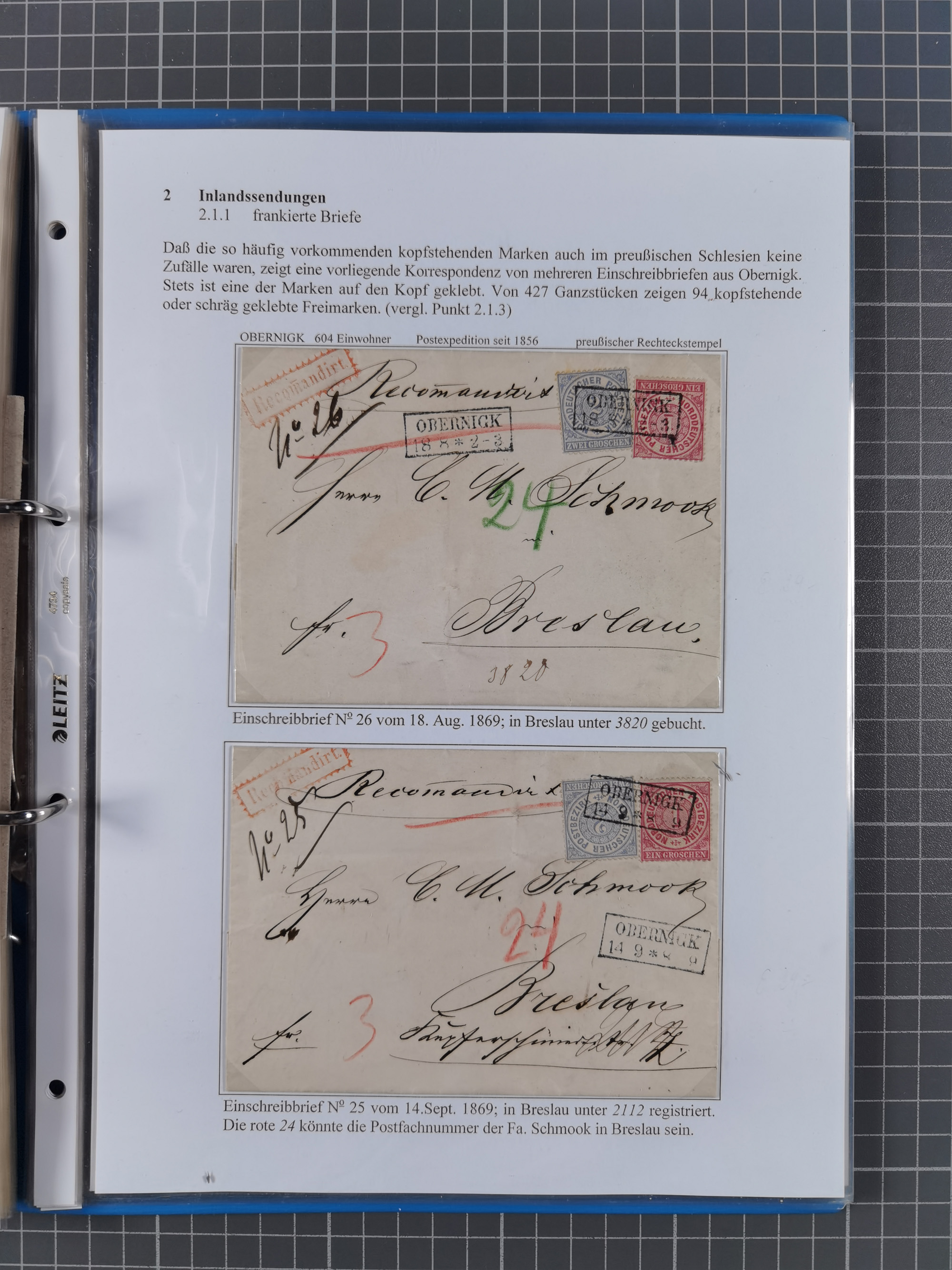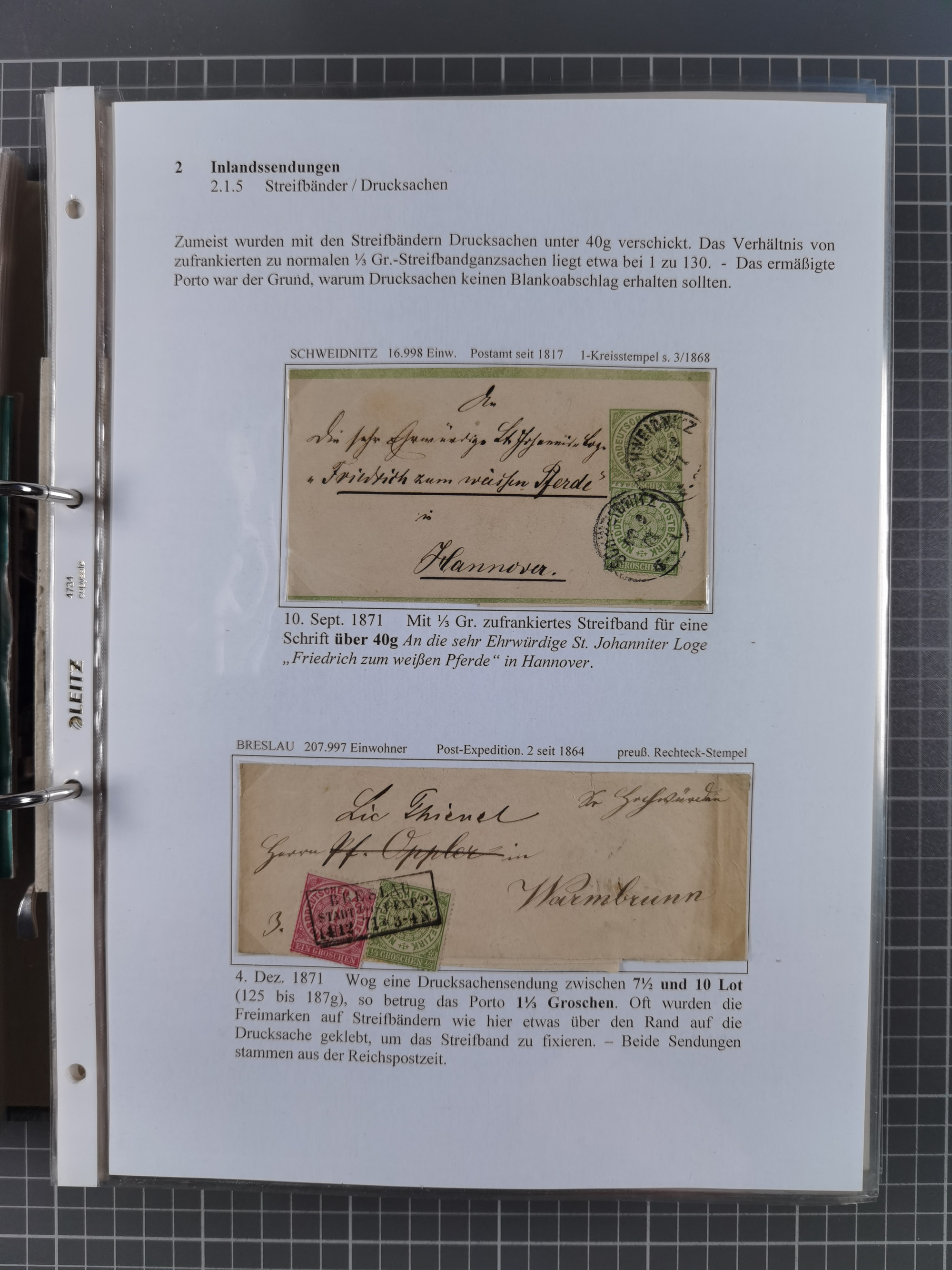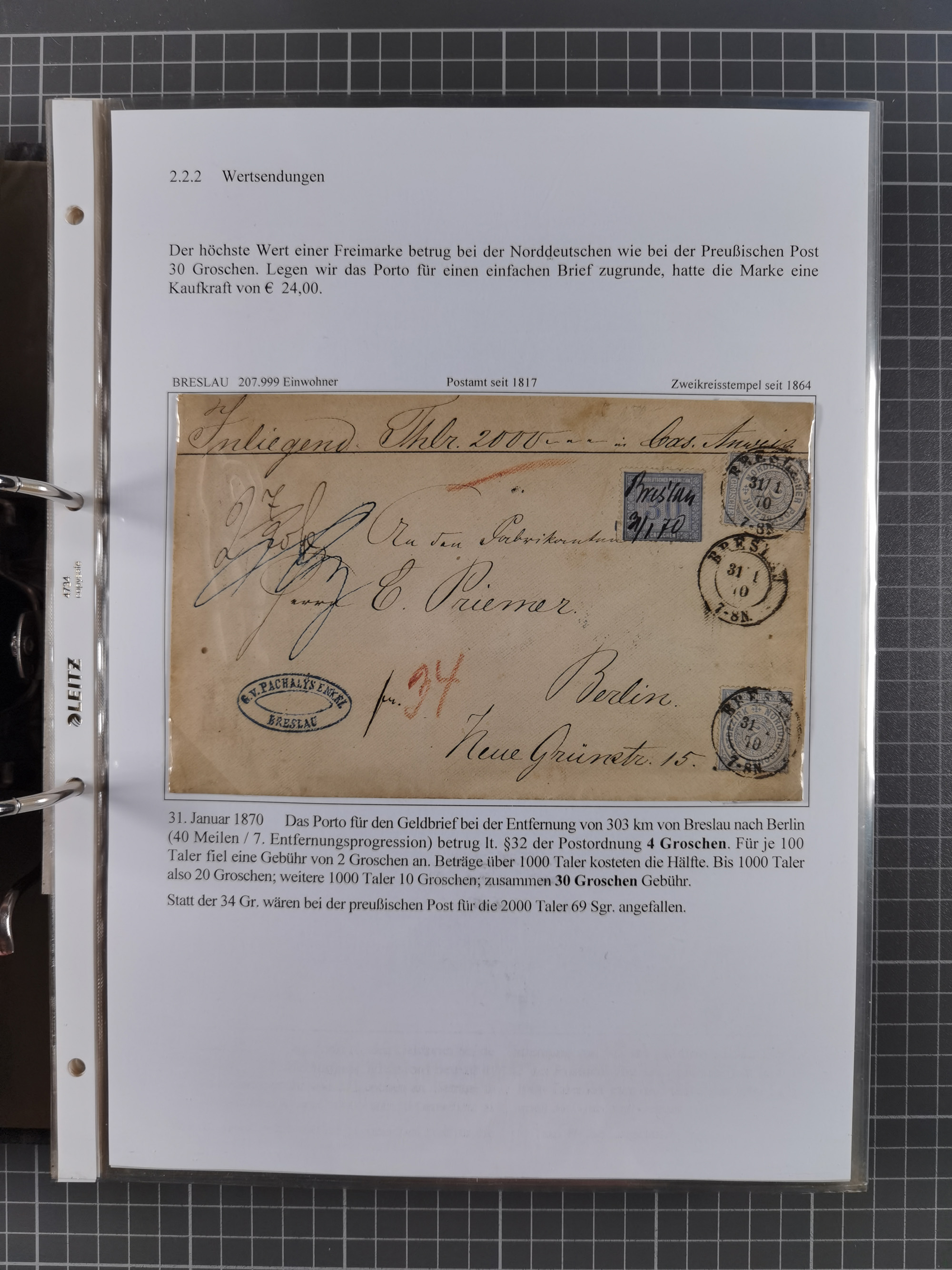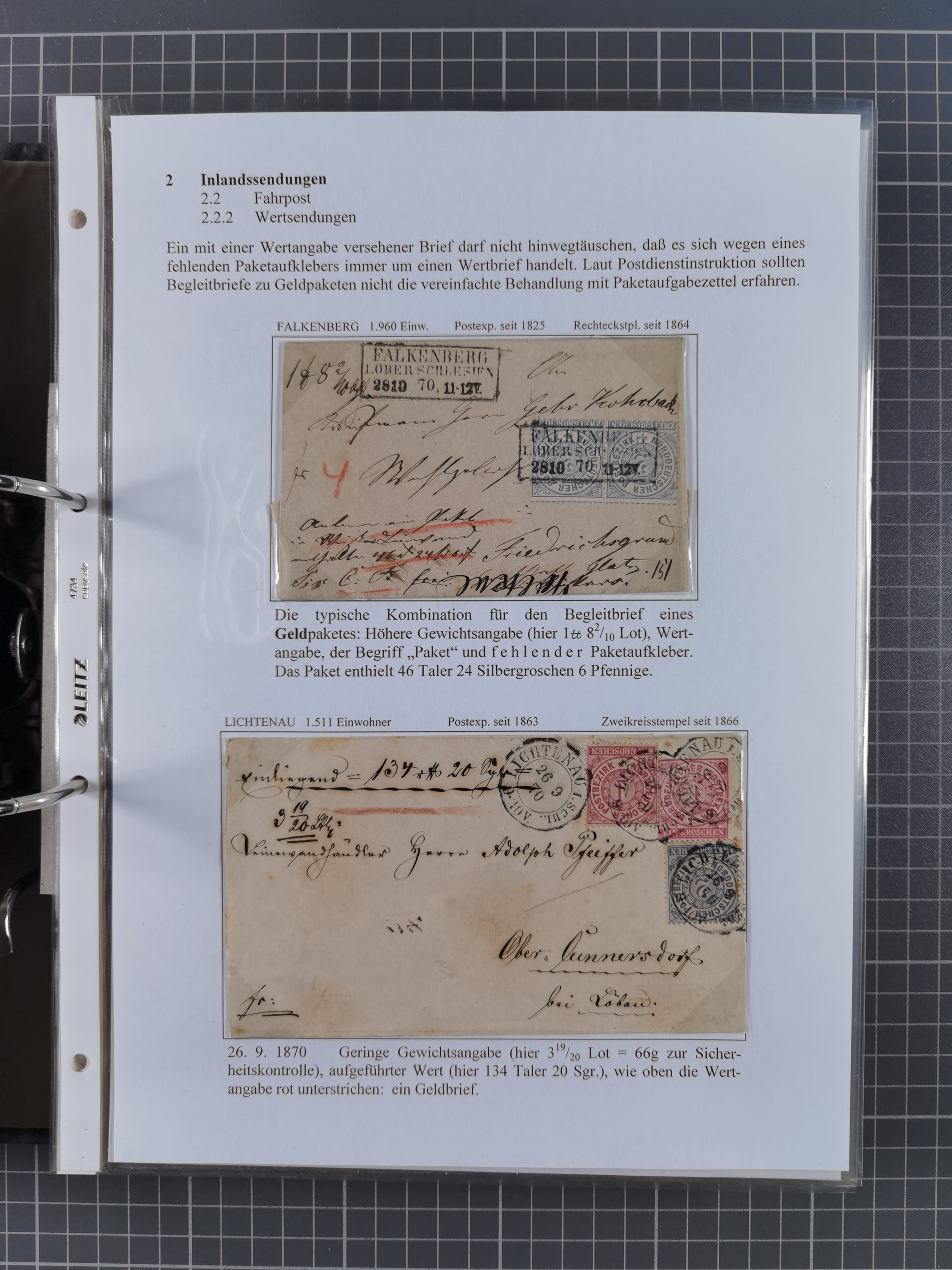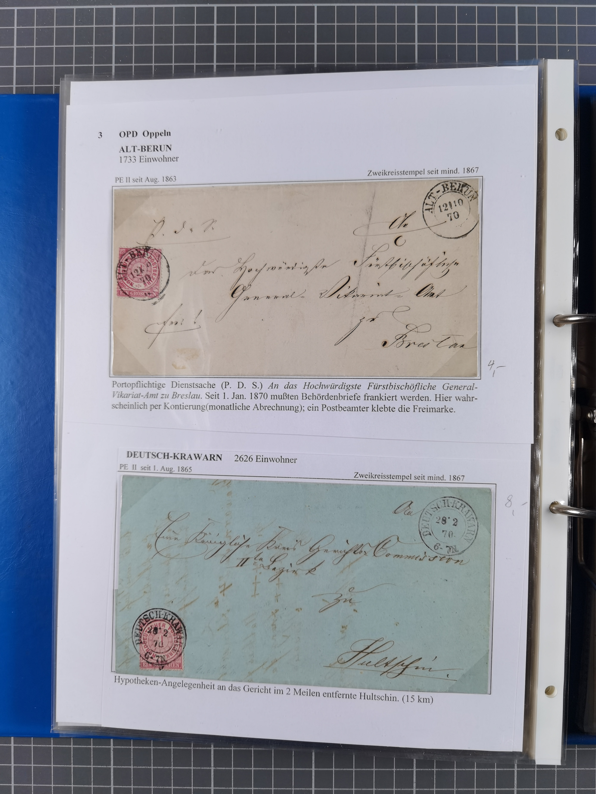 1868/71, 'Die Norddeutsche Post in Schlesien', Ausstellungssammlung mit rund 160 Belegen, dabei viele Besonderheiten, Ersttagsbriefe der Mi. 3 und 4, Orts-R-Brief von Breslau, 2 Express-Karten, viele Paketbegleit- und Wertsendungen, Teil- und Mischfrankaturen, frankierte Postanweisung, Reco-Brief an den preußischen König, Auslandsbriefe u.a. nach Schweden und Konstantinopel, Drucksache nach Italien und Briefvorderseite ans Kap der Guten Hoffnung, interessanter Teil Krieg 1870/71 mit u.a. Ballon Monte-Briefen an bzw. von Kriegsgefangenen, etc. etc. Dazu ein Ordner mit zusätzlichem Material. Ein sehr interessantes und reichhaltiges Objekt.