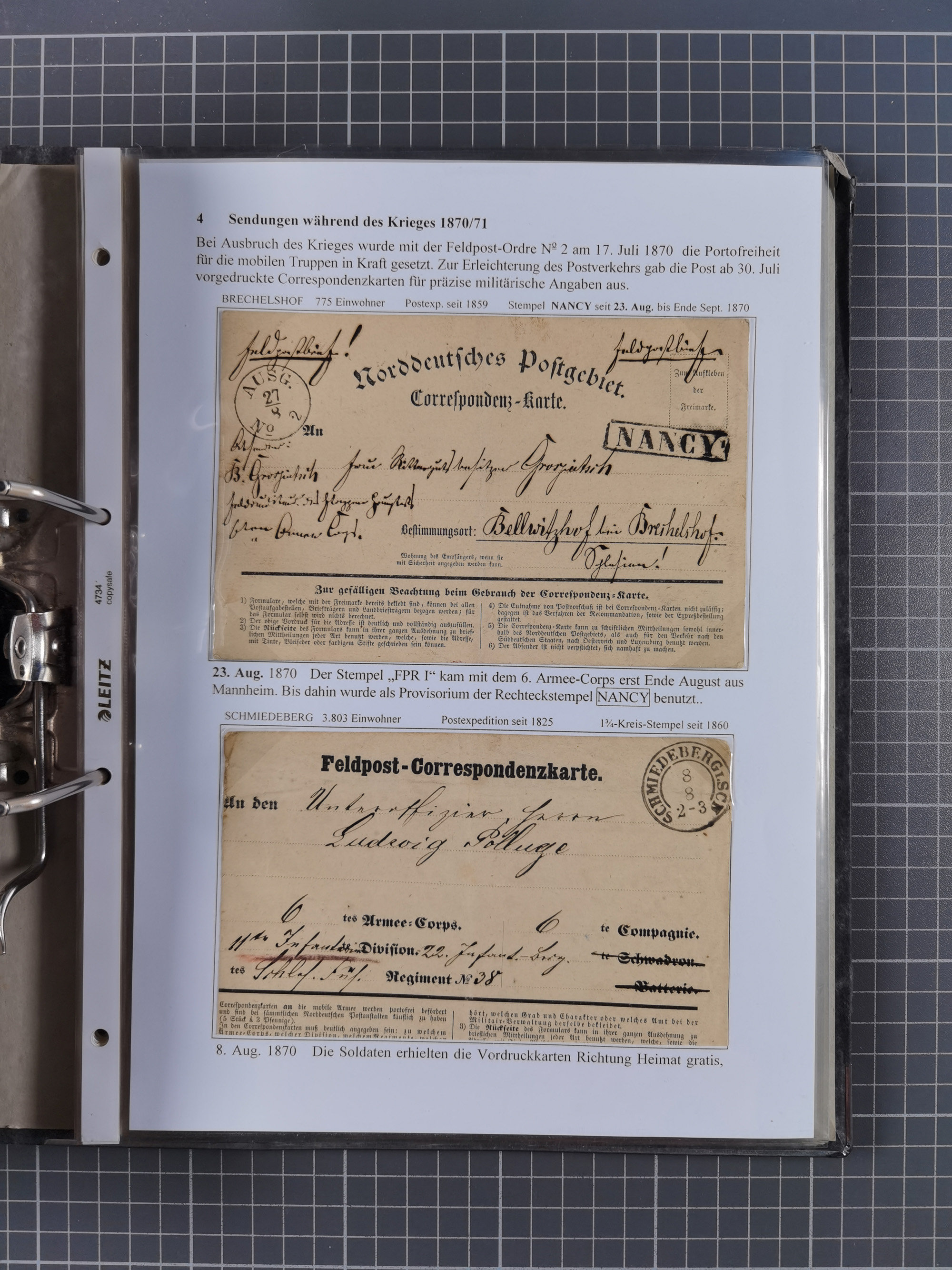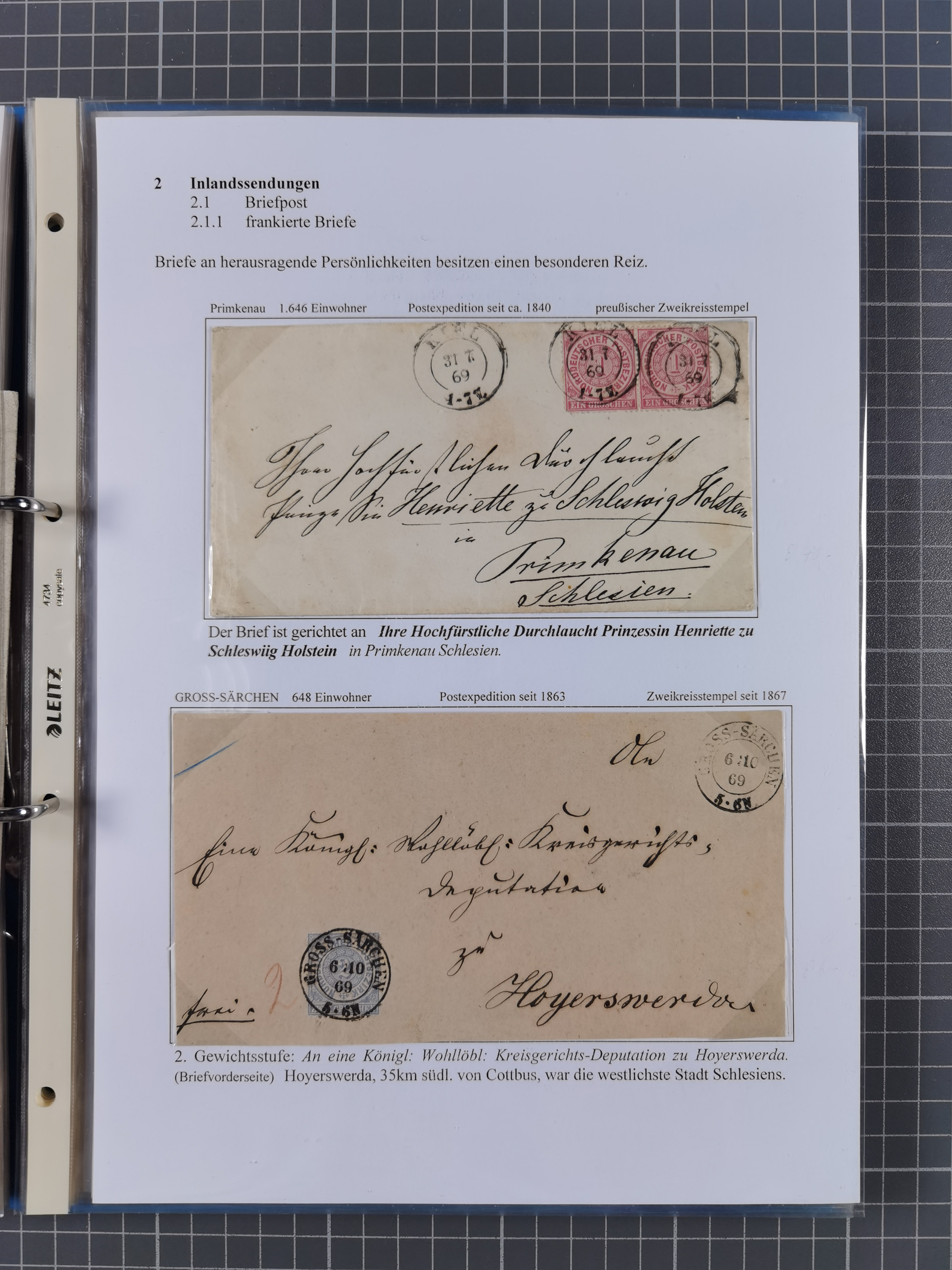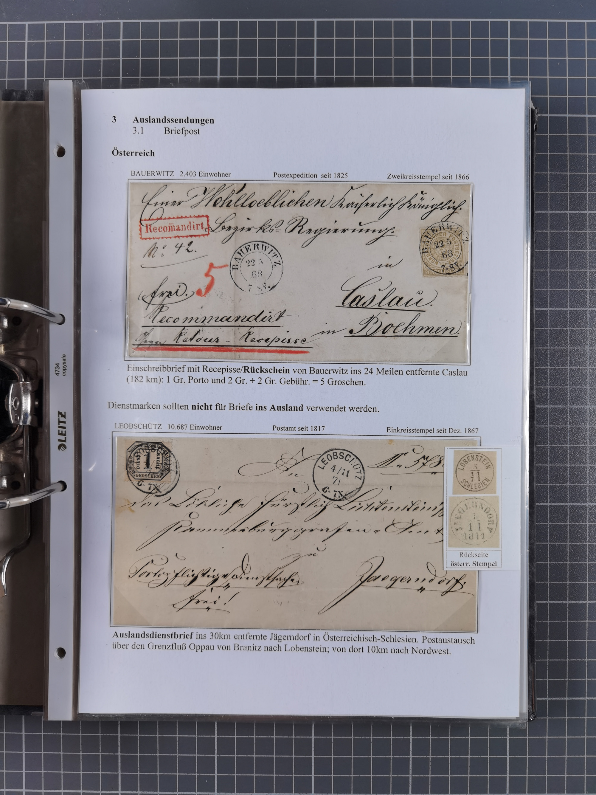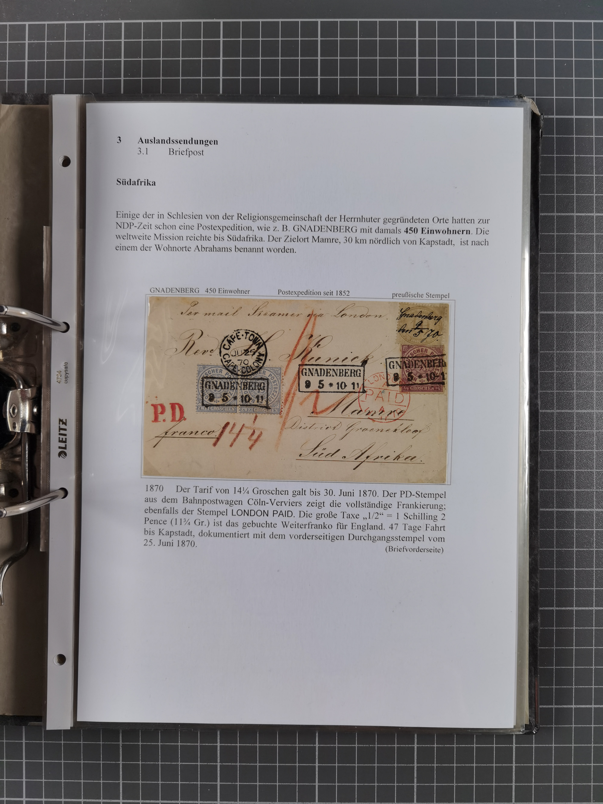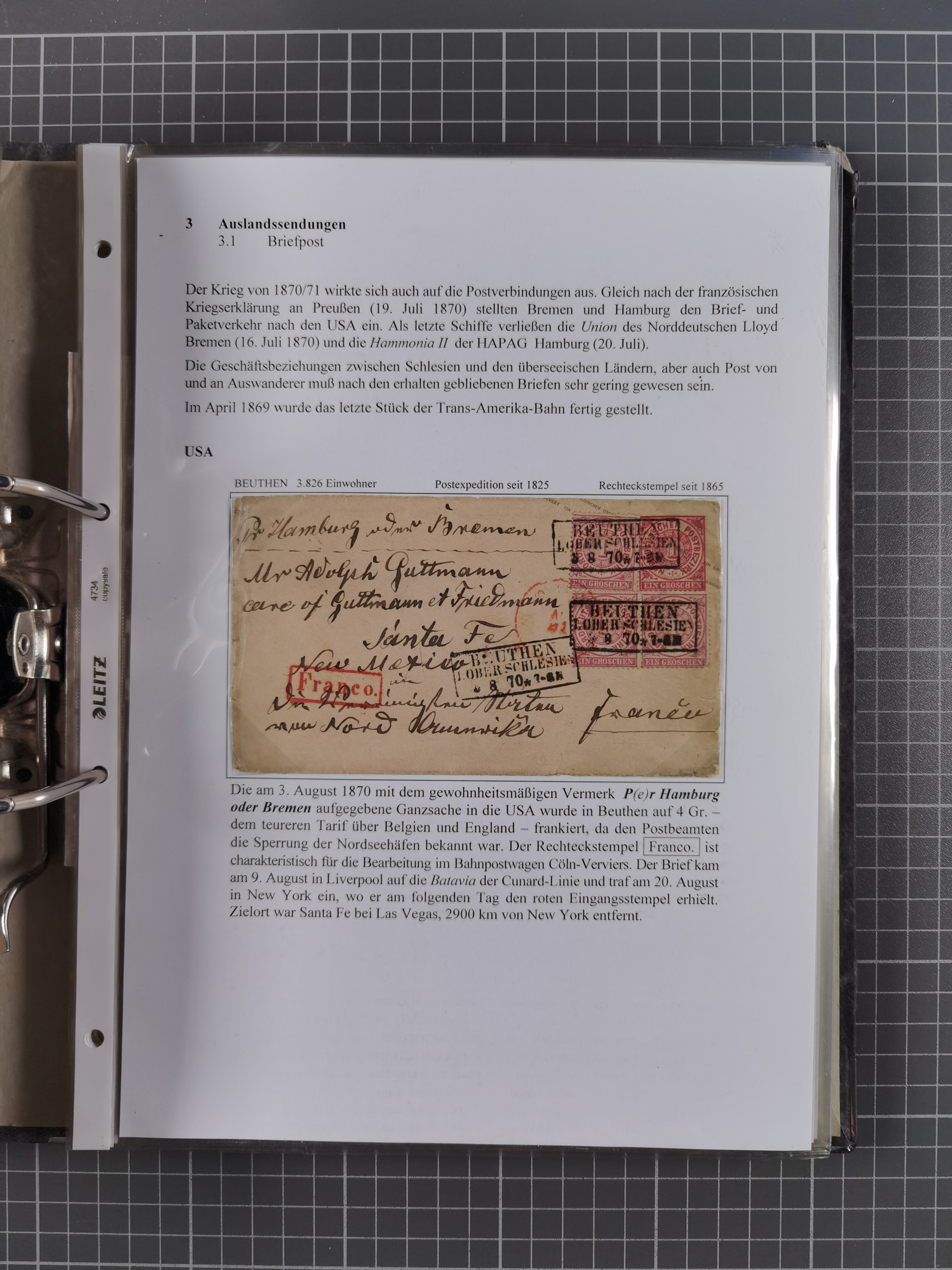 1868/71, 'Die Norddeutsche Post in Schlesien', Ausstellungssammlung mit rund 160 Belegen, dabei viele Besonderheiten, Ersttagsbriefe der Mi. 3 und 4, Orts-R-Brief von Breslau, 2 Express-Karten, viele Paketbegleit- und Wertsendungen, Teil- und Mischfrankaturen, frankierte Postanweisung, Reco-Brief an den preußischen König, Auslandsbriefe u.a. nach Schweden und Konstantinopel, Drucksache nach Italien und Briefvorderseite ans Kap der Guten Hoffnung, interessanter Teil Krieg 1870/71 mit u.a. Ballon Monte-Briefen an bzw. von Kriegsgefangenen, etc. etc. Dazu ein Ordner mit zusätzlichem Material. Ein sehr interessantes und reichhaltiges Objekt.