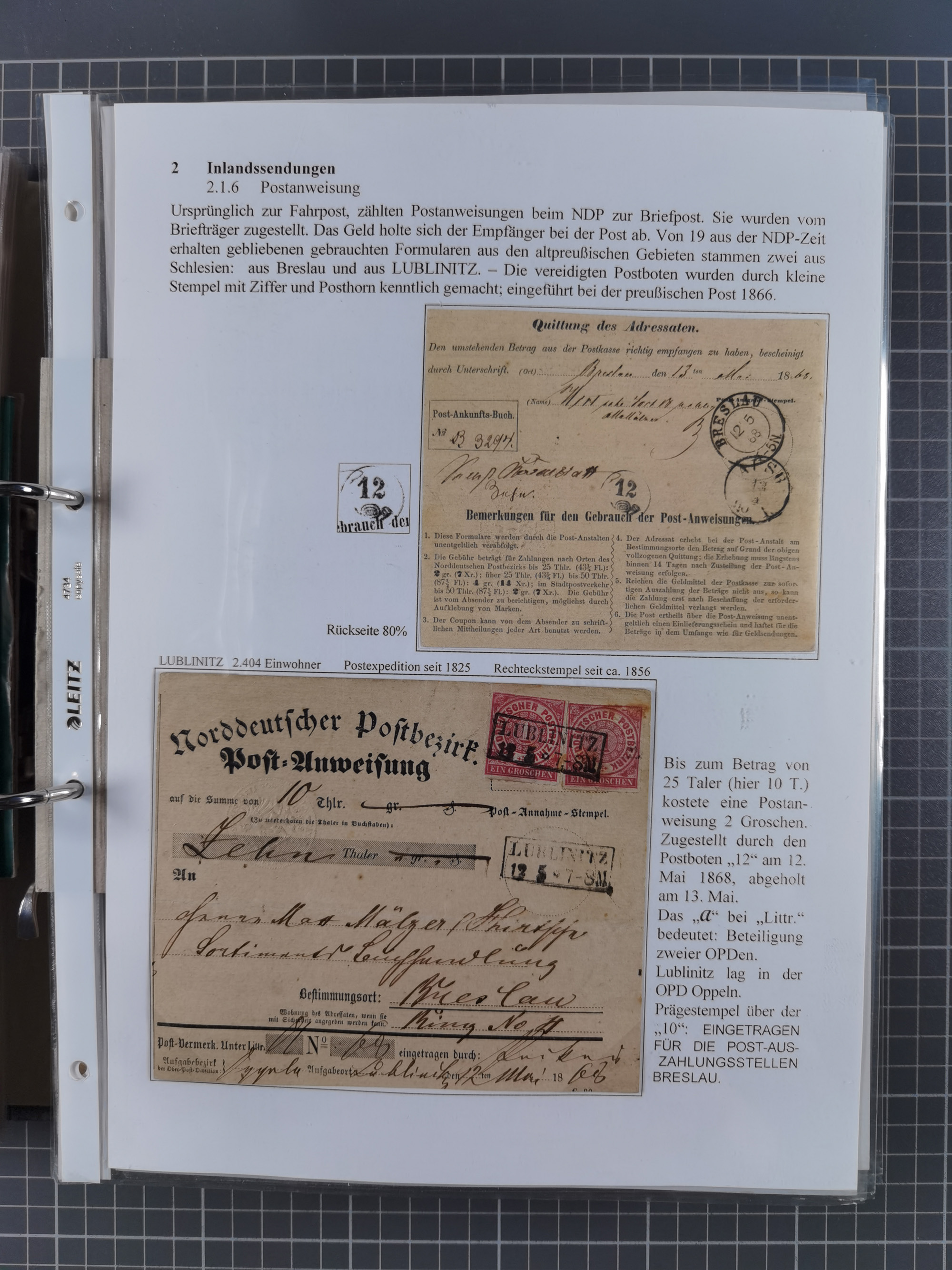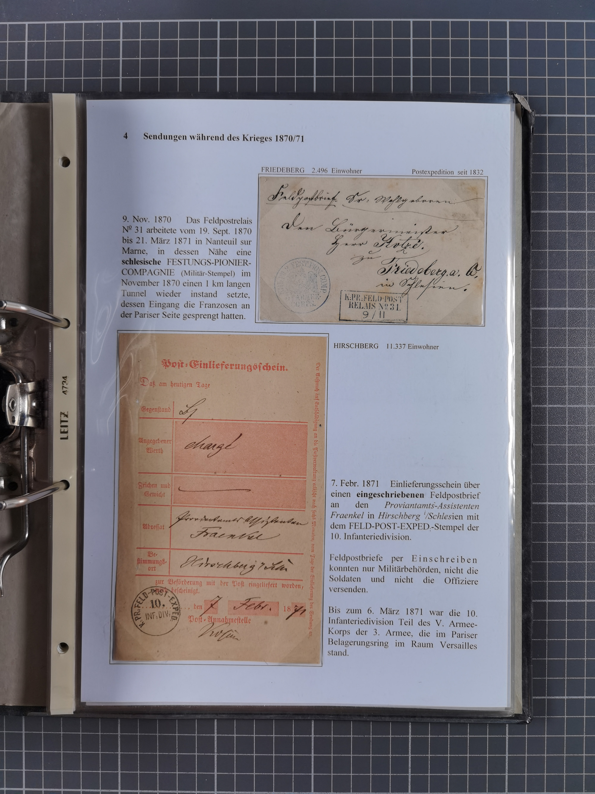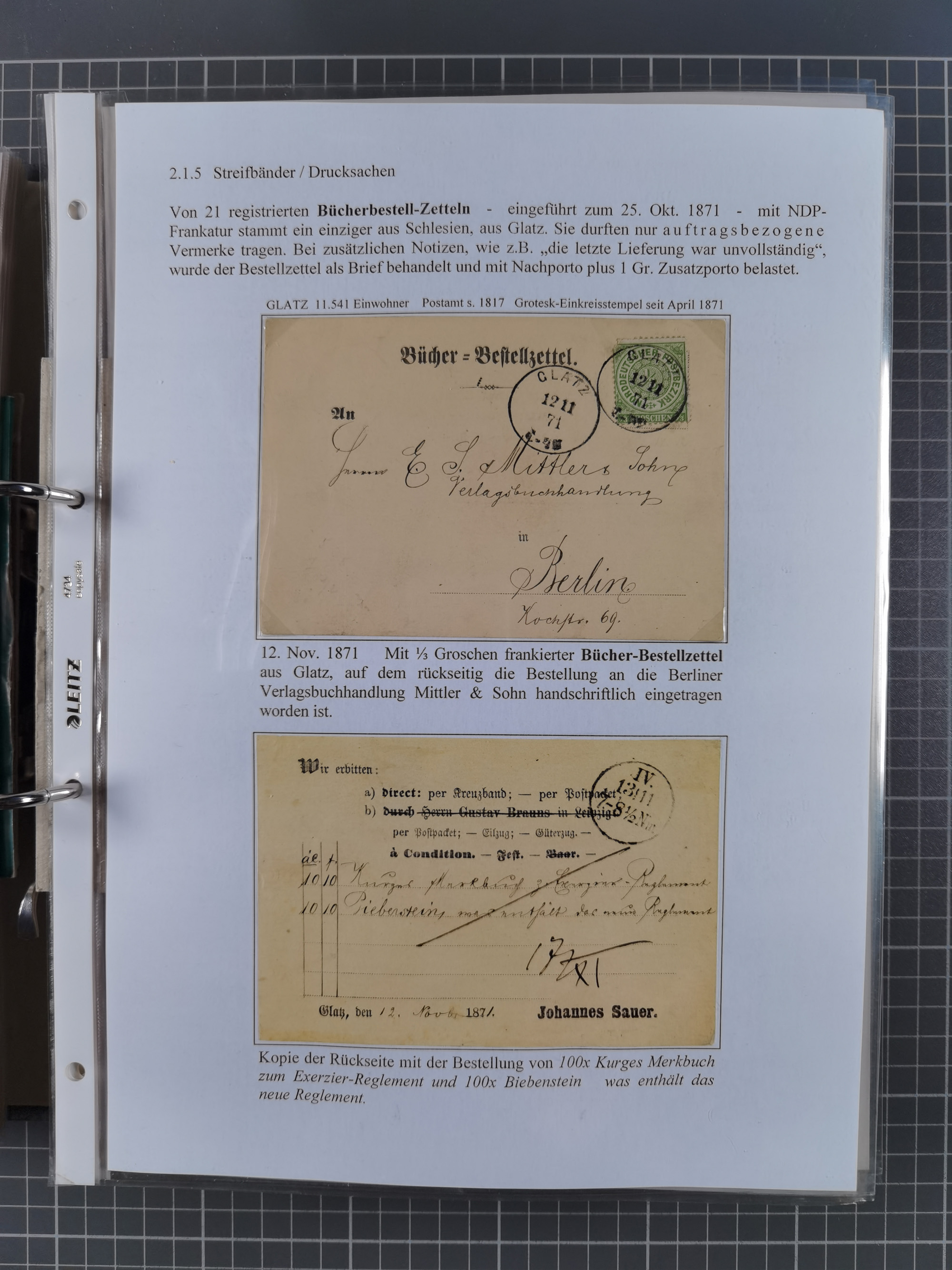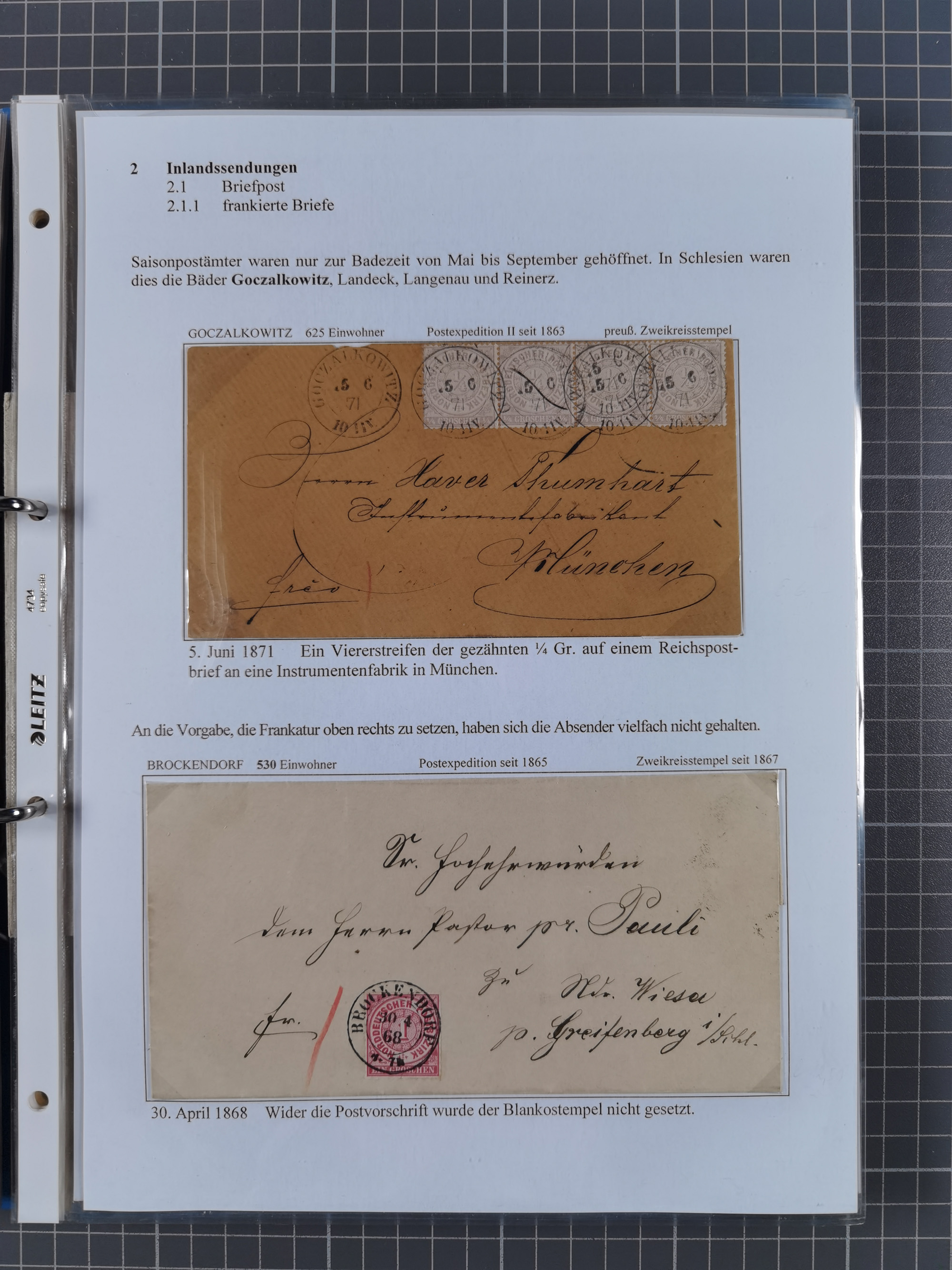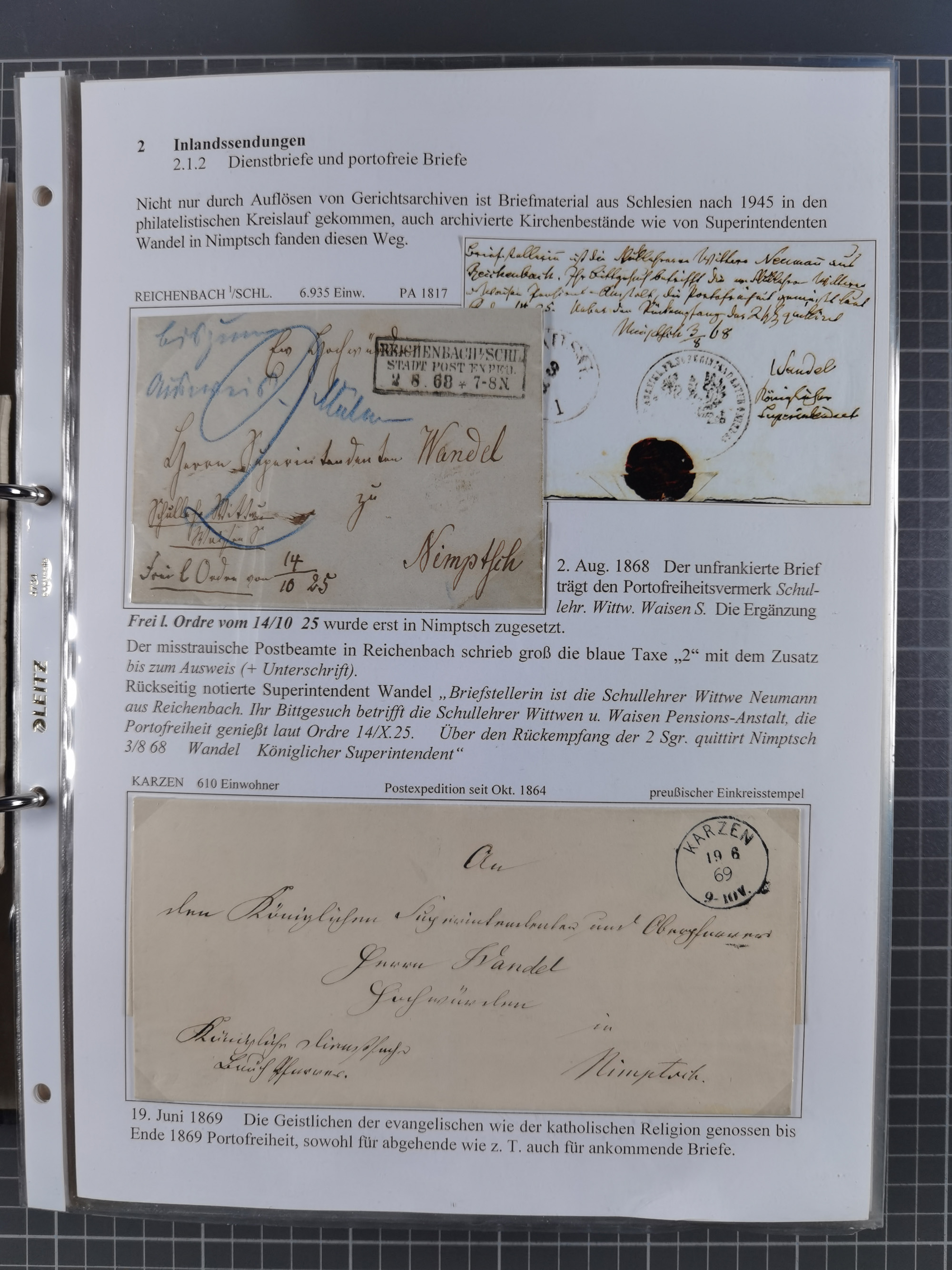 1868/71, 'Die Norddeutsche Post in Schlesien', Ausstellungssammlung mit rund 160 Belegen, dabei viele Besonderheiten, Ersttagsbriefe der Mi. 3 und 4, Orts-R-Brief von Breslau, 2 Express-Karten, viele Paketbegleit- und Wertsendungen, Teil- und Mischfrankaturen, frankierte Postanweisung, Reco-Brief an den preußischen König, Auslandsbriefe u.a. nach Schweden und Konstantinopel, Drucksache nach Italien und Briefvorderseite ans Kap der Guten Hoffnung, interessanter Teil Krieg 1870/71 mit u.a. Ballon Monte-Briefen an bzw. von Kriegsgefangenen, etc. etc. Dazu ein Ordner mit zusätzlichem Material. Ein sehr interessantes und reichhaltiges Objekt.