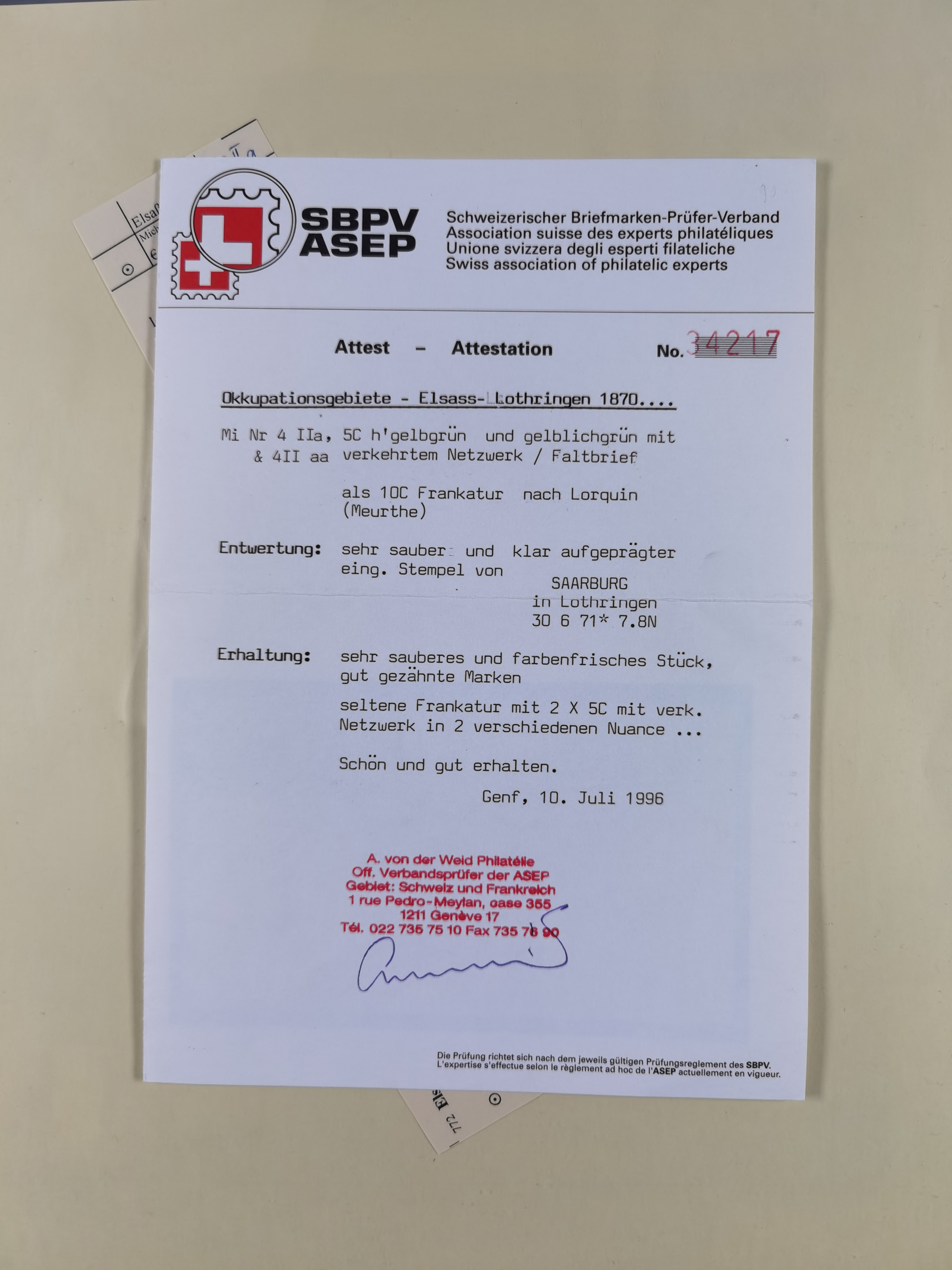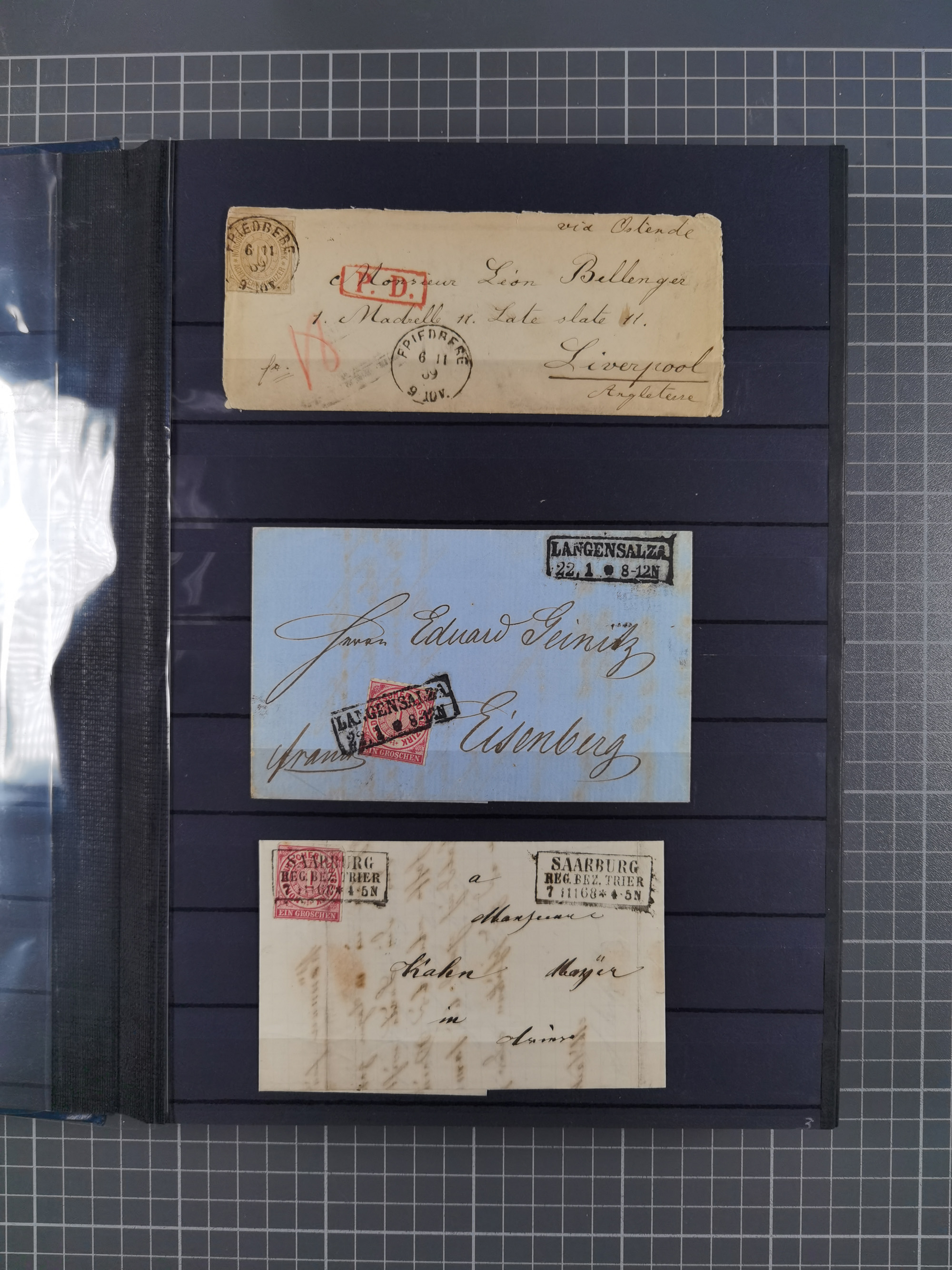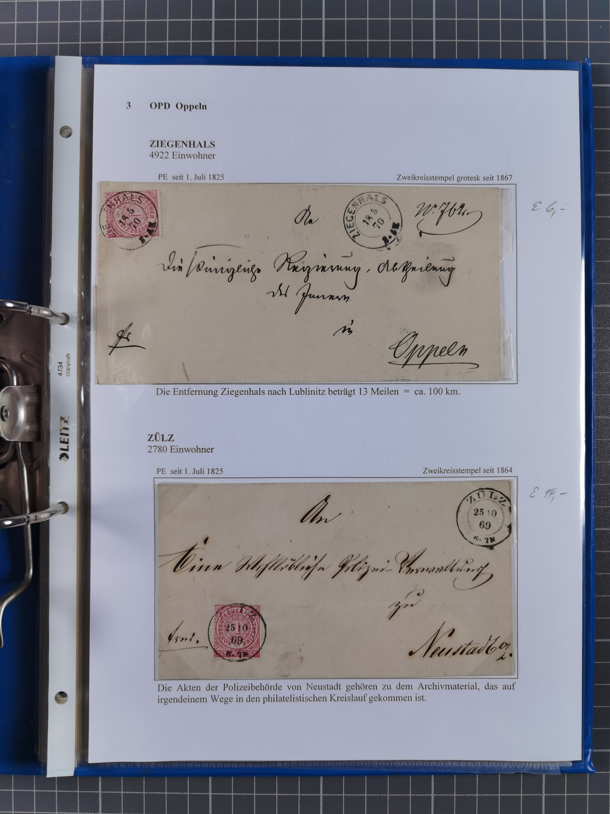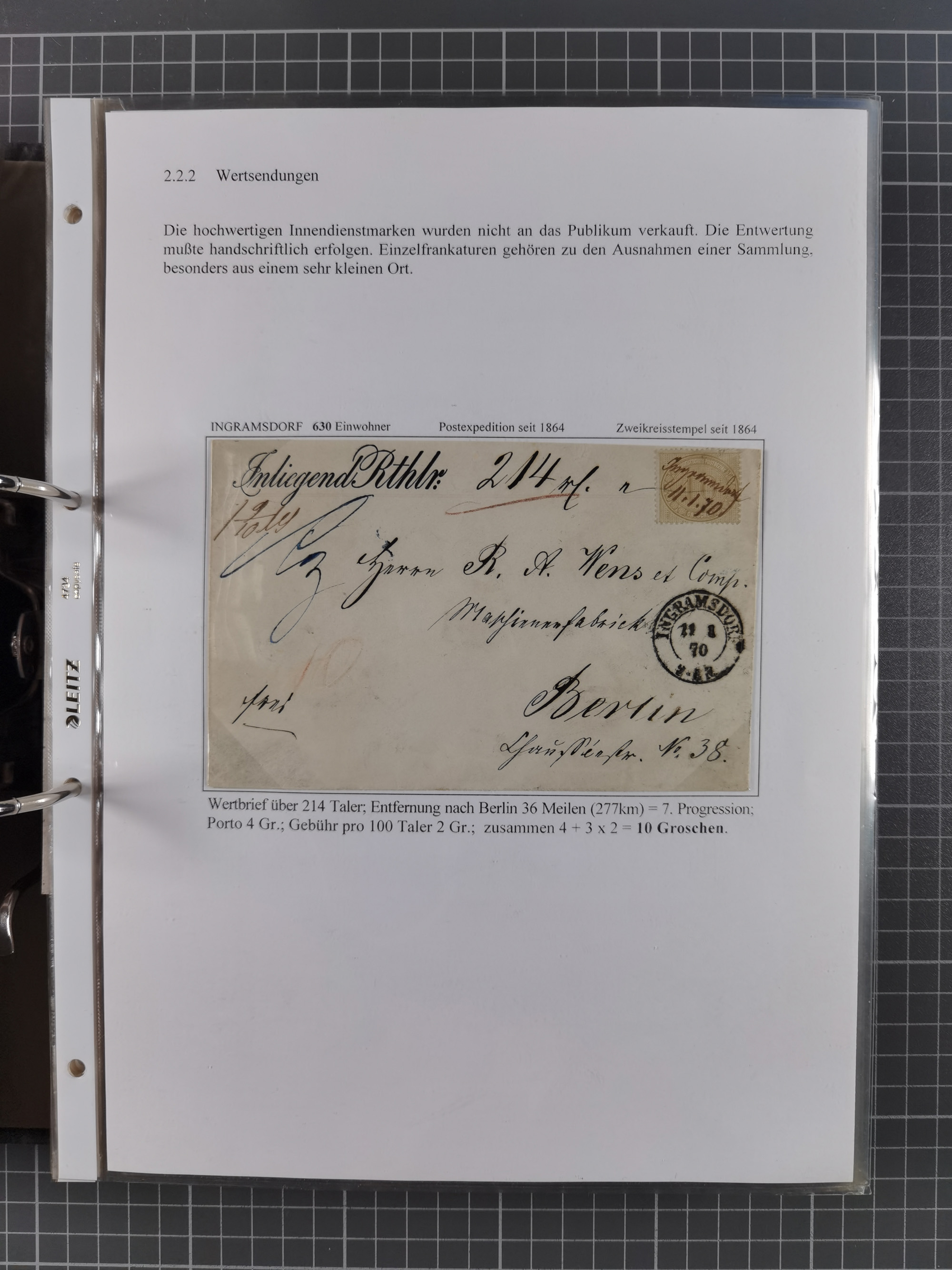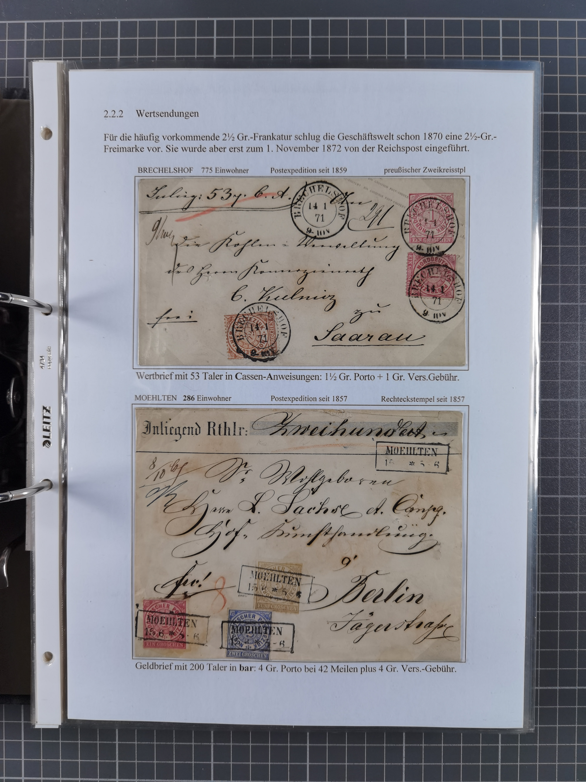 REICHSPOST-VORLÄUFER, ausstellungsmäßig aufgezogene Spezialsammlung von rund 120 Belegen und einigen losen Marken, Einheiten und Briefstücken, dabei eine Vielzahl von seltenen und besonderen Stücken, u.a. Frankaturen der durchstochenen Marken Mi. 2-4,9 und 11 (letztere u.a. MeF), Ortsbriefe und -Karten, Auslandsbriefe (dabei Drucksachen, Reco und Grenzrayon), 'Muster ohne Wert', Bücherzettel, Letzttagsbrief, Ganzsachenausschnitte auf Briefen, Eilboten, Währungsmischfrankatur, Mi. 25 als Mehrfachfrankatur und in Farbfrankatur auf Reco-Brief nach Frankreich, etc. etc. ein sehr interessantes und reichhaltiges Objekt.