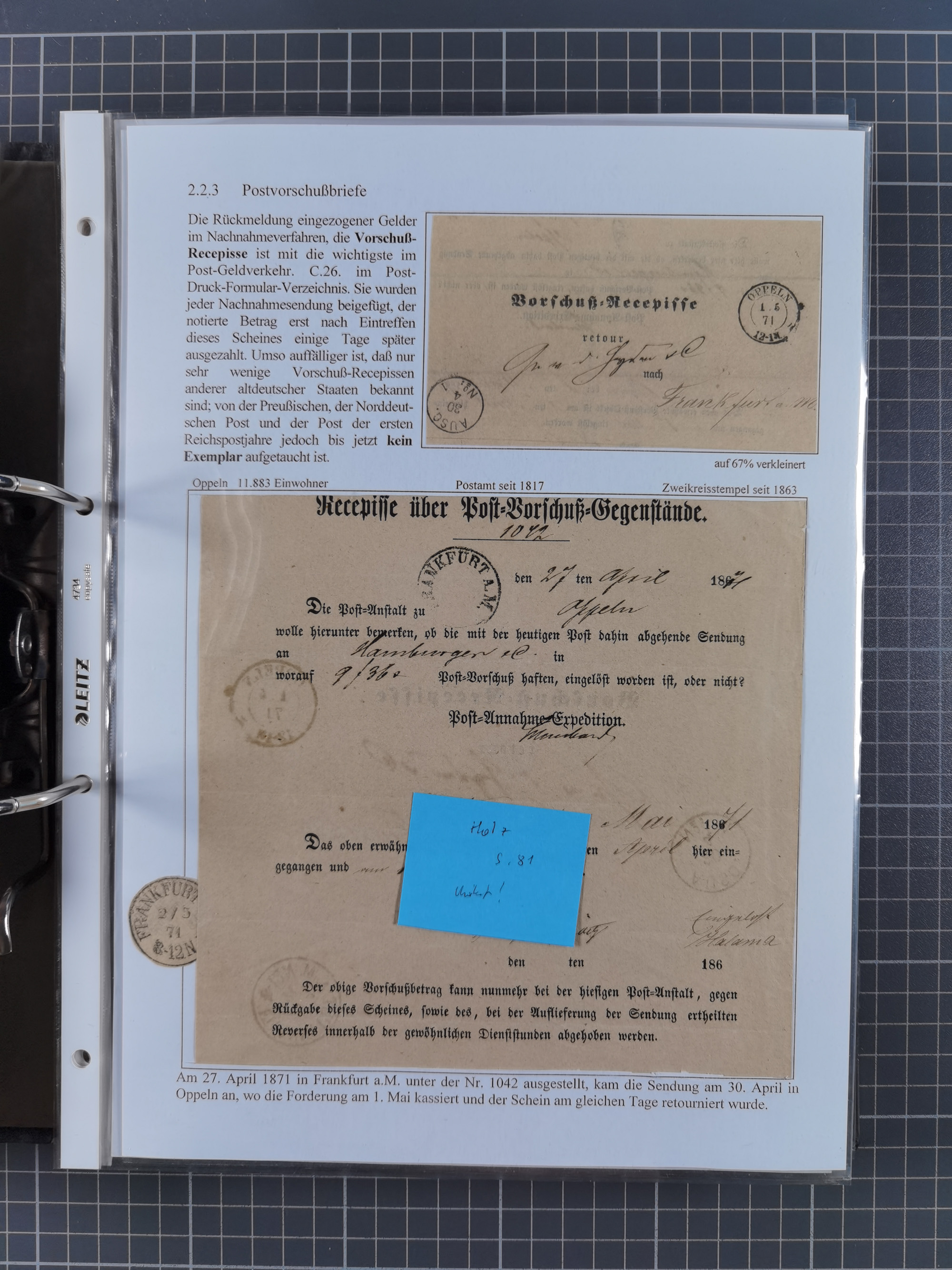 1740/1867 (ca.), rund 110 Postscheine, dabei Ortsdrucke, Stücke mit Stempeln,etc., aus altem Bestand