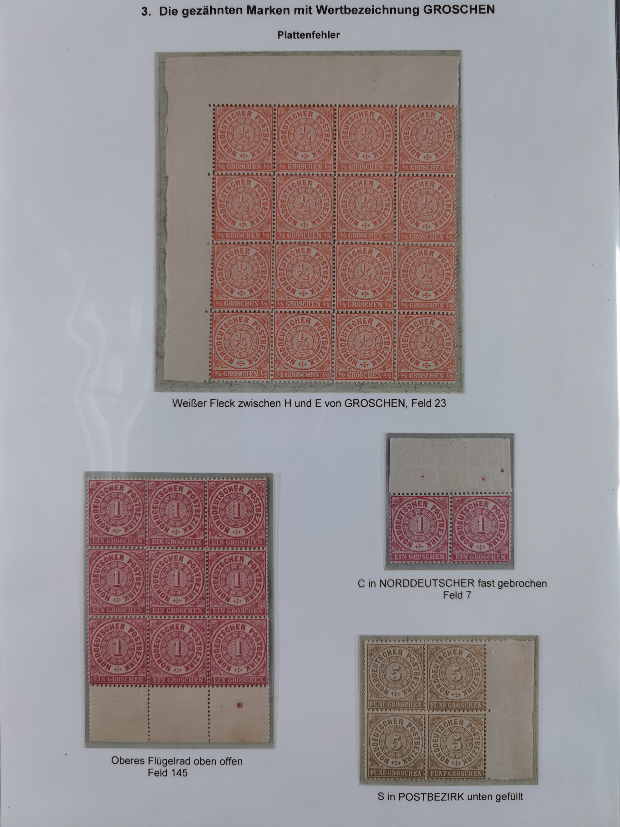 1869, gezähnter Ausgabe, ungebrauchte/postfrische Sammlung von 12 Blockeinheiten und einem Paar (teils mit Plattenfehler) sowie 2 Bogenecken mit Plattenkennzeichen (einmal stärker angetrennt)