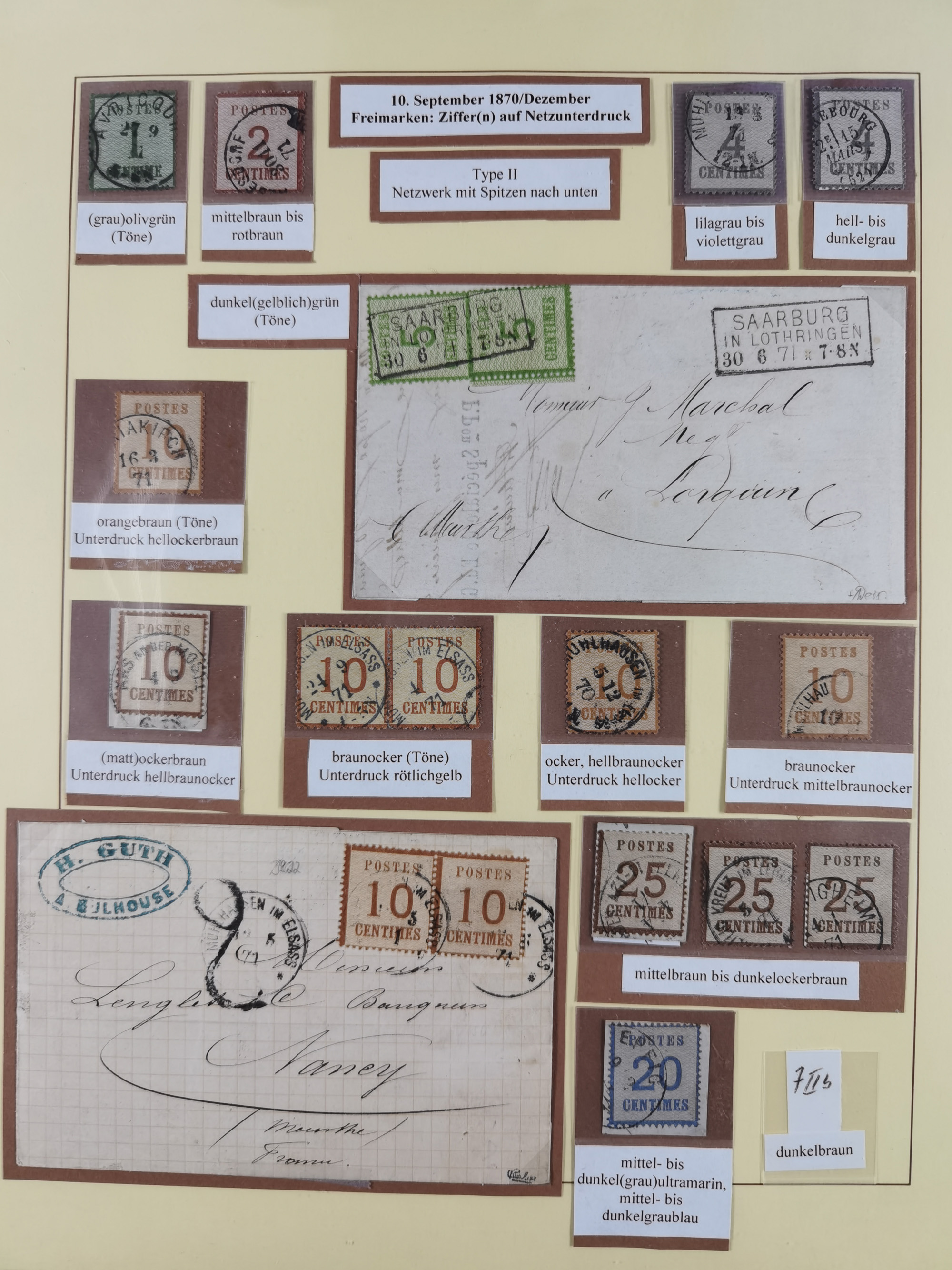 1868/70, gestempelte Sammlung inkl. Dienstmarken und Elass-Lothrigen mit schönen Briefstücken und 14 Briefen und Ganzsachen. Dabei u.a. 23 gestempelt (FA Flemming BPP), Mi.-Nr. D7 auf Briefstück (FA Flemming BPP) und Lothringen mit u.a. Mi.-Nr 1Ic im senkrechten Paar (FA Flemming BPP), Mi.-Nr. 1IIa (FA Flemming BPP) und zwei Werte Mi.-Nr. 4II auf Brief (FA von der Weid SBPV). Meist in guter Erhaltung, viele bessere Marken und Farben sind signiert bzw. haben KB, FB und Fotoatteste