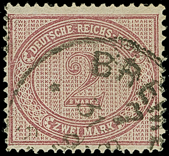 1875, 2 M. violettpurpur ist farbfrisch und gut gezähnt. Die ungebrauchte Marke ist in einwandfreier Erhaltung, bisher sind nur wenige einwandfreie Exemplare dieser sogenannten Urdruckmarke bekannt, signiert Star(auscheck) und Fotoattest Wiegand BPP (2009)