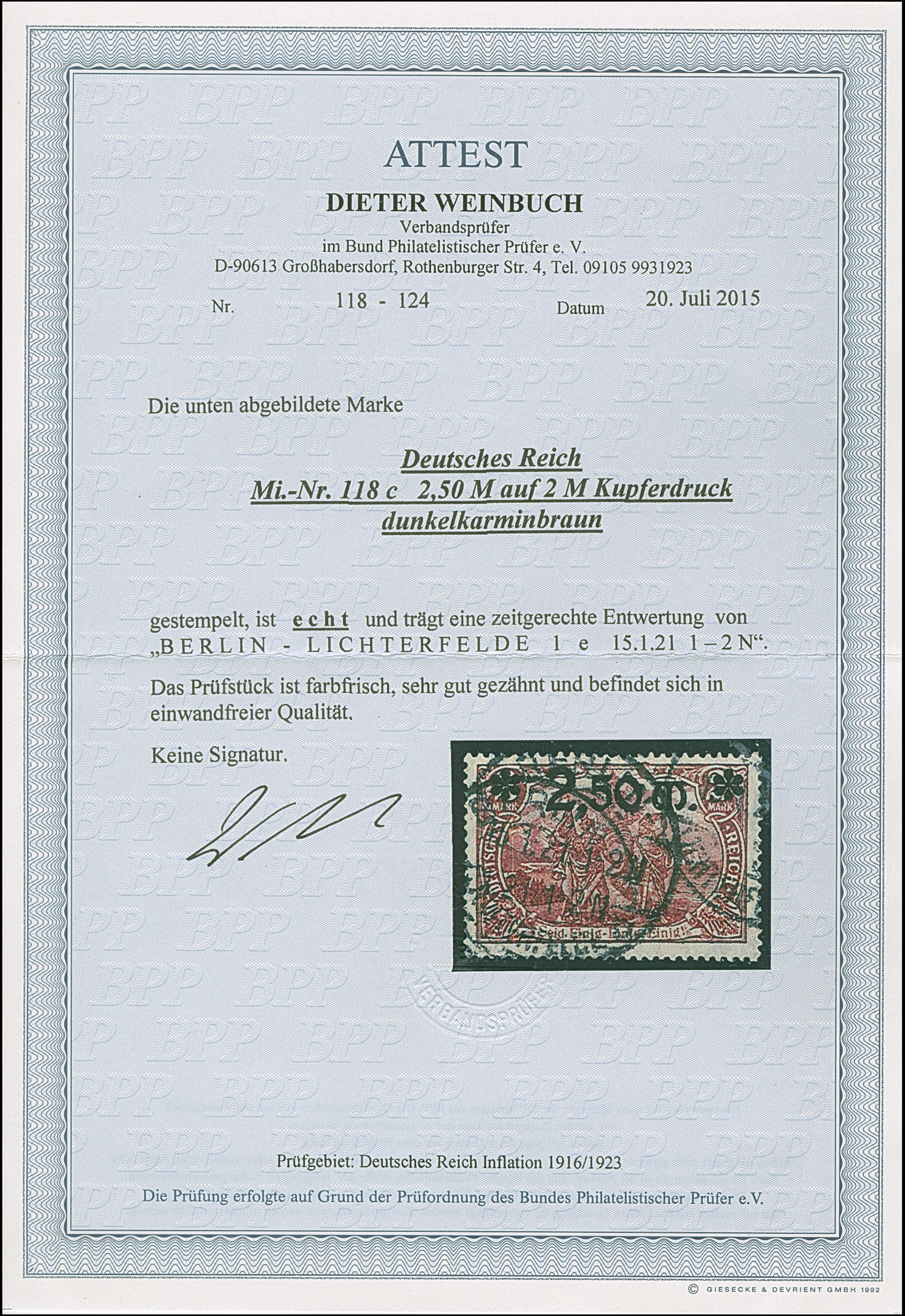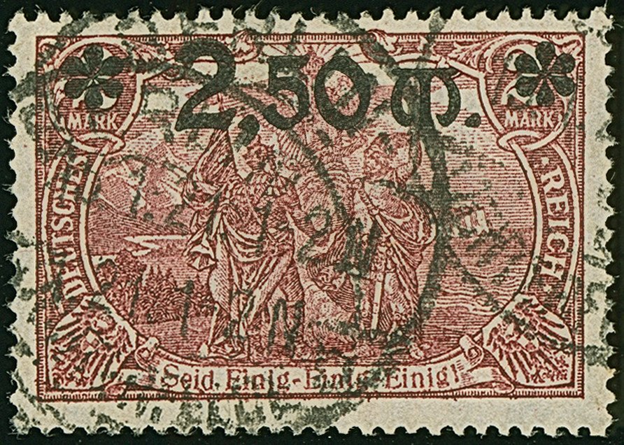 1920, Aufdruckausgabe 2,50 M. auf 2 M. dunkelkarminbraun, farbfrisch und gut gezähnt, sauber gestempelt. Fotoattest Weinbuch BPP (2015)