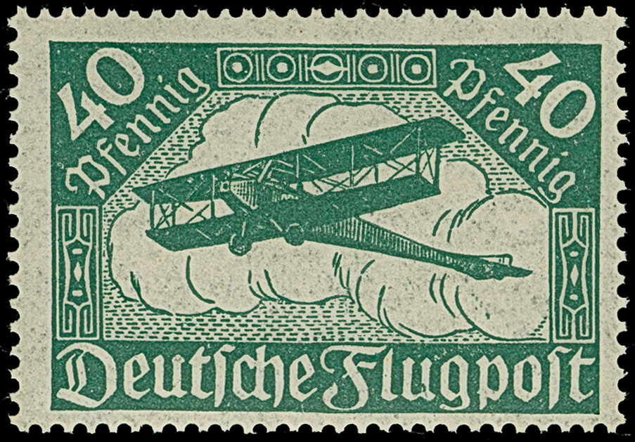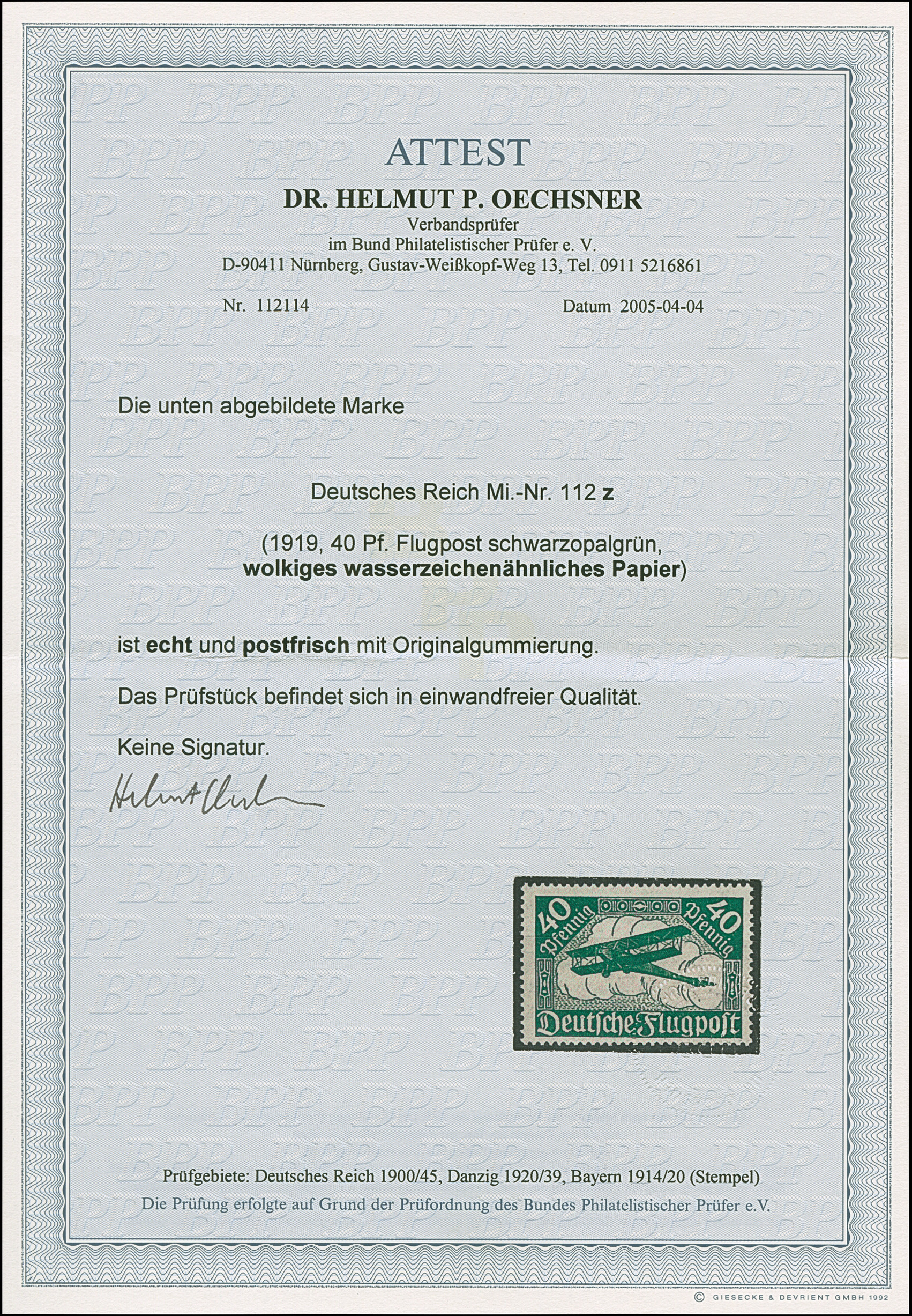 1919, Flugpost 40 Pfg. auf wolkigem, wasserzeichenähnlichem Papier, postfrisch, in einwandfreier Erhaltung, unsigniert mit Fotoattest Oechsner BPP (2005)