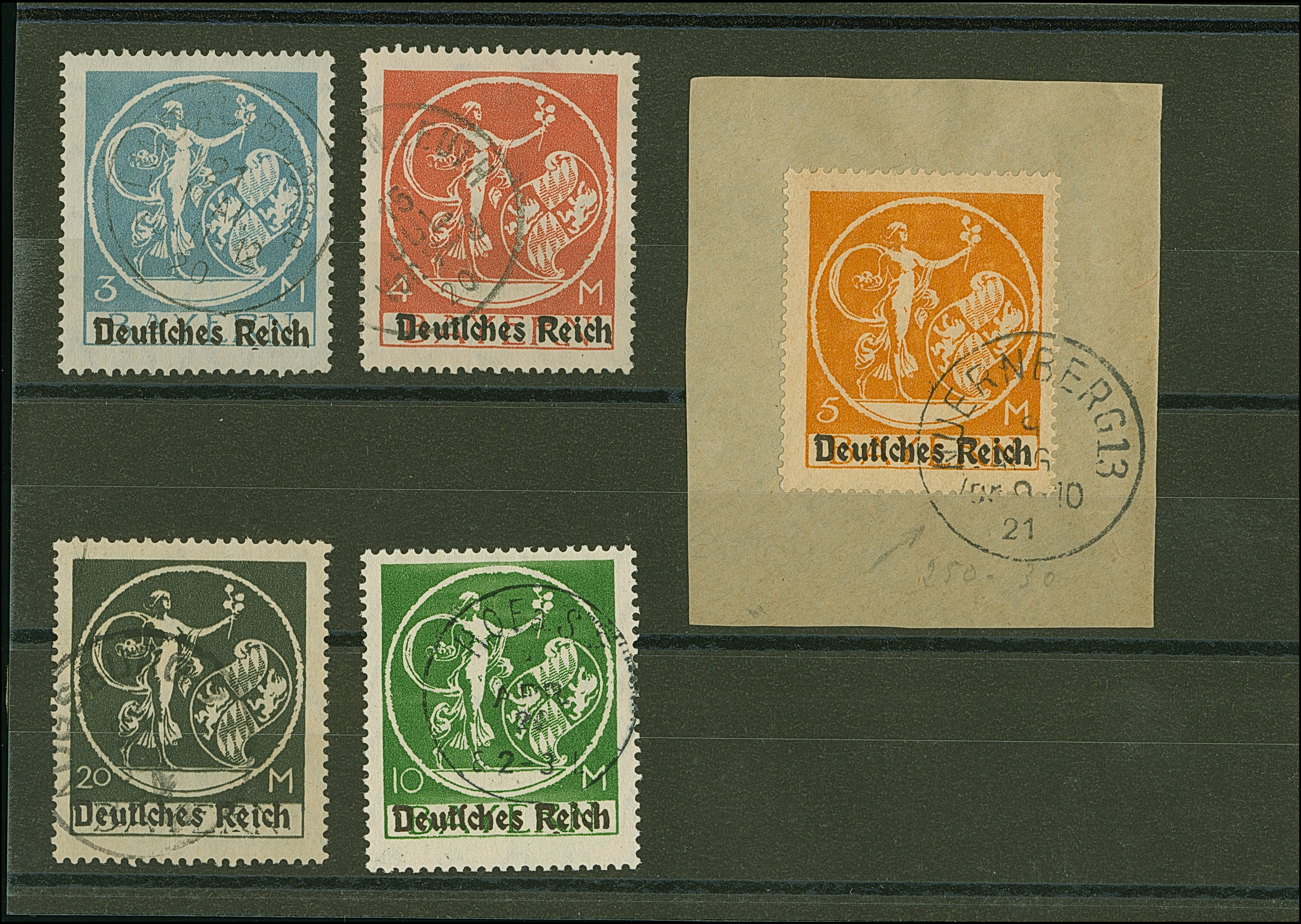 Bayern-Abschied 3-20 M. mit Aufdrucktype II kpl. sauber gestempelt bzw. auf Briefstück, in einwandfreier Erhaltung, sign. Weinbuch BPP bzw. mit drei Kurzbefunden und ein Fotoattest (2011)