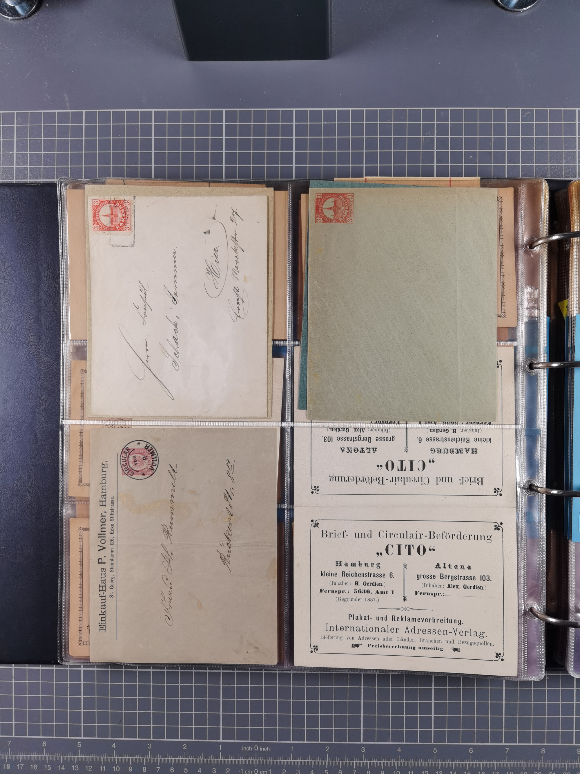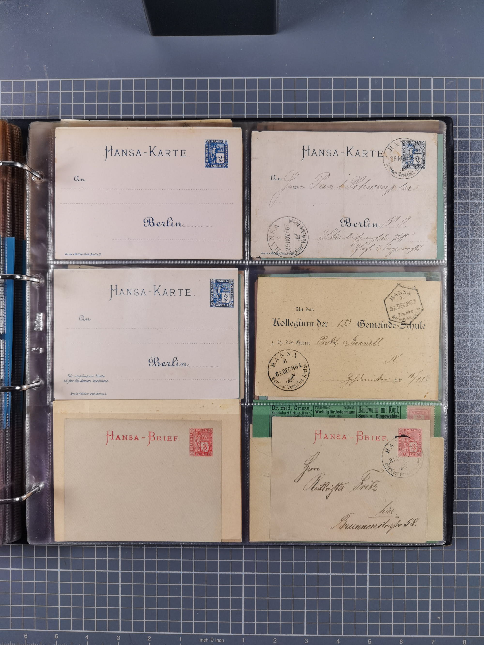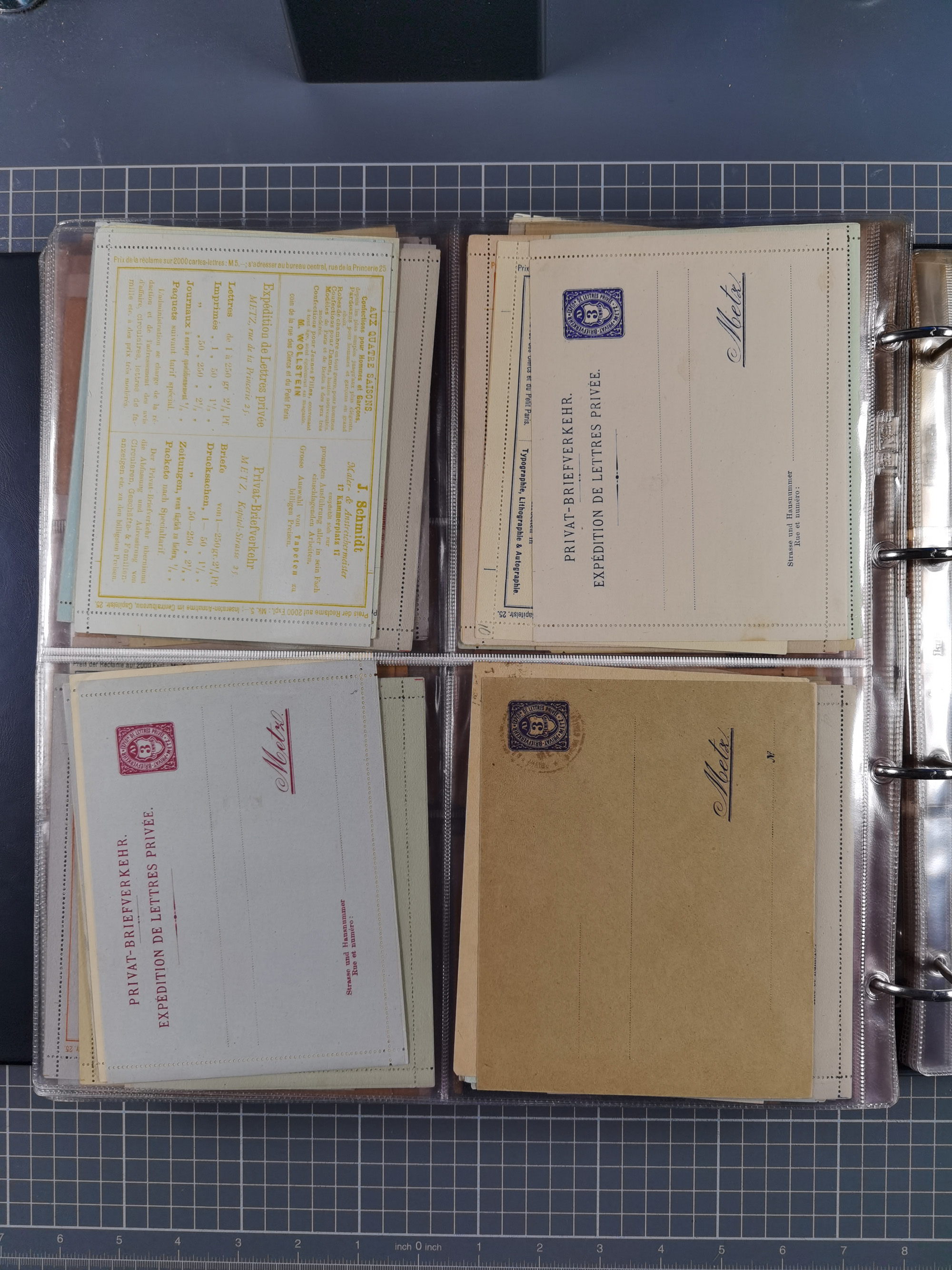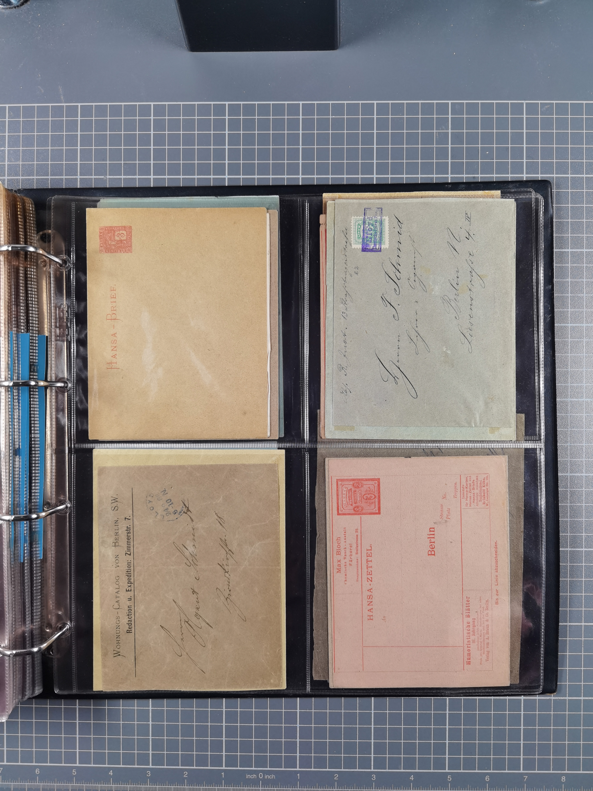 Straßburg-Privat-Brief-Verkehr: 1886/1900, kleine Sammlung mit 35 Briefen, Karten und Ganzsachen inkl. Postkarte mit Hansa Mi.-Nr. 5 ohne Text. Dabei u.a. Mi.-Nr. 2 auf Postkarte mit Grußtext, zwei Briefe mit Mi.-Nr. 34, bedargsgebrauchte Ganzsachen und P18 ungebraucht