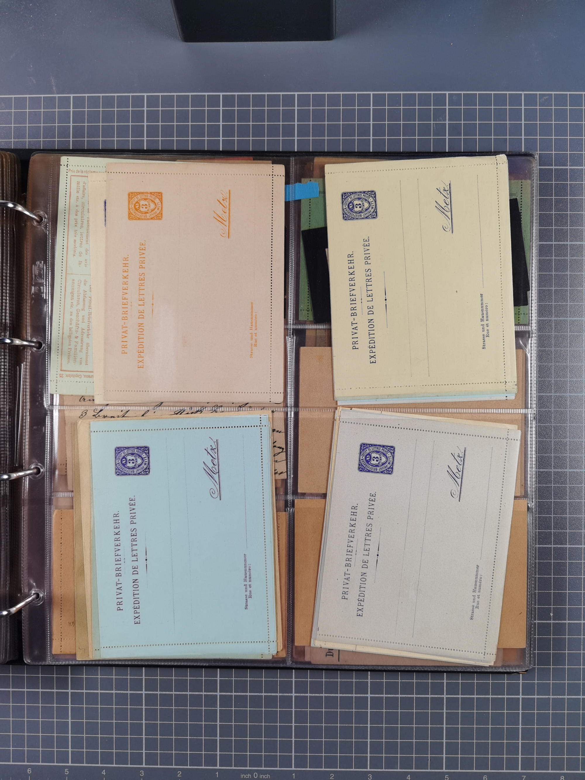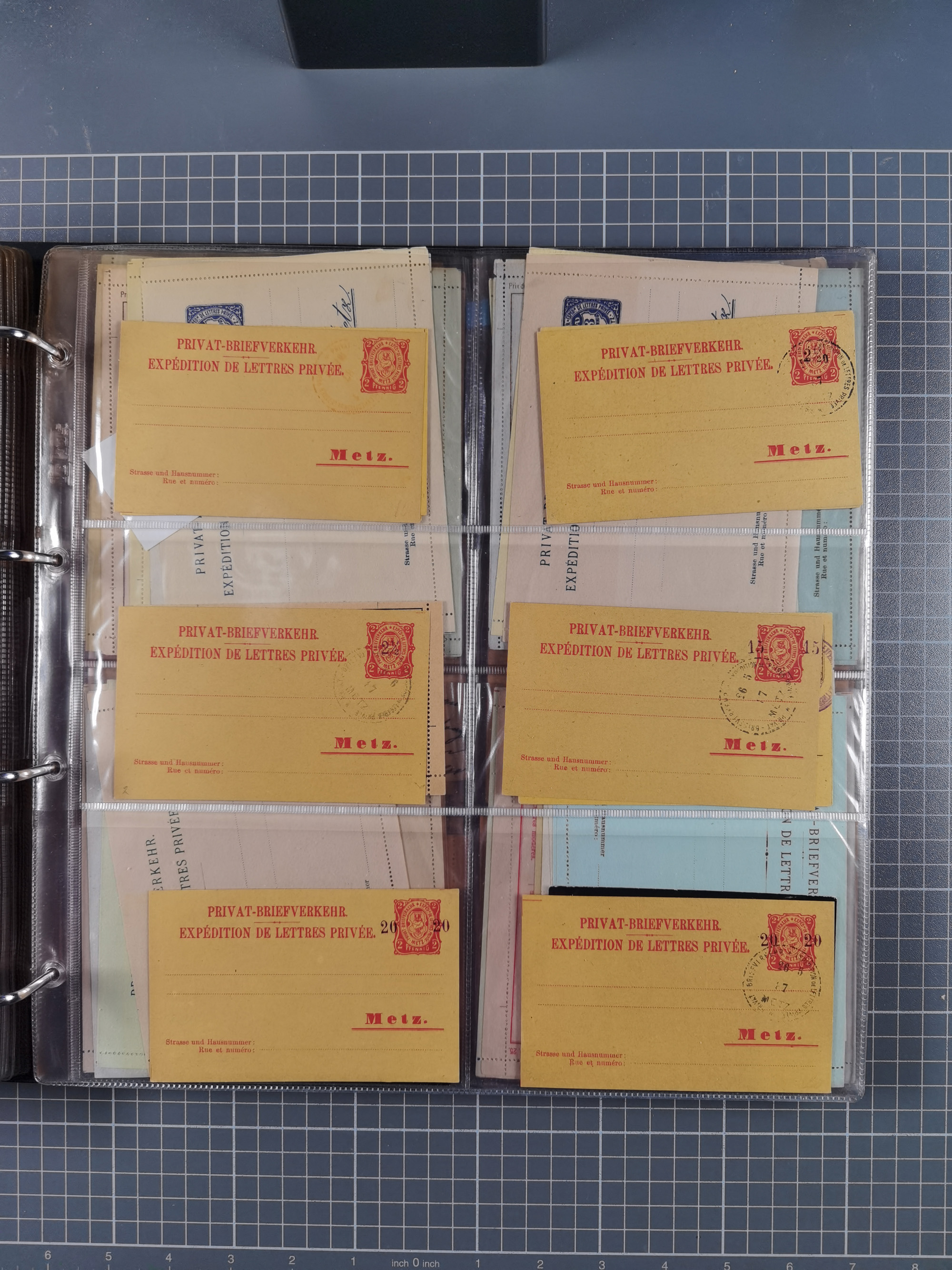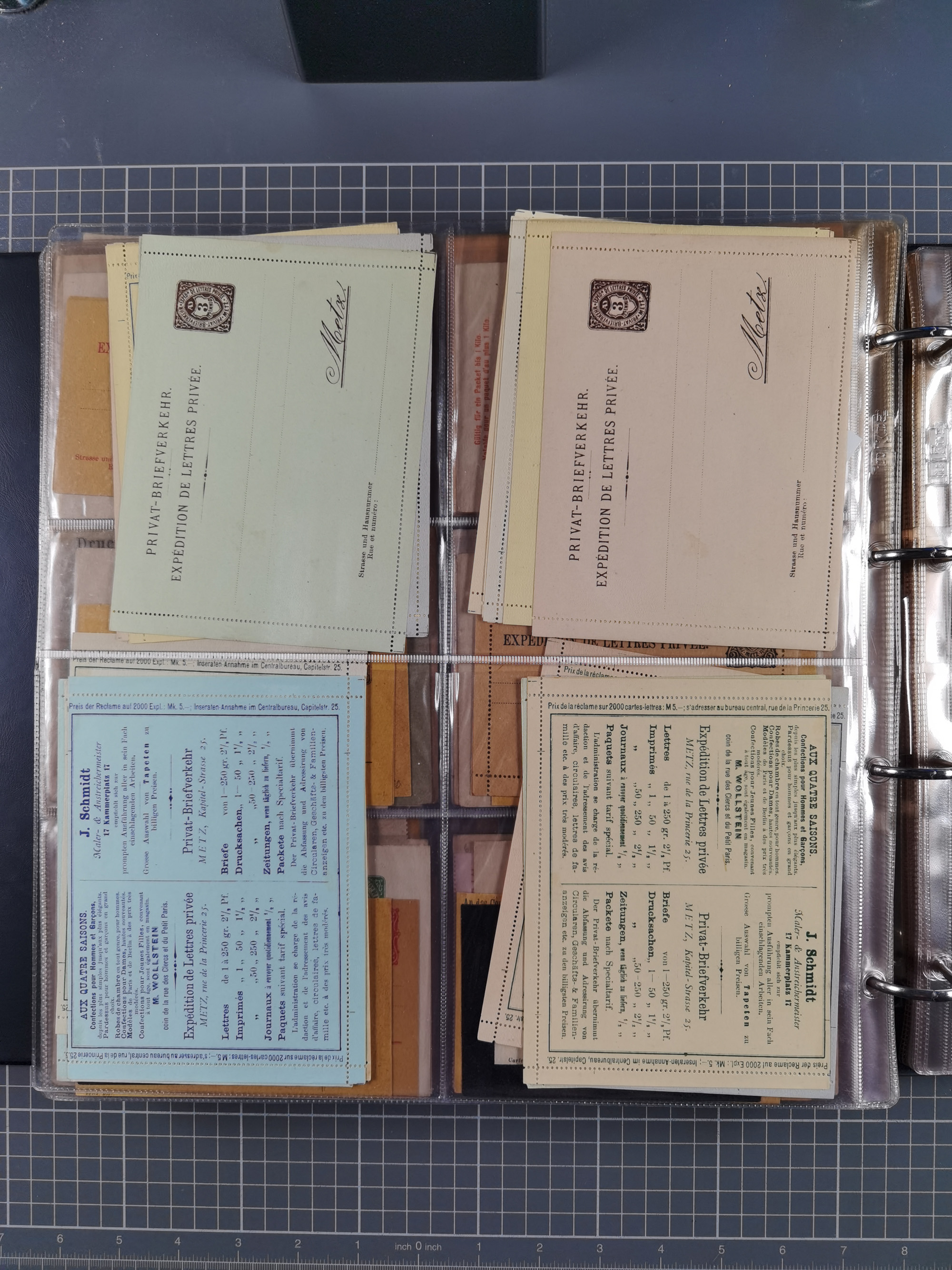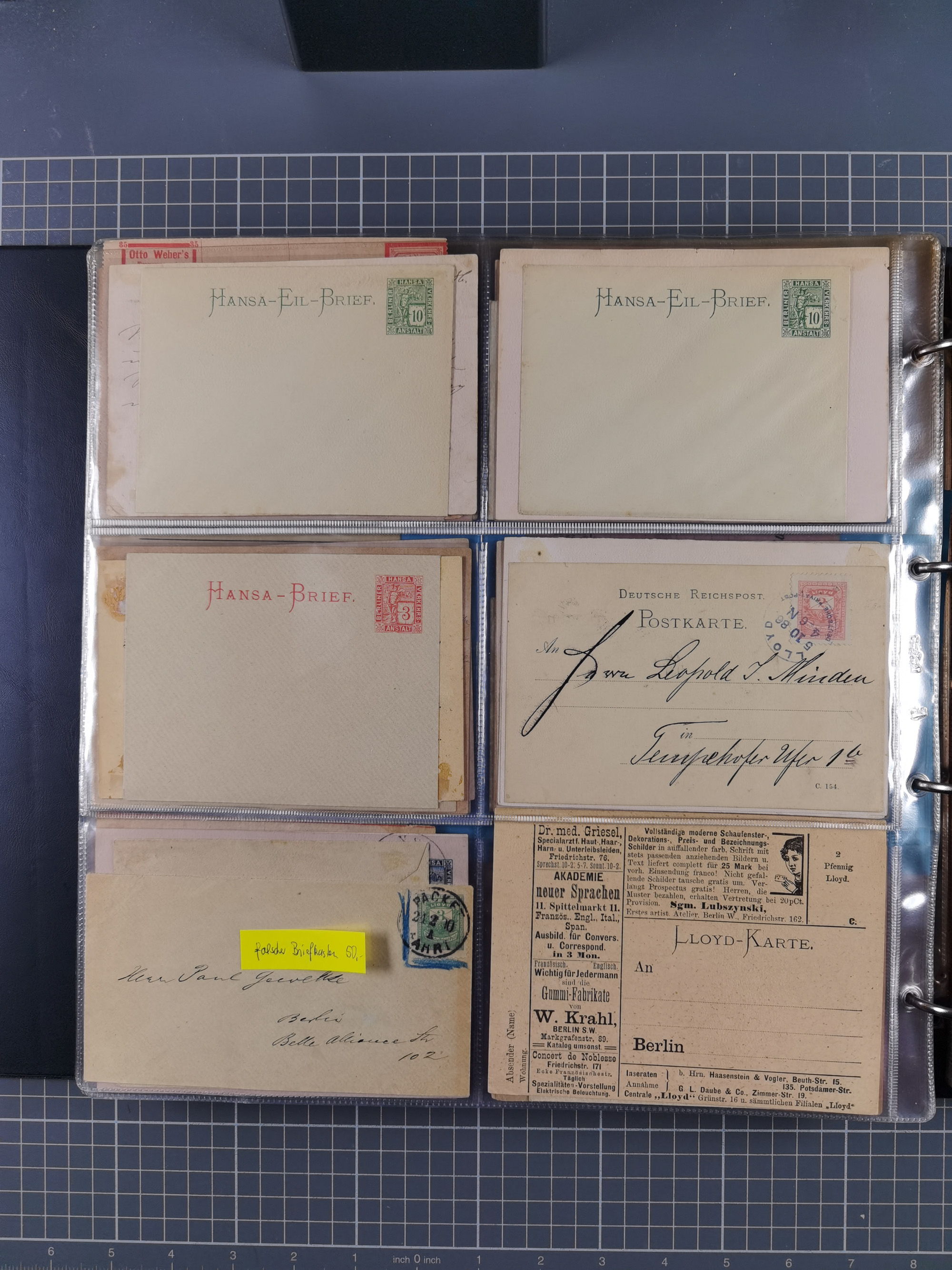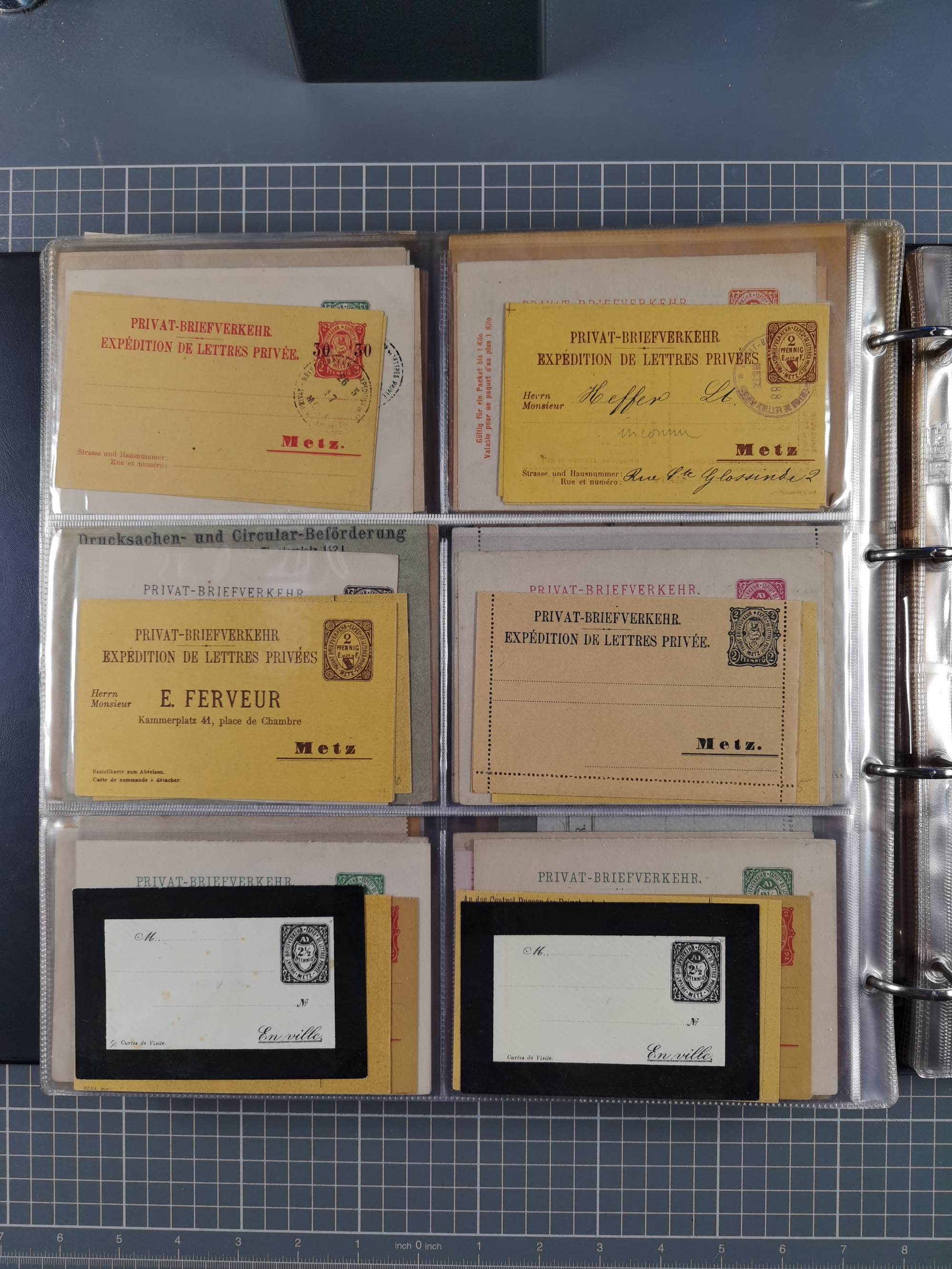 Straßburg-Privat-Brief-Verkehr: 1886/1900, kleine Sammlung mit 35 Briefen, Karten und Ganzsachen inkl. Postkarte mit Hansa Mi.-Nr. 5 ohne Text. Dabei u.a. Mi.-Nr. 2 auf Postkarte mit Grußtext, zwei Briefe mit Mi.-Nr. 34, bedargsgebrauchte Ganzsachen und P18 ungebraucht