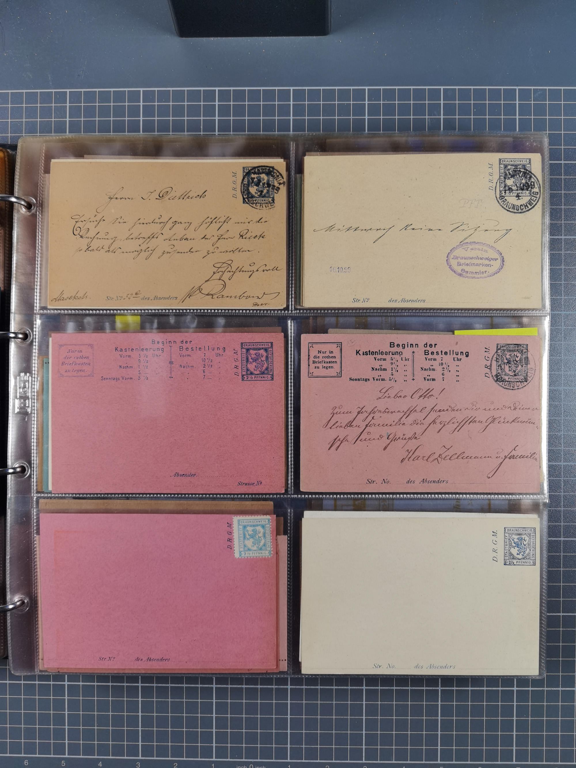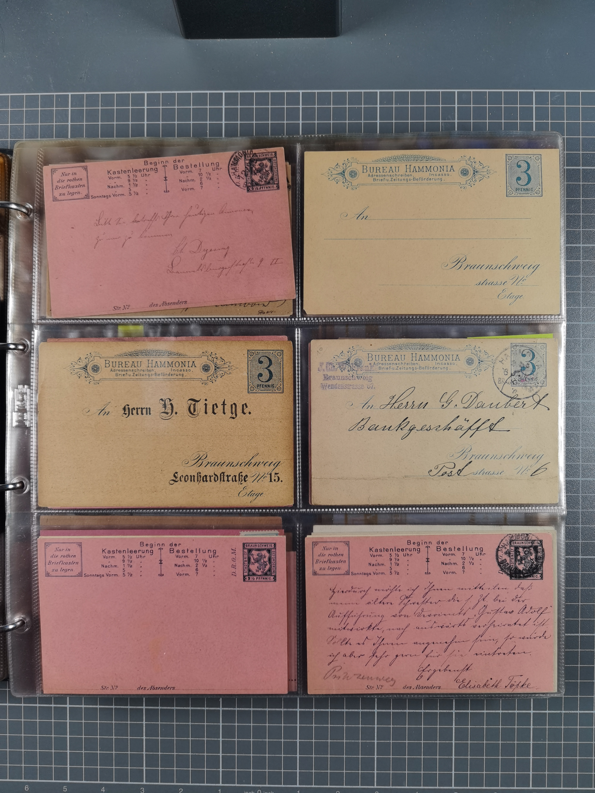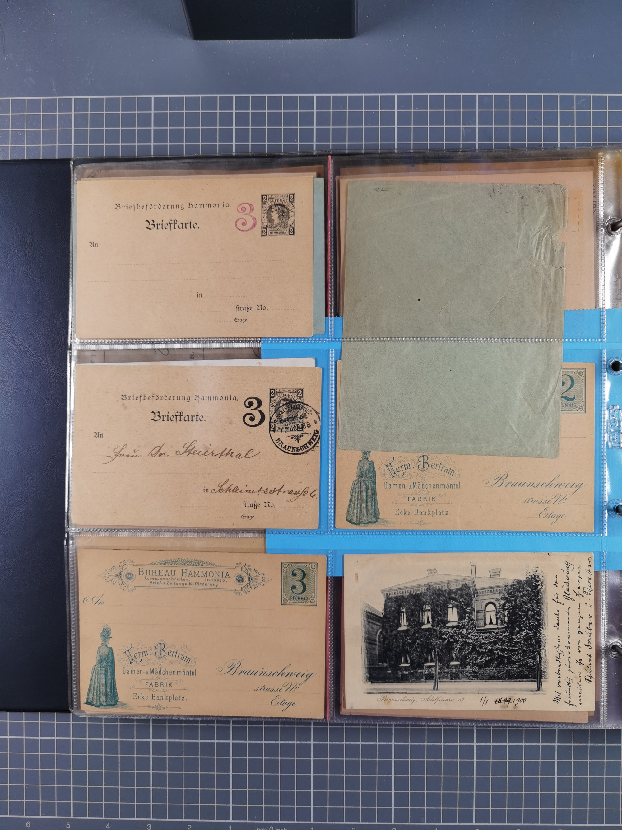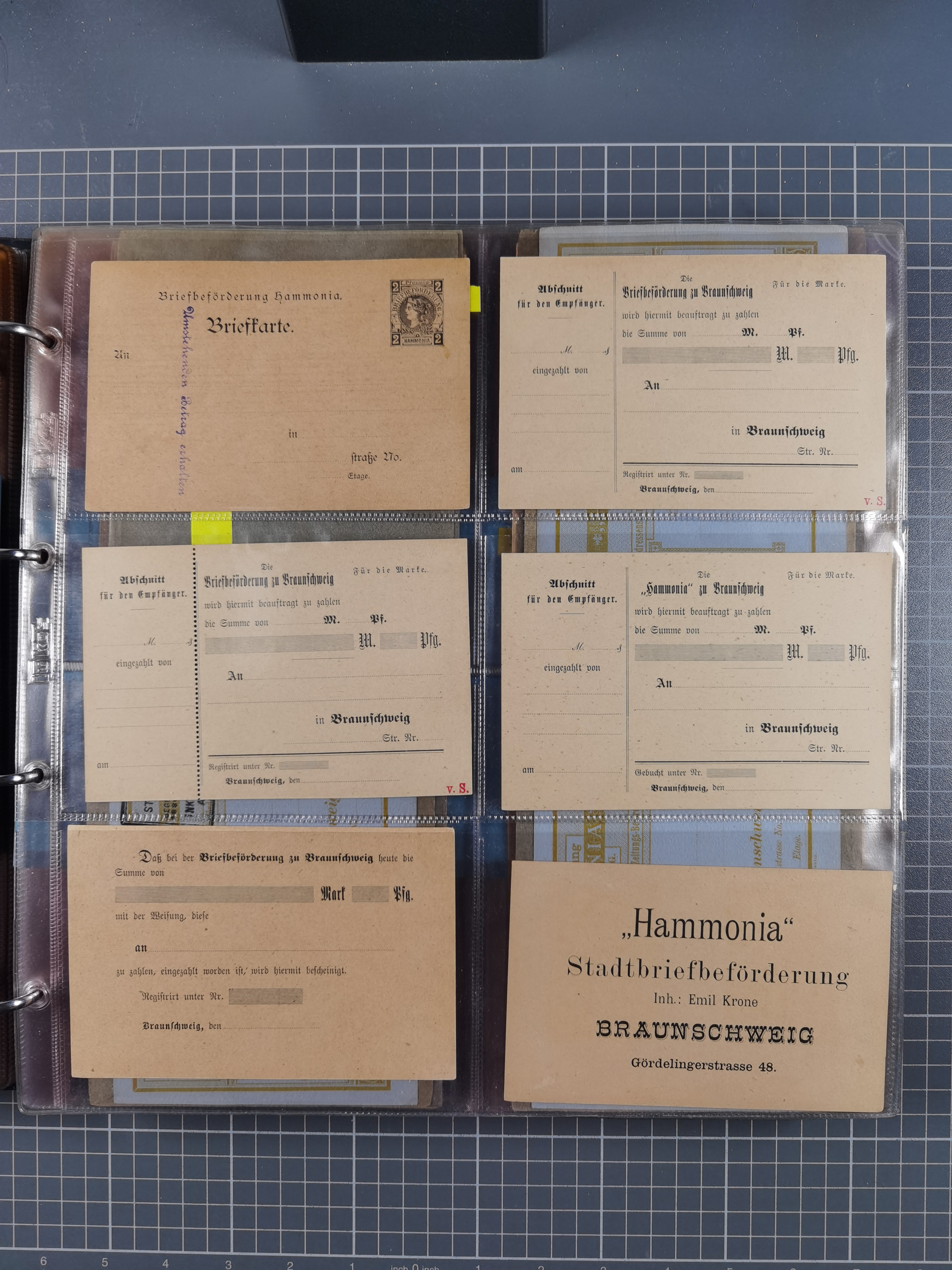 Braunschweig-Brief-Beförderung Hammonia, 1886/1900, über 100 Briefe, Karten, ungebrauchte und gebrauchte Ganzsachen sowie Formulare. Dabei u.a. P4-5II ungebraucht, P120-11 ungebraucht, P26 ungebraucht und gebraucht sowie gebrauchte GSK mit Zudrucken