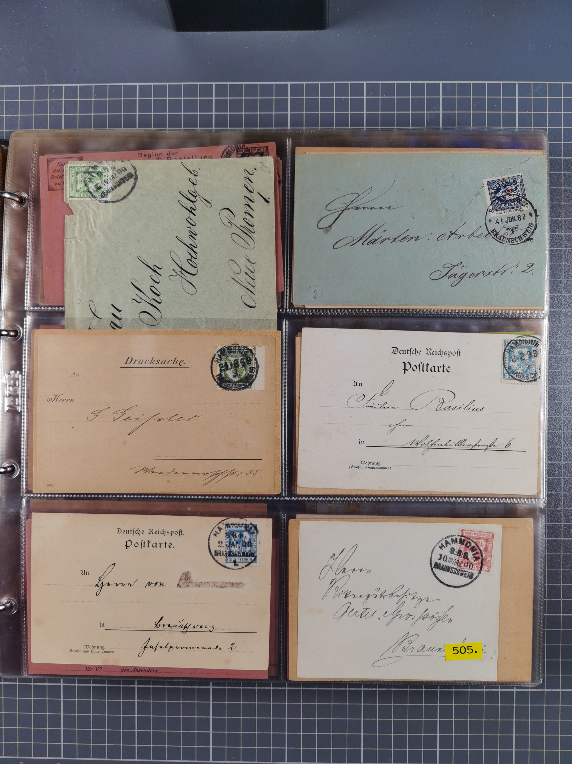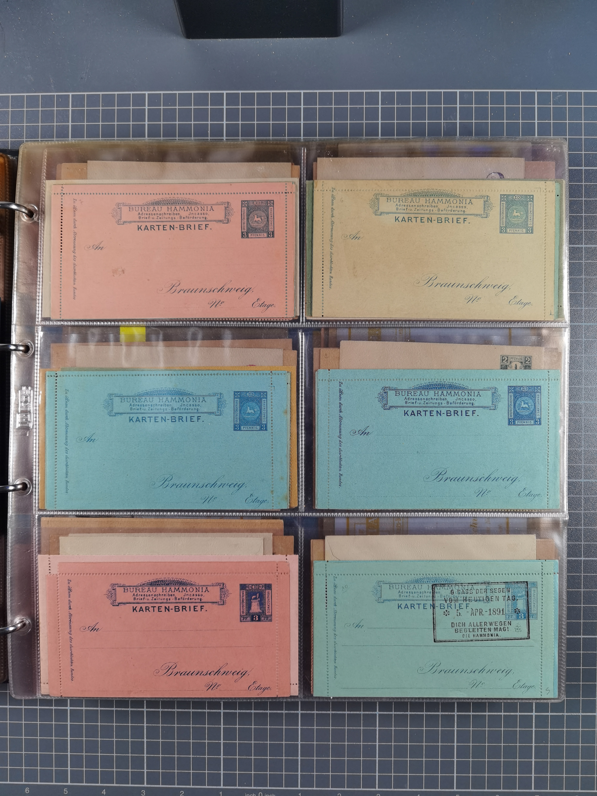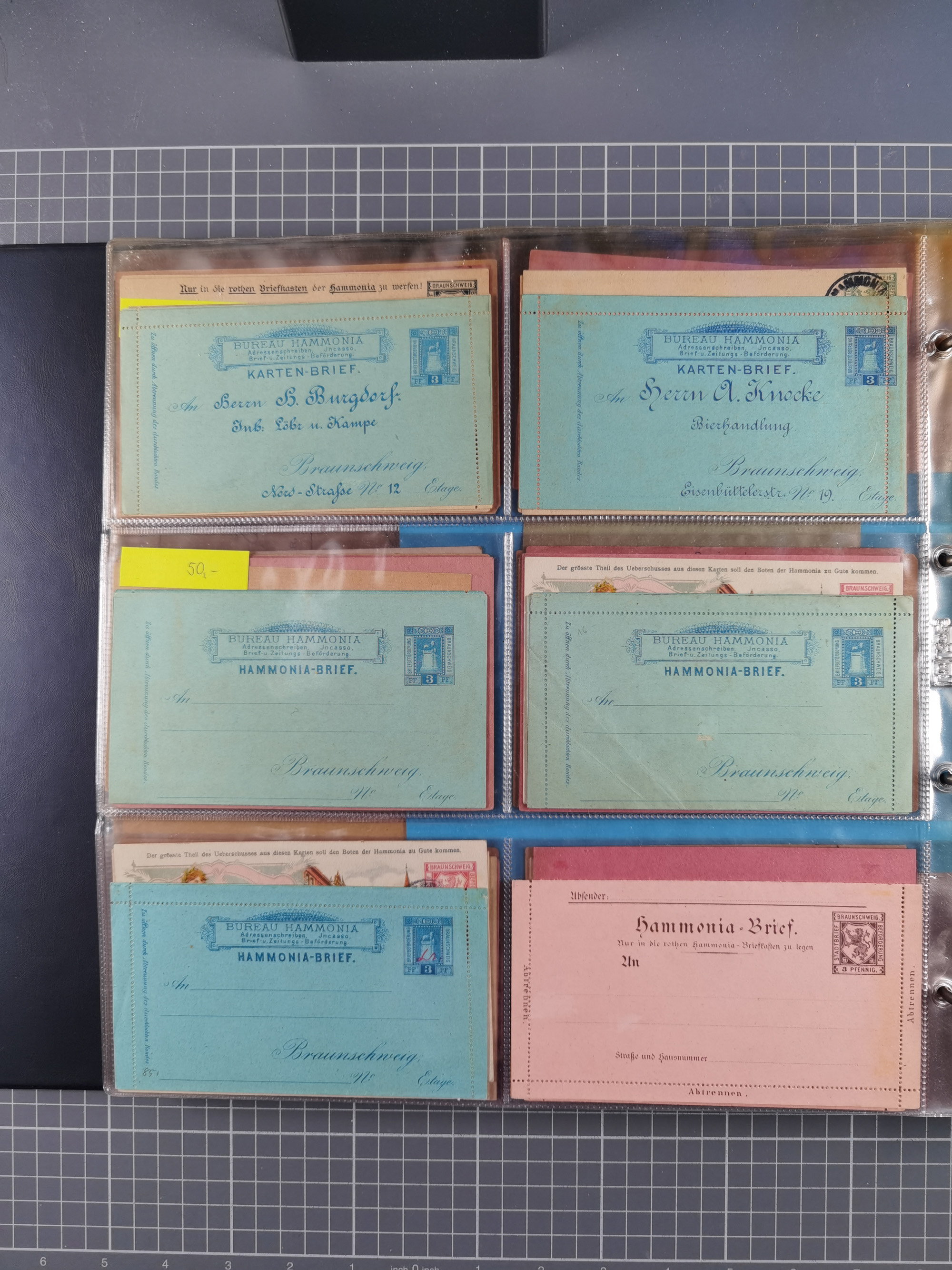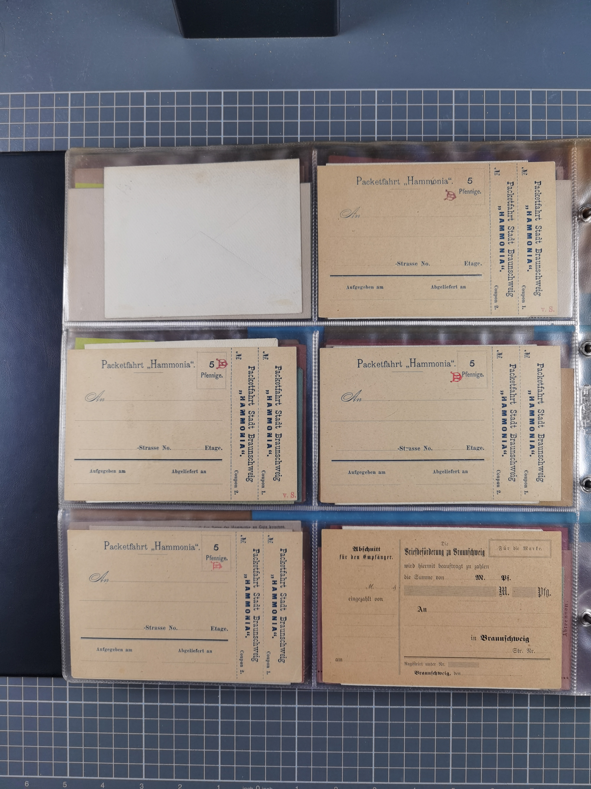 Braunschweig-Brief-Beförderung Hammonia, 1886/1900, über 100 Briefe, Karten, ungebrauchte und gebrauchte Ganzsachen sowie Formulare. Dabei u.a. P4-5II ungebraucht, P120-11 ungebraucht, P26 ungebraucht und gebraucht sowie gebrauchte GSK mit Zudrucken