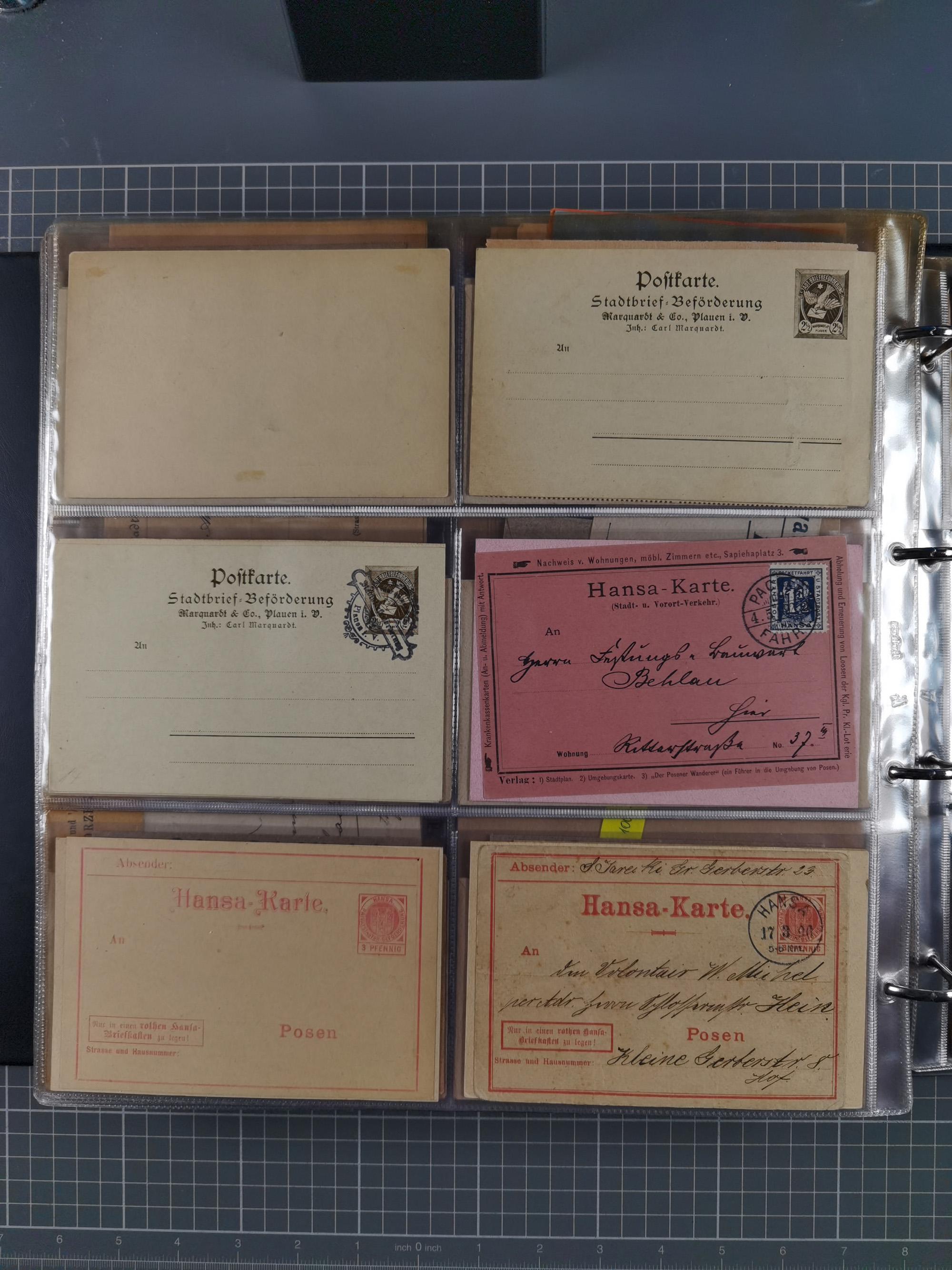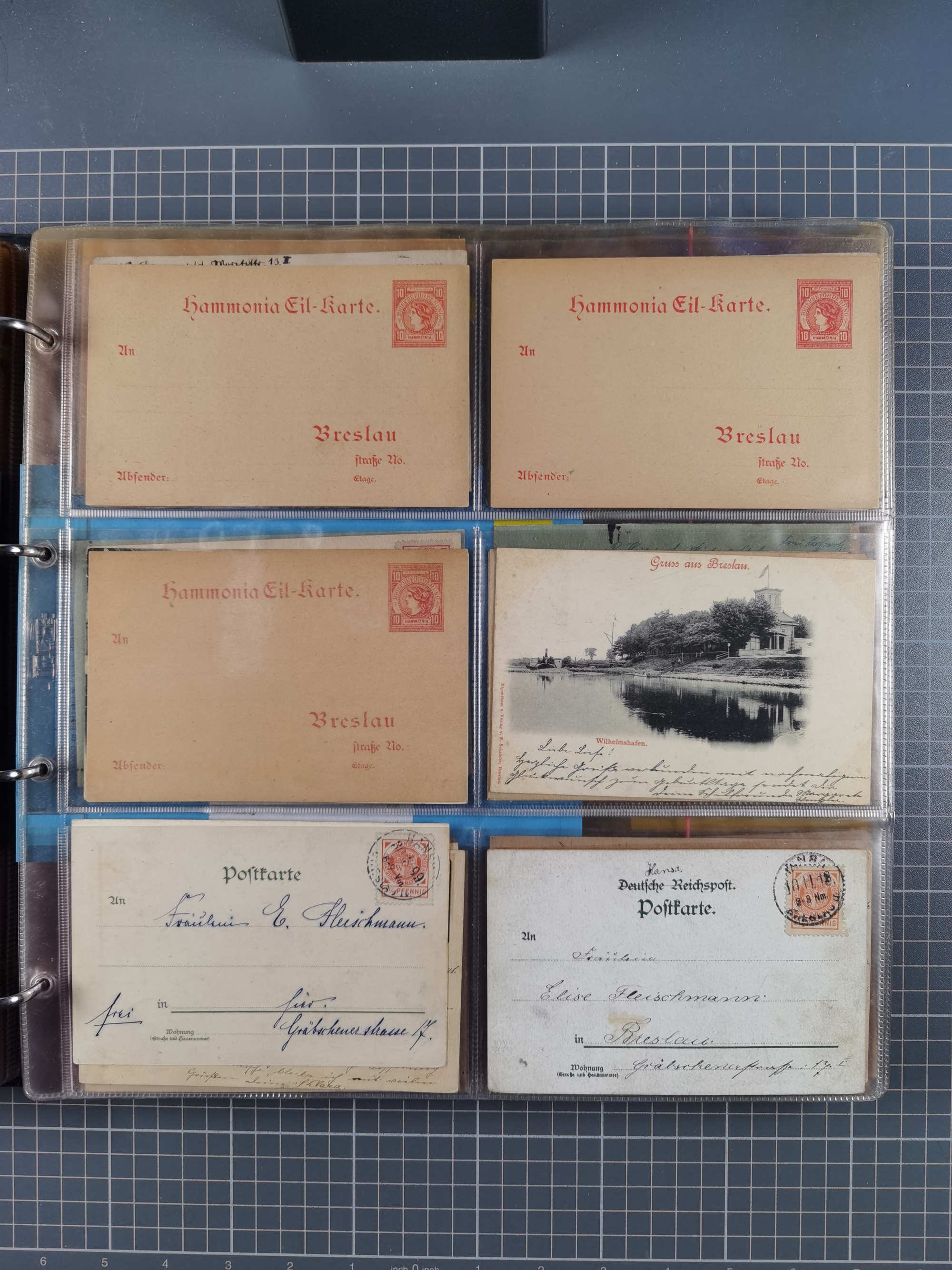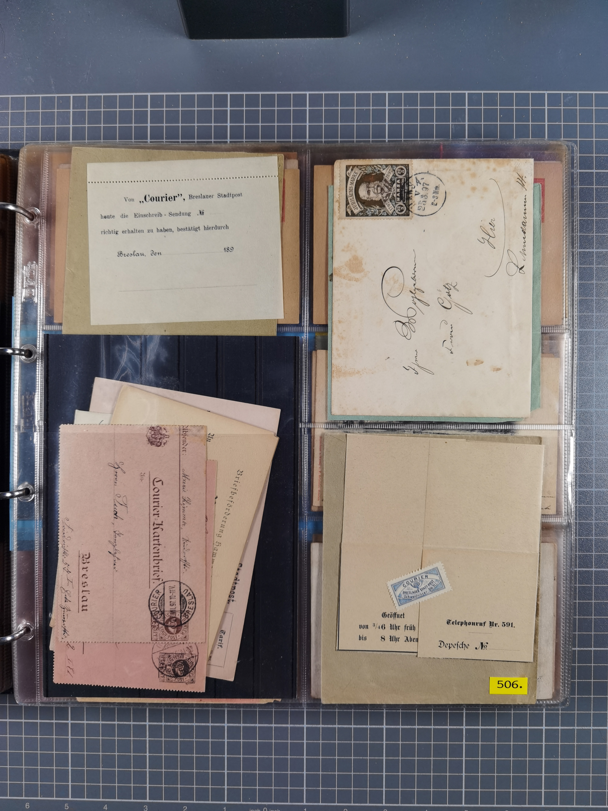 Breslau-HANSA: 1893/1900, fast 50 Briefe, Karten, ungebrauchte und gebraucht Ganzsachen und Formulare. Dabei u.a. zwei Briefe mit Mi.-Nr. 12 und P7I ungebraucht. Dazu Stadtpost Courier mit Mi.-Nr. 8 auf Firmenkarte und P1, K1 und K2 gebraucht