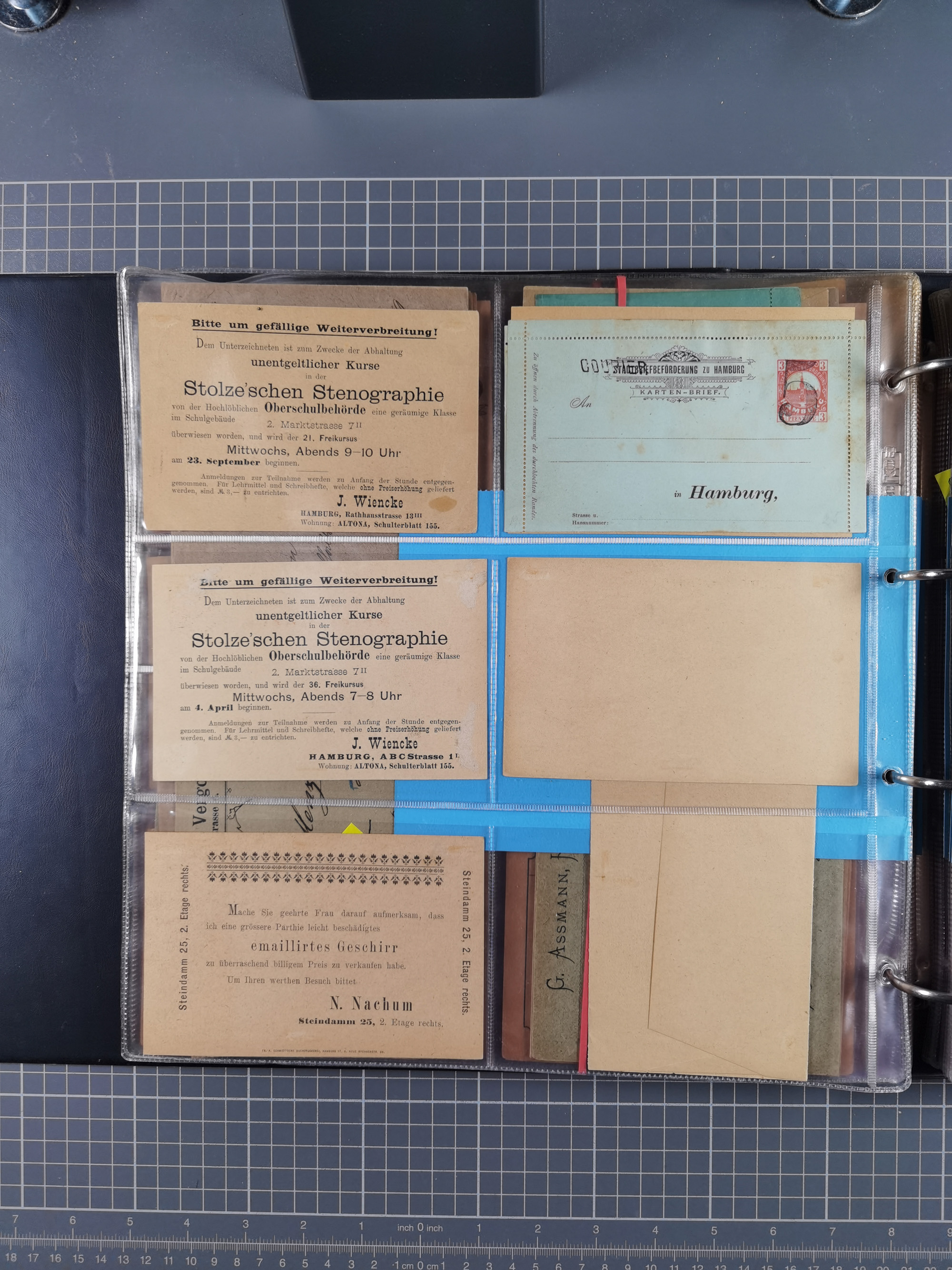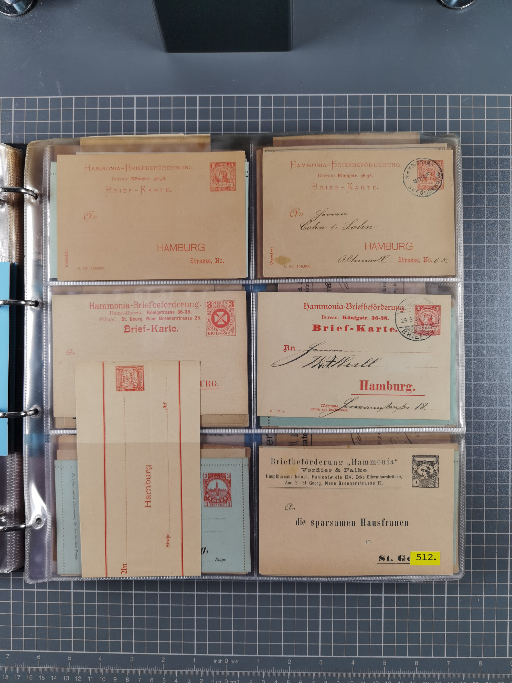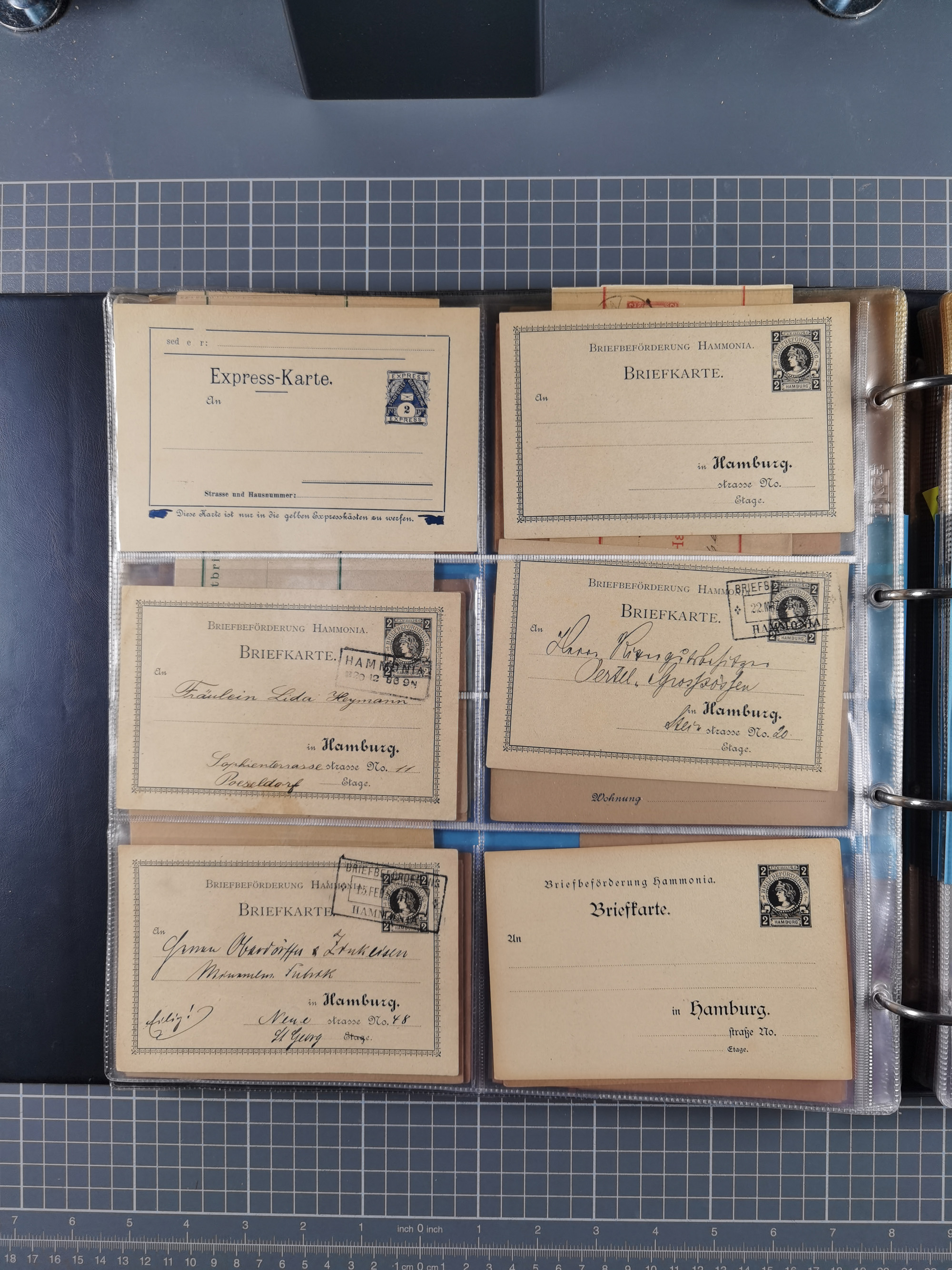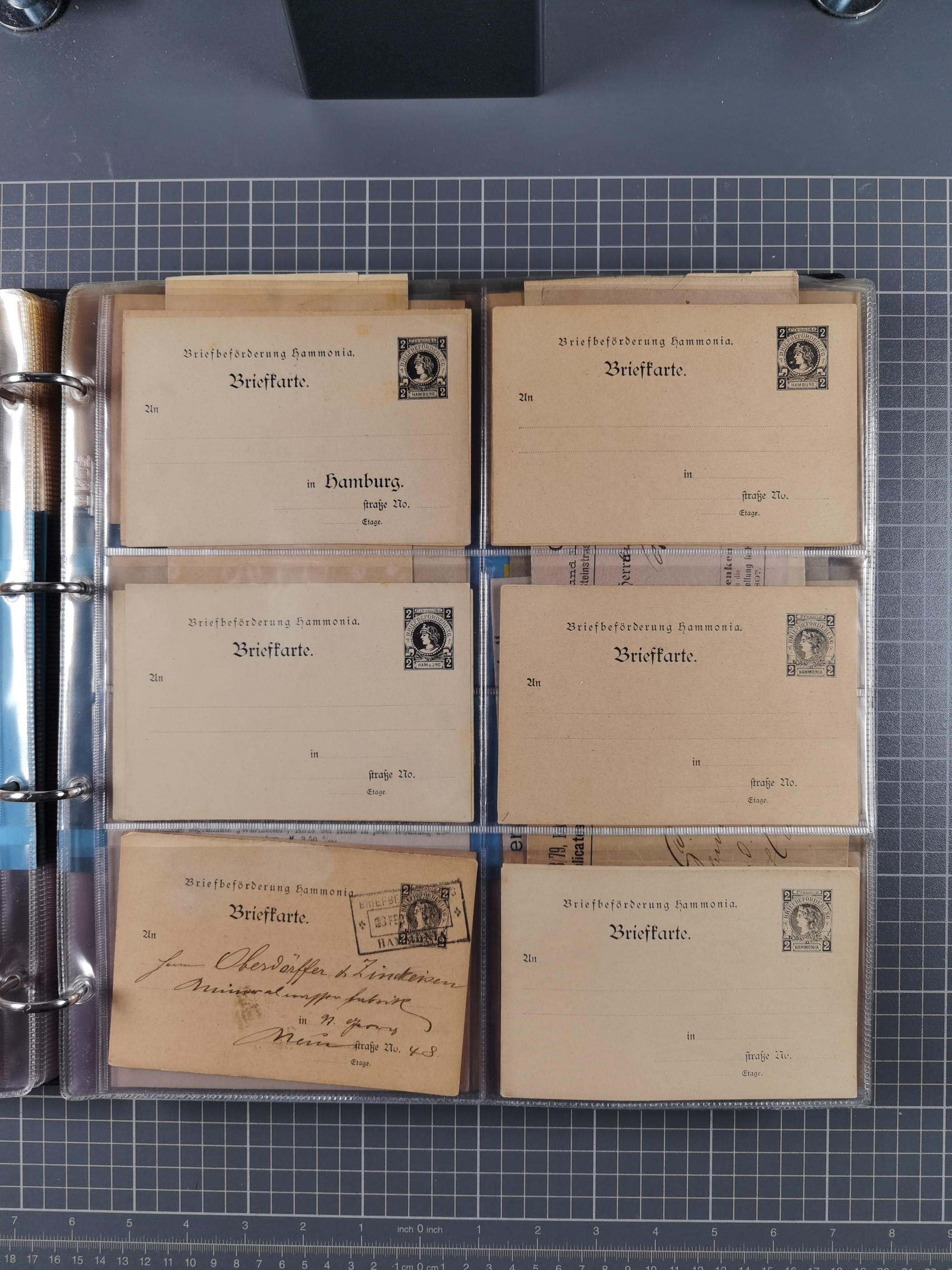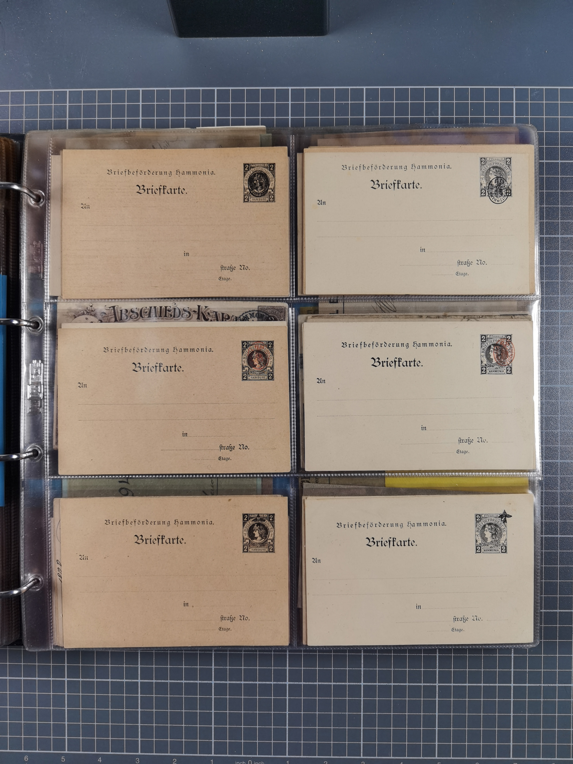 Hamburg-Hammonia I. und II.: 1886/1900, ca. 40 Briefe, Karten und ungebrauchte/gebrauchte Ganzsachen inkl. weniger Belege von anderen Anstalten. Dabei u.a. Hammonia II PP1 ungbraucht, P7Z gebraucht und P9AZ gebraucht,
