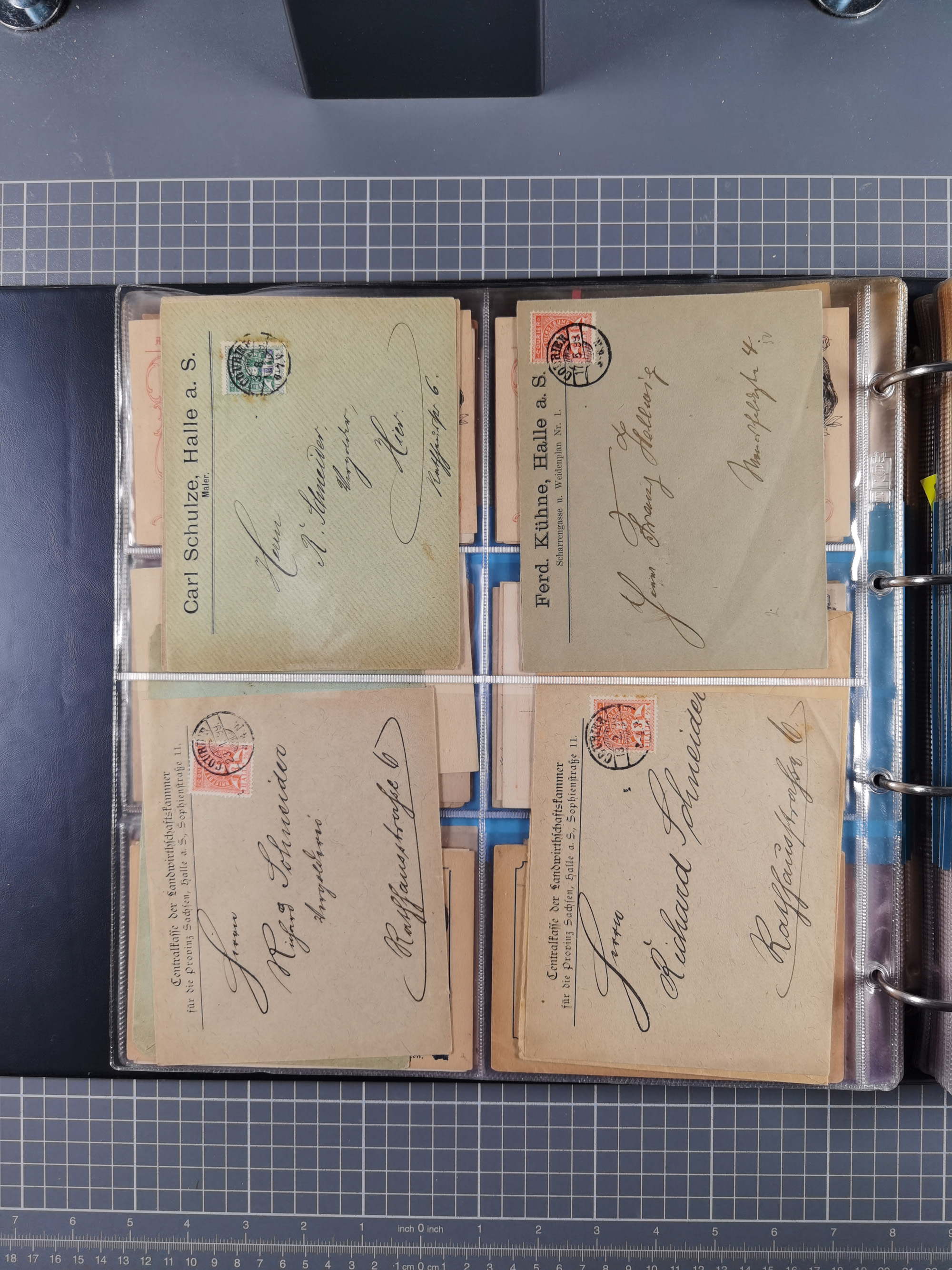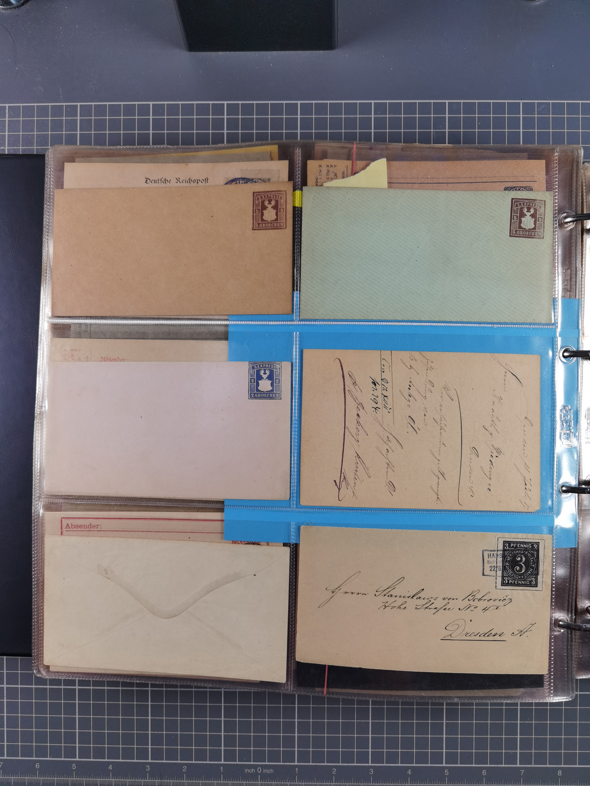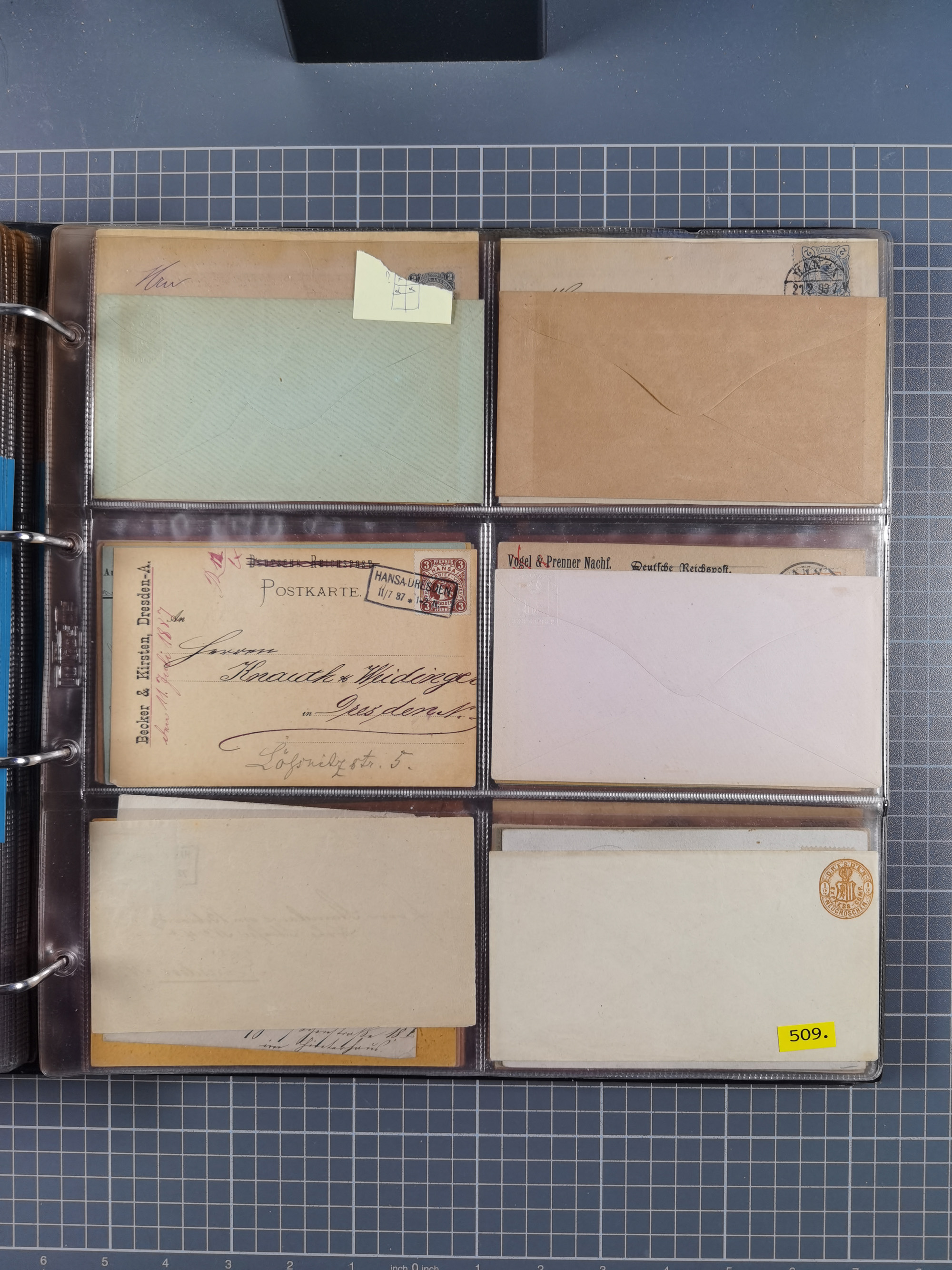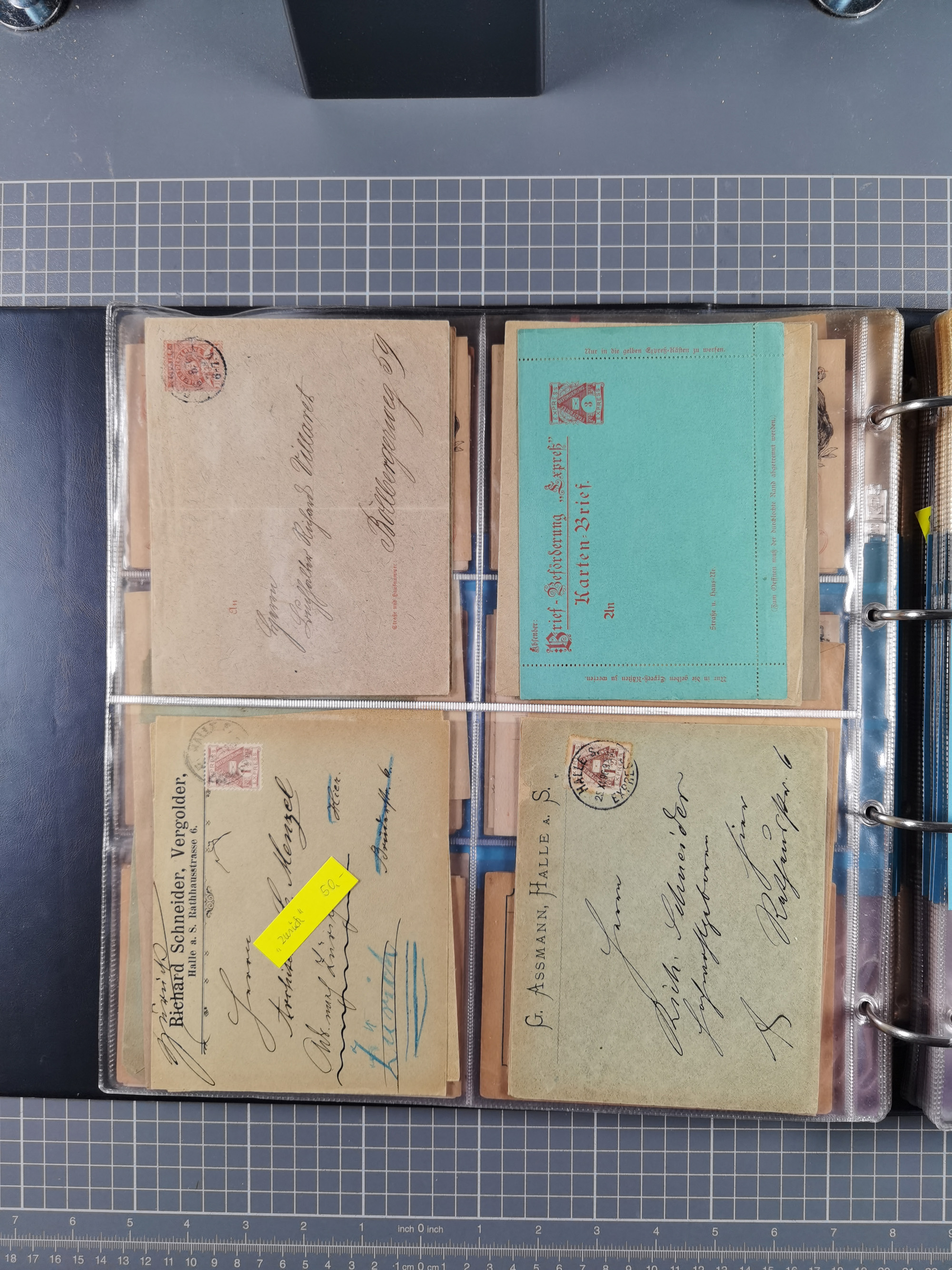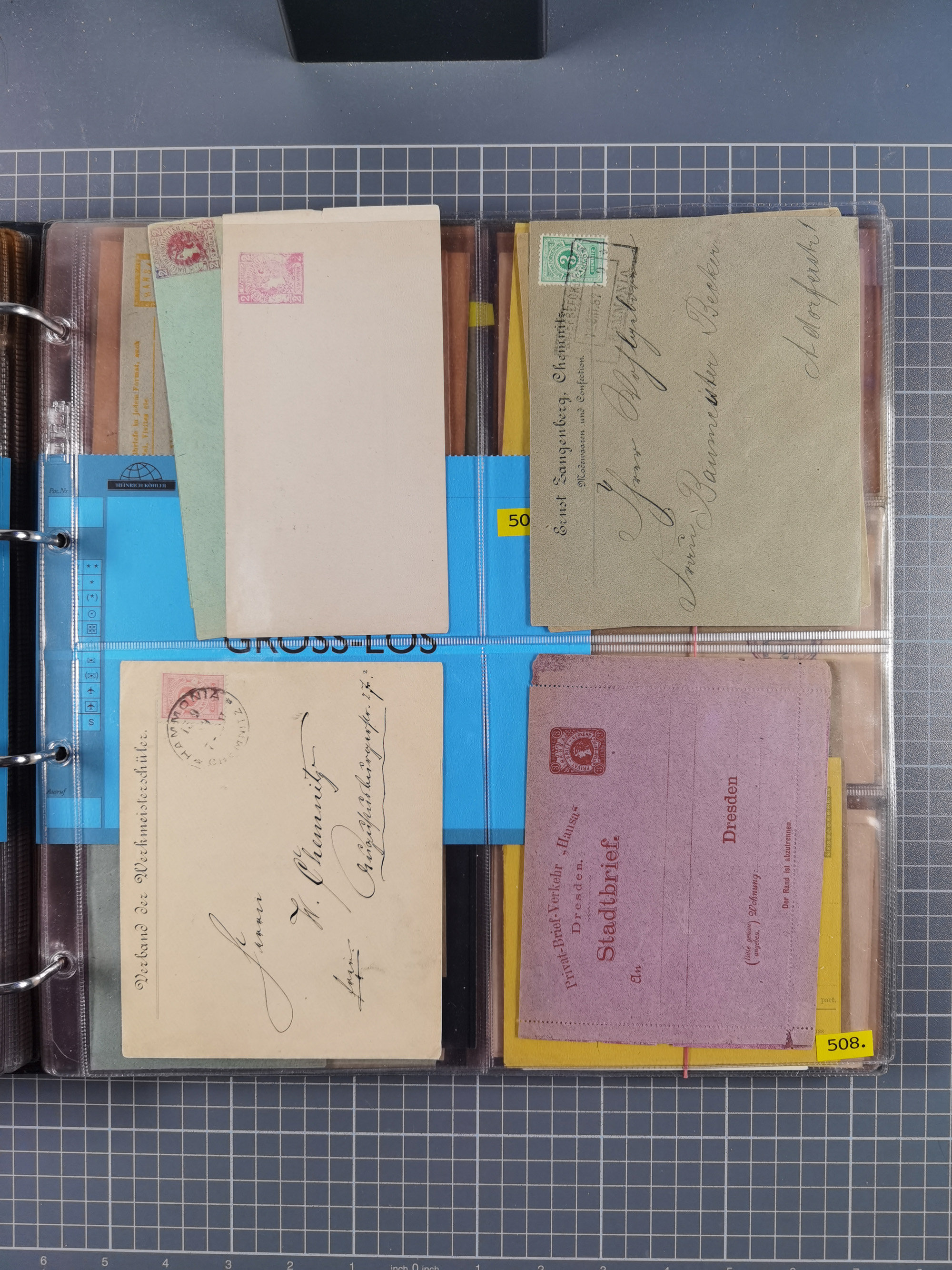 Leipzig: 1892/1900, über 100 Briefe, Karten und ungebrauchte und gebrauchte Ganzsachenkarten von fast allen Anstalten mit Schwerpunkt “Courier” und “Lipsia”. Dabei u.a. Courier Mi.-Nr. 1 und 2 mehrfach auf Briefen/Karten, P10 mit Stempel “EILENBURG” nach Leipzig und P19 mit Stempel “WEISSENFELS” (Aktenlochung links), LIPSIA mit Mi.-Nr. 11 auf Brief, vier Retour-Briefe mit Mi.-Nr. 19, K4 gebraucht und PU2 gebraucht und Leipziger Verkehrsanstalt mit u.a. Mi.-Nr. 6 auf Brief,