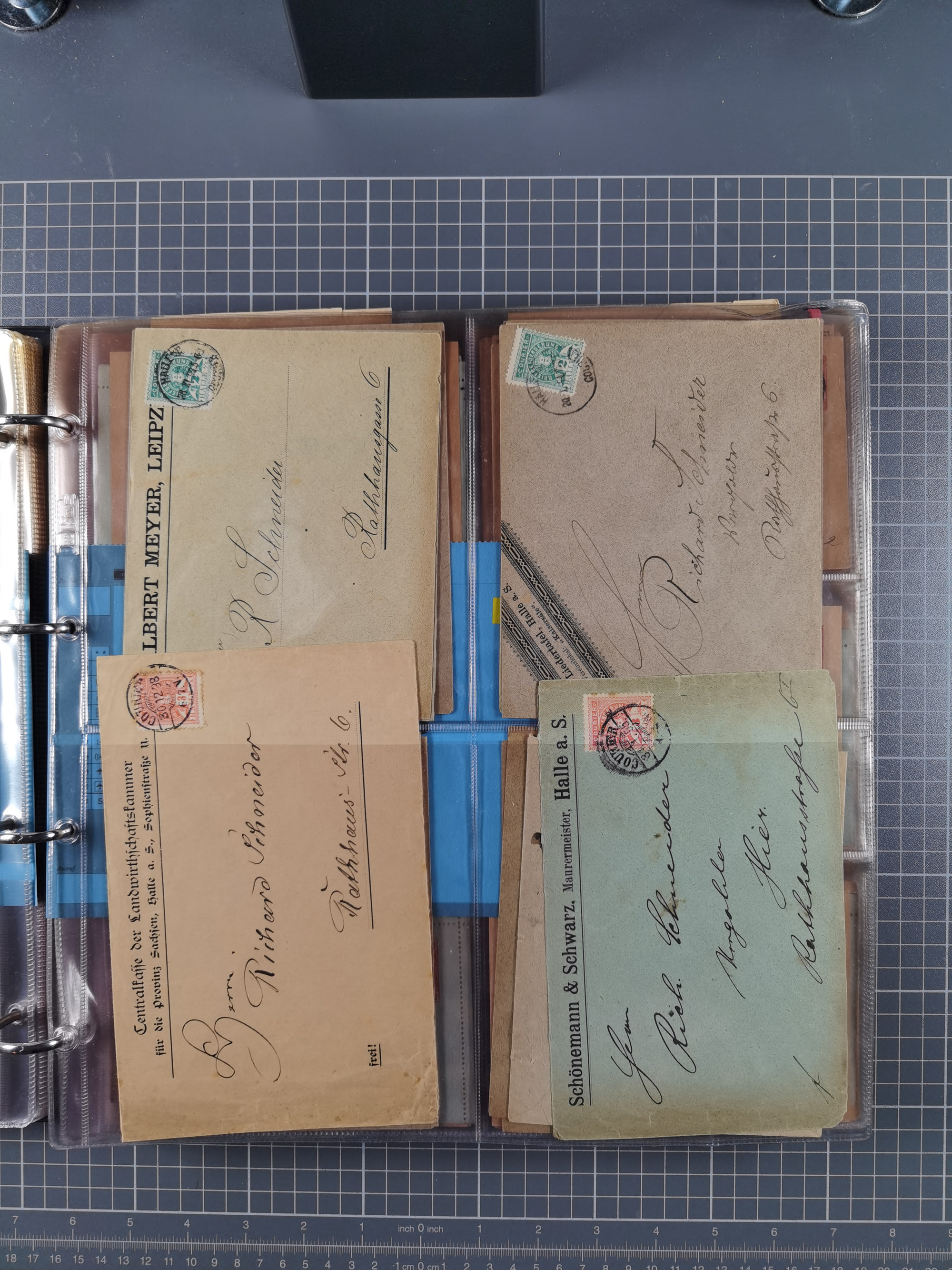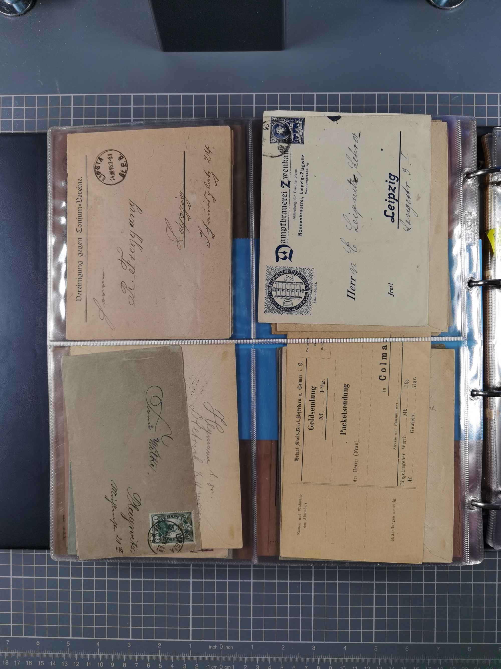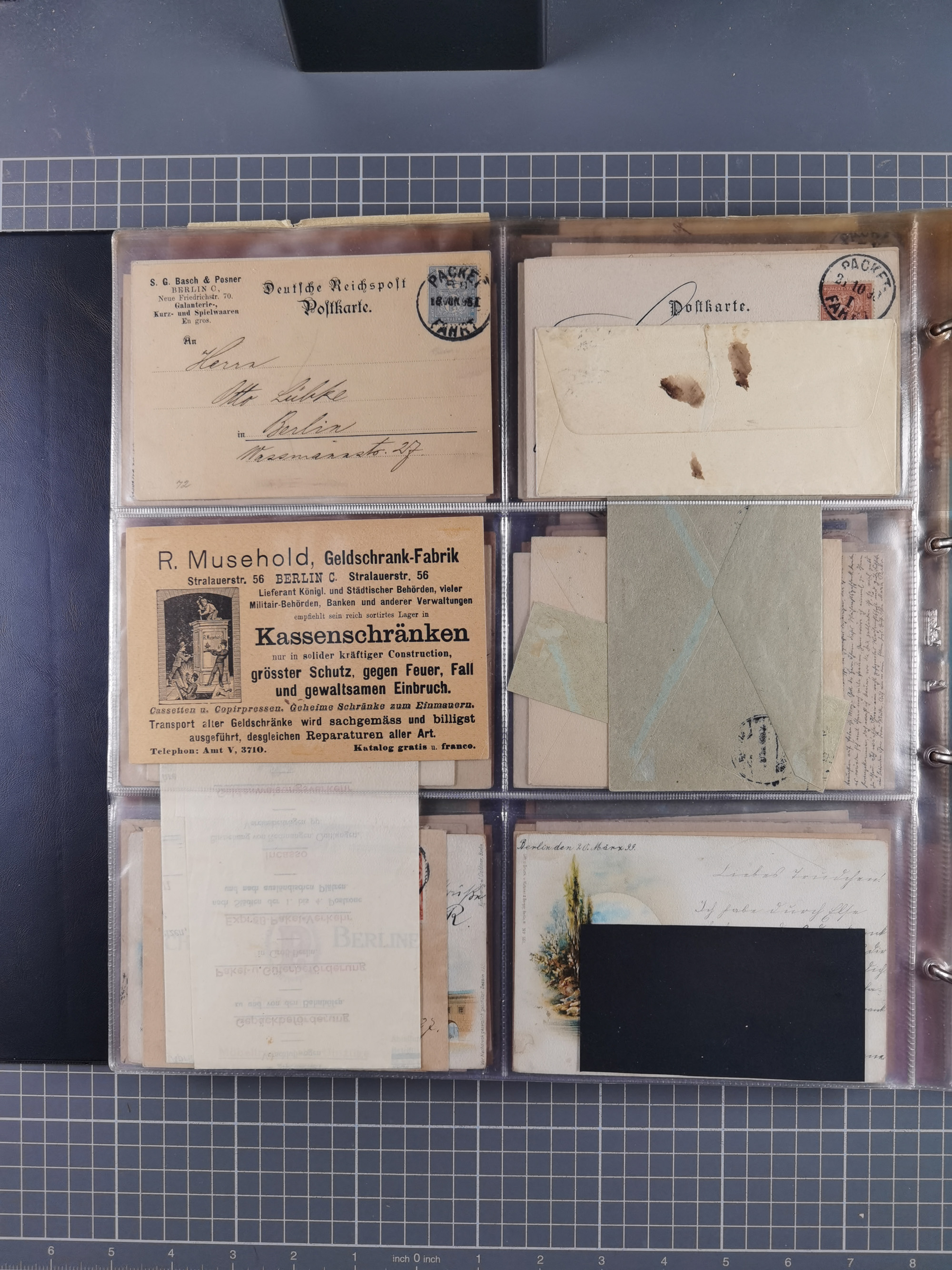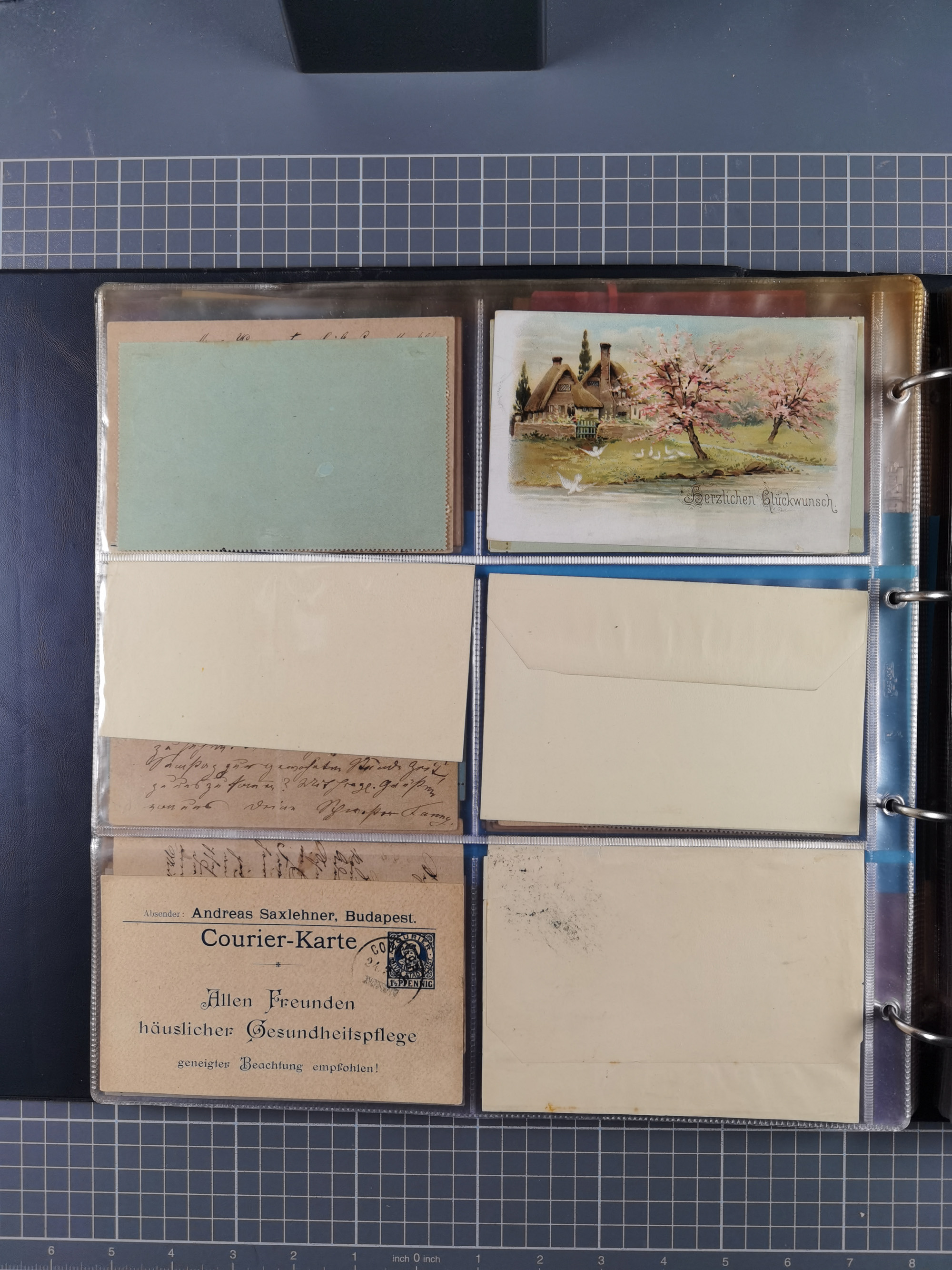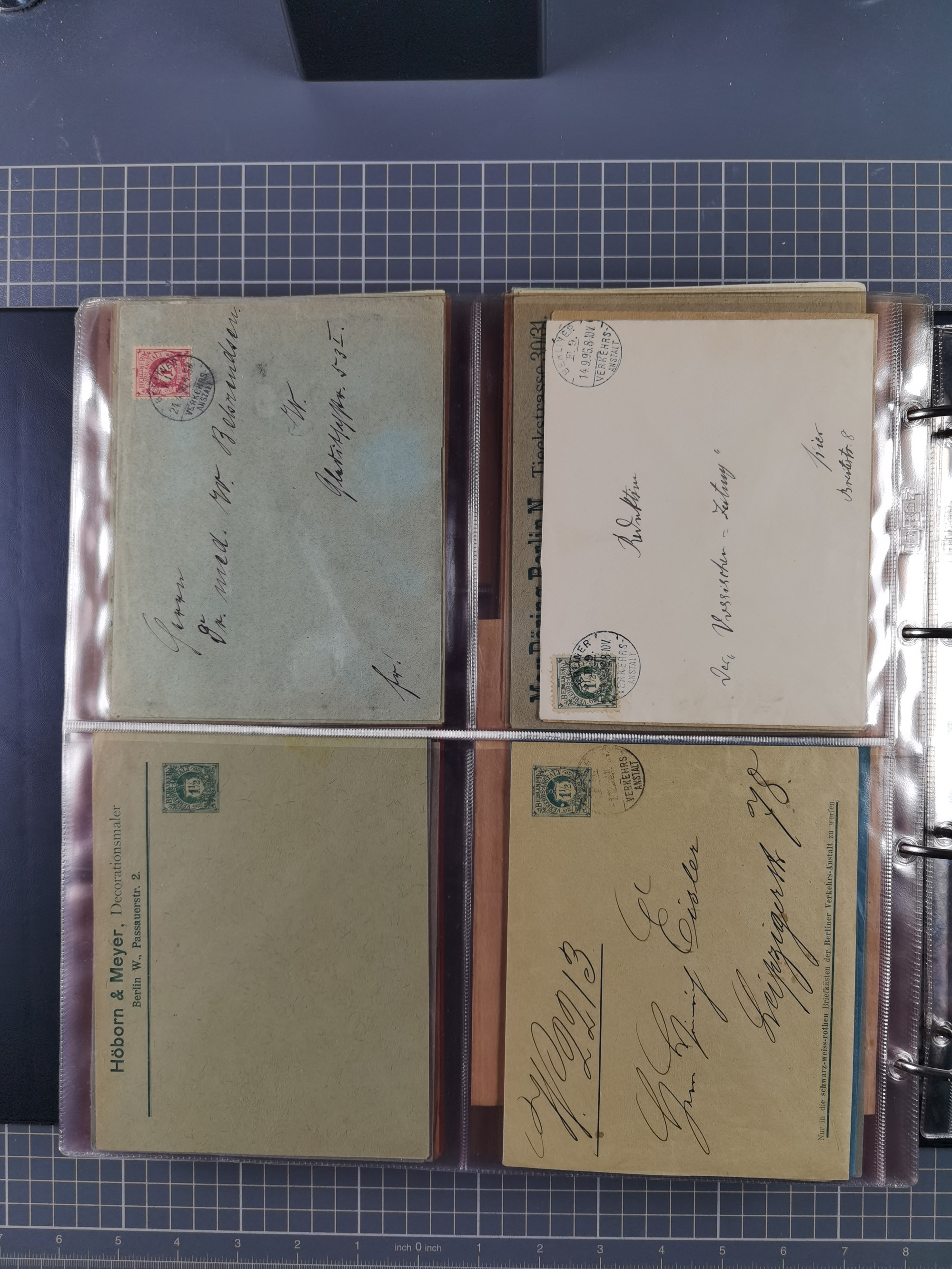 Leipzig: 1892/1900, über 100 Briefe, Karten und ungebrauchte und gebrauchte Ganzsachenkarten von fast allen Anstalten mit Schwerpunkt “Courier” und “Lipsia”. Dabei u.a. Courier Mi.-Nr. 1 und 2 mehrfach auf Briefen/Karten, P10 mit Stempel “EILENBURG” nach Leipzig und P19 mit Stempel “WEISSENFELS” (Aktenlochung links), LIPSIA mit Mi.-Nr. 11 auf Brief, vier Retour-Briefe mit Mi.-Nr. 19, K4 gebraucht und PU2 gebraucht und Leipziger Verkehrsanstalt mit u.a. Mi.-Nr. 6 auf Brief,