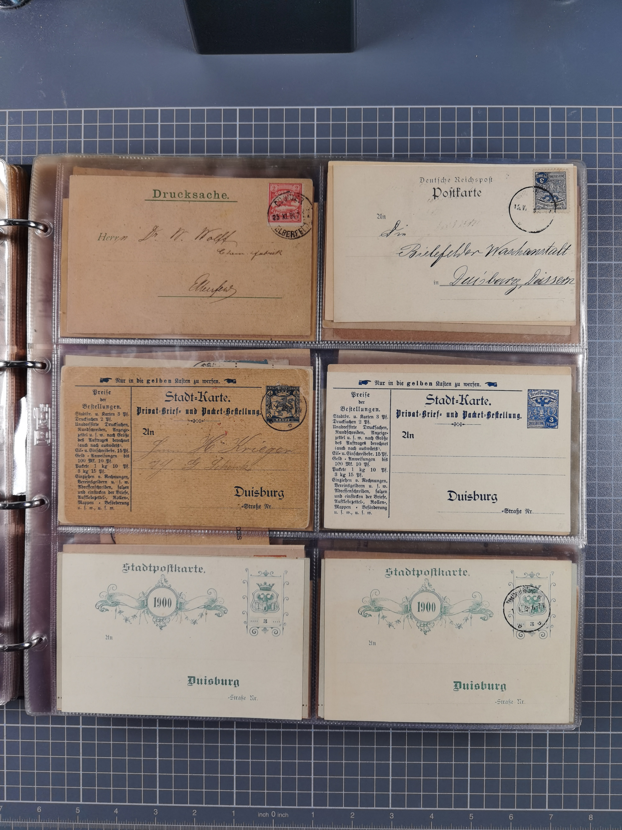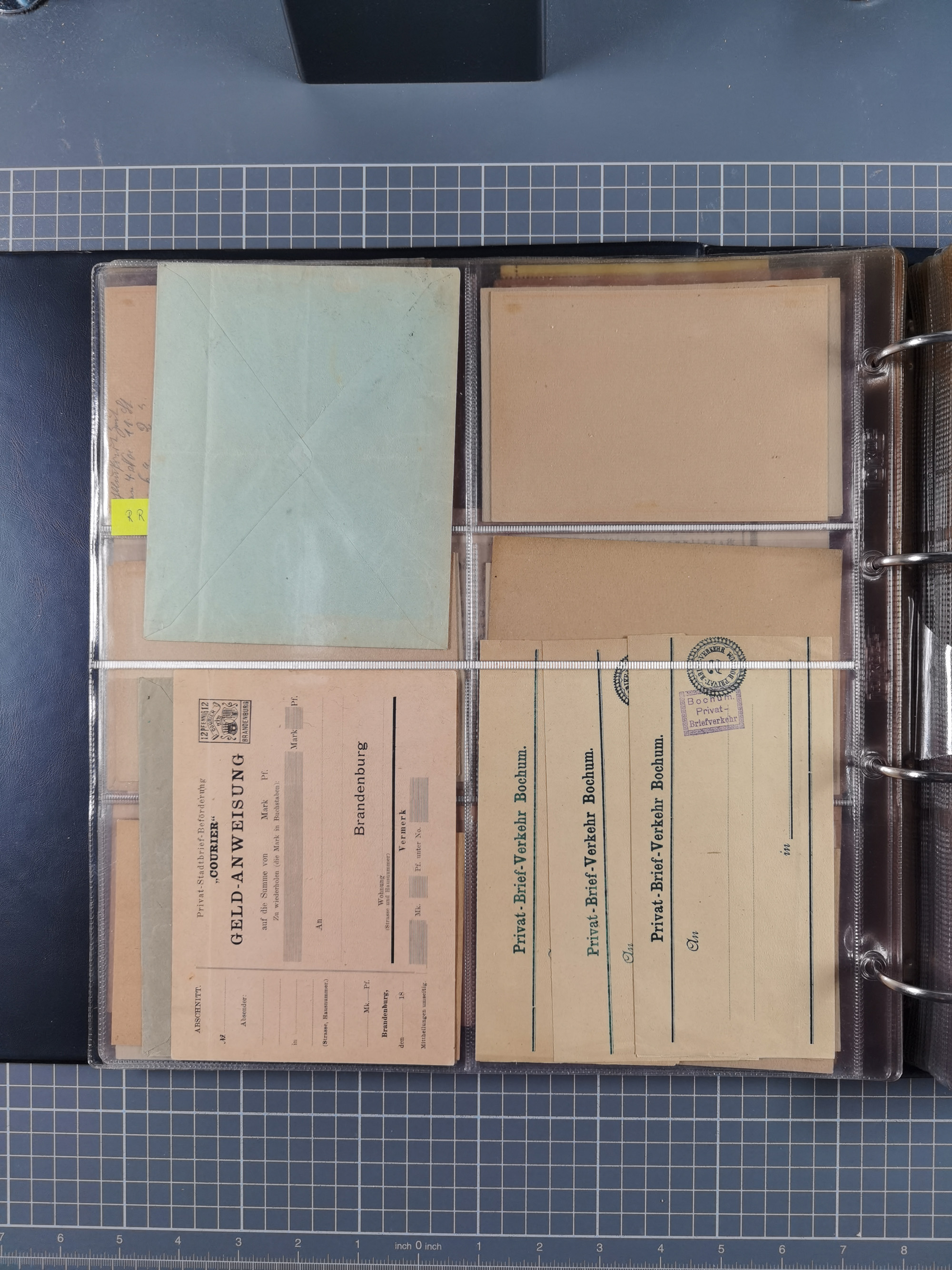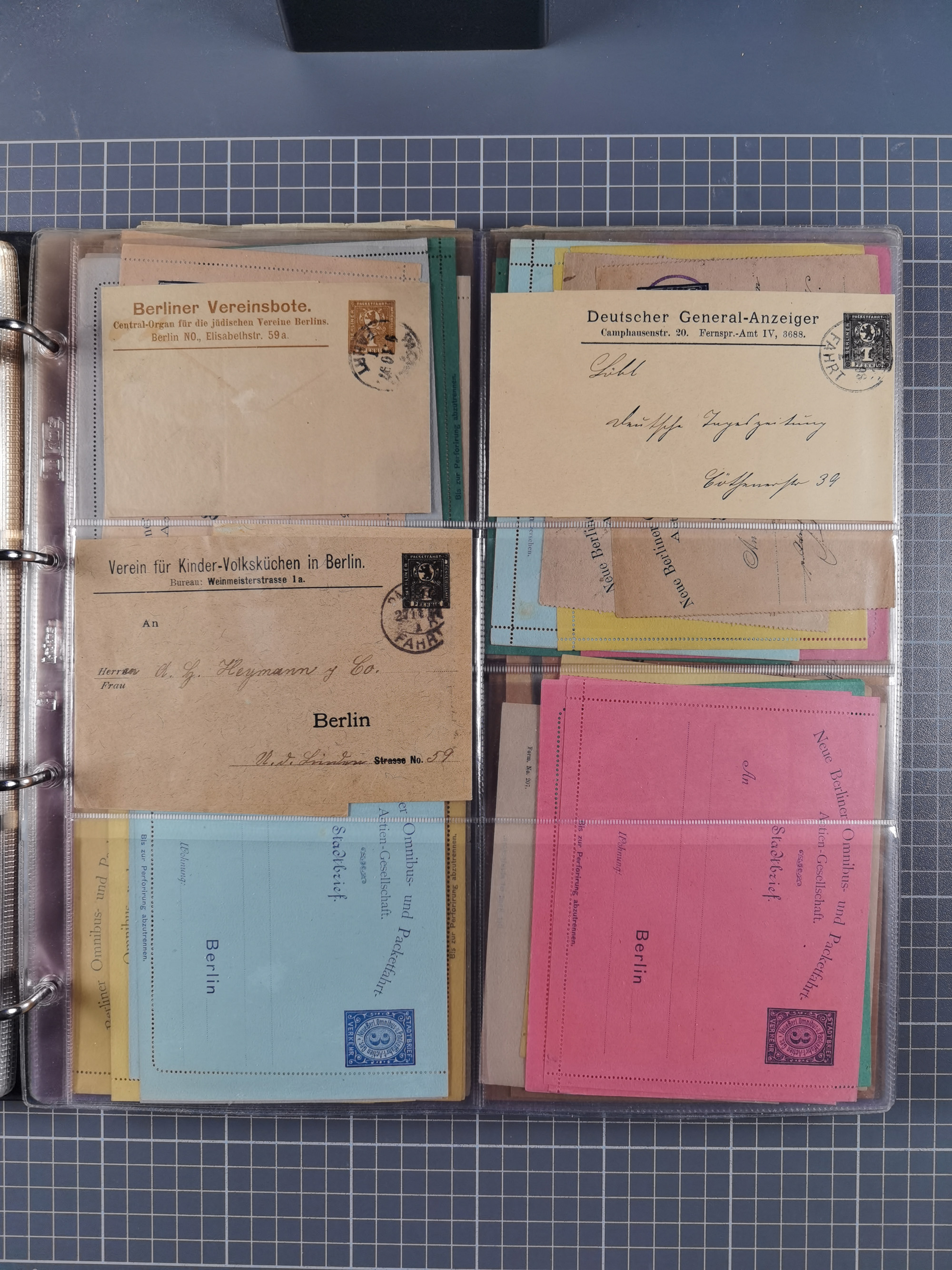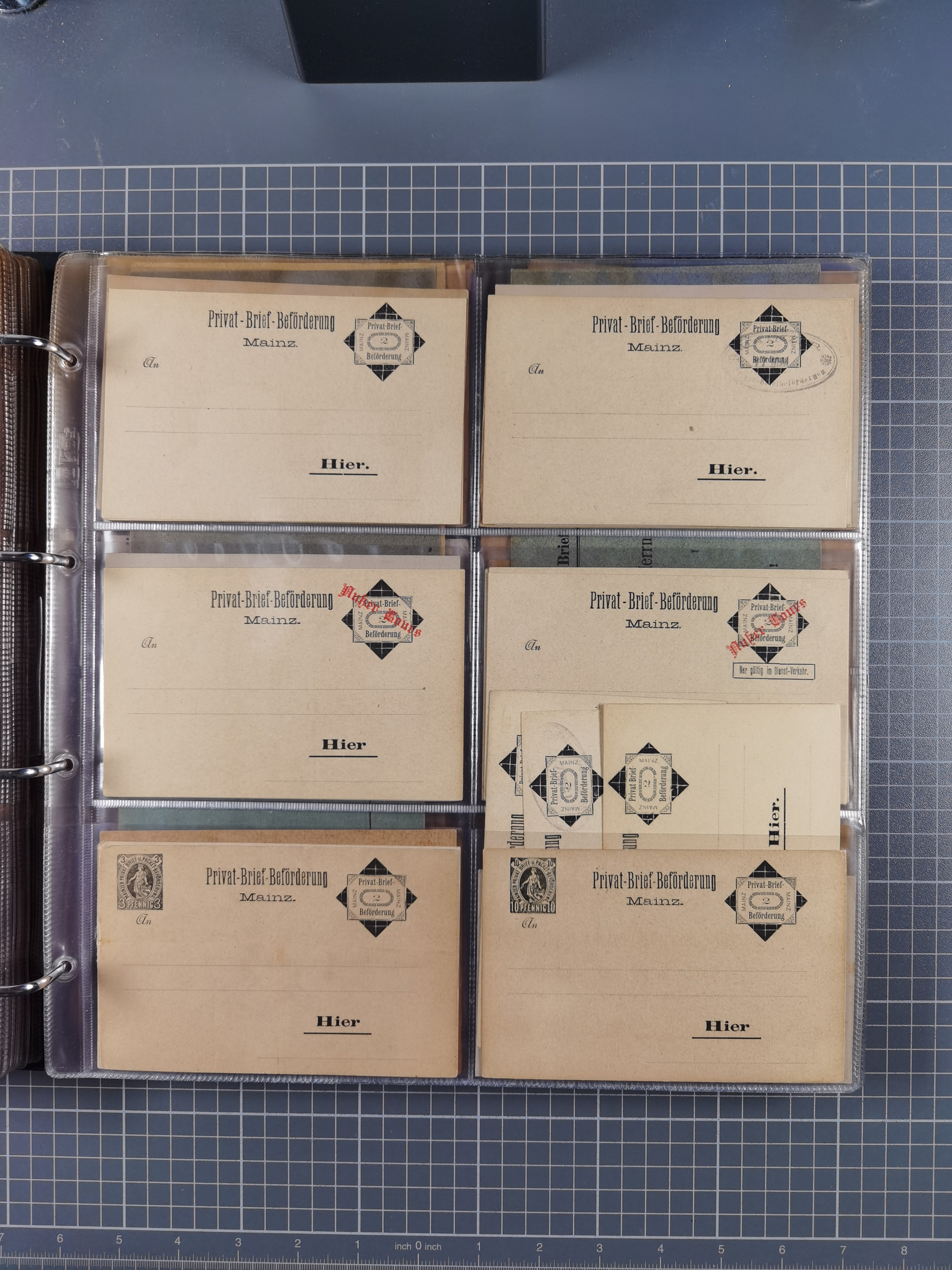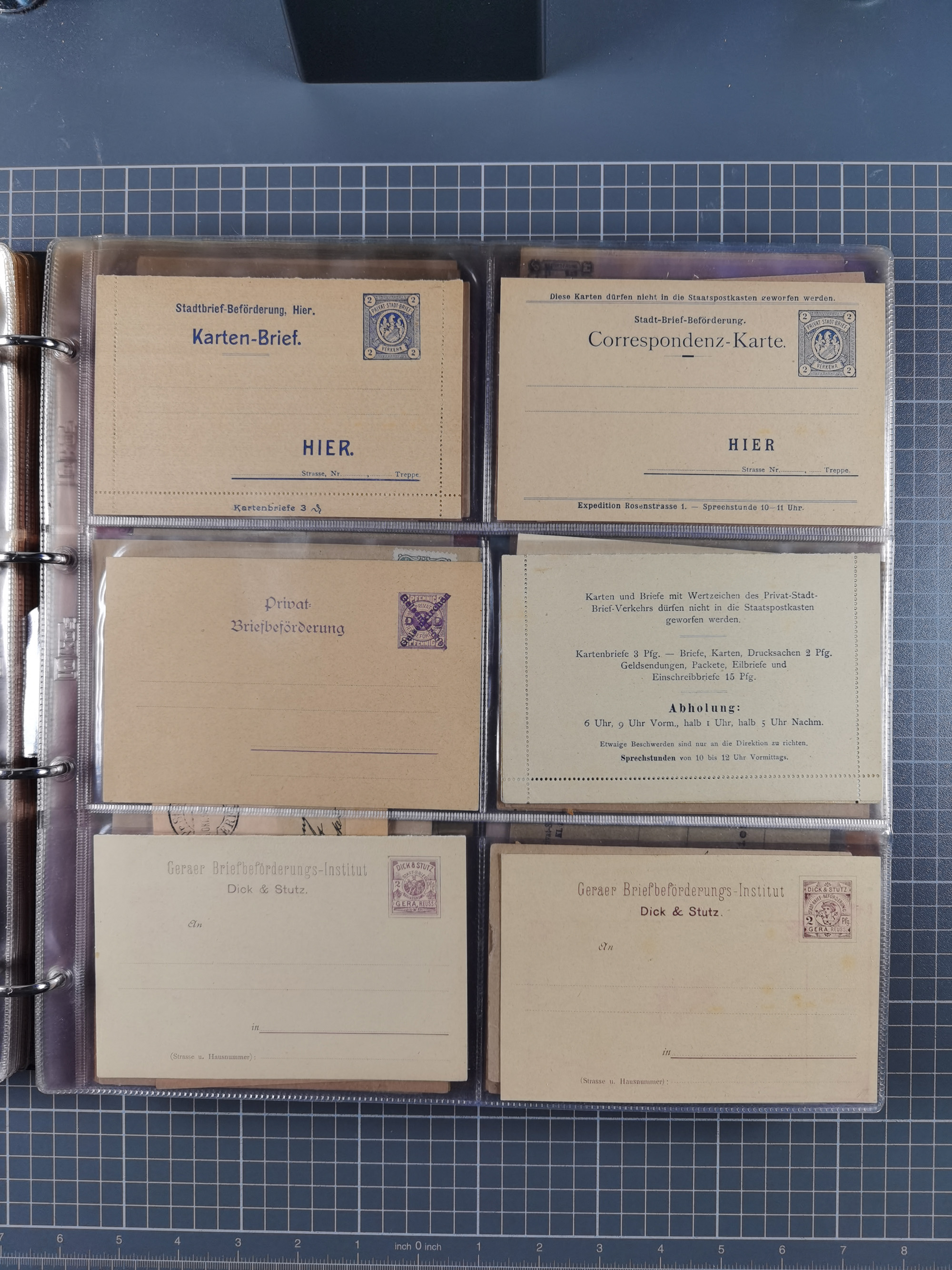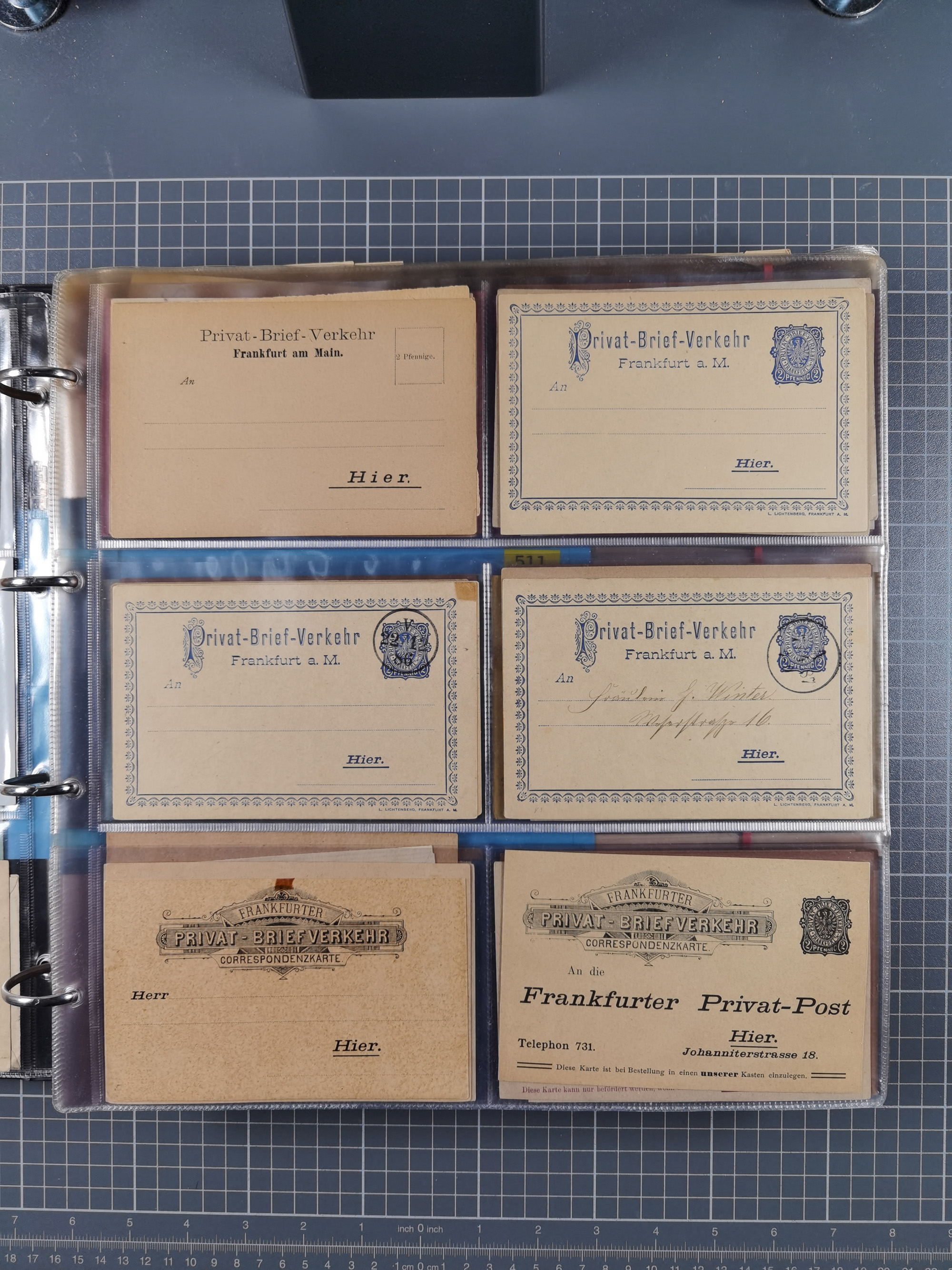 Auerbach bis Zittau: 1886/1900, umfangreiche Sammlung mit über 550 Briefen, Karten sowie ungebrauchten und gebrauchten Ganzsachen und einigen Formularen. Dabei u.a. Augsburg mit K3 gebraucht, Bamberg mit Mi.-Nr. 4 auf drei Briefen/Postkarten, Bonn mit Ganzsachen mit Firmen-Absendern, Dortmund mit P1 gebraucht (kleine Randfehler), Duisburg mit etwas fehlerhafter P2 gebraucht, Kassel Mi.-Nr. 14 auf Postkarte, Krefeld-Express-Beförderung Mi.-Nr. 5 auf Briefvorderseite, Mönchengladbach Courier Mi.-Nr. 4 auf Brief, Offenbach Privat-Post-Verkehr P1 gebraucht, Rostock K1 gebraucht, Worms K1 als Vorderseite gebraucht und Zittau P3 gebraucht mit Text. Die Erhaltung ist zum Teil leicht fehlerhaft, meist aber einwandfrei
