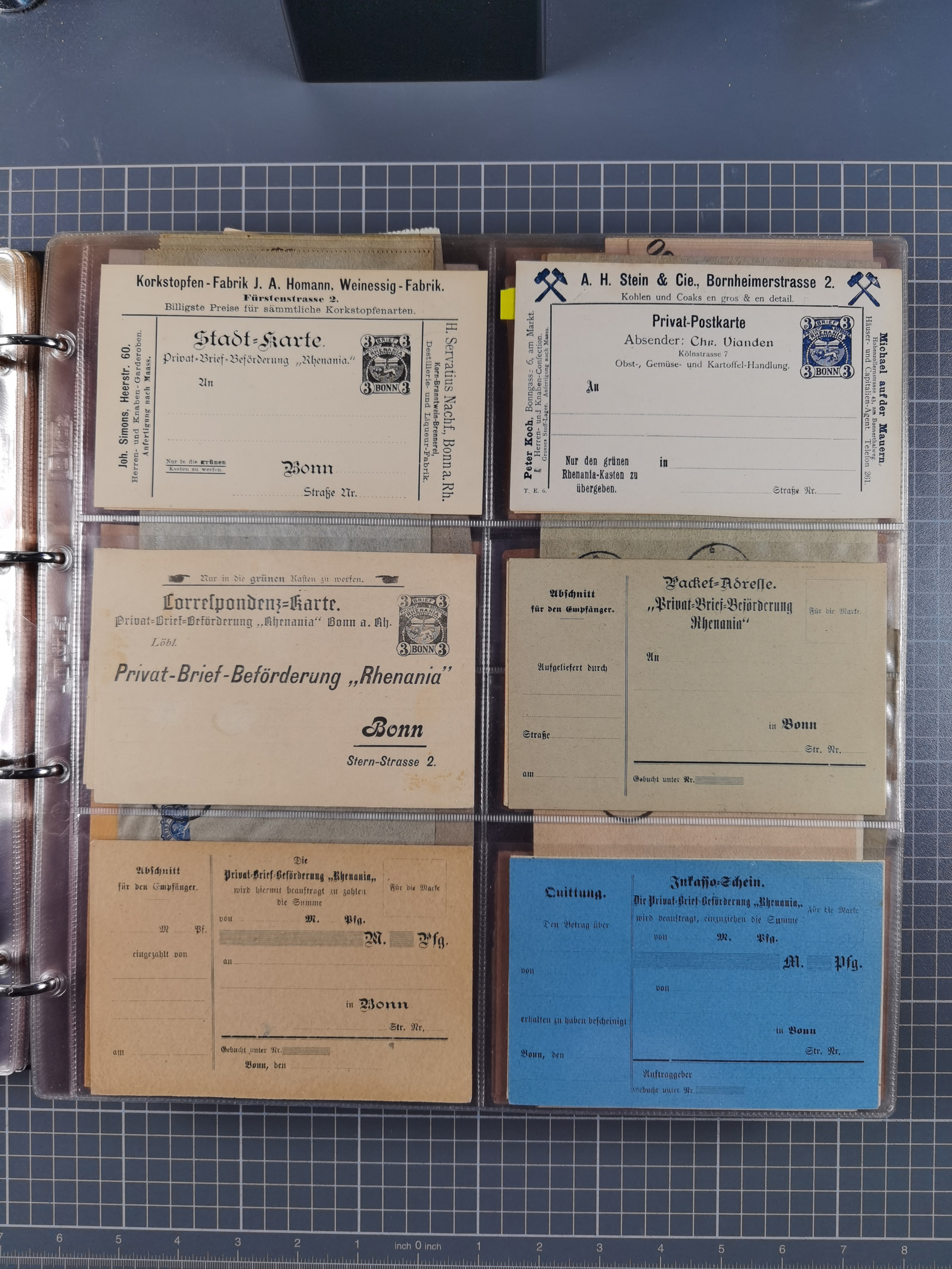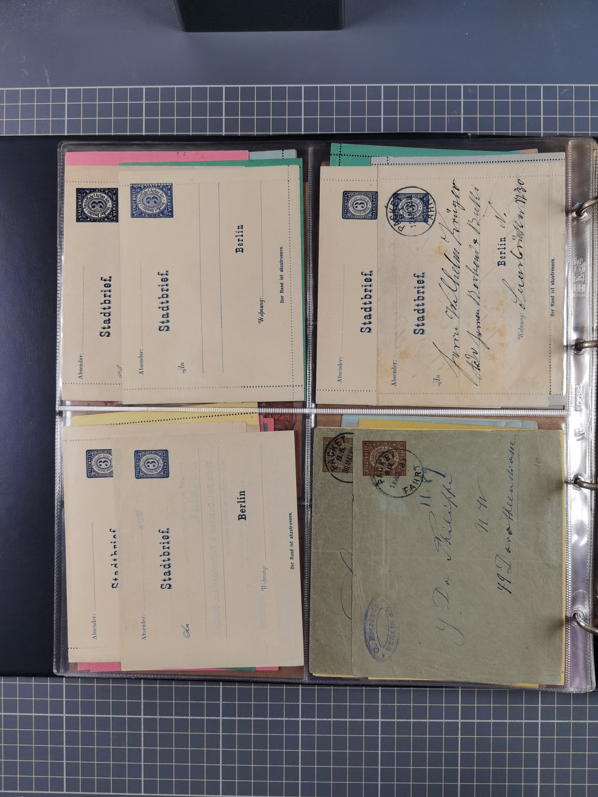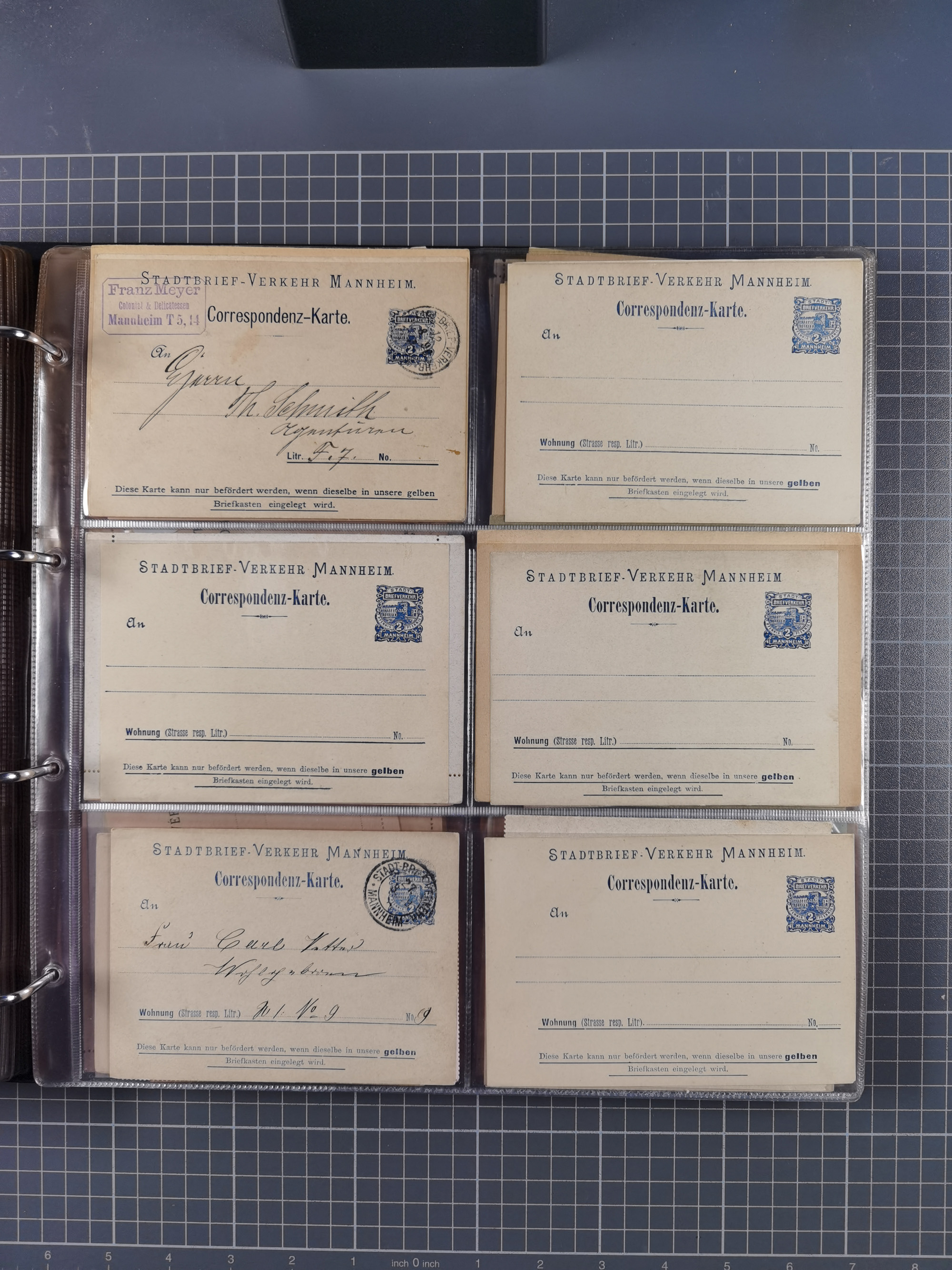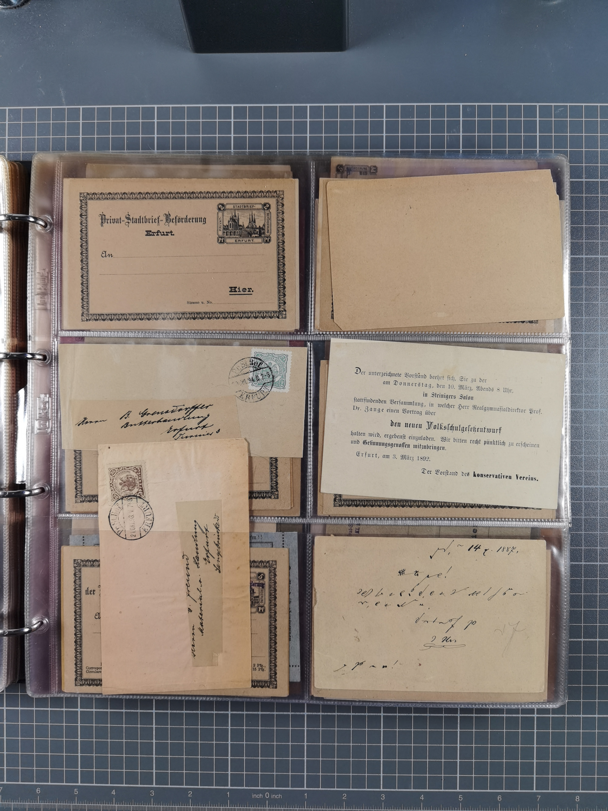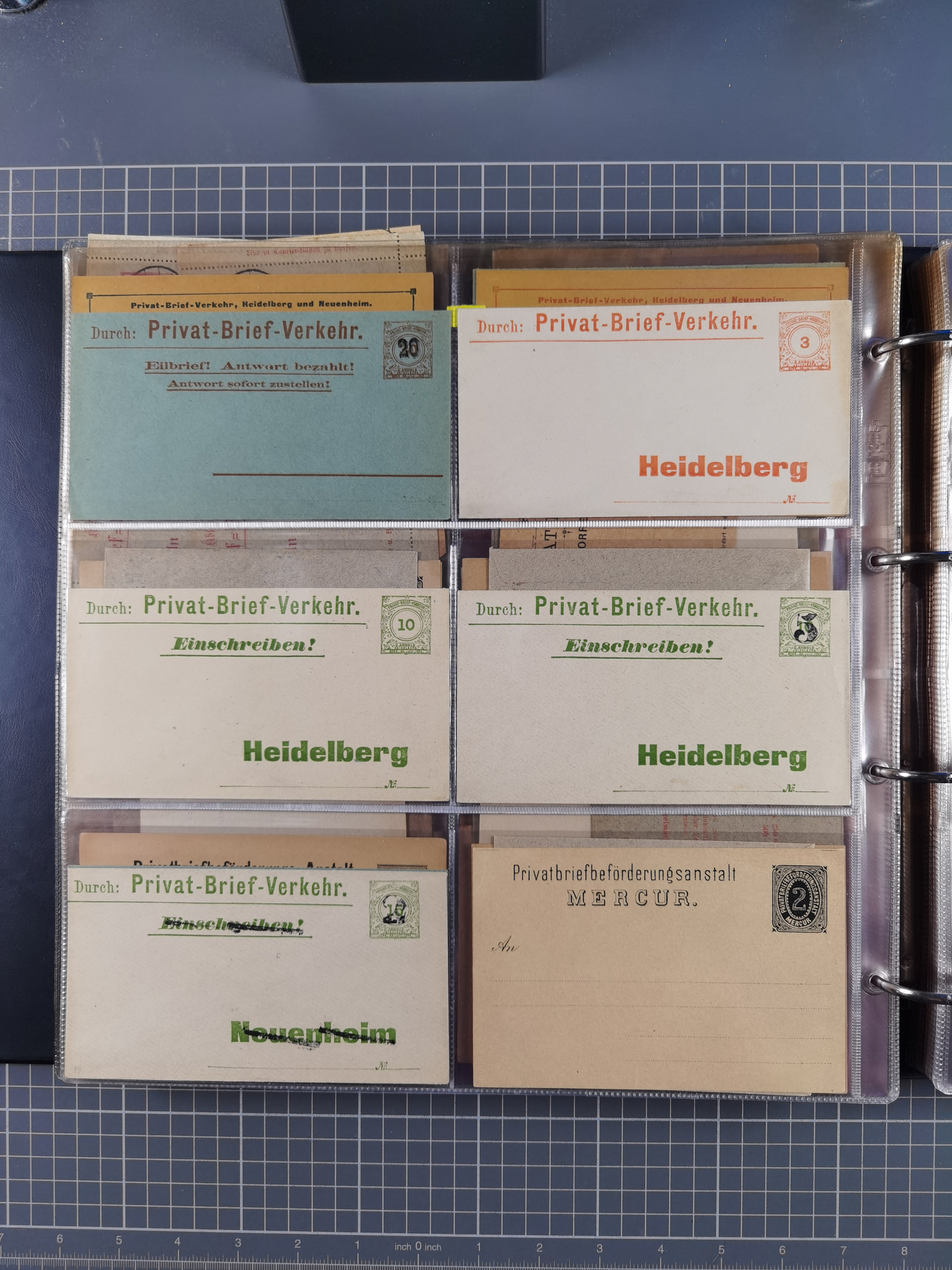 Auerbach bis Zittau: 1886/1900, umfangreiche Sammlung mit über 550 Briefen, Karten sowie ungebrauchten und gebrauchten Ganzsachen und einigen Formularen. Dabei u.a. Augsburg mit K3 gebraucht, Bamberg mit Mi.-Nr. 4 auf drei Briefen/Postkarten, Bonn mit Ganzsachen mit Firmen-Absendern, Dortmund mit P1 gebraucht (kleine Randfehler), Duisburg mit etwas fehlerhafter P2 gebraucht, Kassel Mi.-Nr. 14 auf Postkarte, Krefeld-Express-Beförderung Mi.-Nr. 5 auf Briefvorderseite, Mönchengladbach Courier Mi.-Nr. 4 auf Brief, Offenbach Privat-Post-Verkehr P1 gebraucht, Rostock K1 gebraucht, Worms K1 als Vorderseite gebraucht und Zittau P3 gebraucht mit Text. Die Erhaltung ist zum Teil leicht fehlerhaft, meist aber einwandfrei