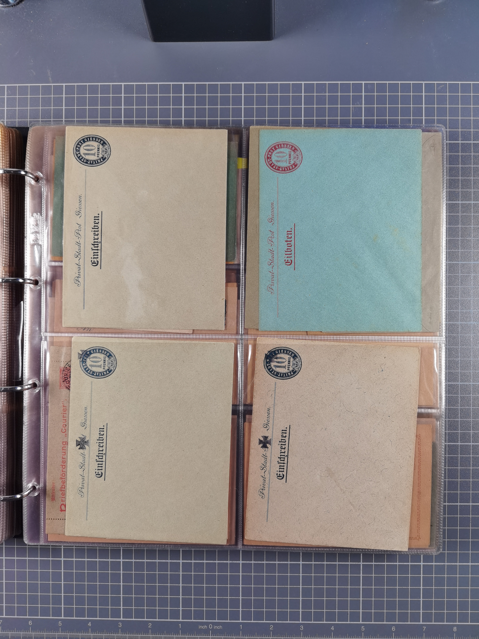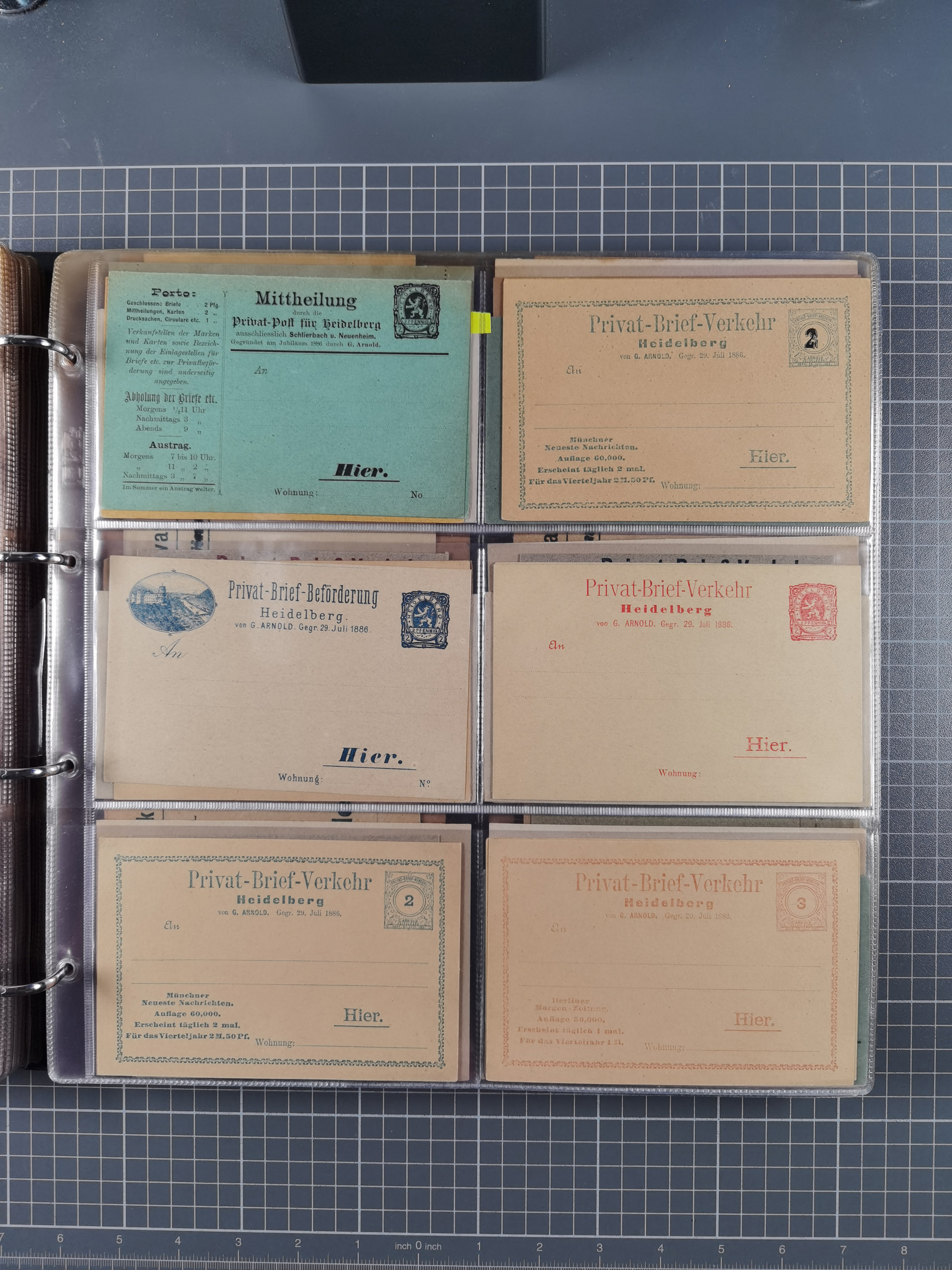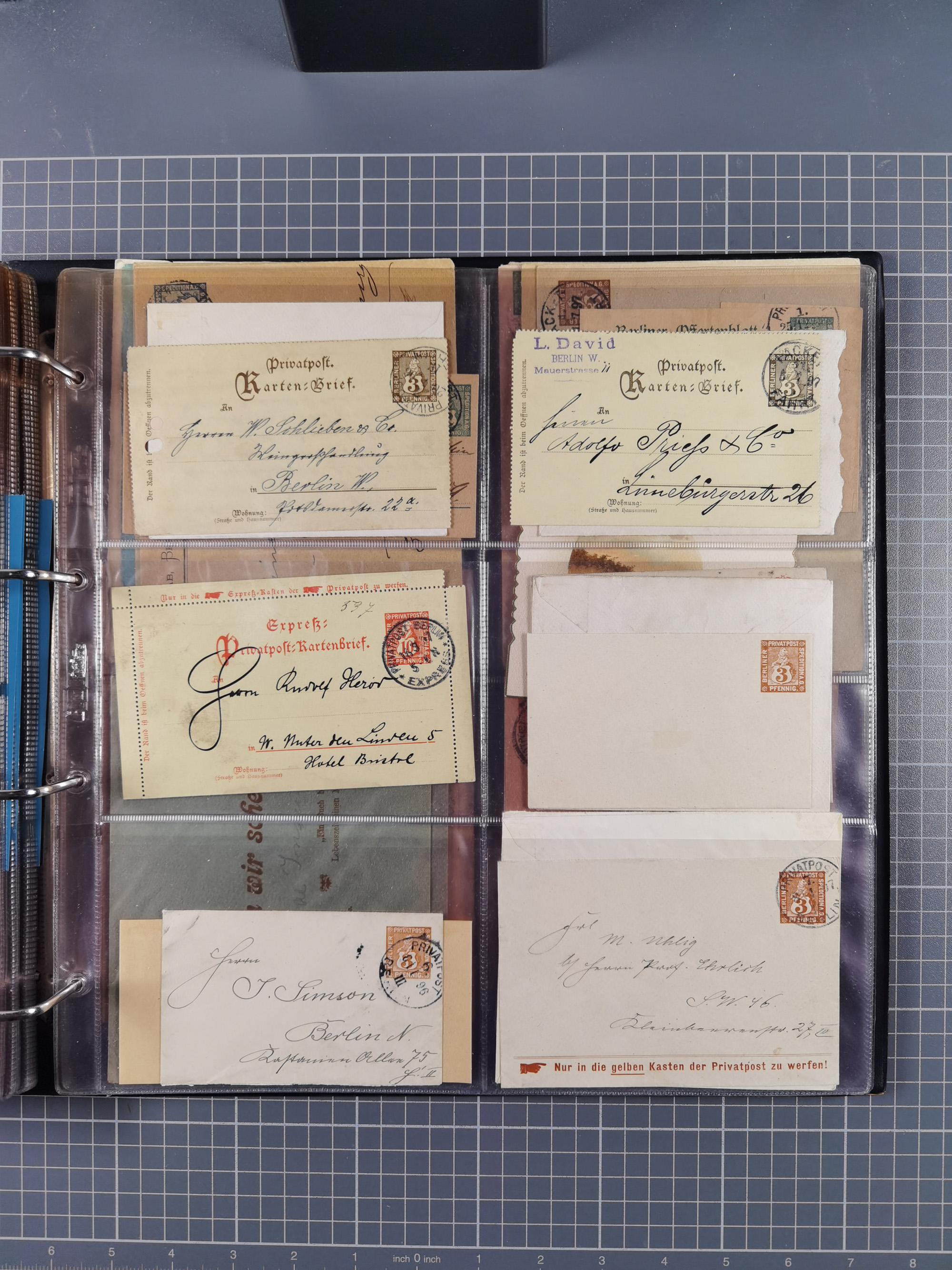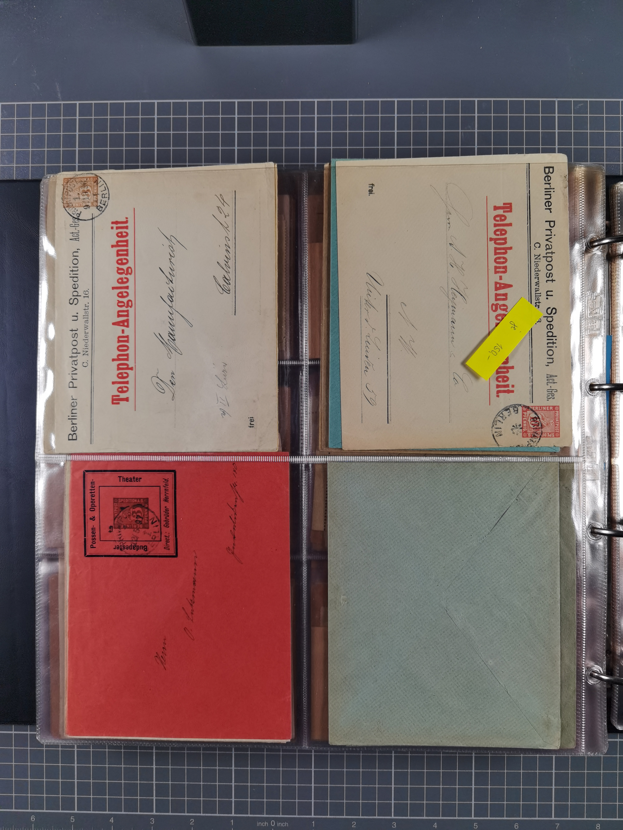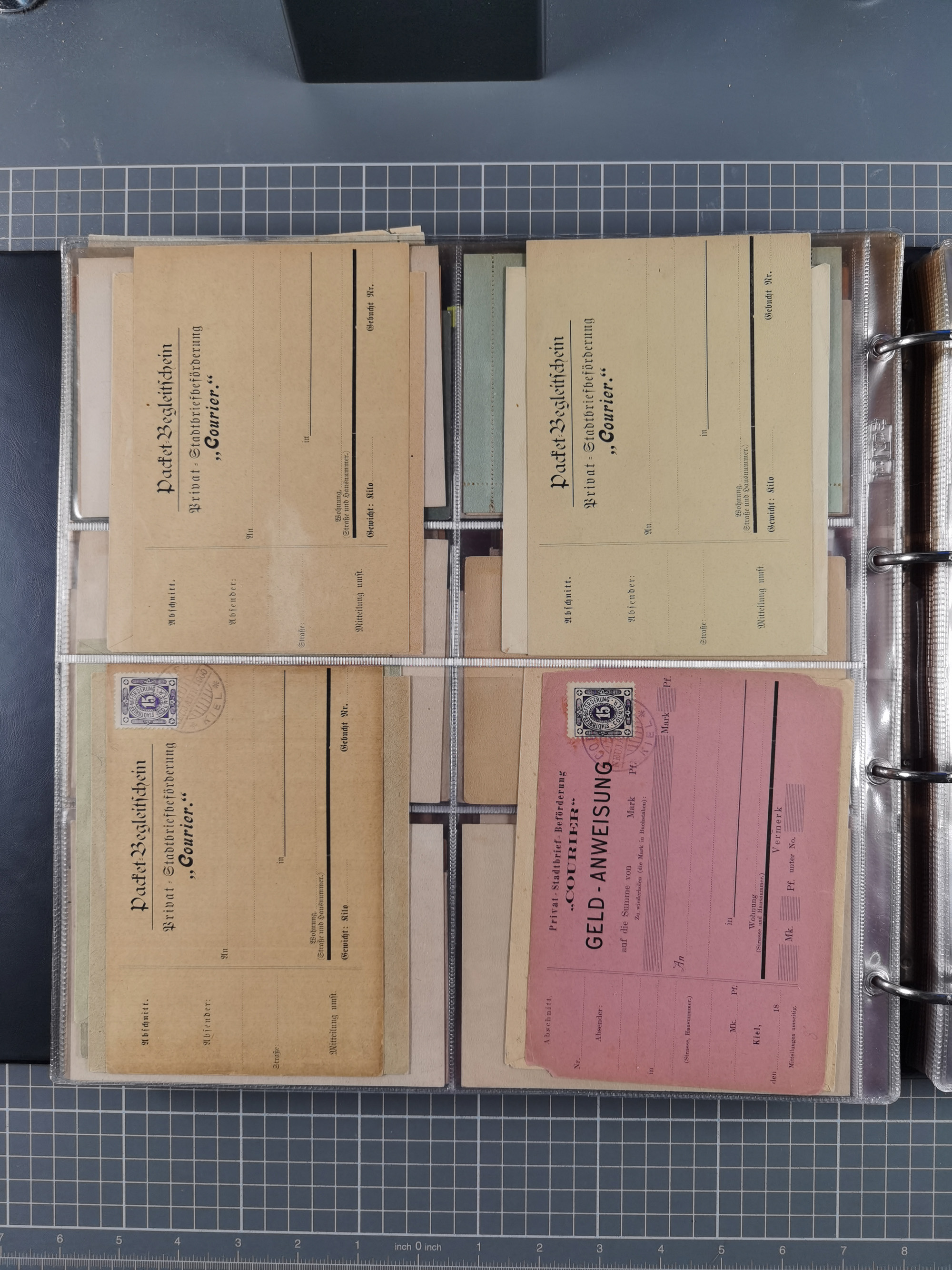 Auerbach bis Zittau: 1886/1900, umfangreiche Sammlung mit über 550 Briefen, Karten sowie ungebrauchten und gebrauchten Ganzsachen und einigen Formularen. Dabei u.a. Augsburg mit K3 gebraucht, Bamberg mit Mi.-Nr. 4 auf drei Briefen/Postkarten, Bonn mit Ganzsachen mit Firmen-Absendern, Dortmund mit P1 gebraucht (kleine Randfehler), Duisburg mit etwas fehlerhafter P2 gebraucht, Kassel Mi.-Nr. 14 auf Postkarte, Krefeld-Express-Beförderung Mi.-Nr. 5 auf Briefvorderseite, Mönchengladbach Courier Mi.-Nr. 4 auf Brief, Offenbach Privat-Post-Verkehr P1 gebraucht, Rostock K1 gebraucht, Worms K1 als Vorderseite gebraucht und Zittau P3 gebraucht mit Text. Die Erhaltung ist zum Teil leicht fehlerhaft, meist aber einwandfrei